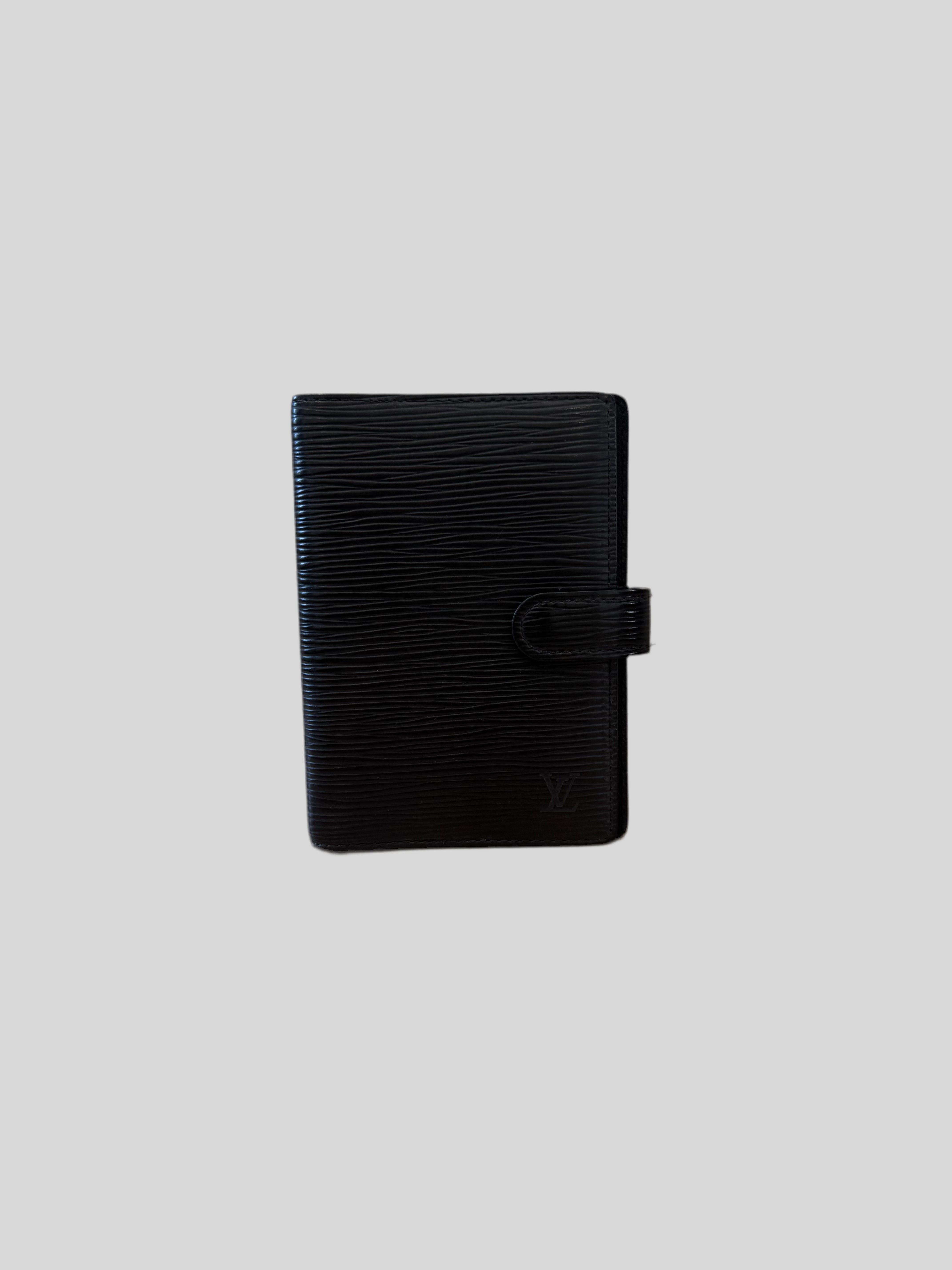 Agenda PM Louis Vuitton en cuir d’épi noir, en très bon état.