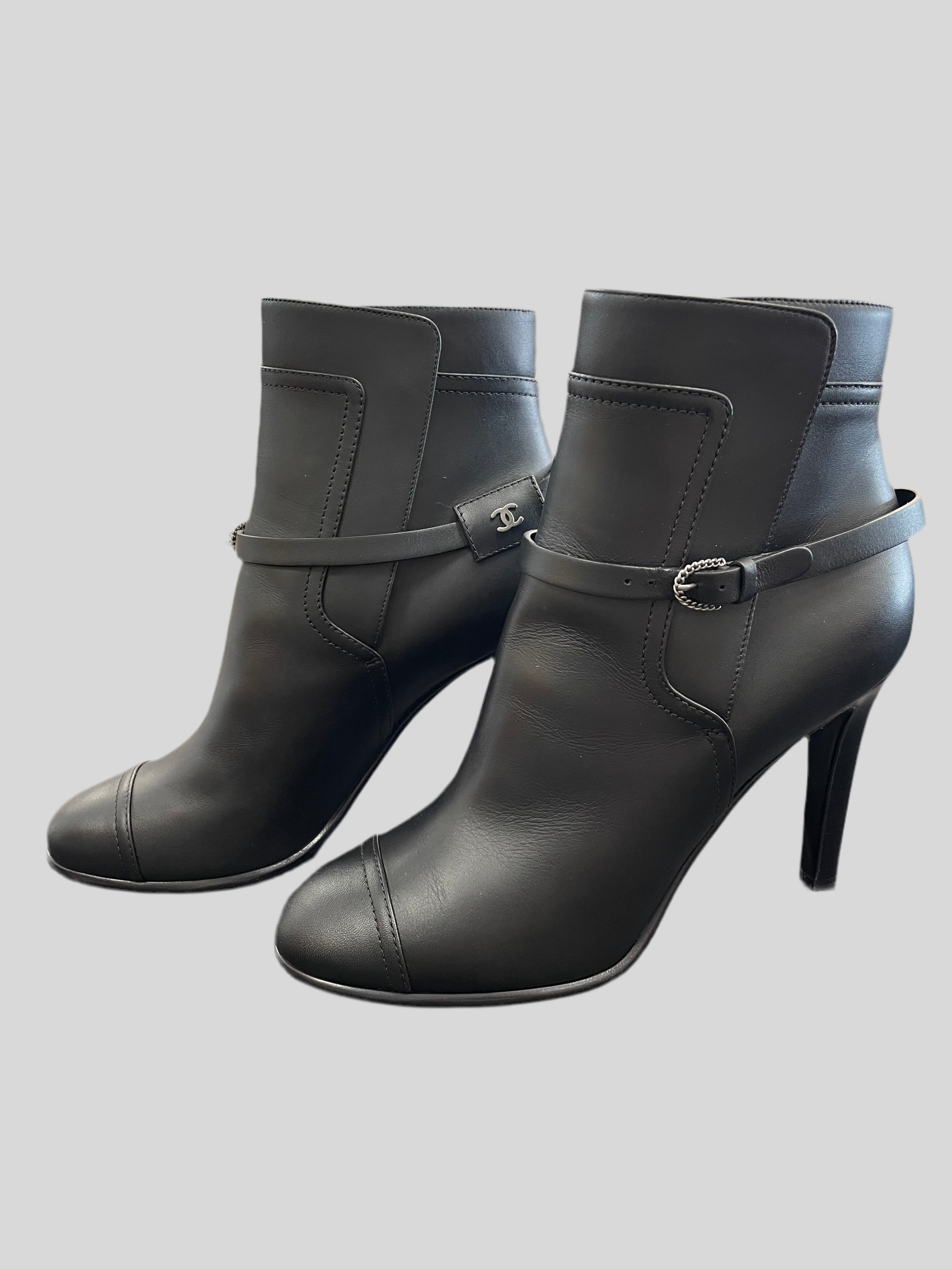 Bottines Chanel en cuir noir en excellent état, jamais été portées.