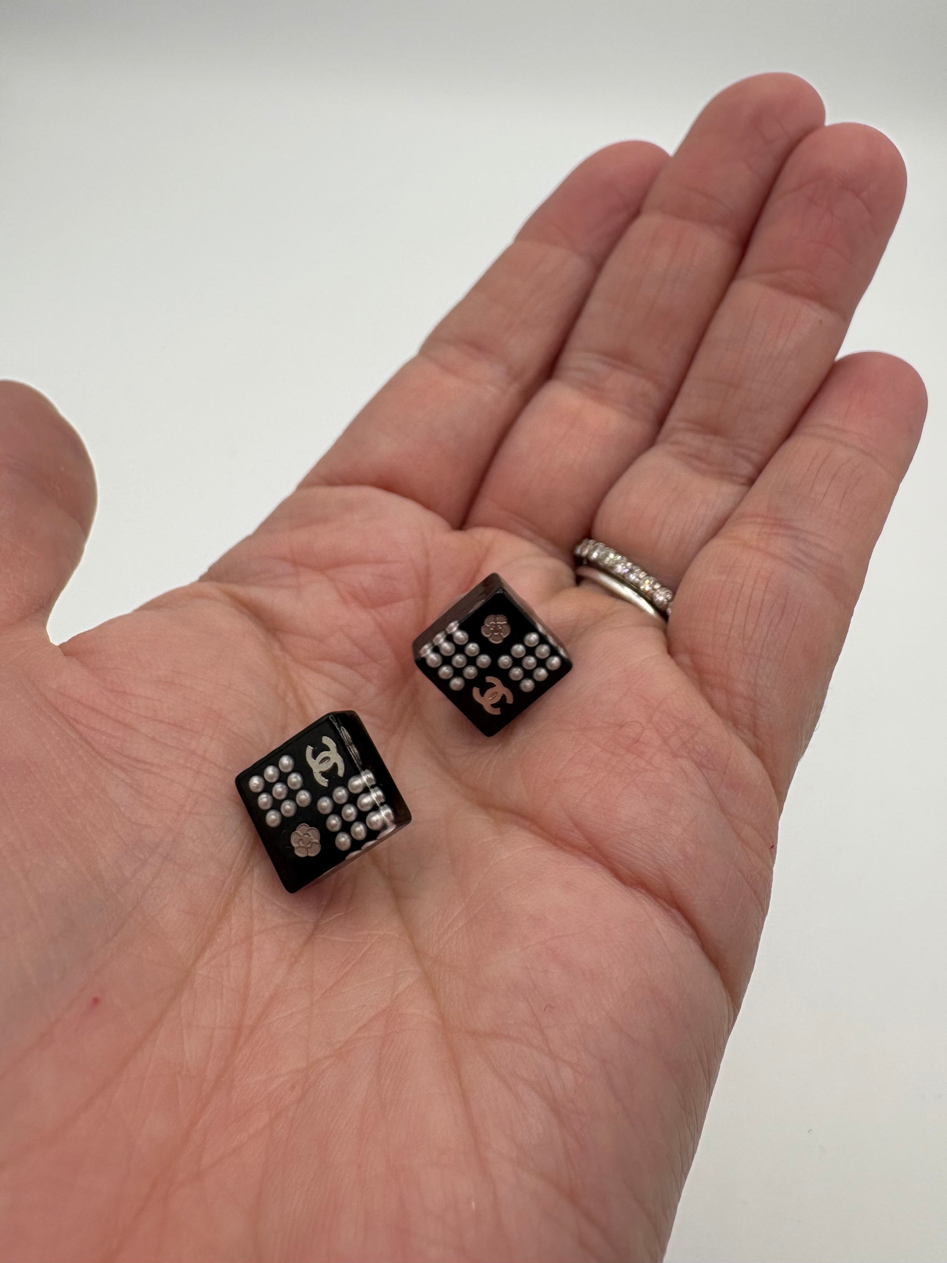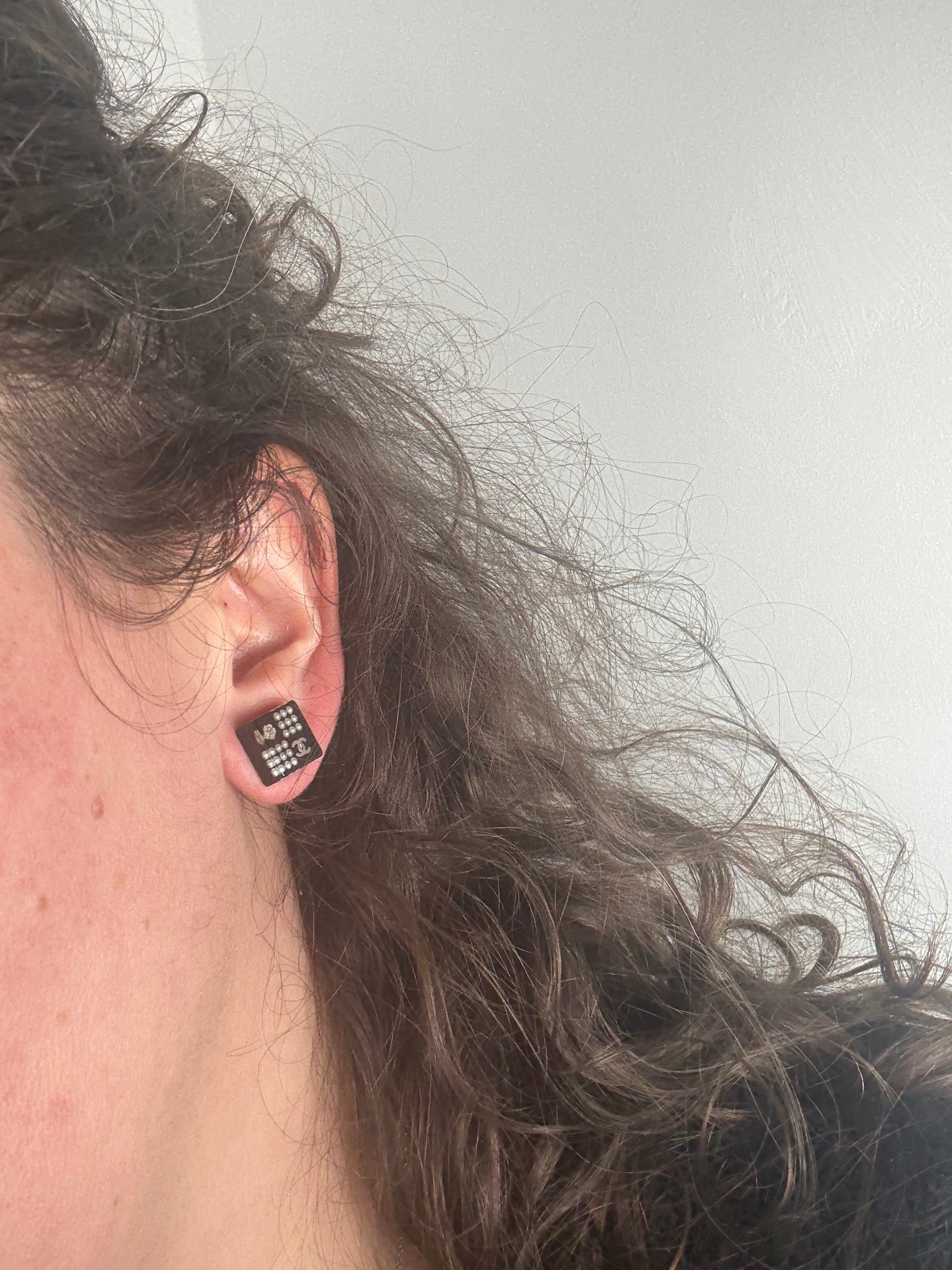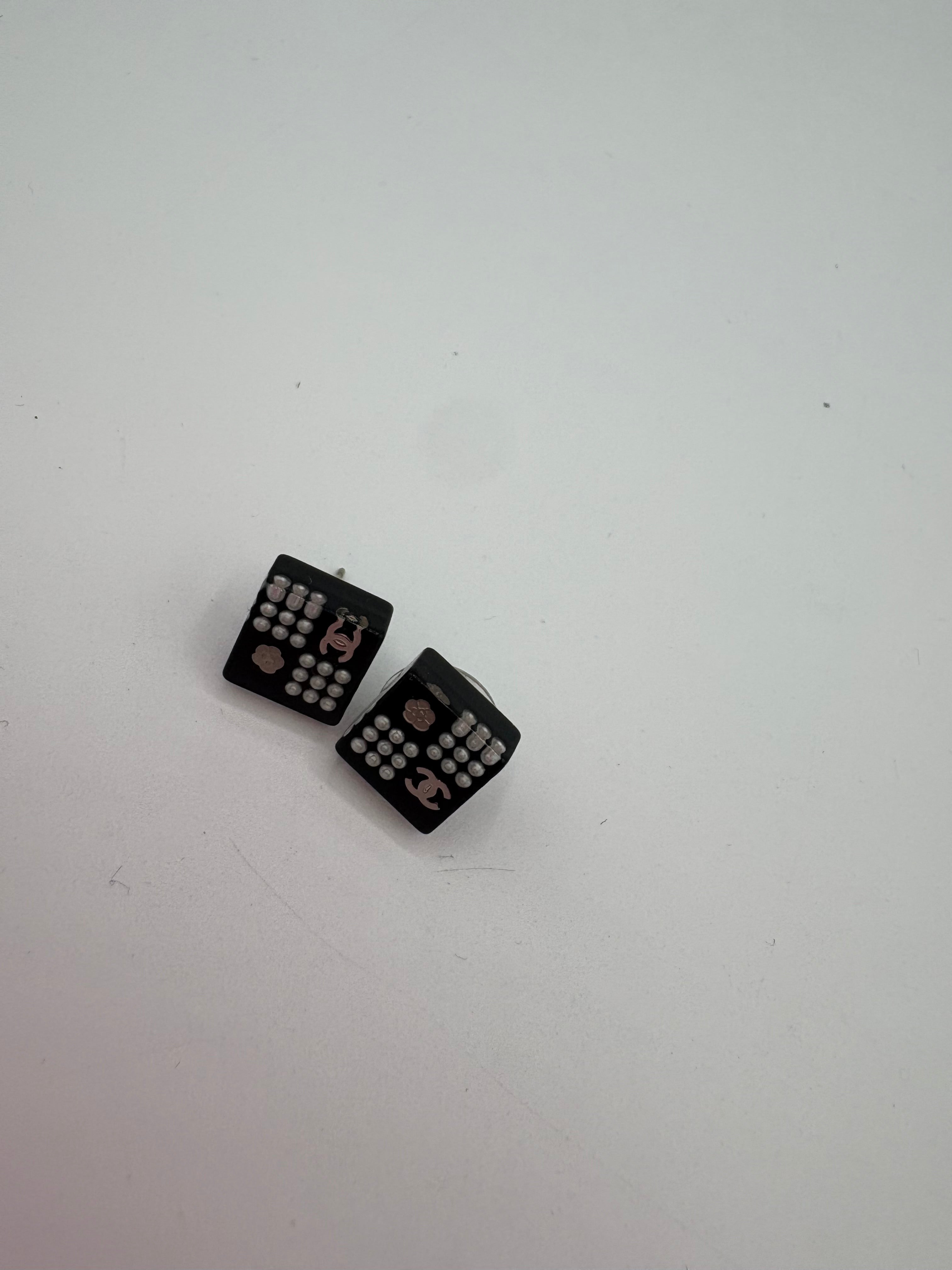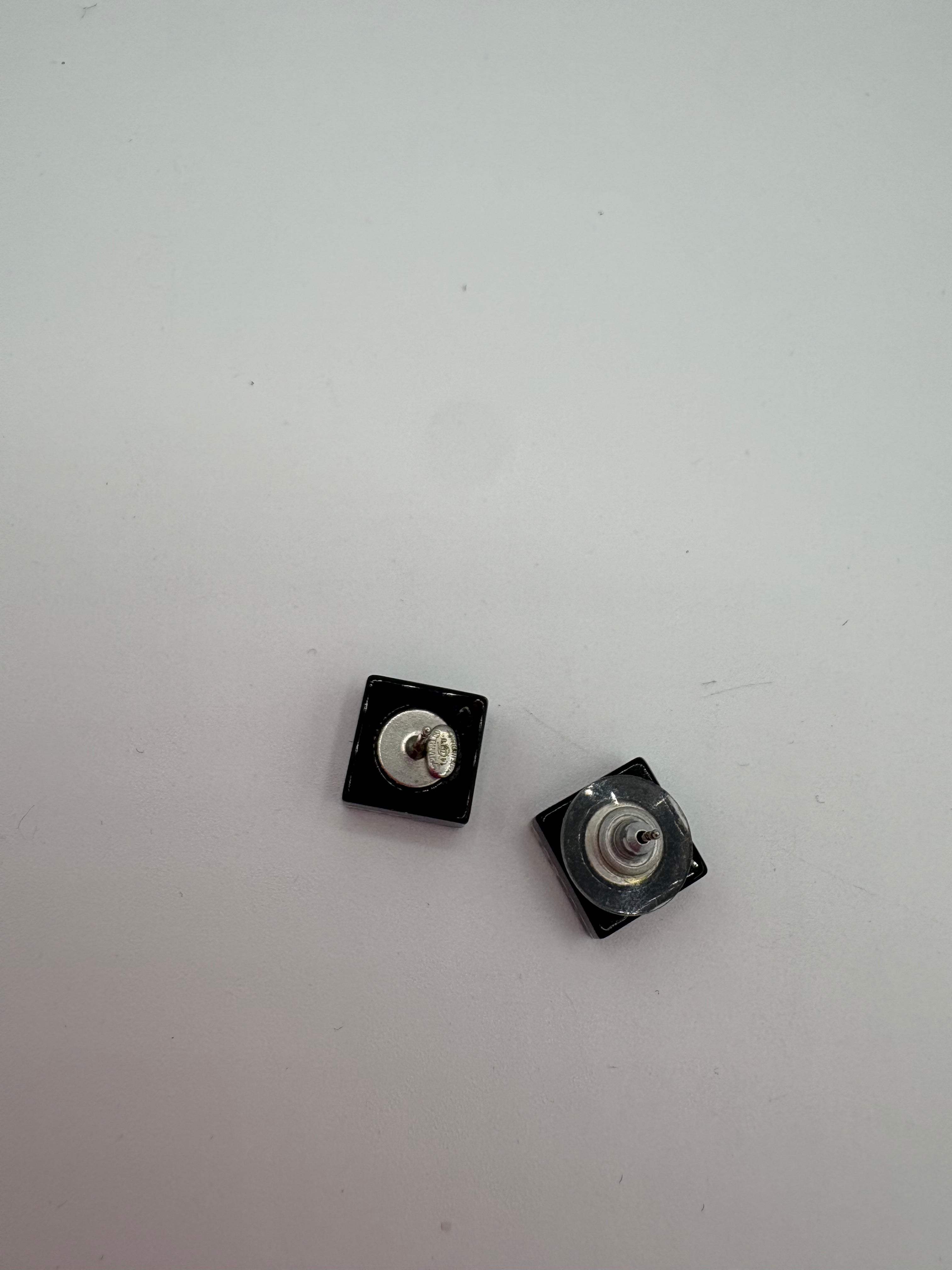 Puces d’oreilles Chanel carrées en très bon état.