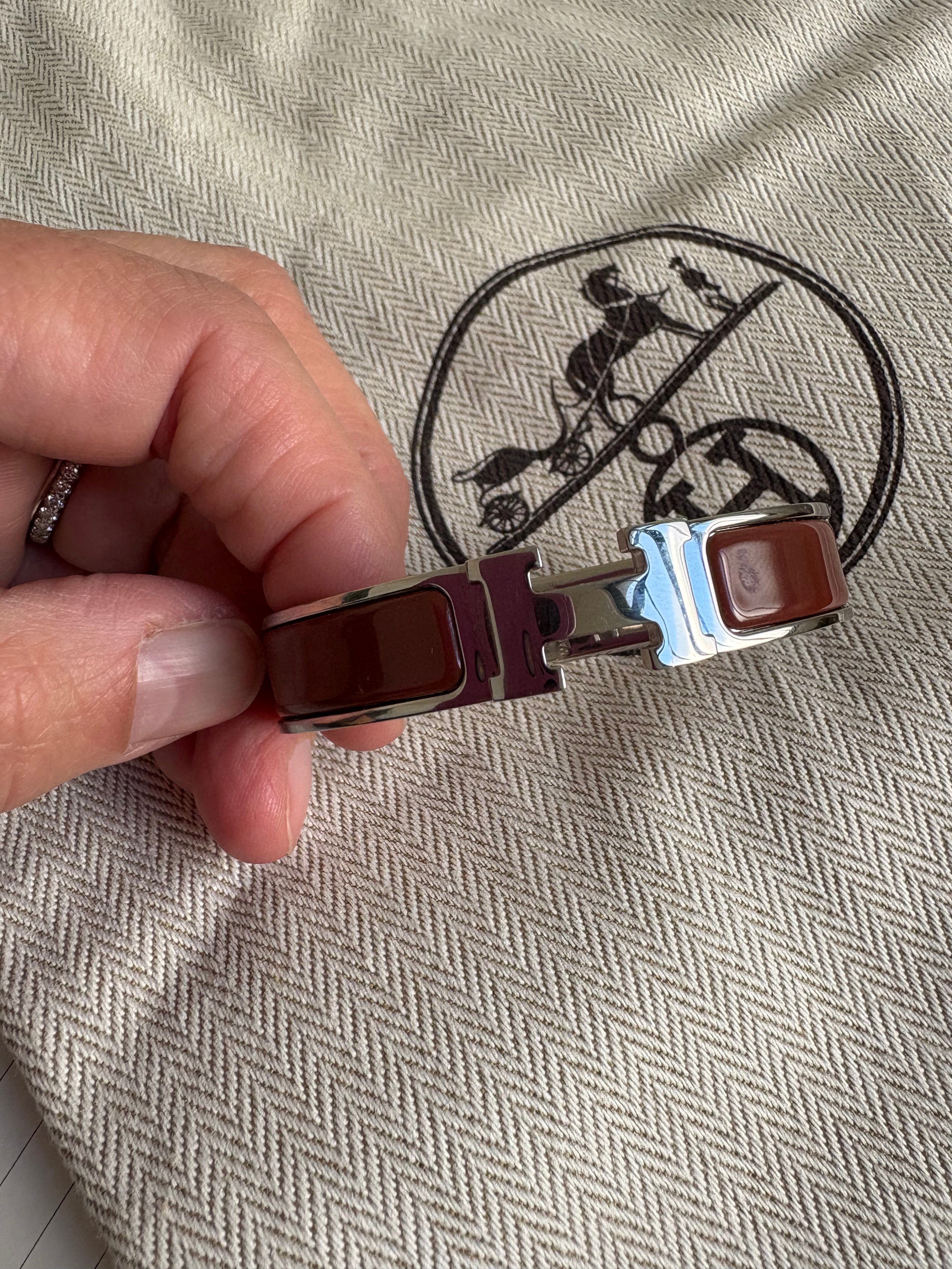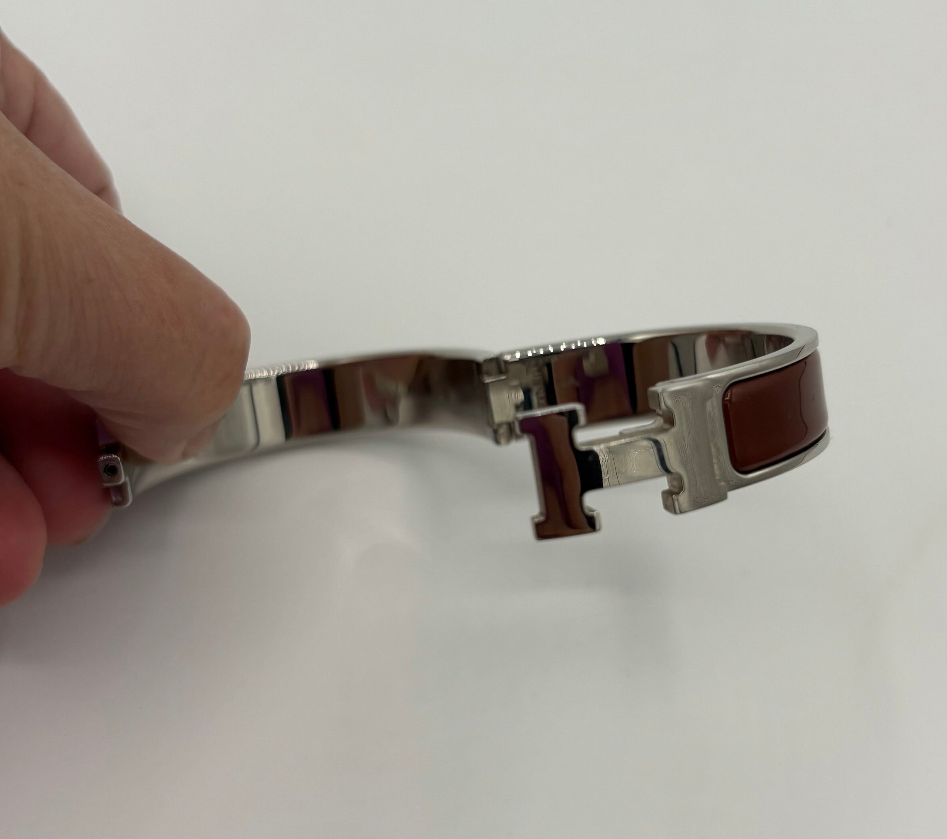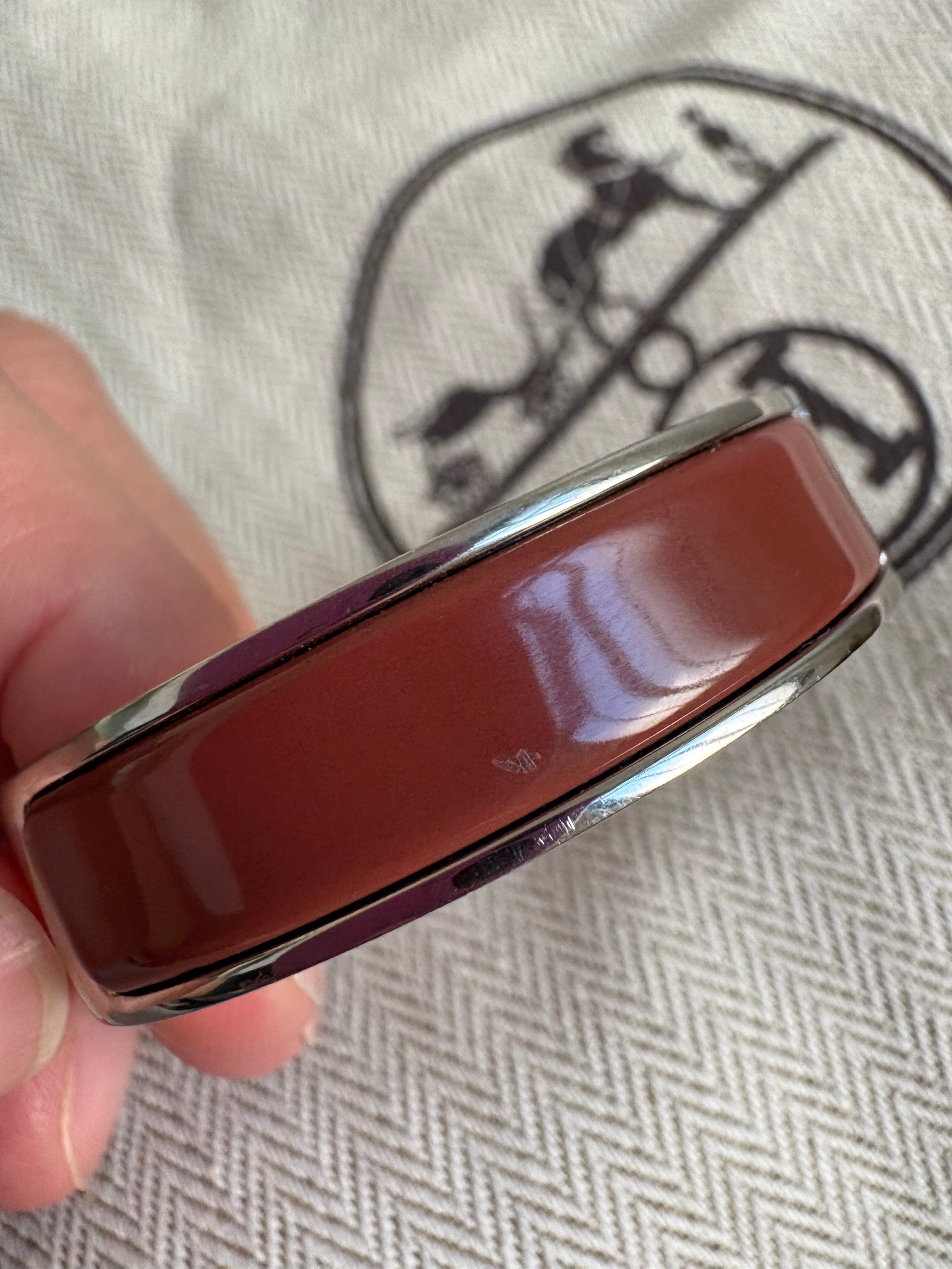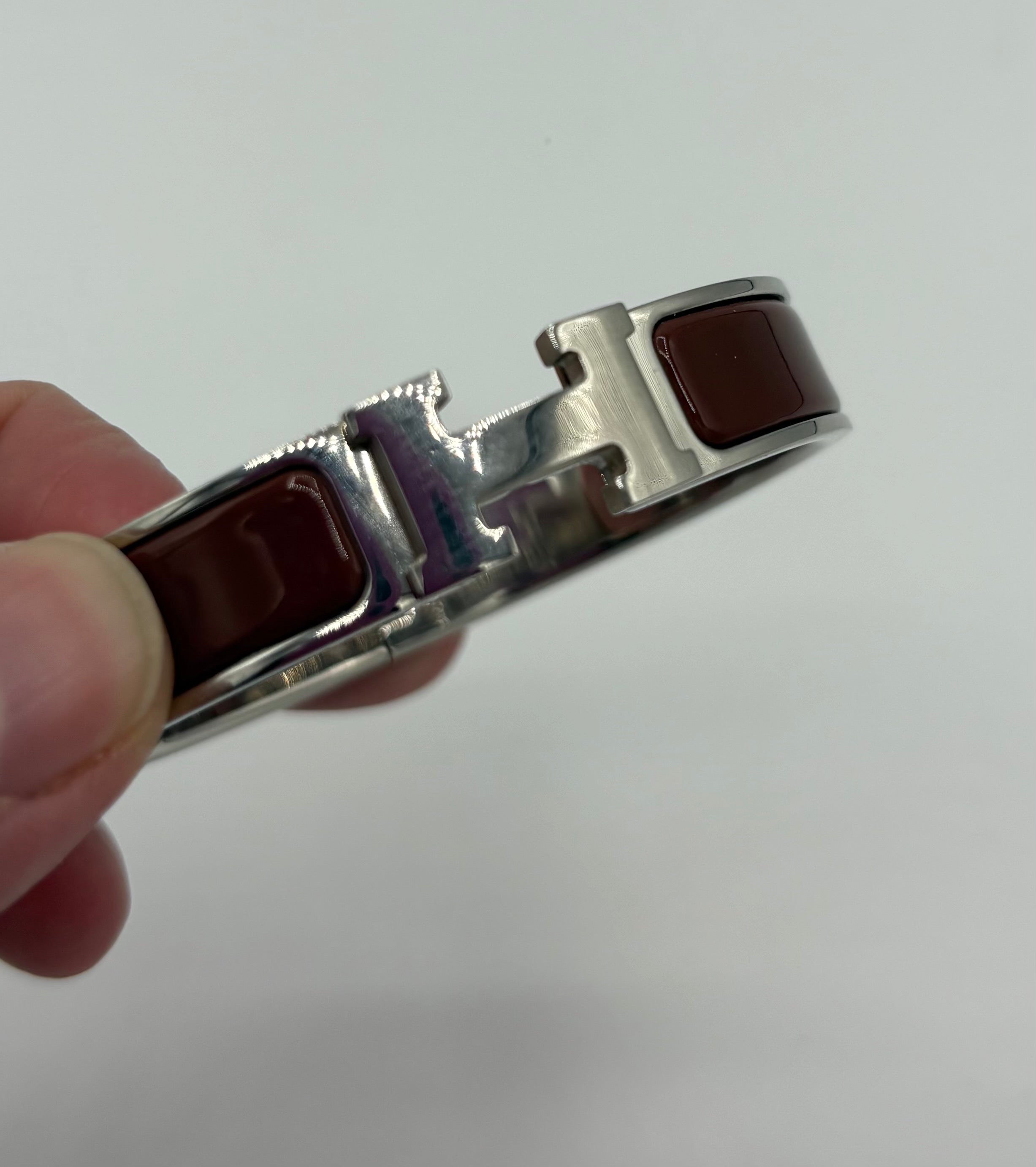 Bracelet Clic H PM Hermès en très bon état , le métal est légèrement rayé à l’extérieur et l’intérieur, visibles en photos.
