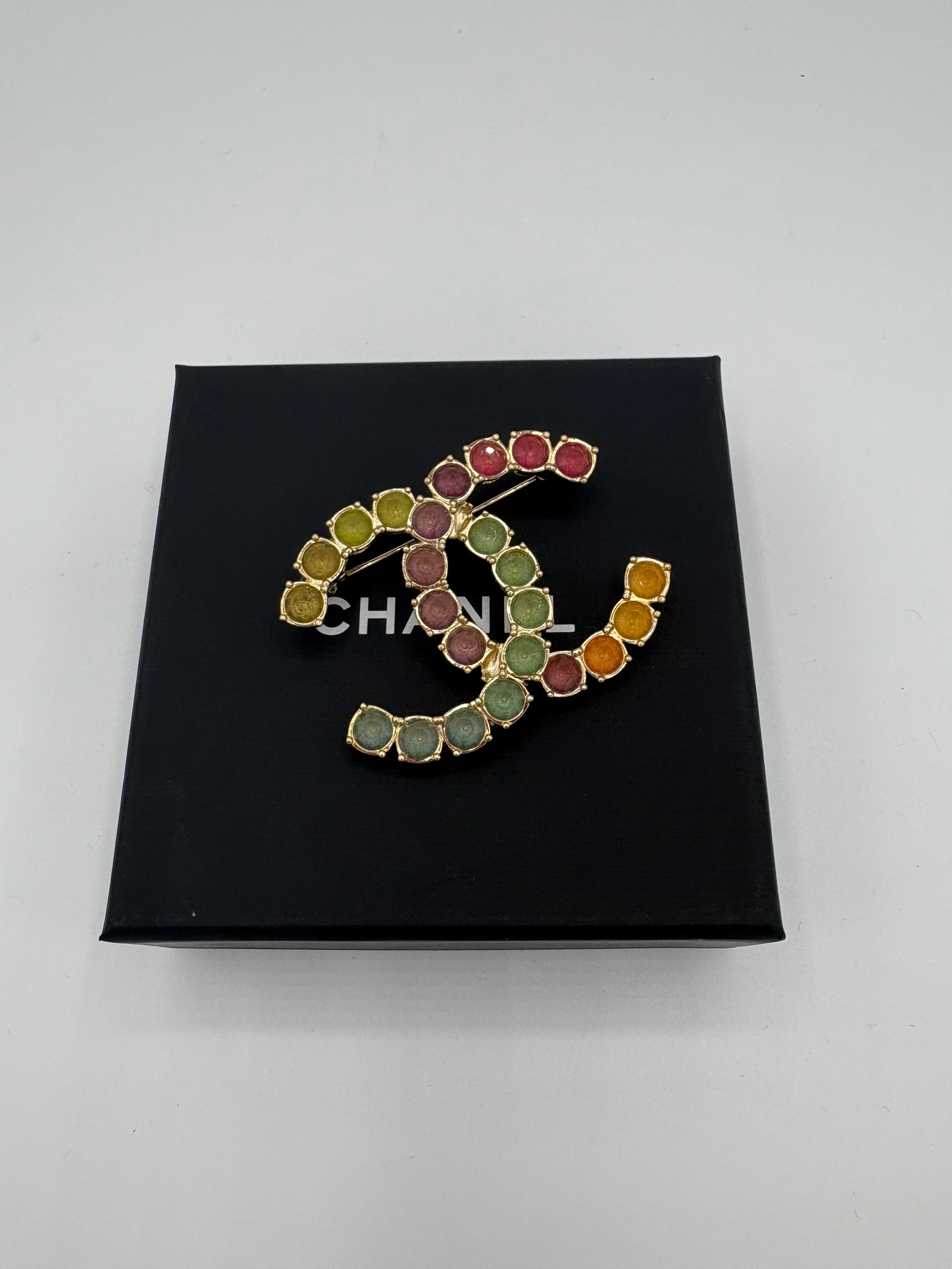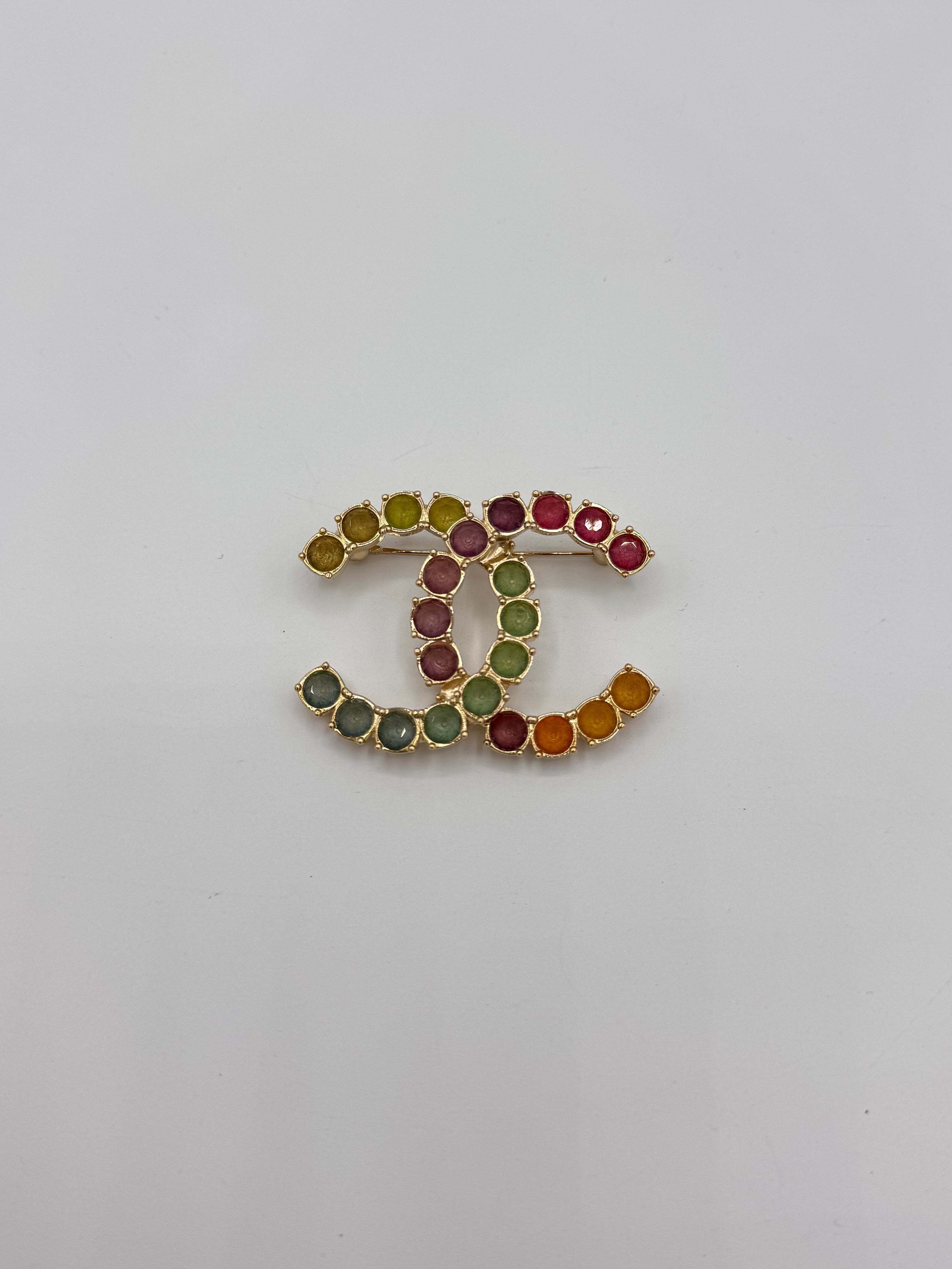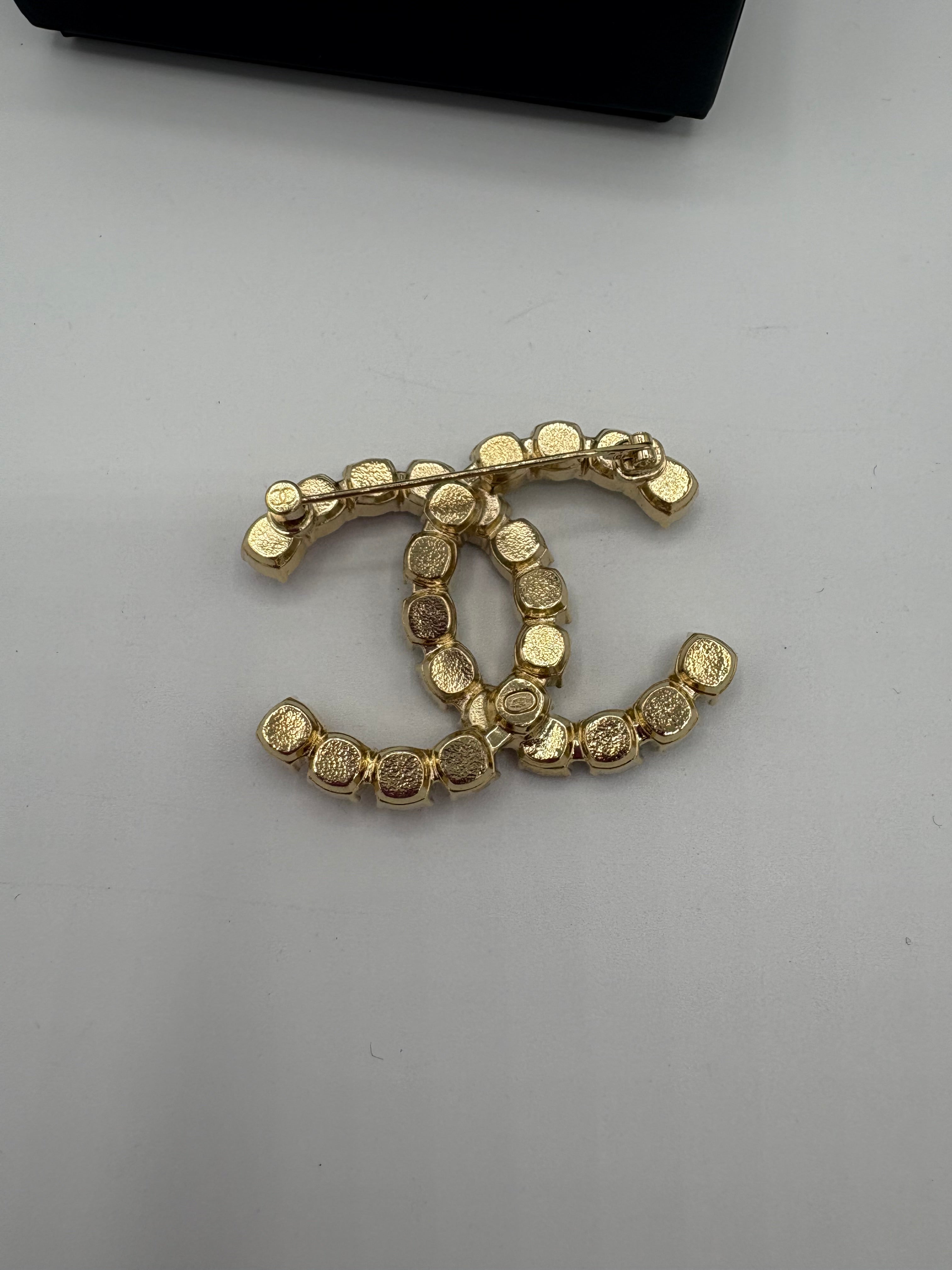 Broche Chanel double C, en état proche du neuf.