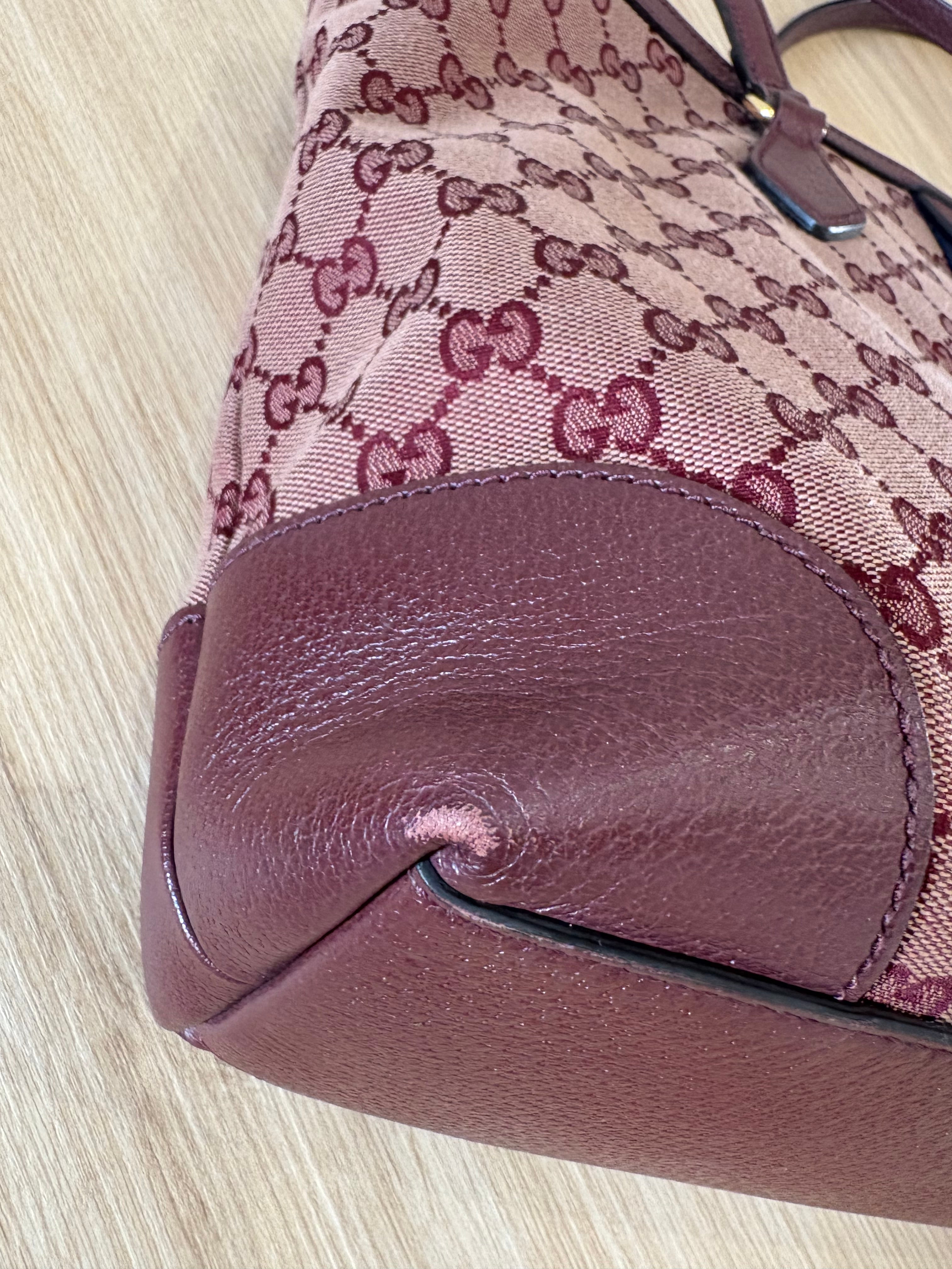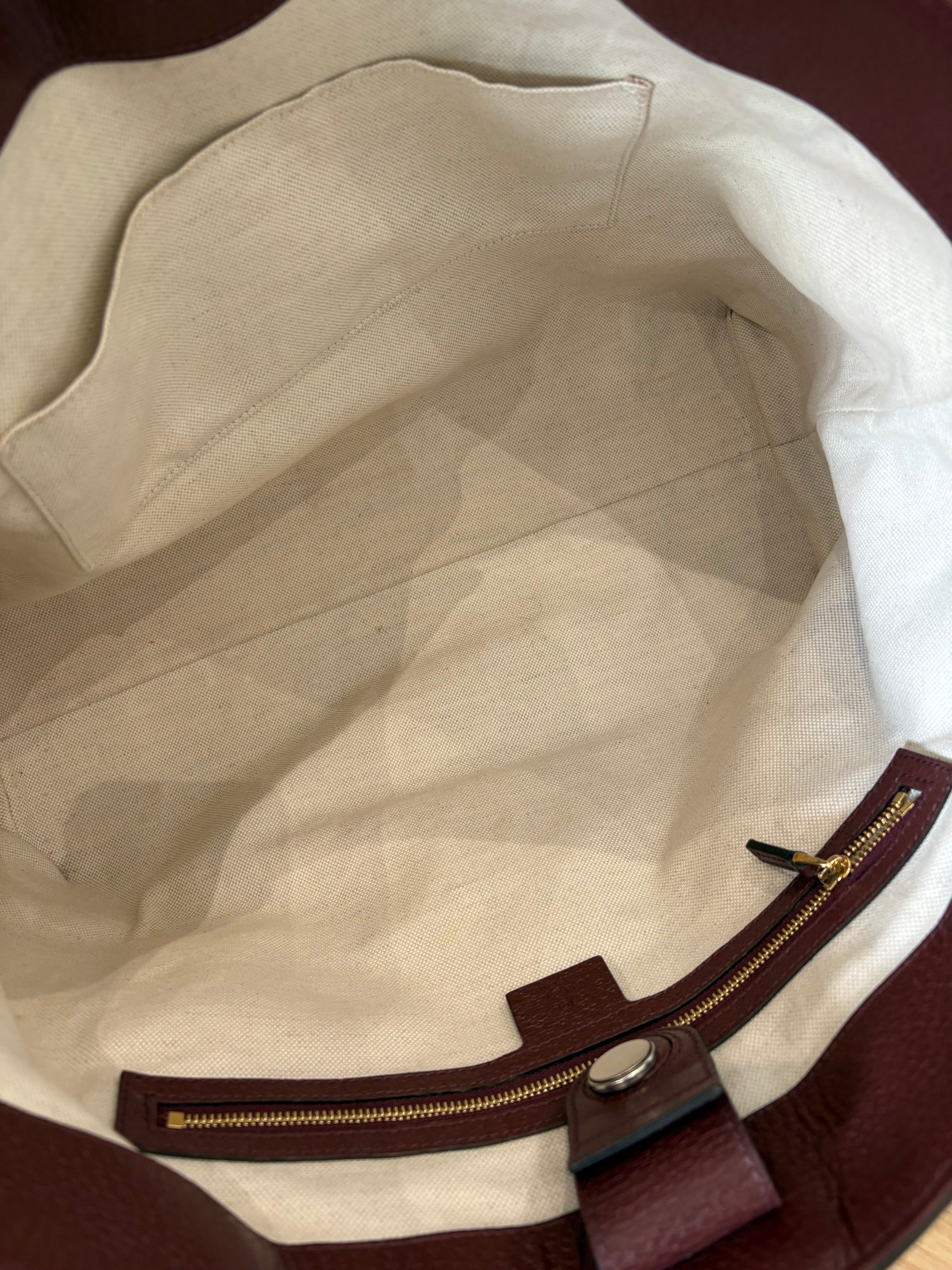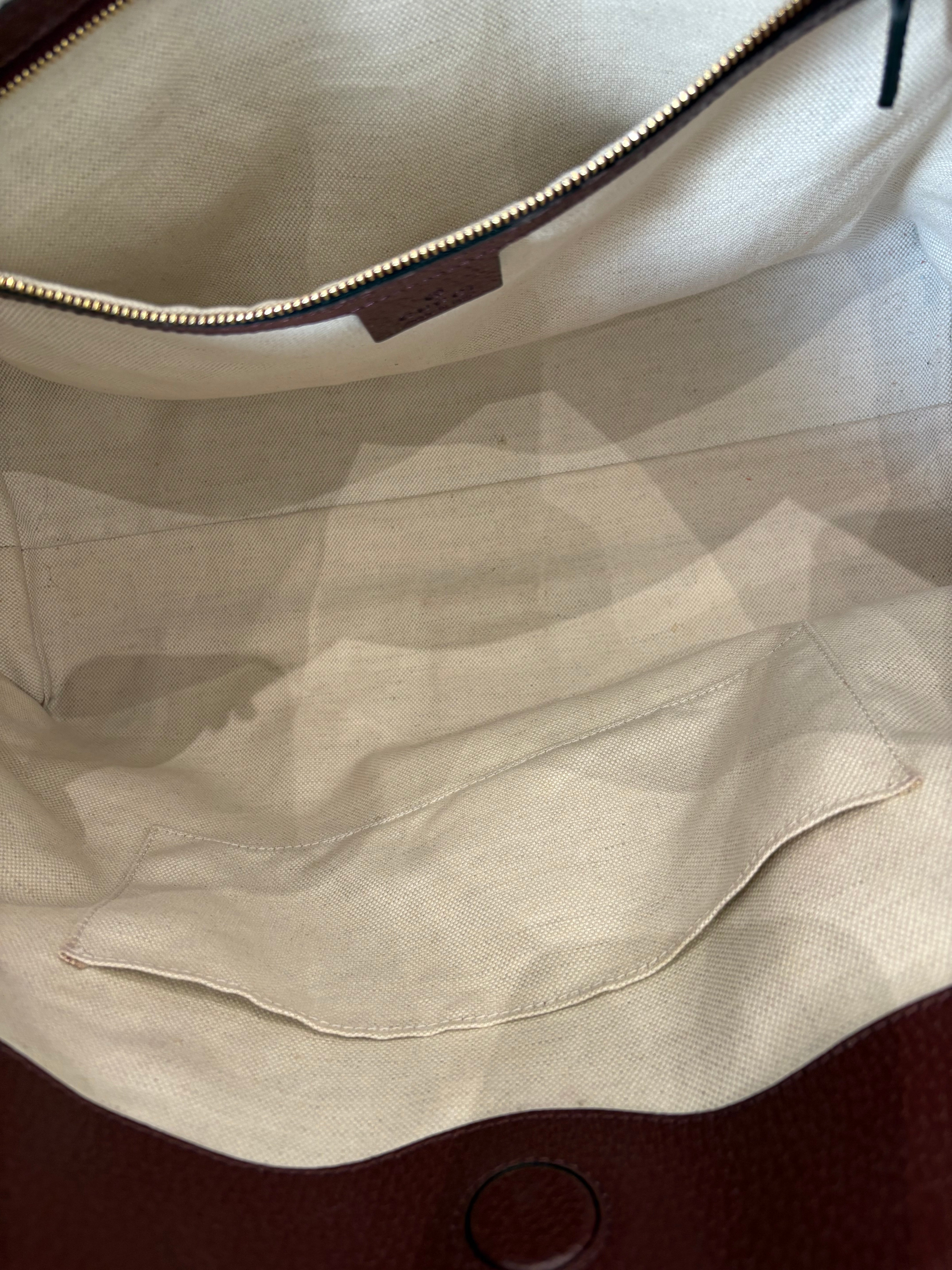 traces légères sur les angles, seul point à souligner sur le cuir du sac, facilement corrigeables par une recoloration légère.