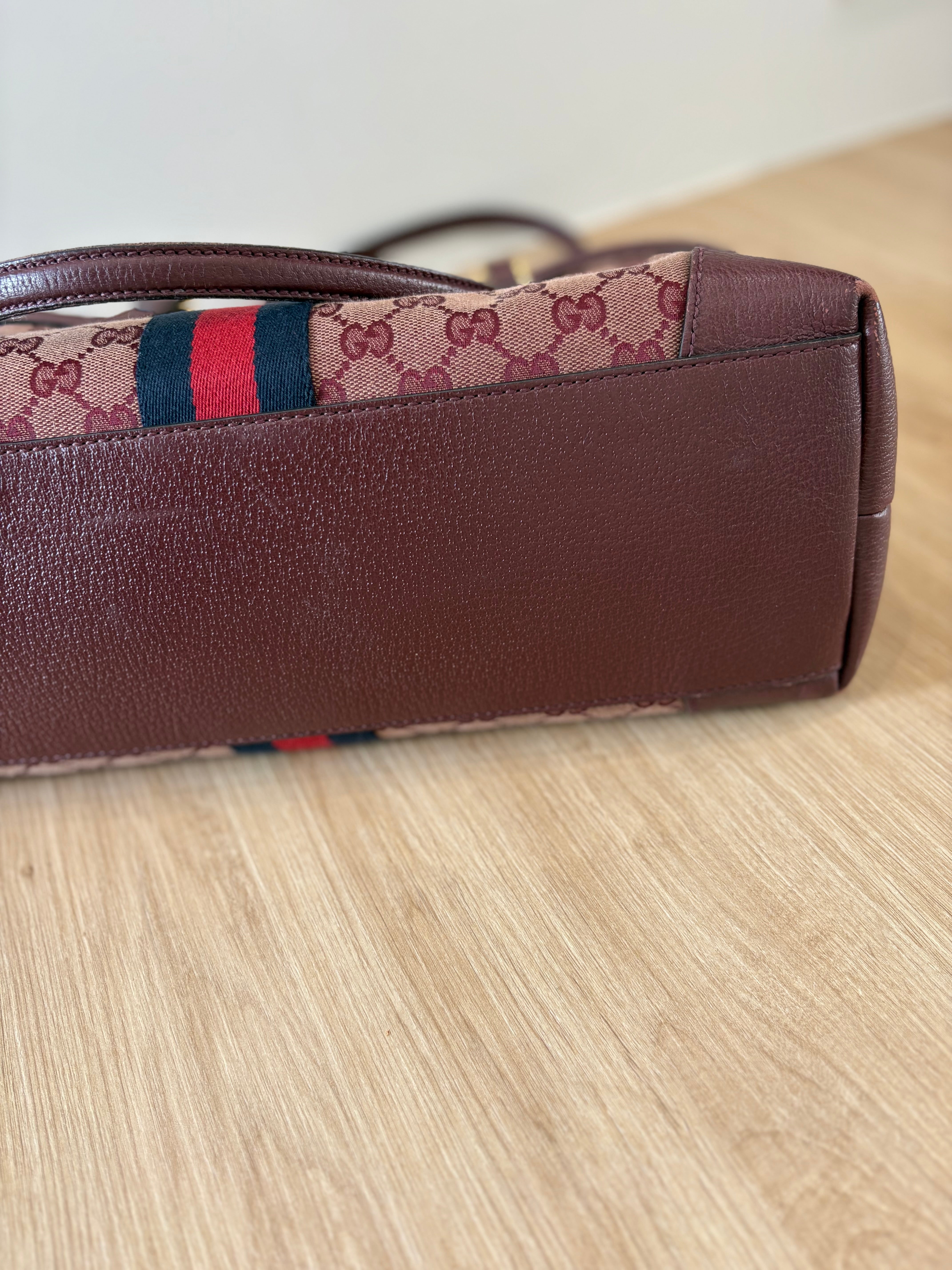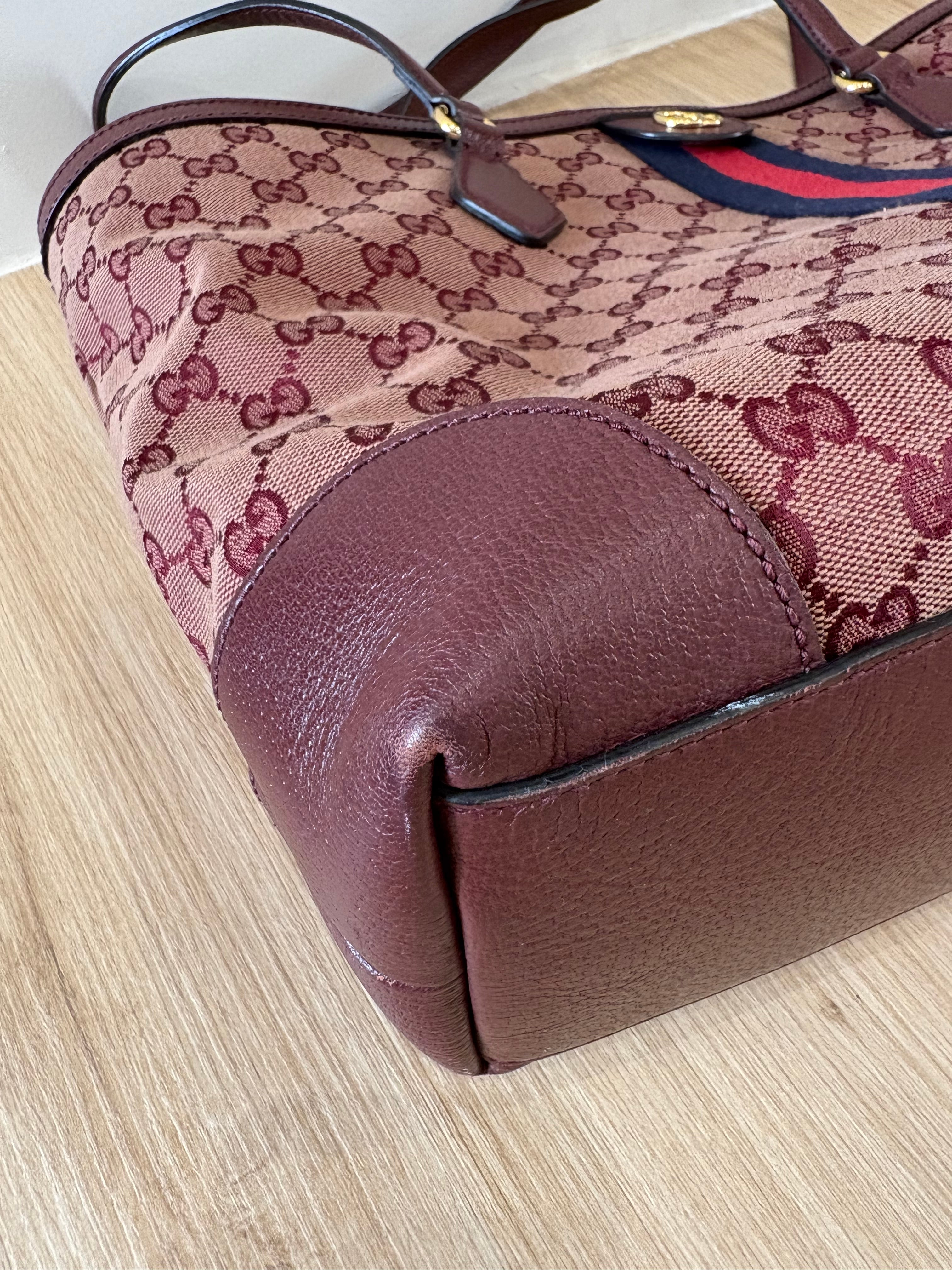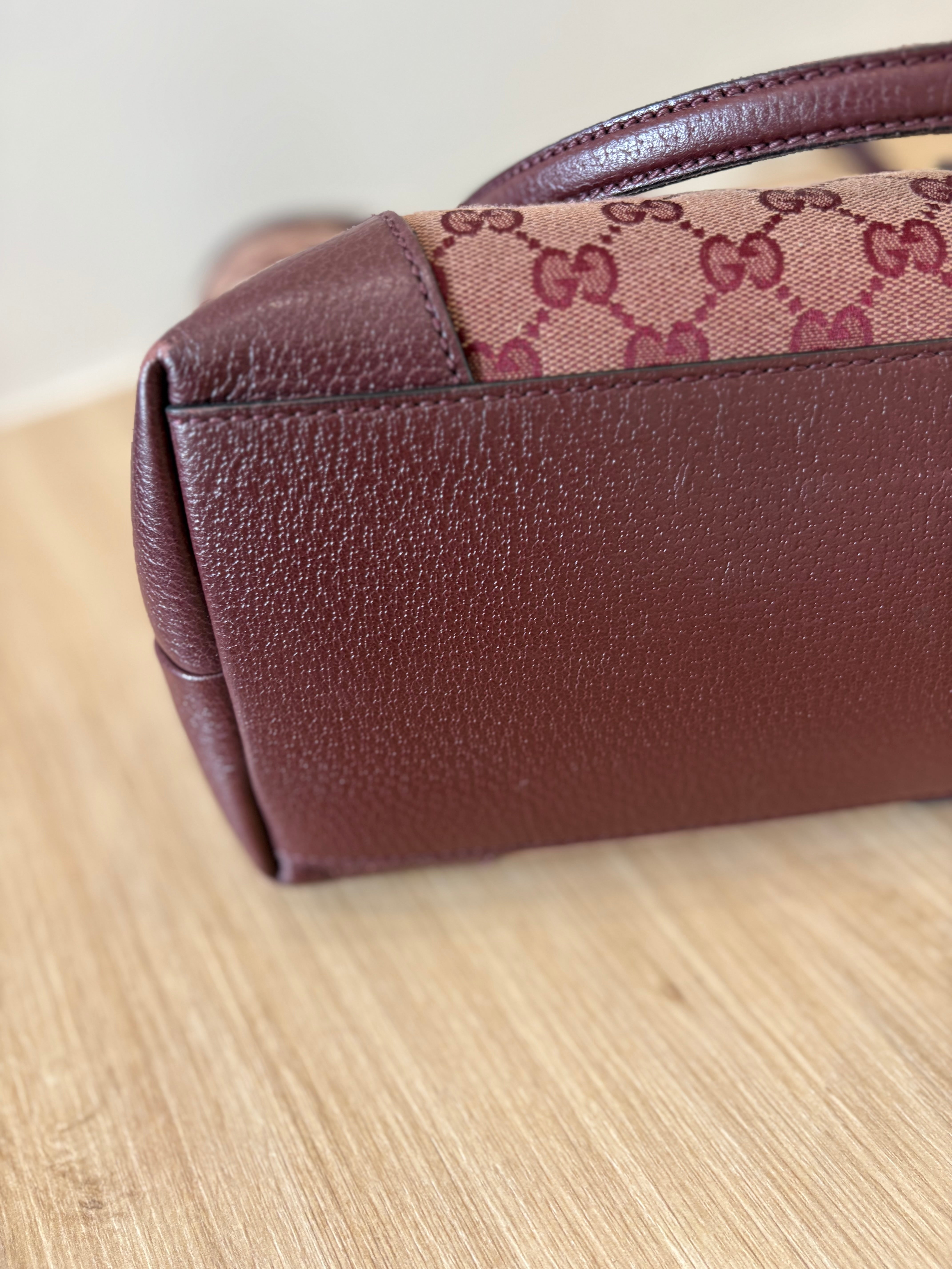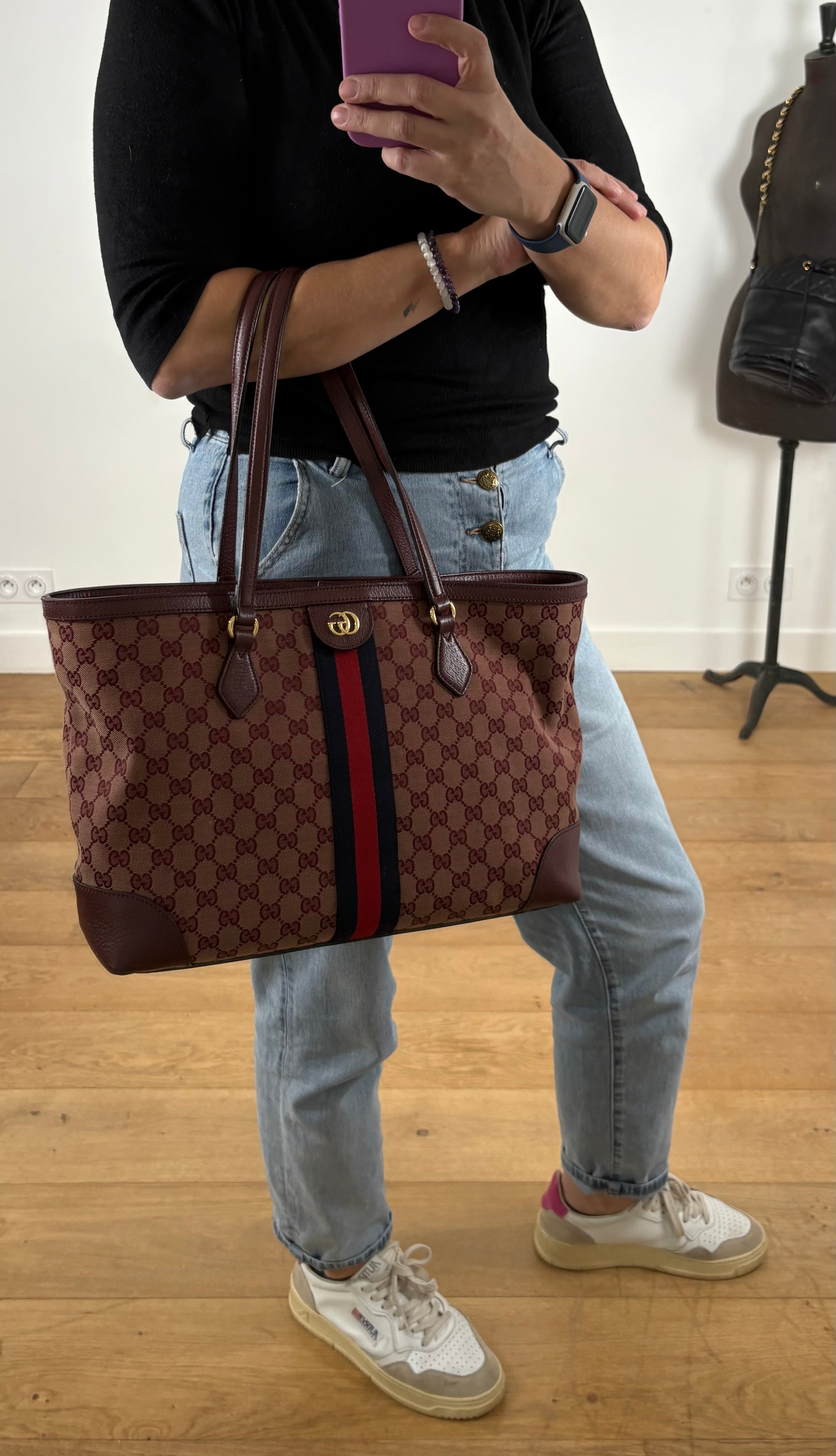 traces légères sur les angles, seul point à souligner sur le cuir du sac, facilement corrigeables par une recoloration légère.