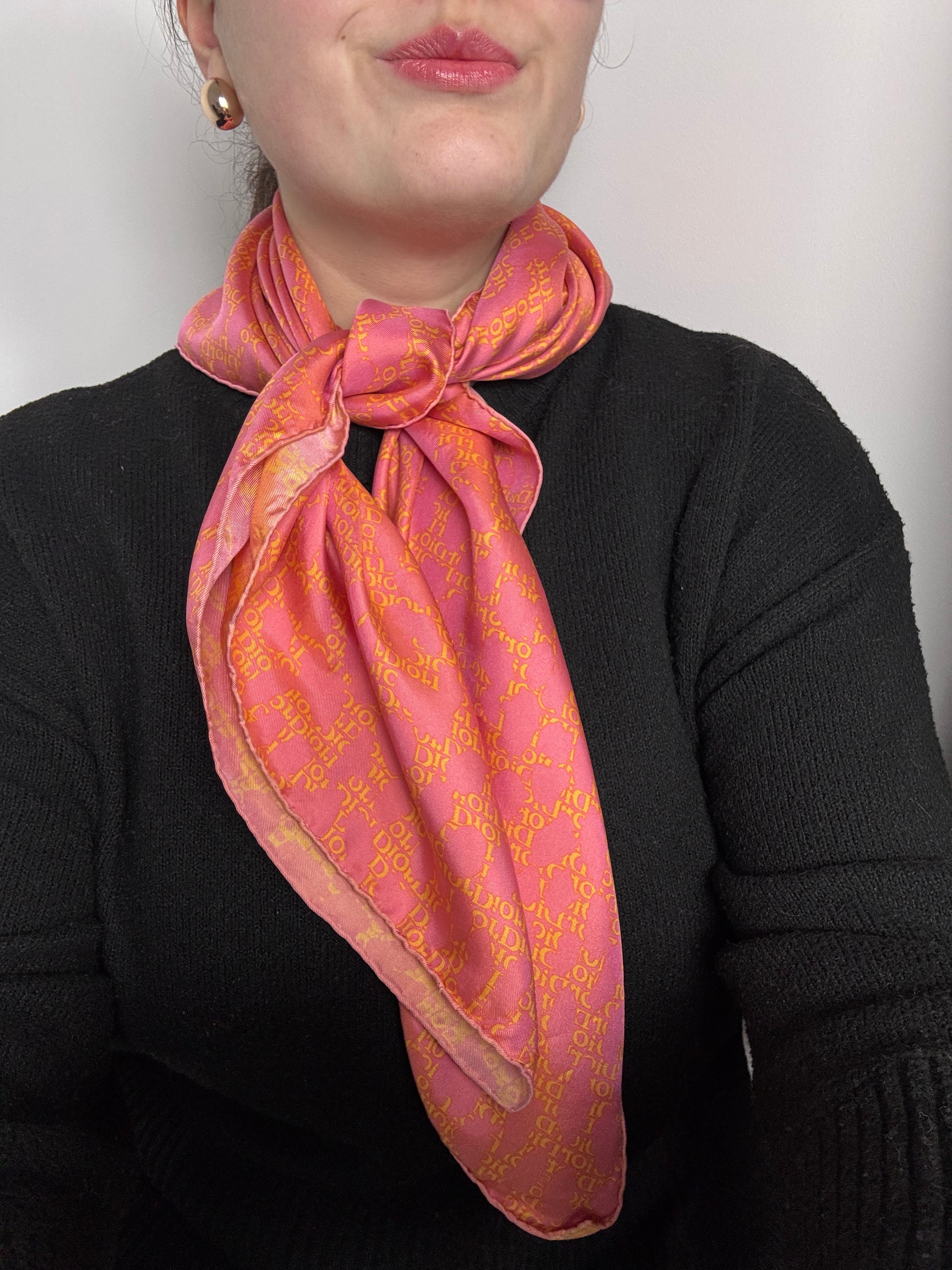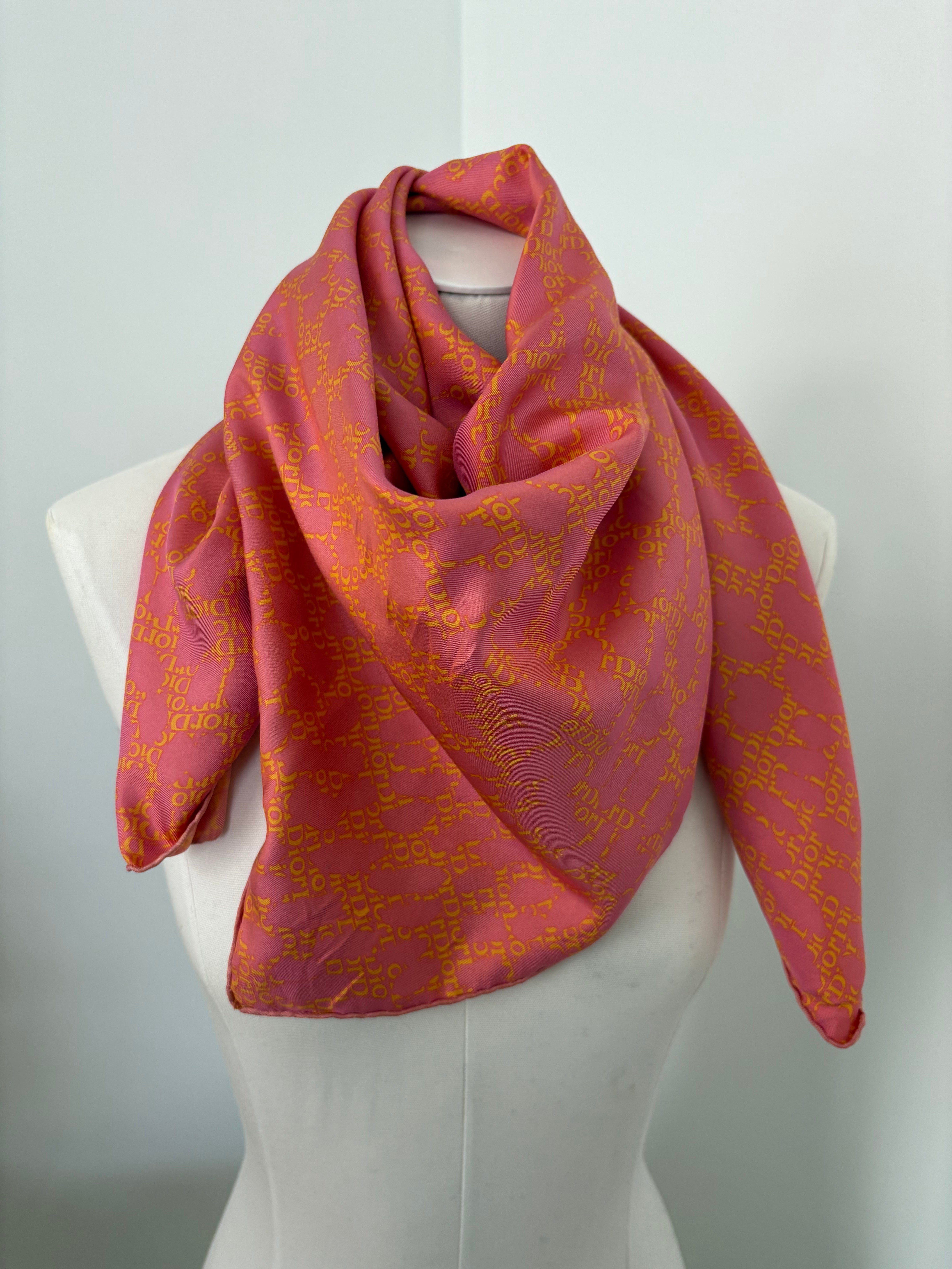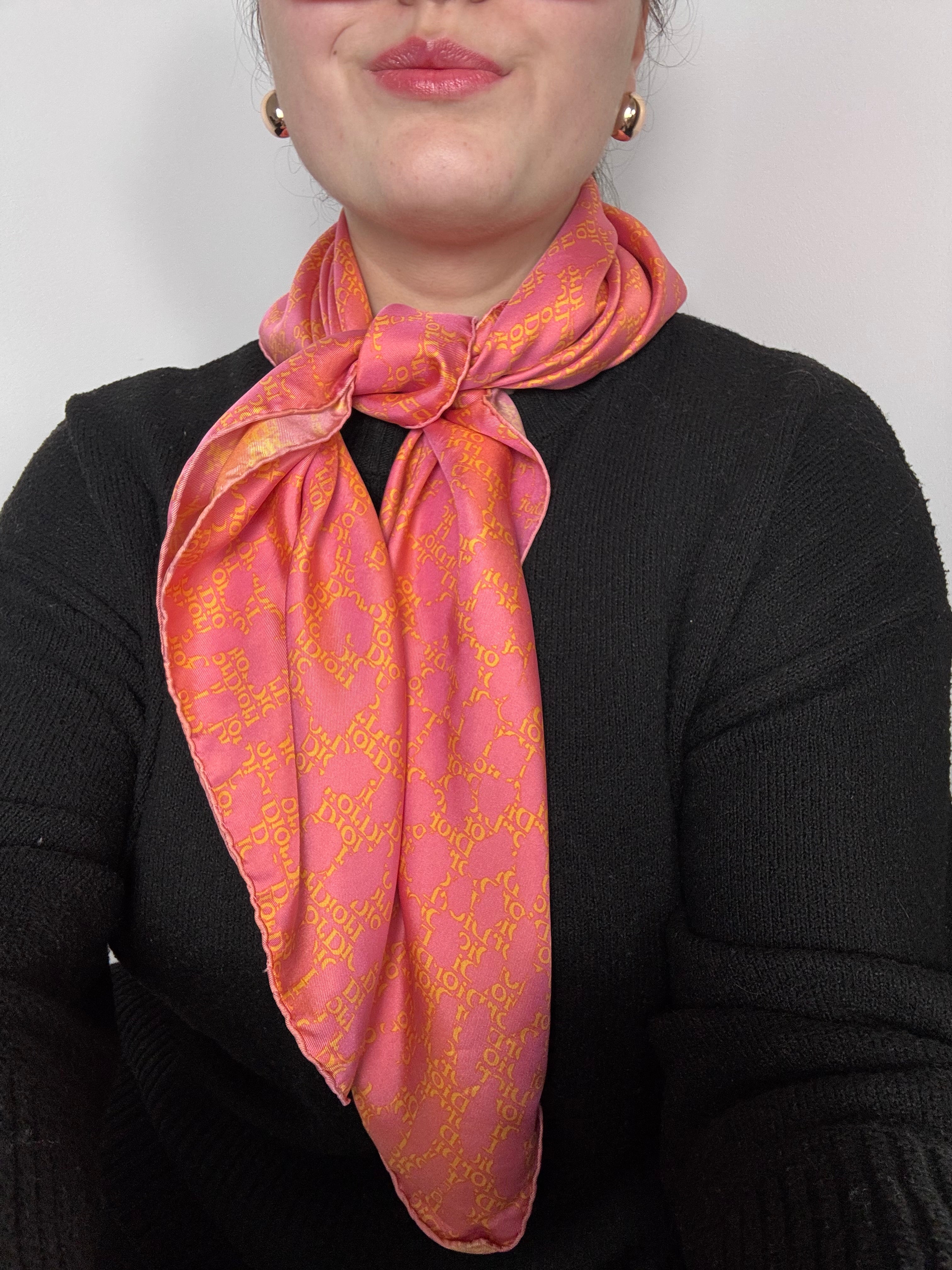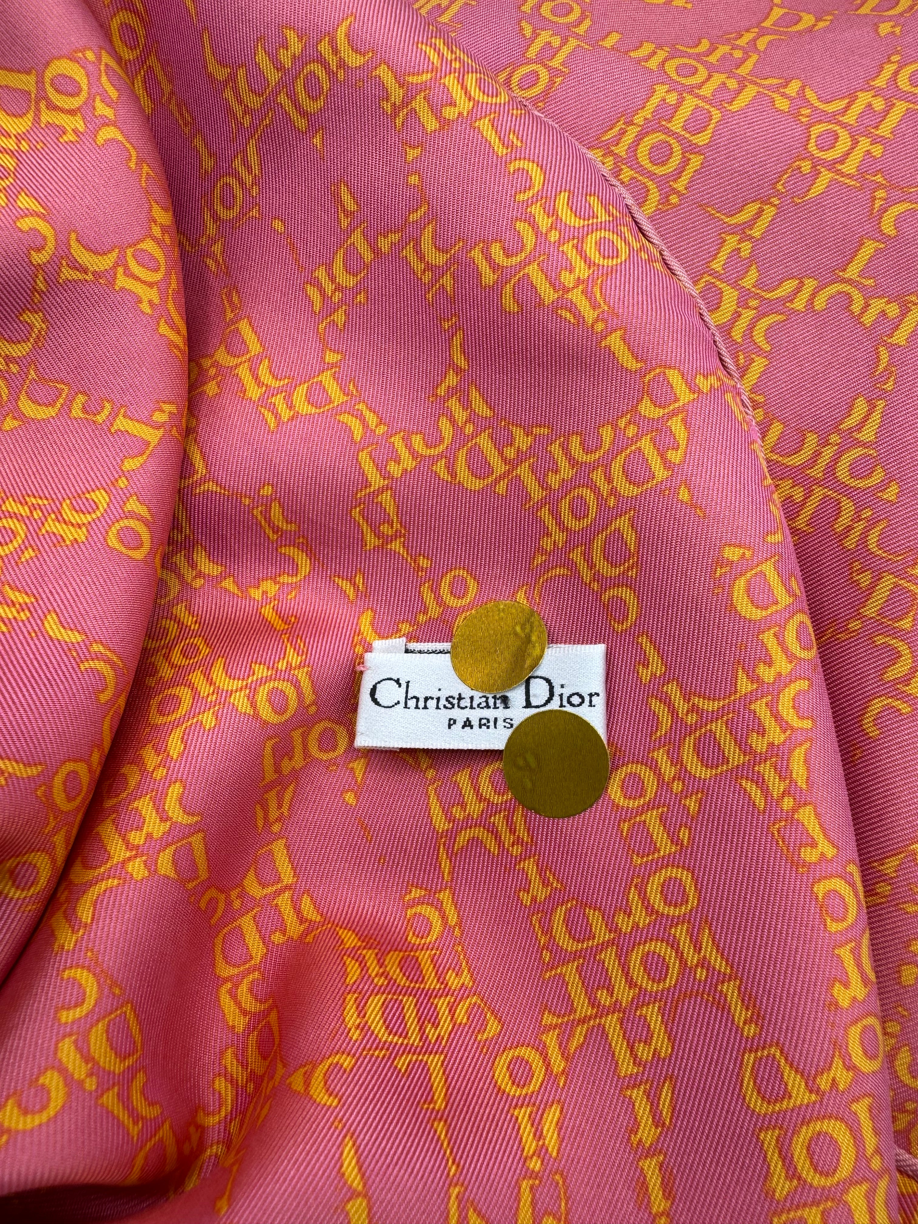 Carré Dior 100% soie en rose et jaune, dans un excellent état.