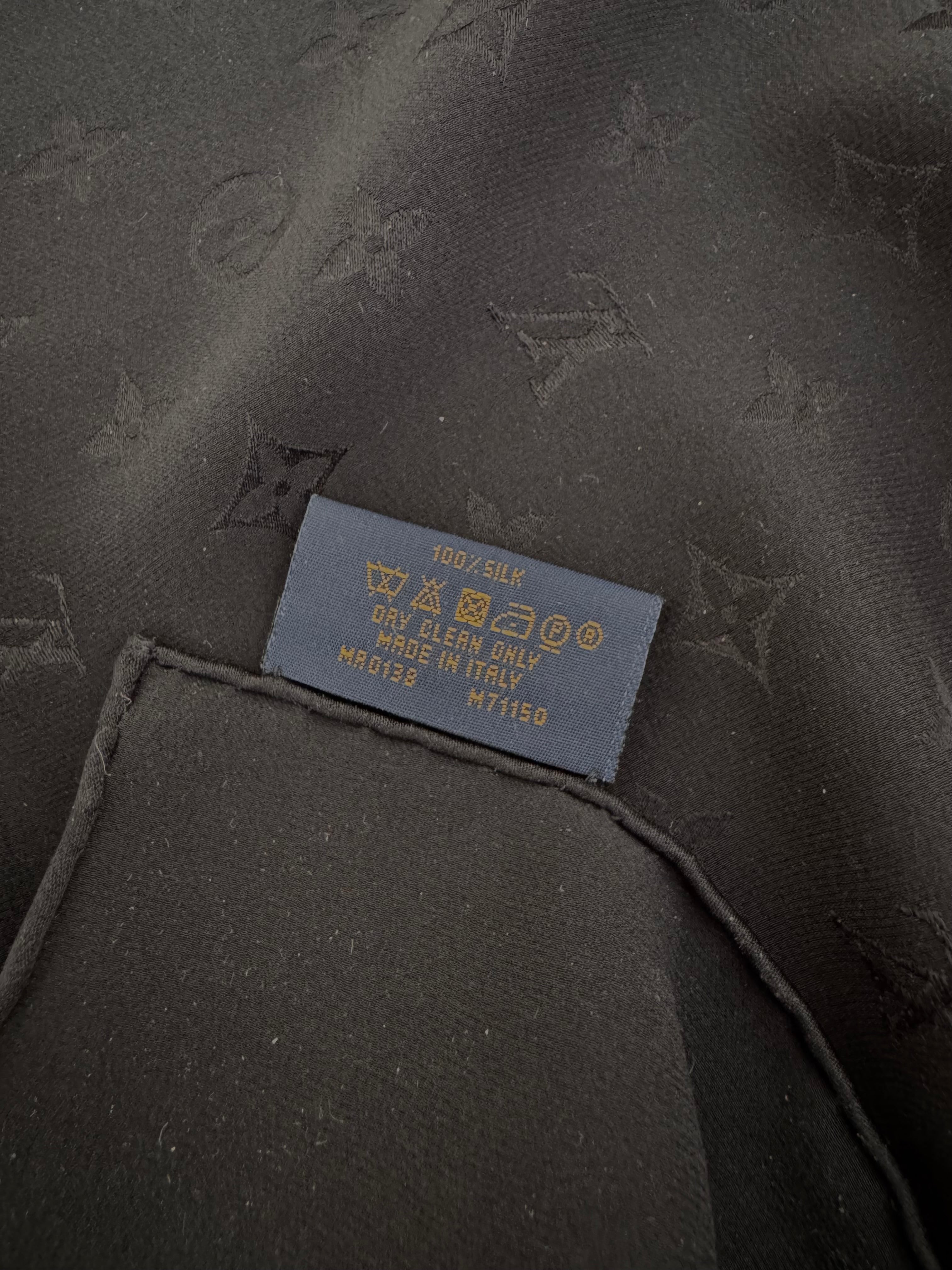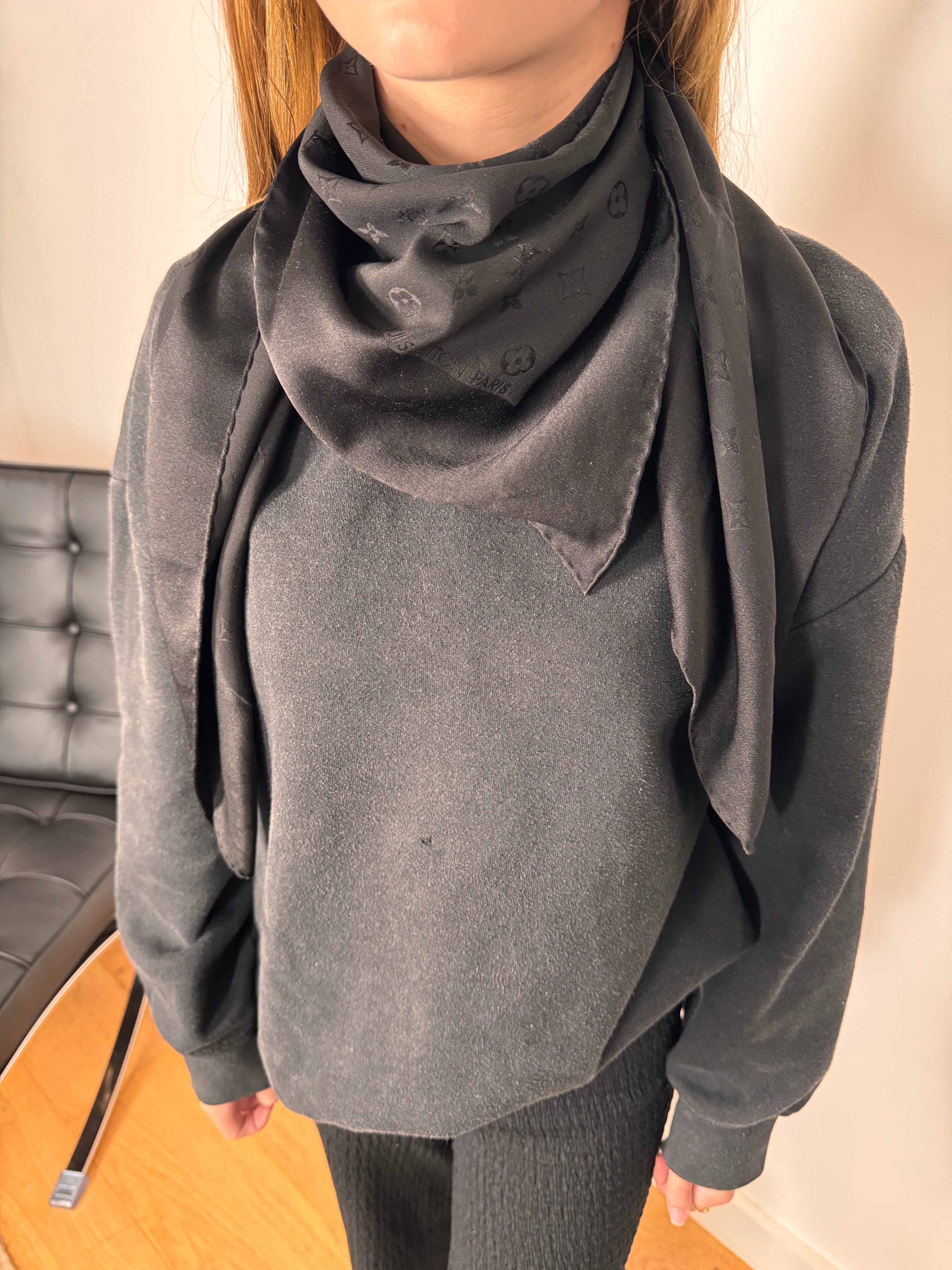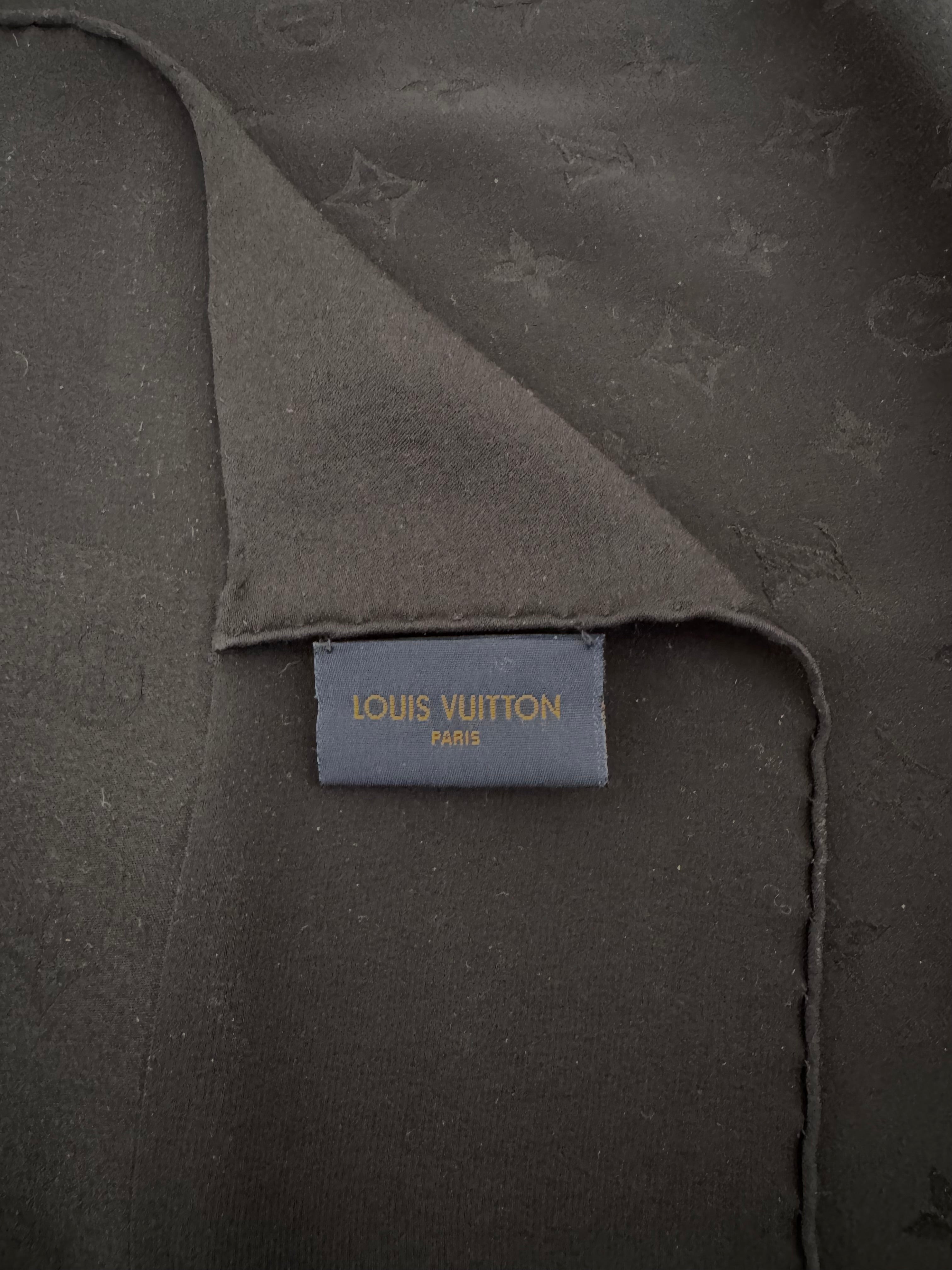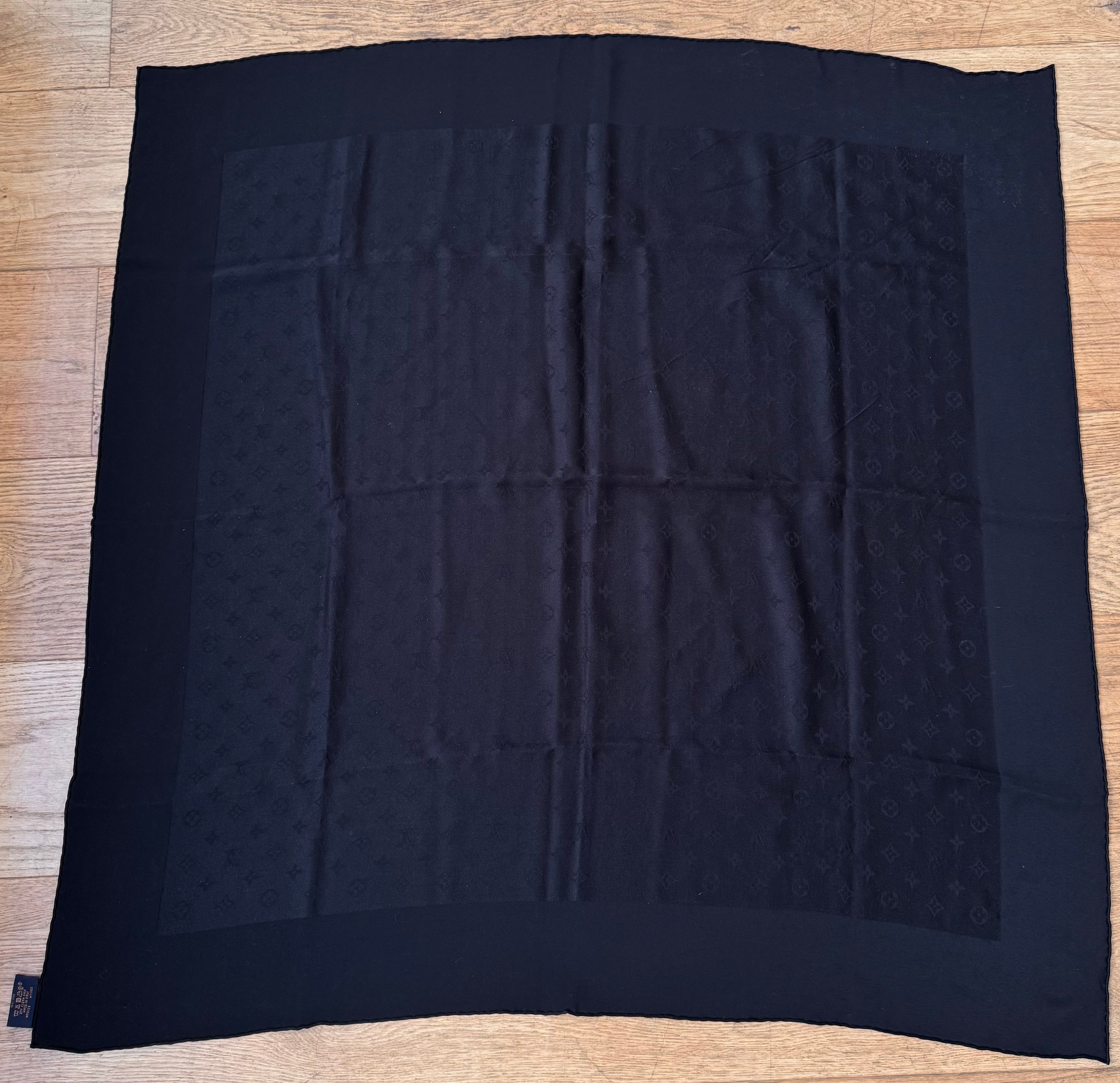 Ce Carré de soie de 90 cm monogram de chez Louis Vuitton, coloris noir est en excellent état.