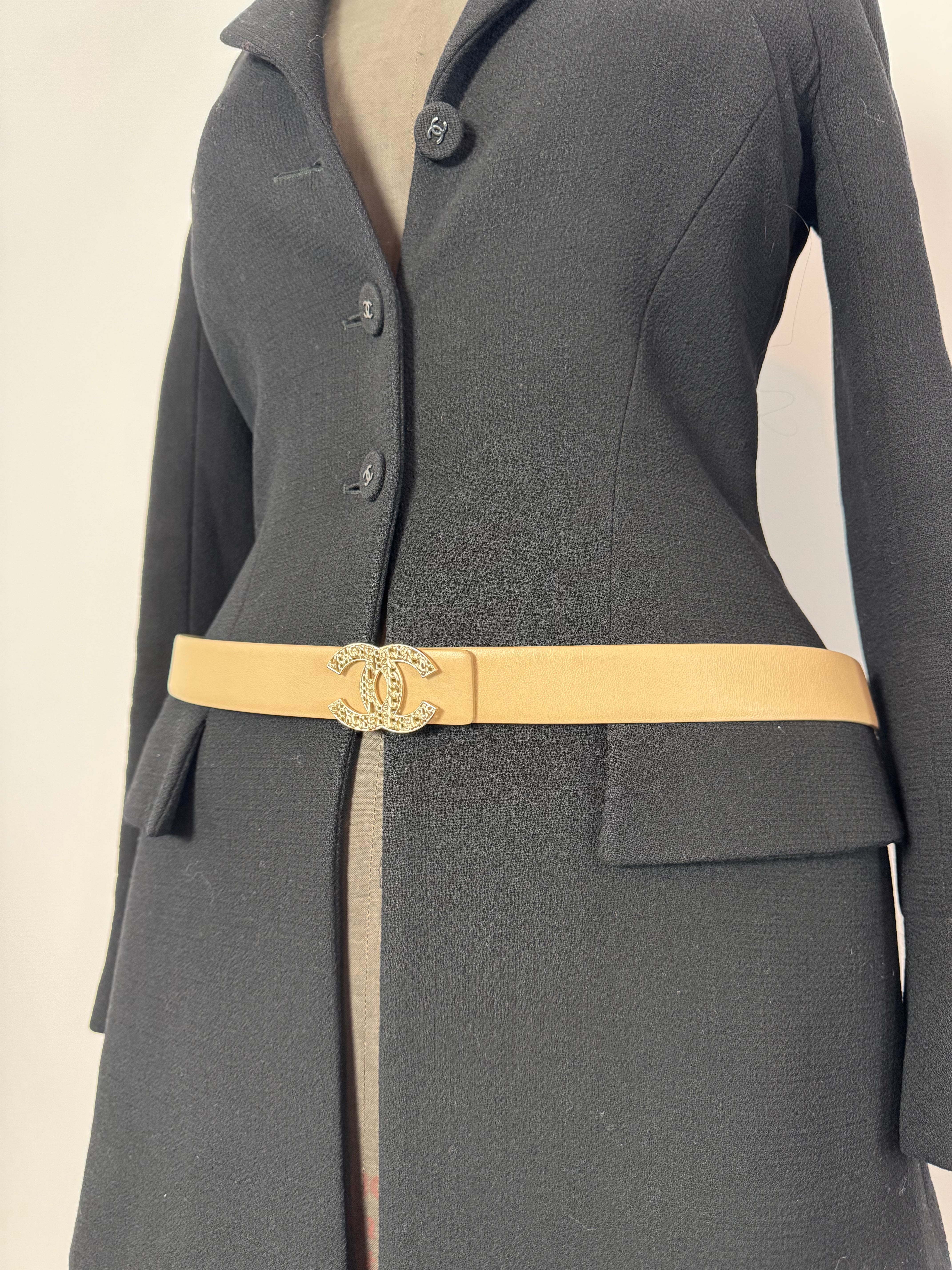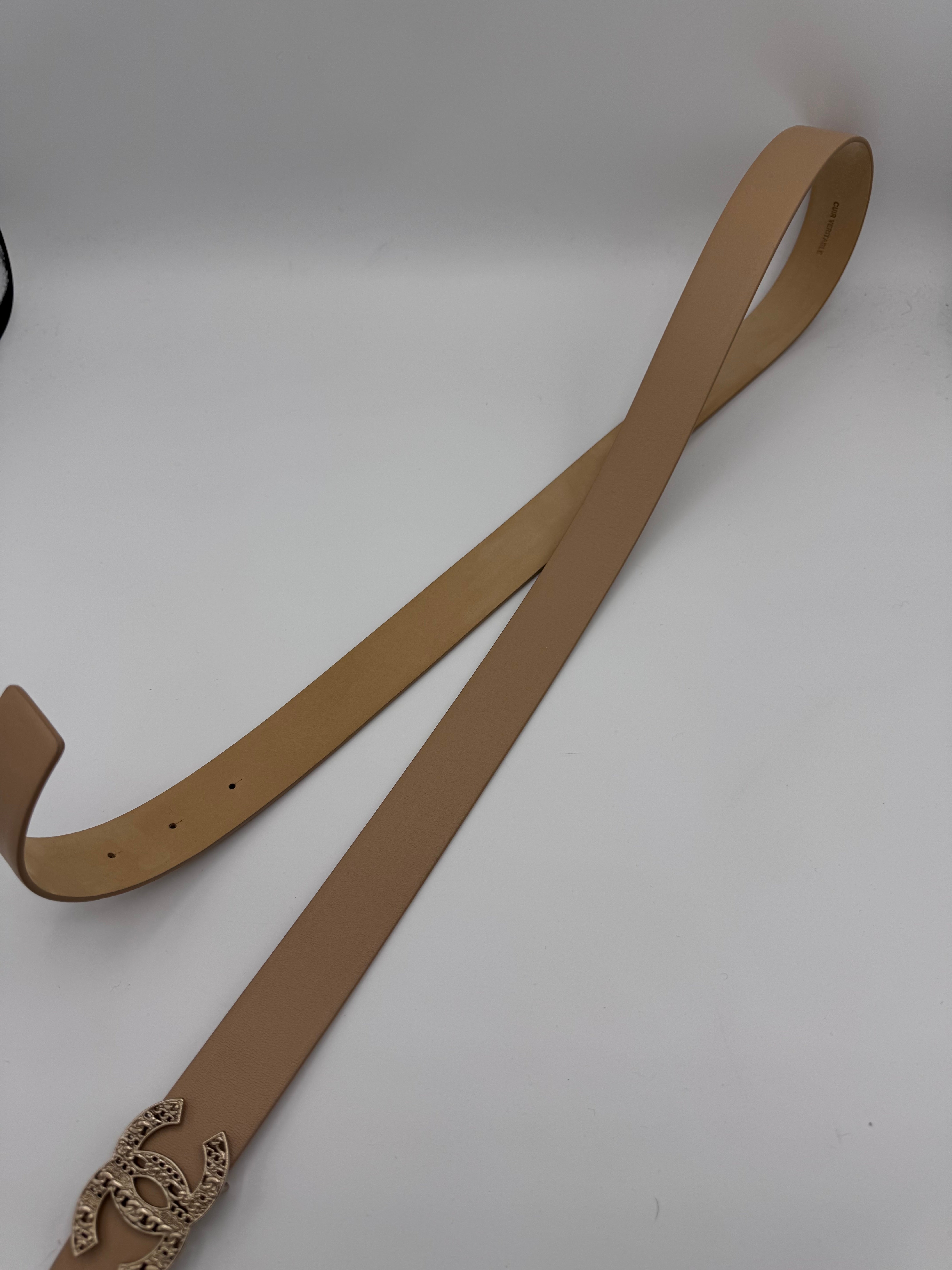 Ceinture en excellent état général, 100cm de longueur maximum, ajustable grâce aux trois trous présents sur la ceinture.