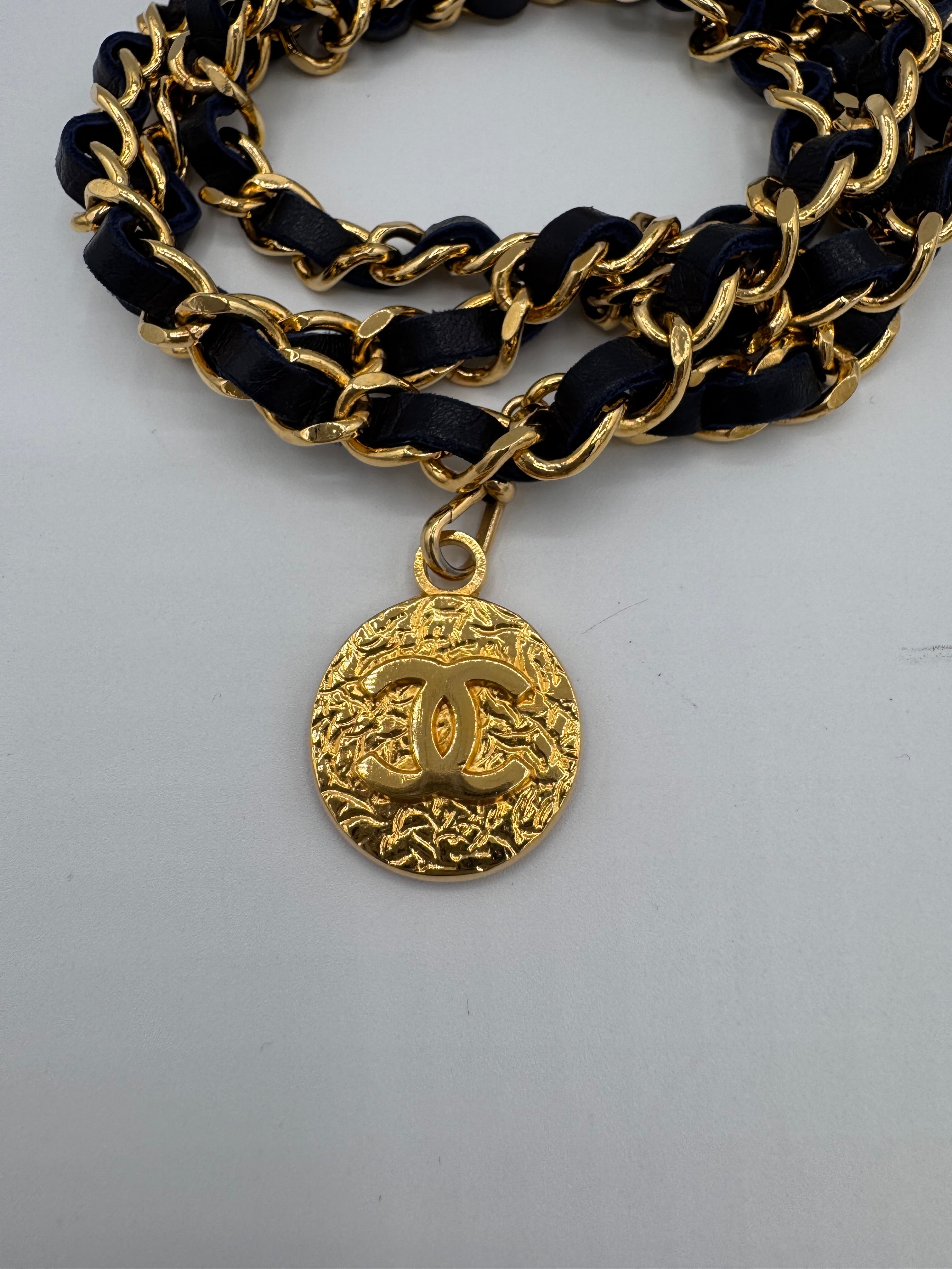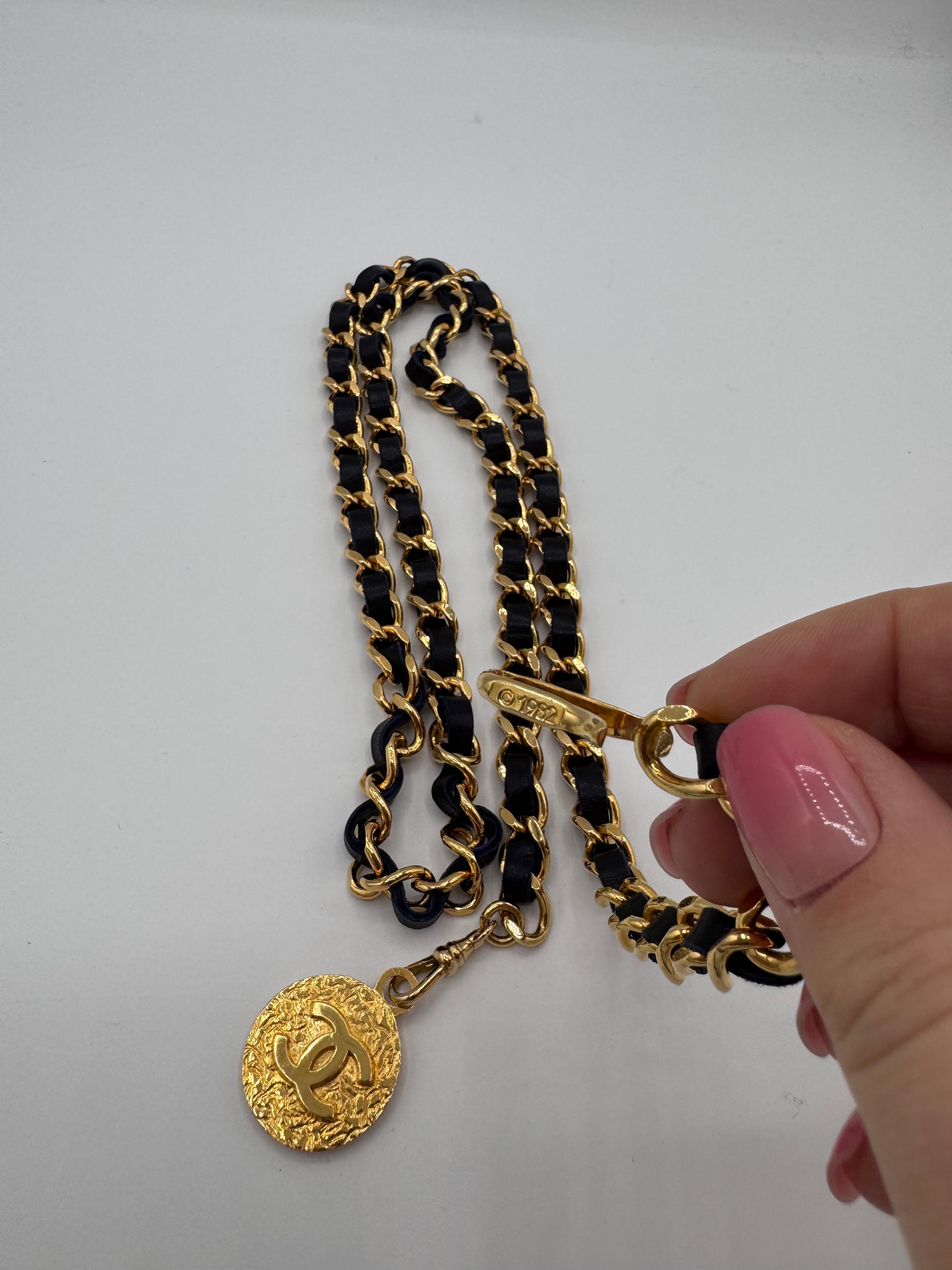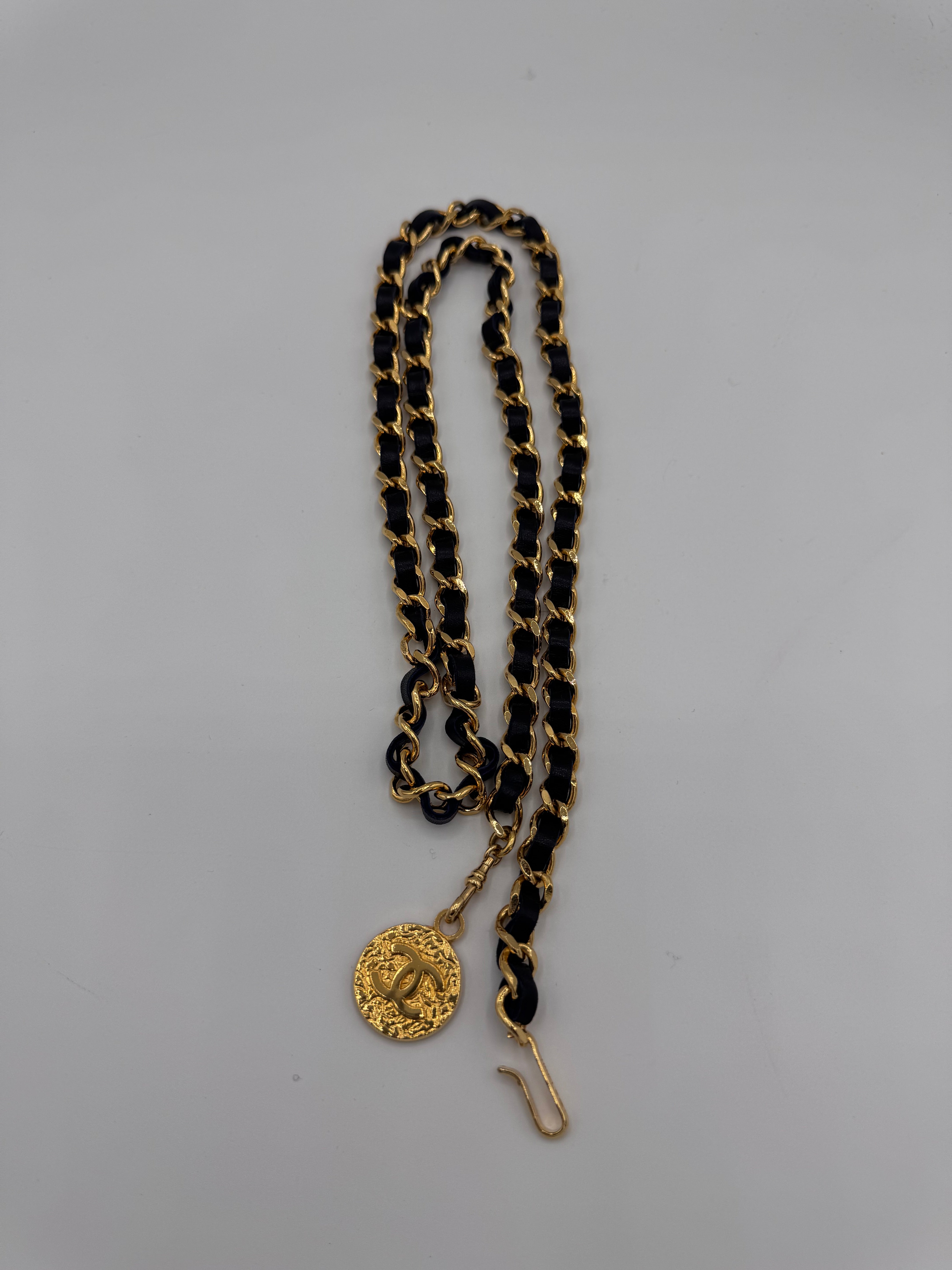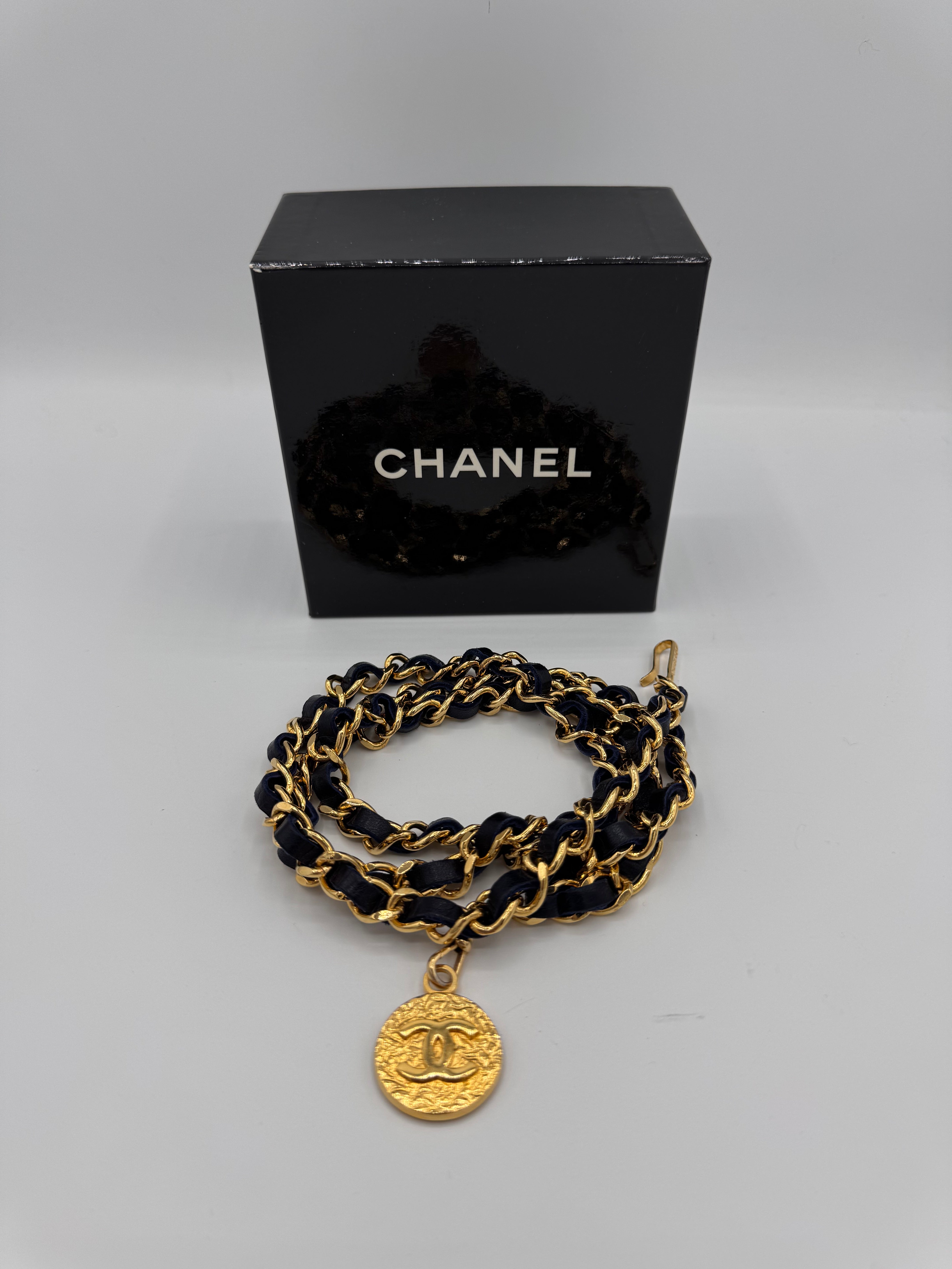 Ceinture Chanel Vintage en excellent état général, 95cm de longueur maximum, ajustable grâce au crochet.
