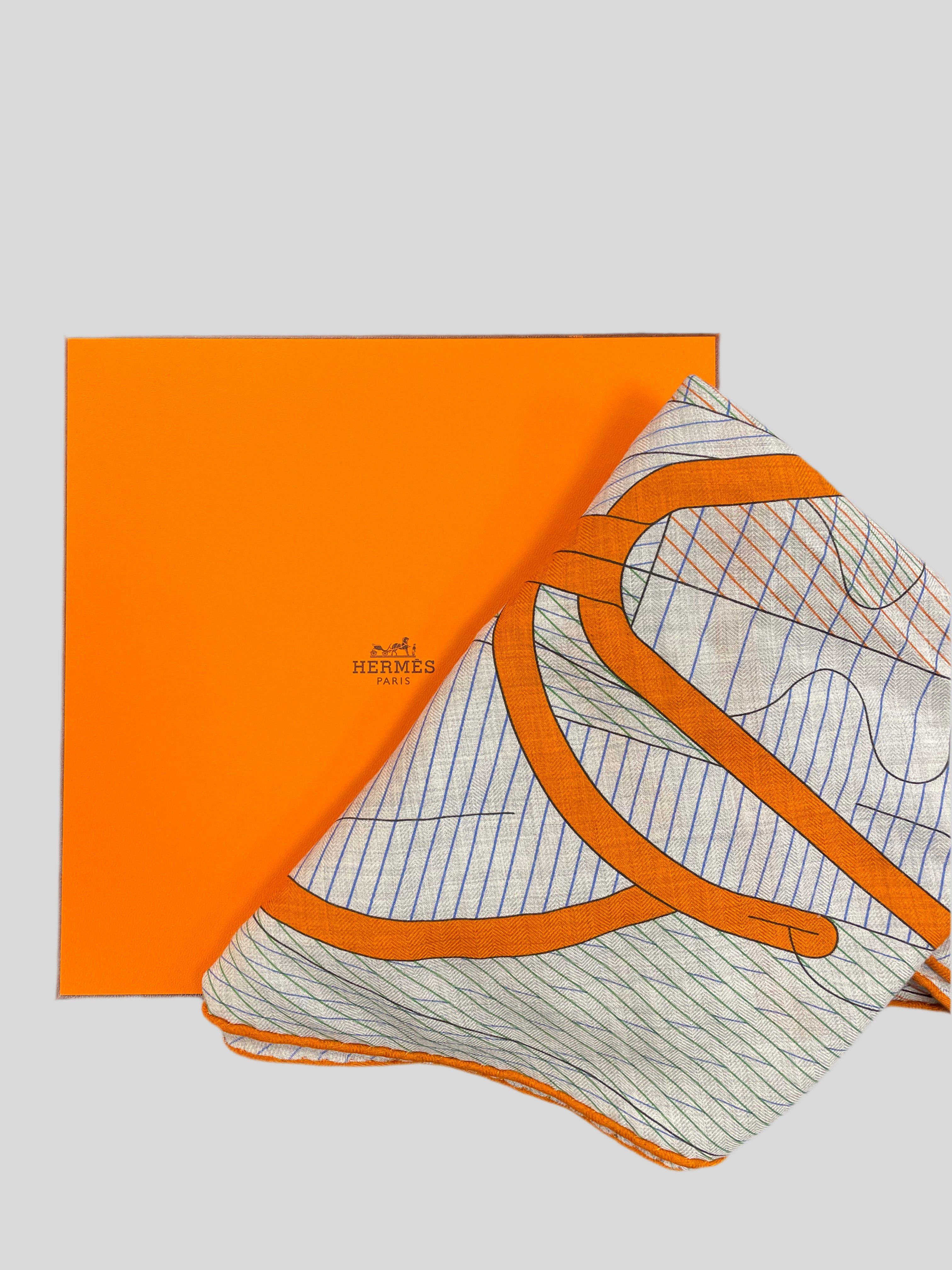 Châle losange Hermès en excellent état. 30% soie et 70% cachemire.Fourni avec boîte.
