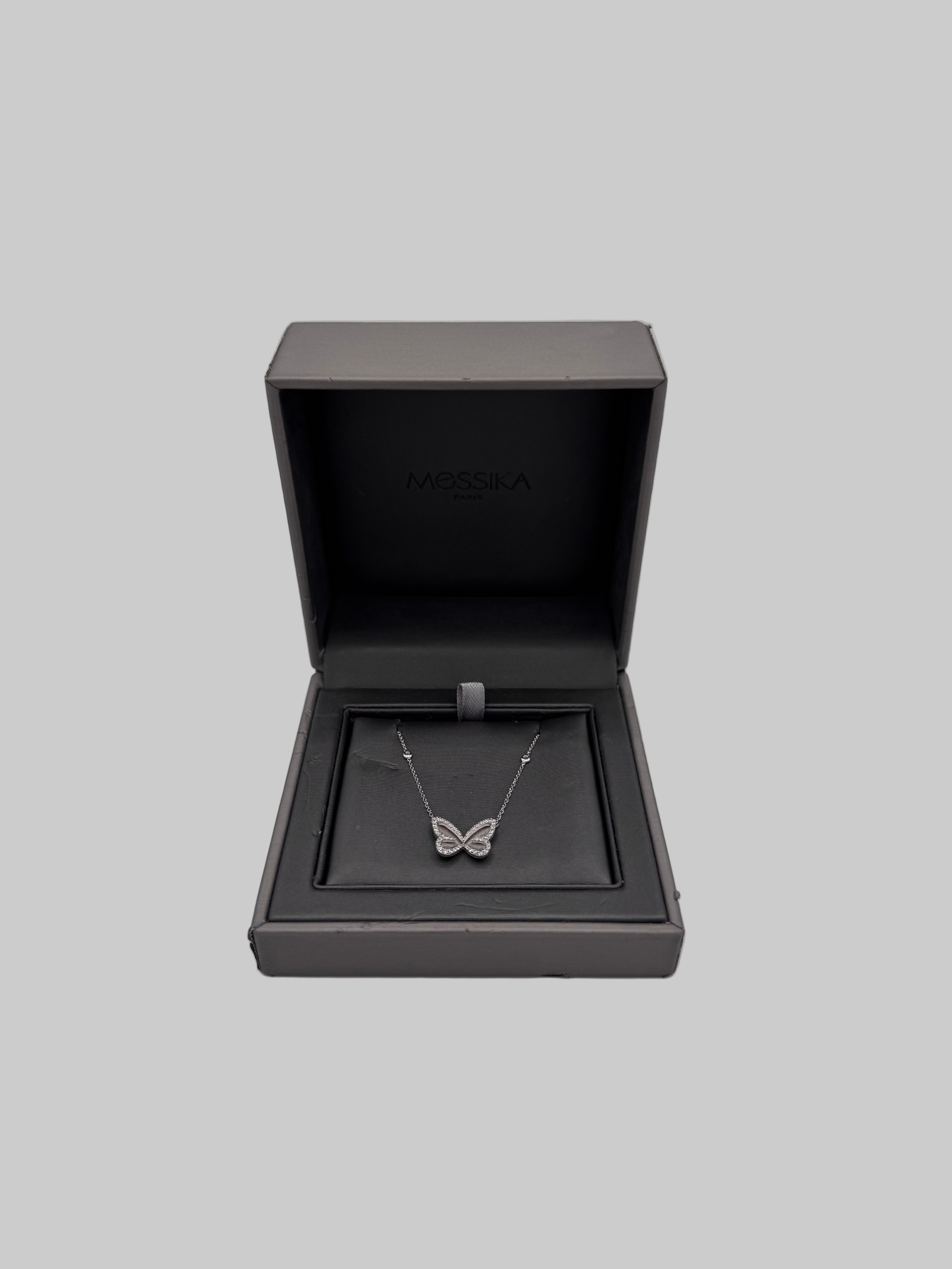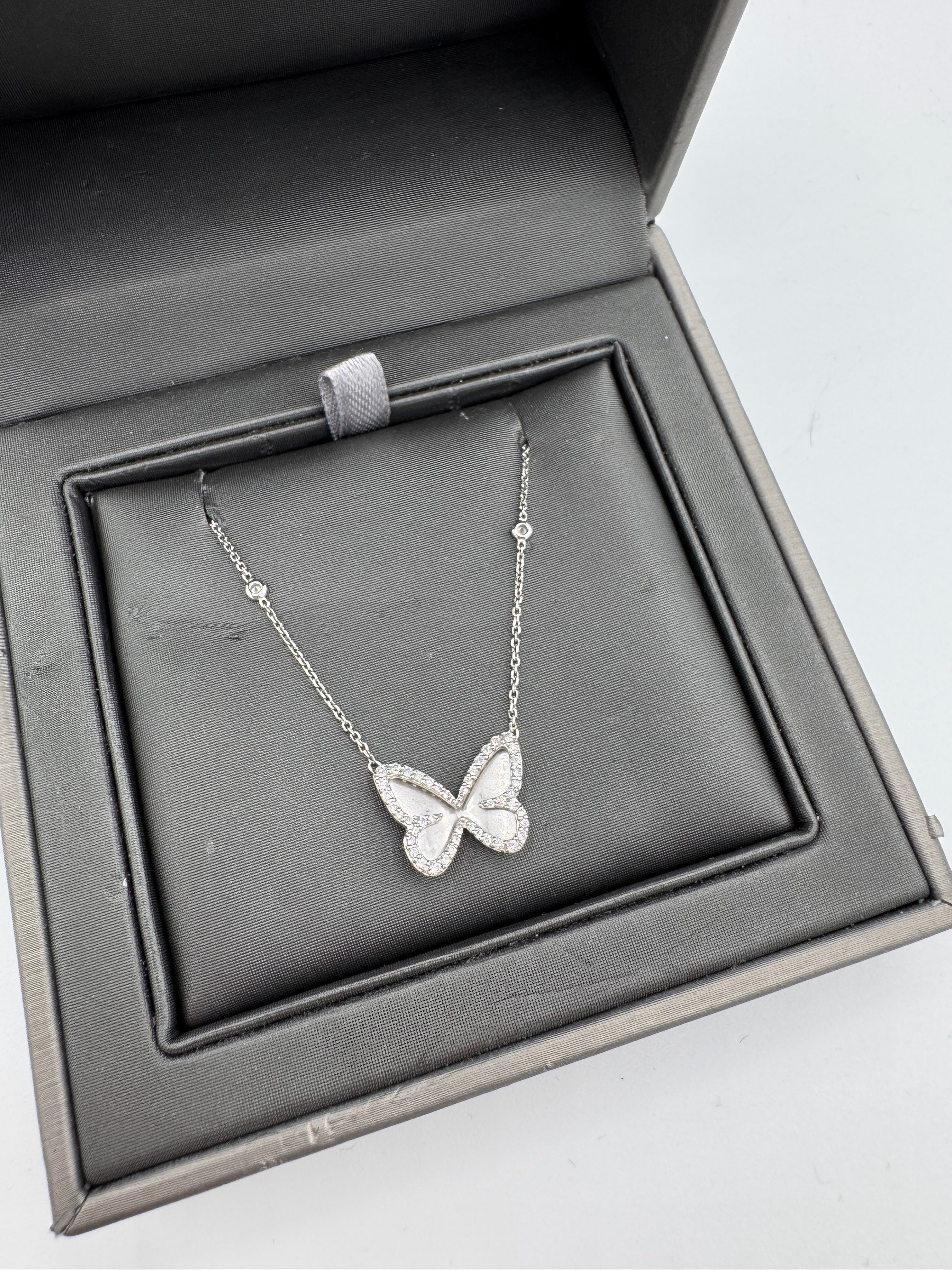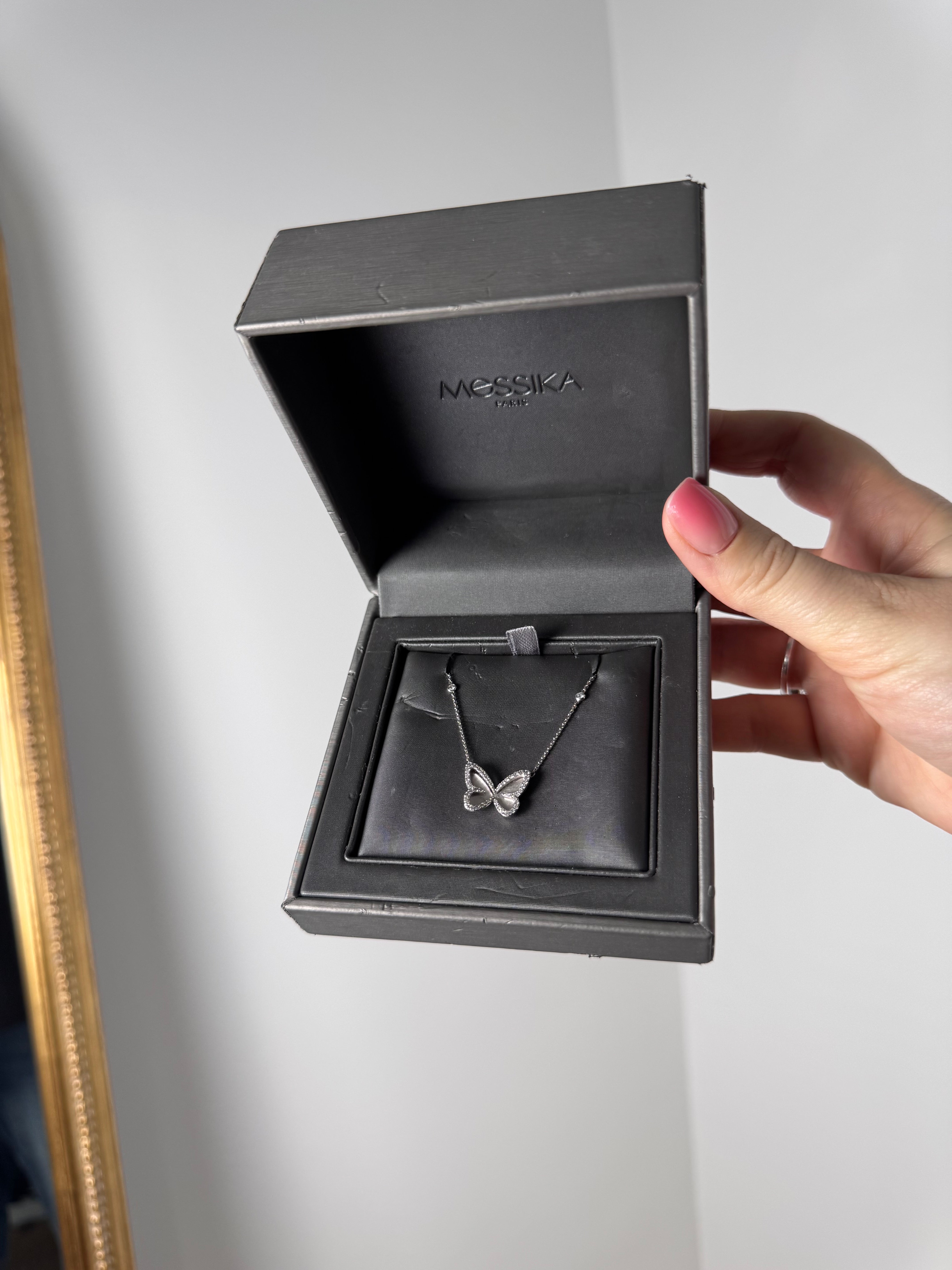 Collier Messika Butterfly en or blanc et diamant en très bon état.