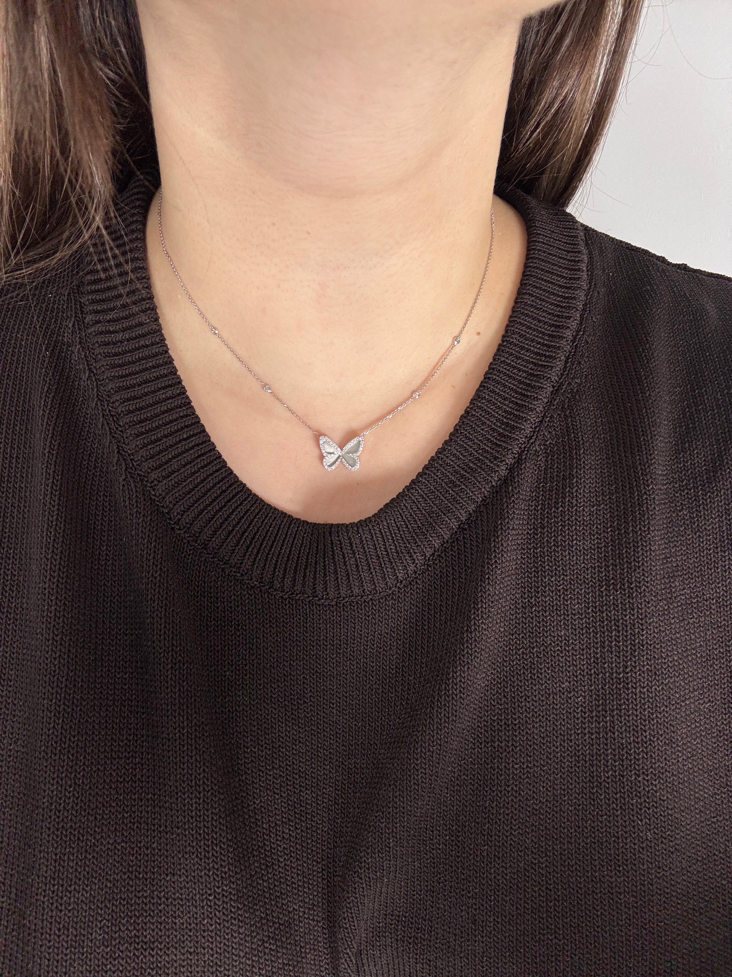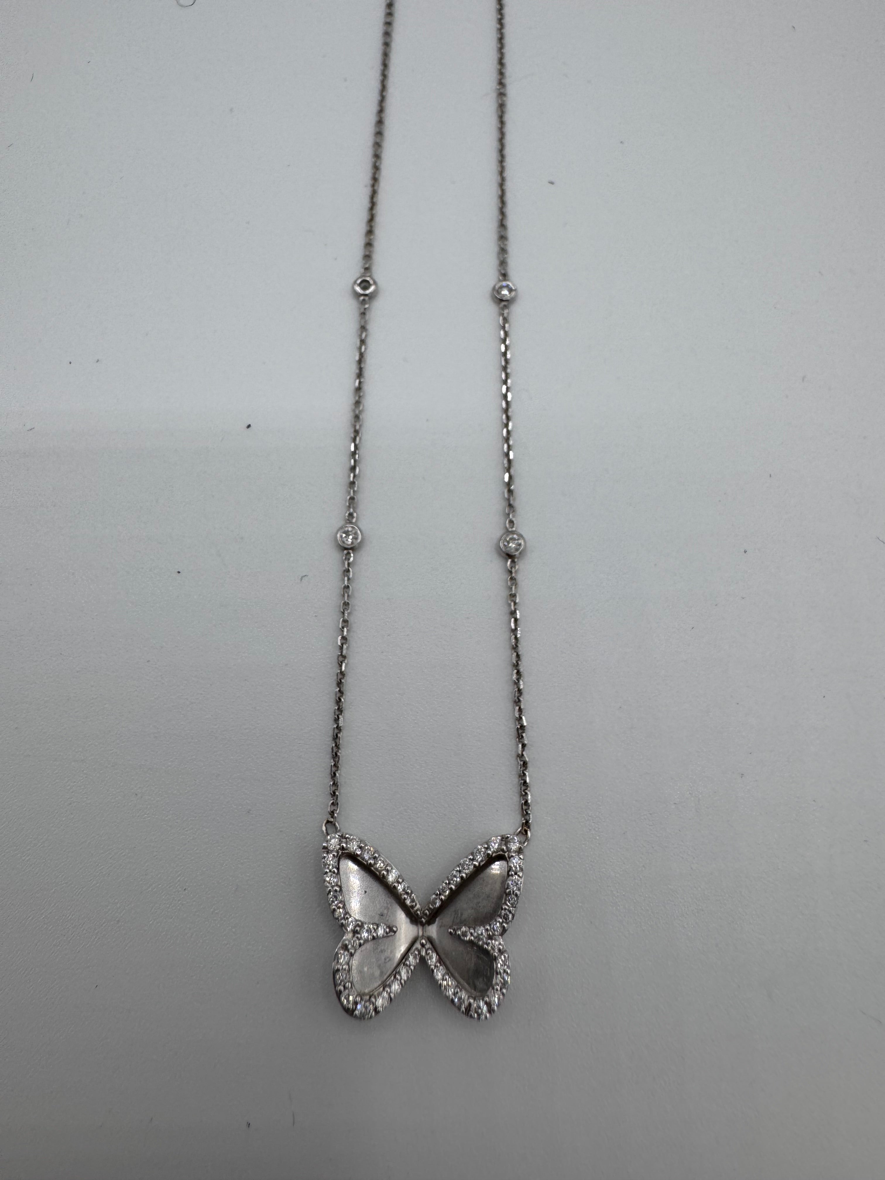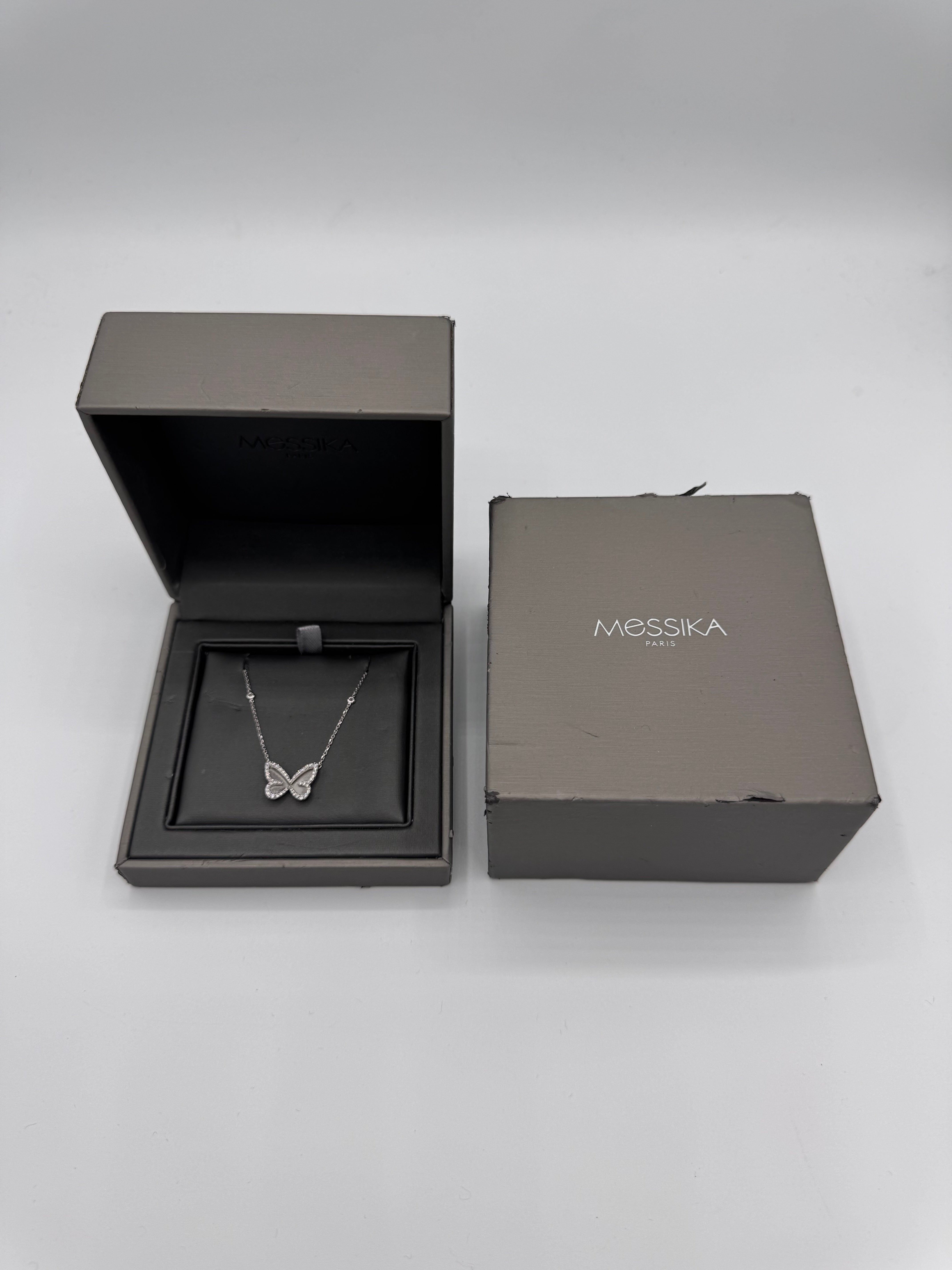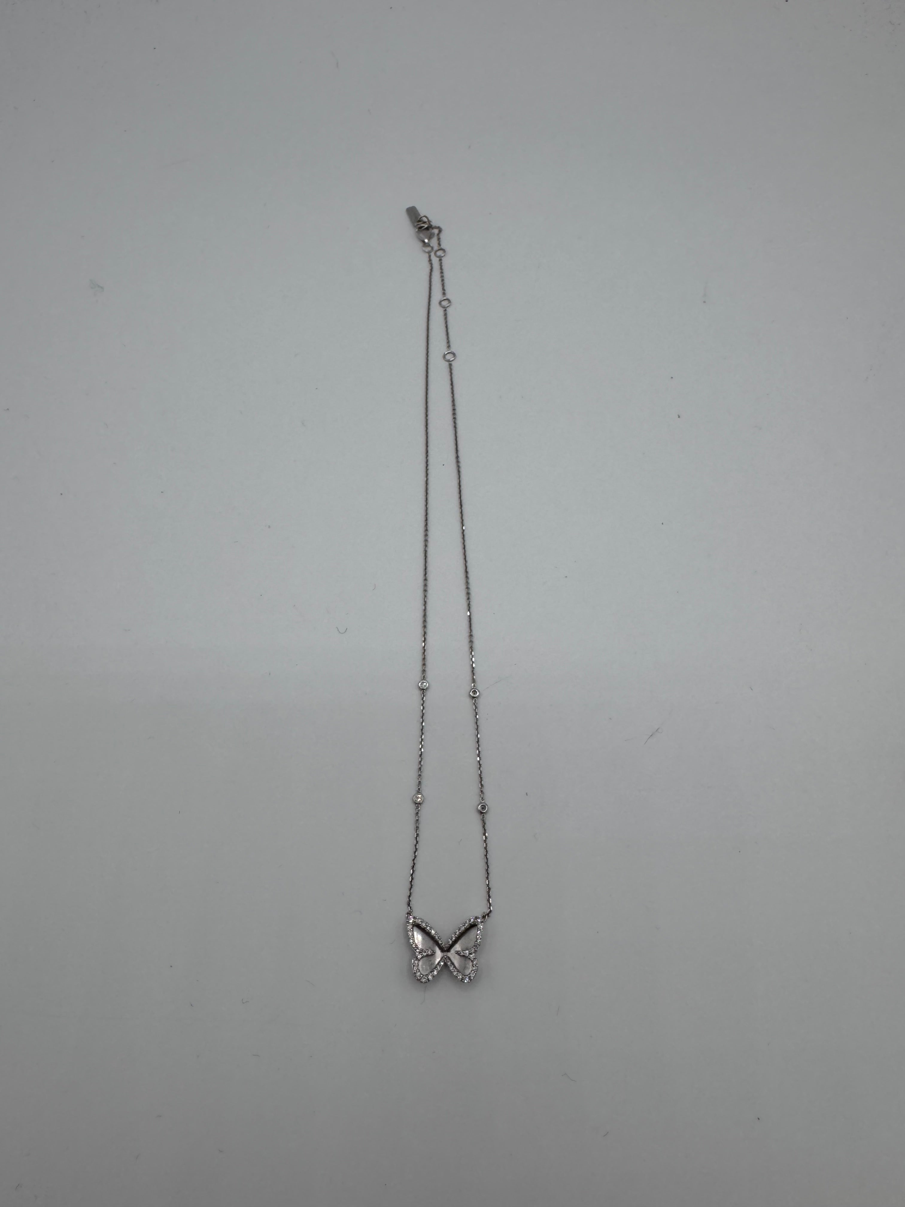 Collier Messika Butterfly en or blanc et diamant en très bon état.