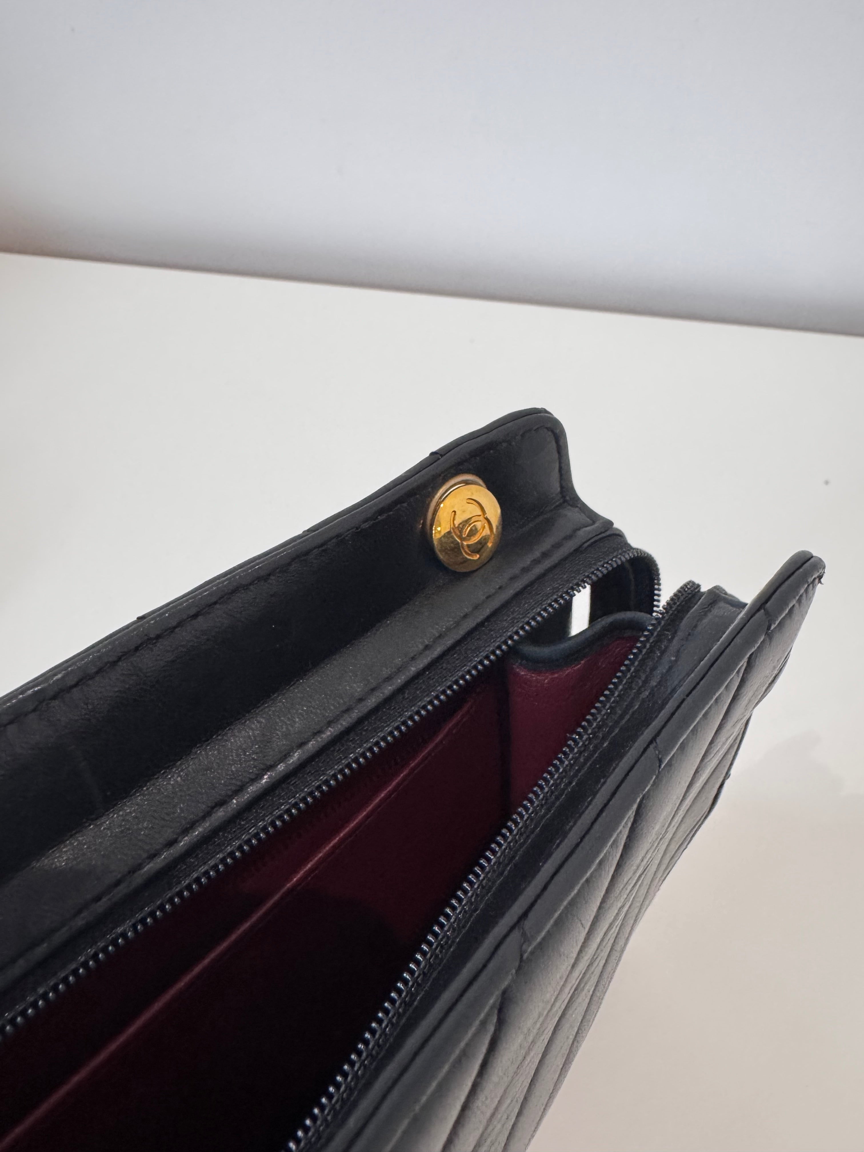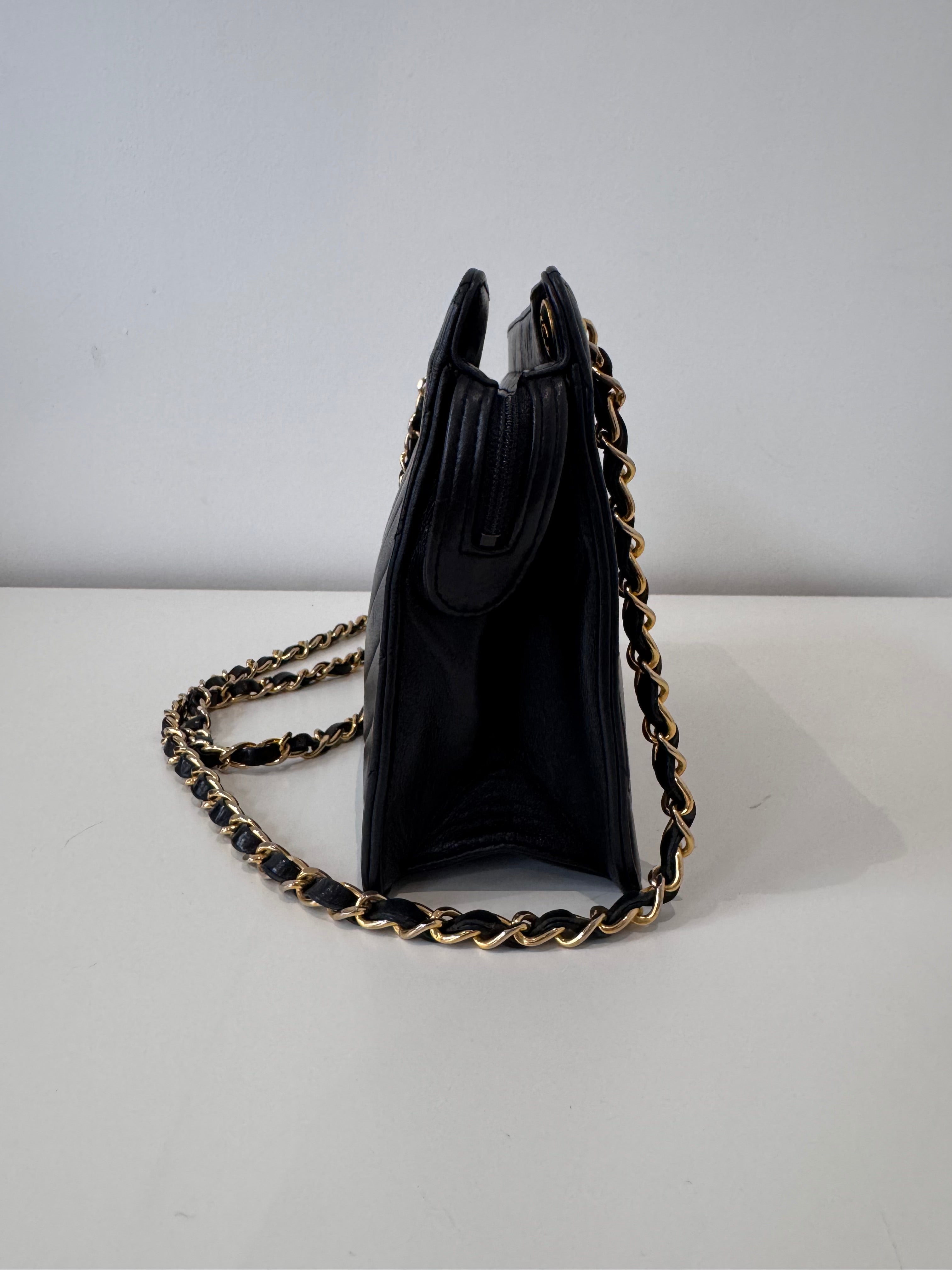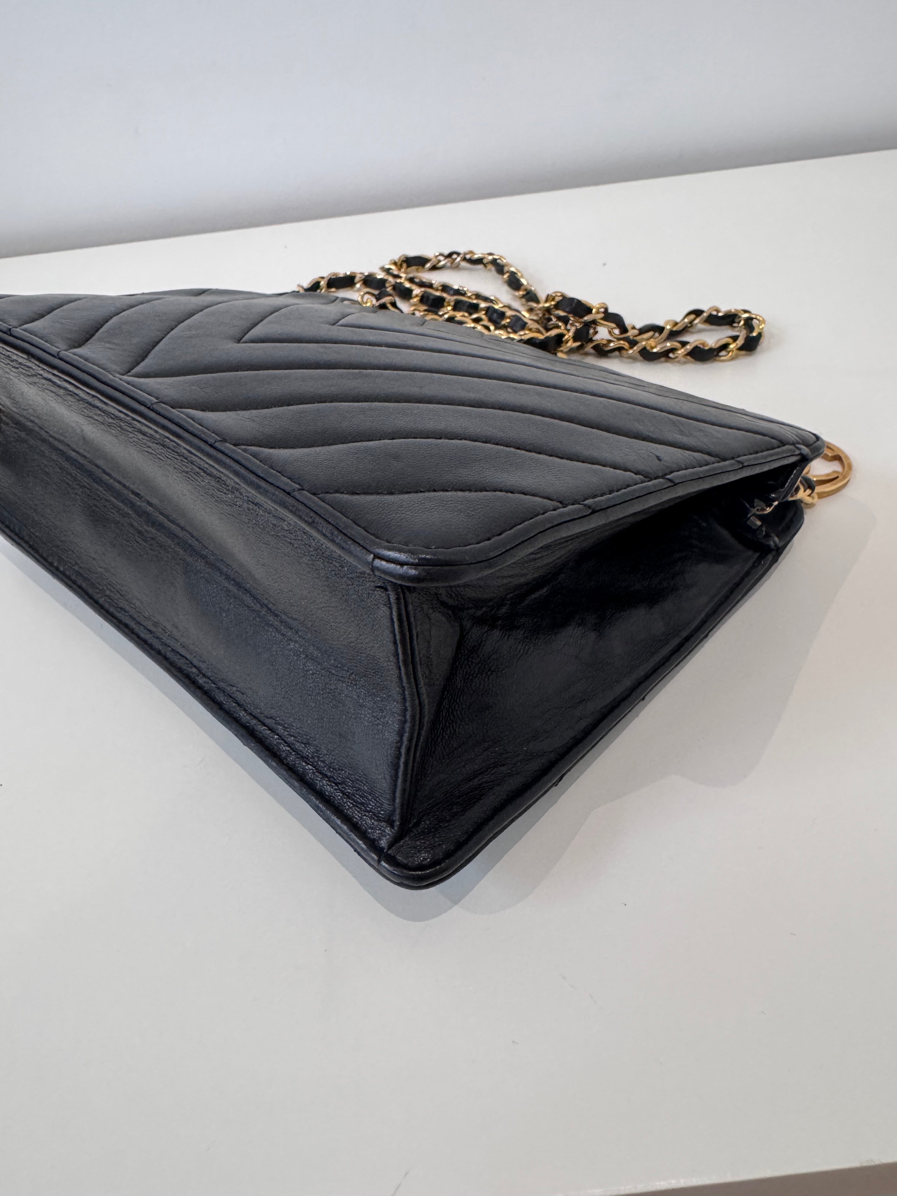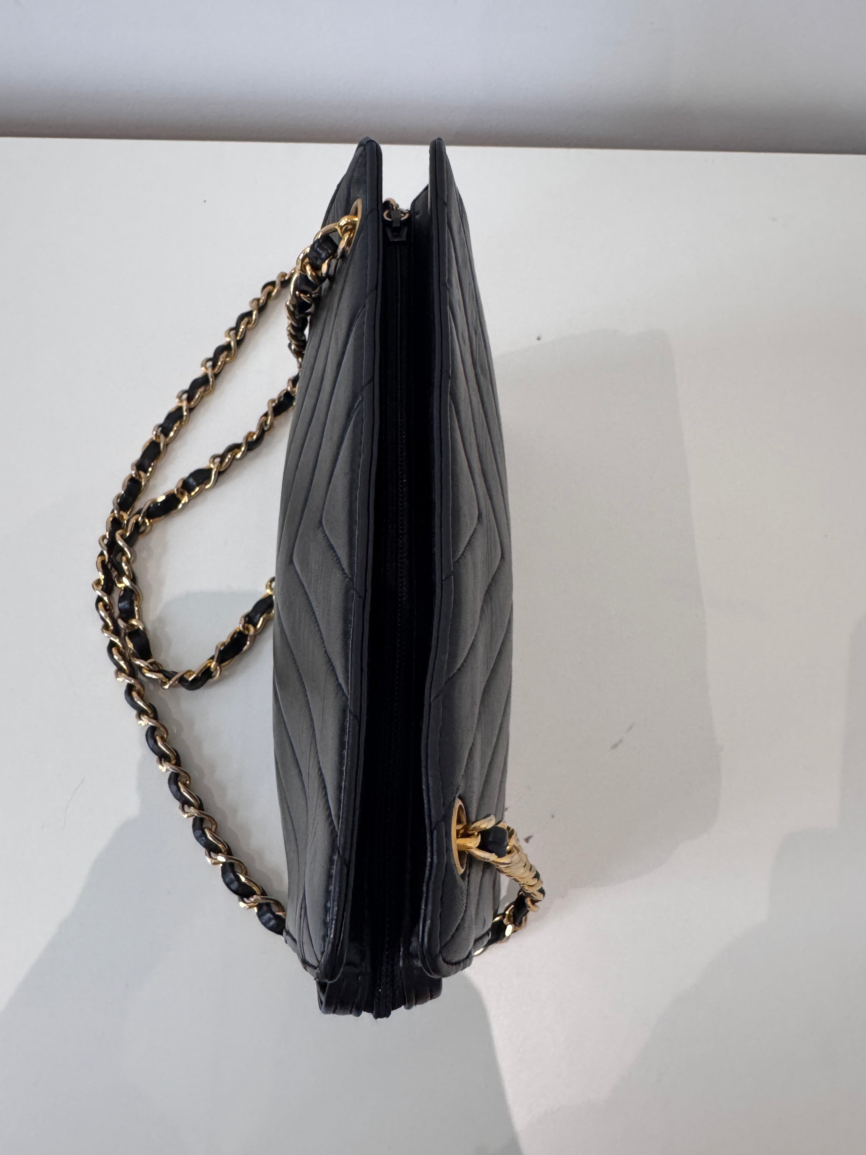 Sac caméra à motifs chevrons en cuir de veau noir en très bon état.