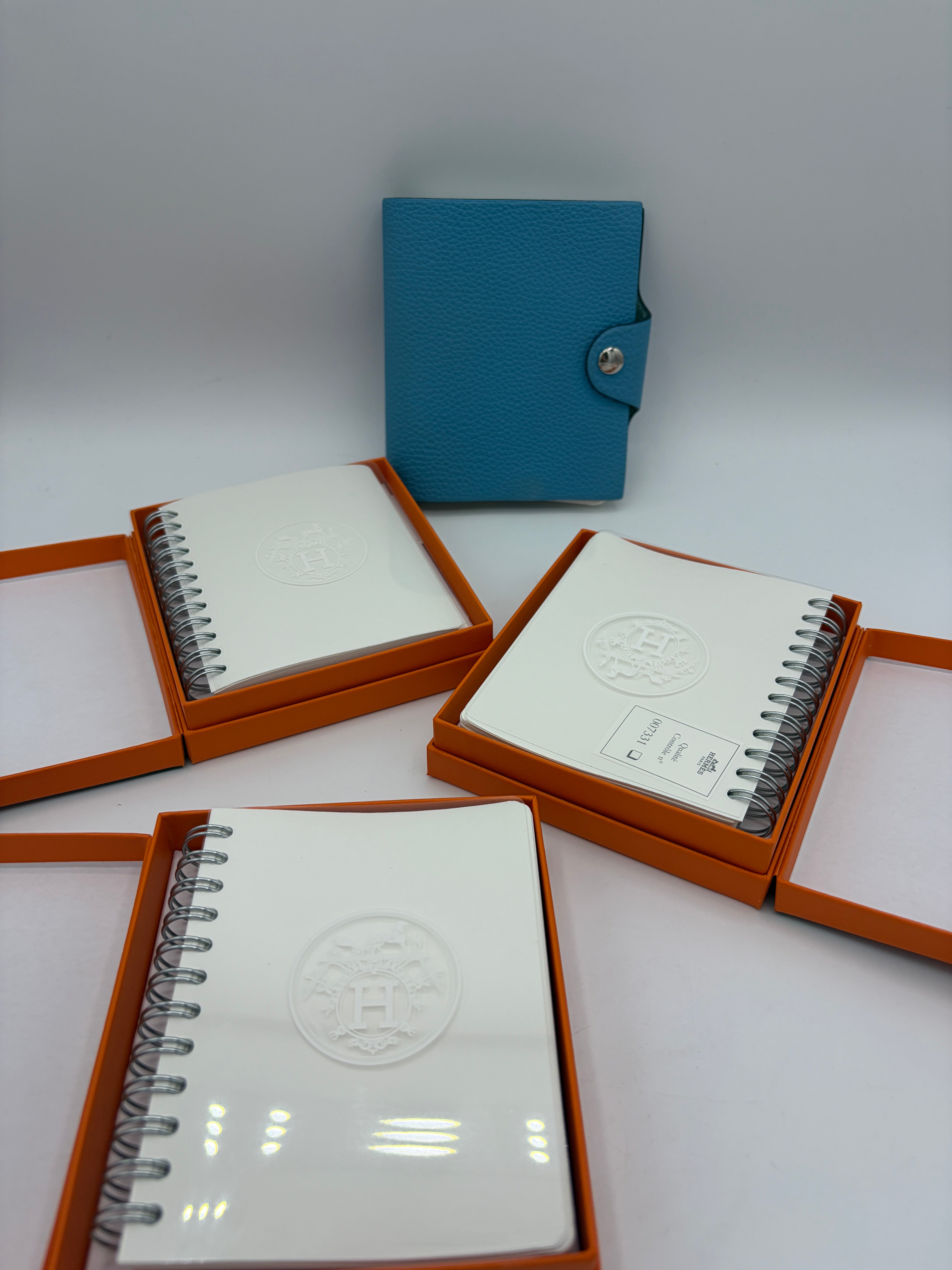 Fournie avec boîte Hermès et 4 recharges vierges de cahier Hermès.