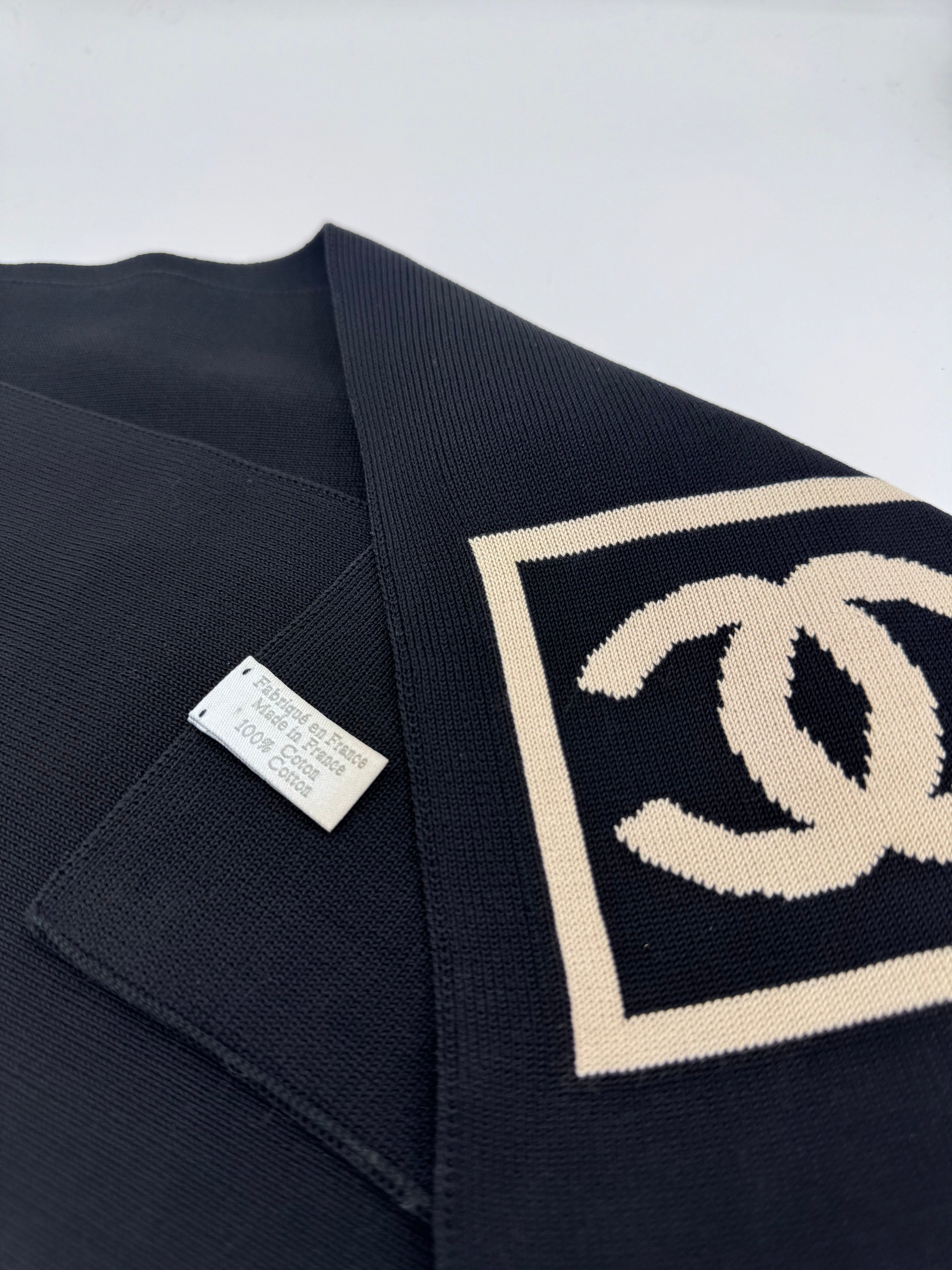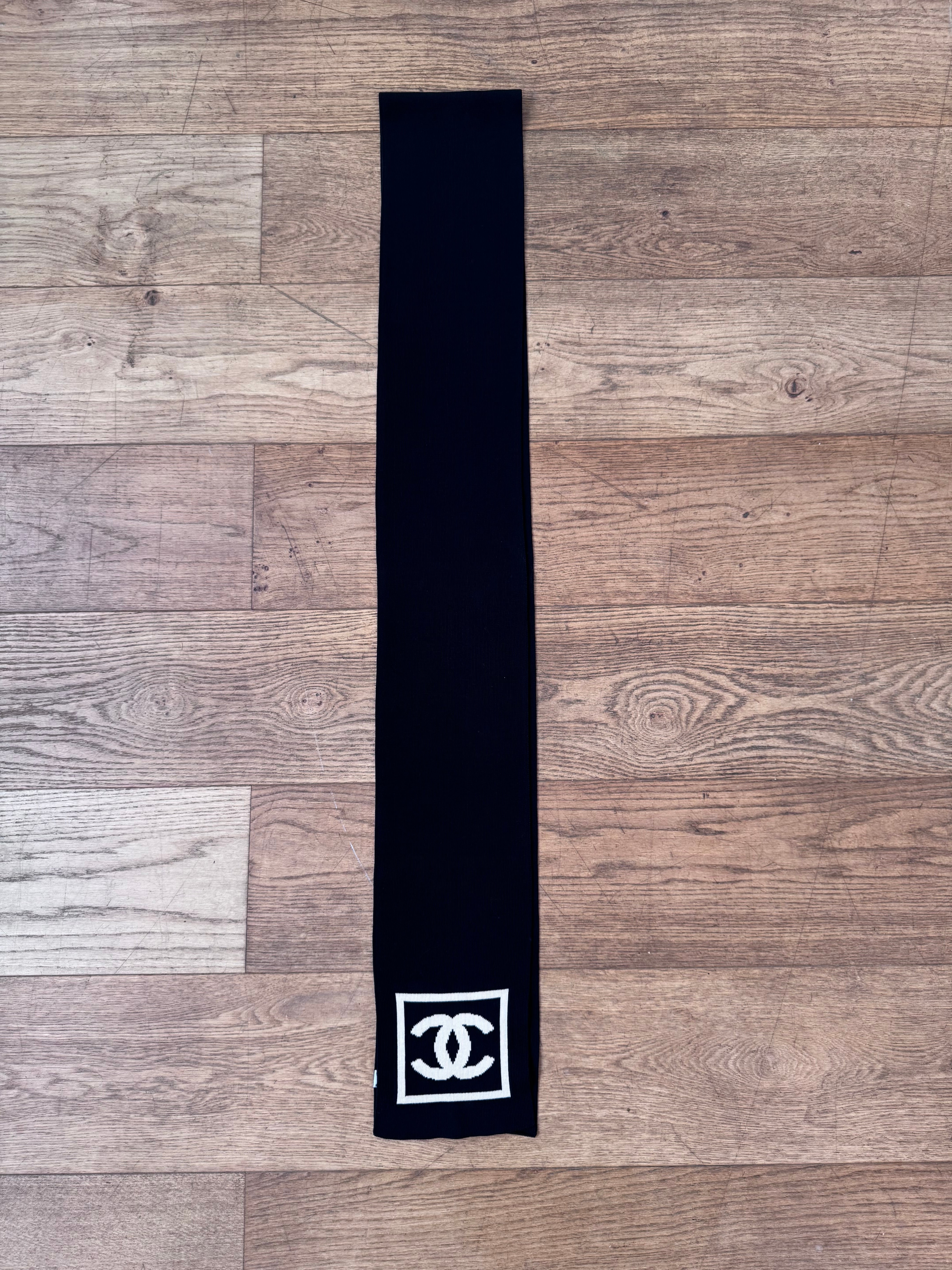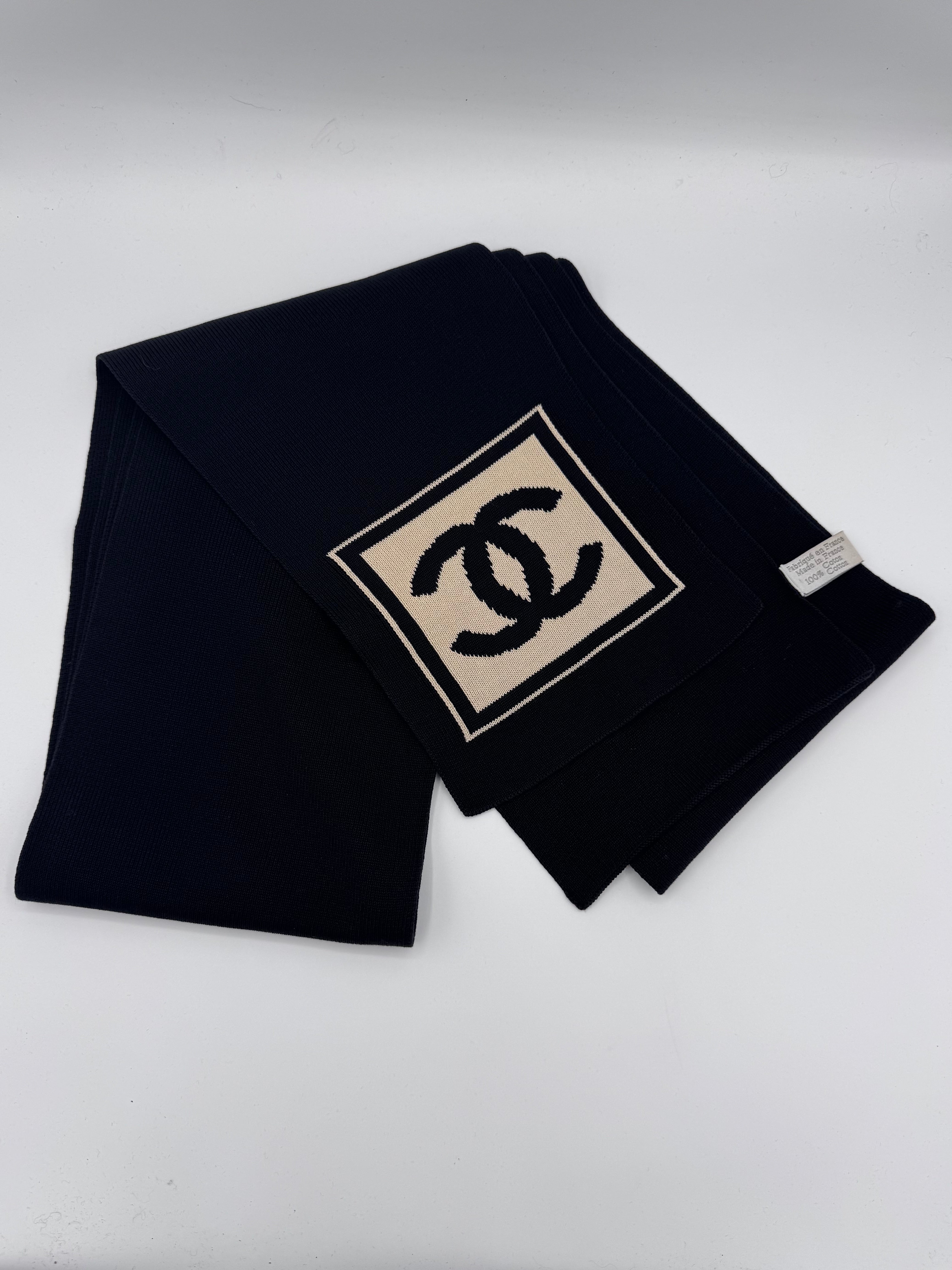 Écharpe Chanel CC 100% cotton noir et beige, en excellent état.