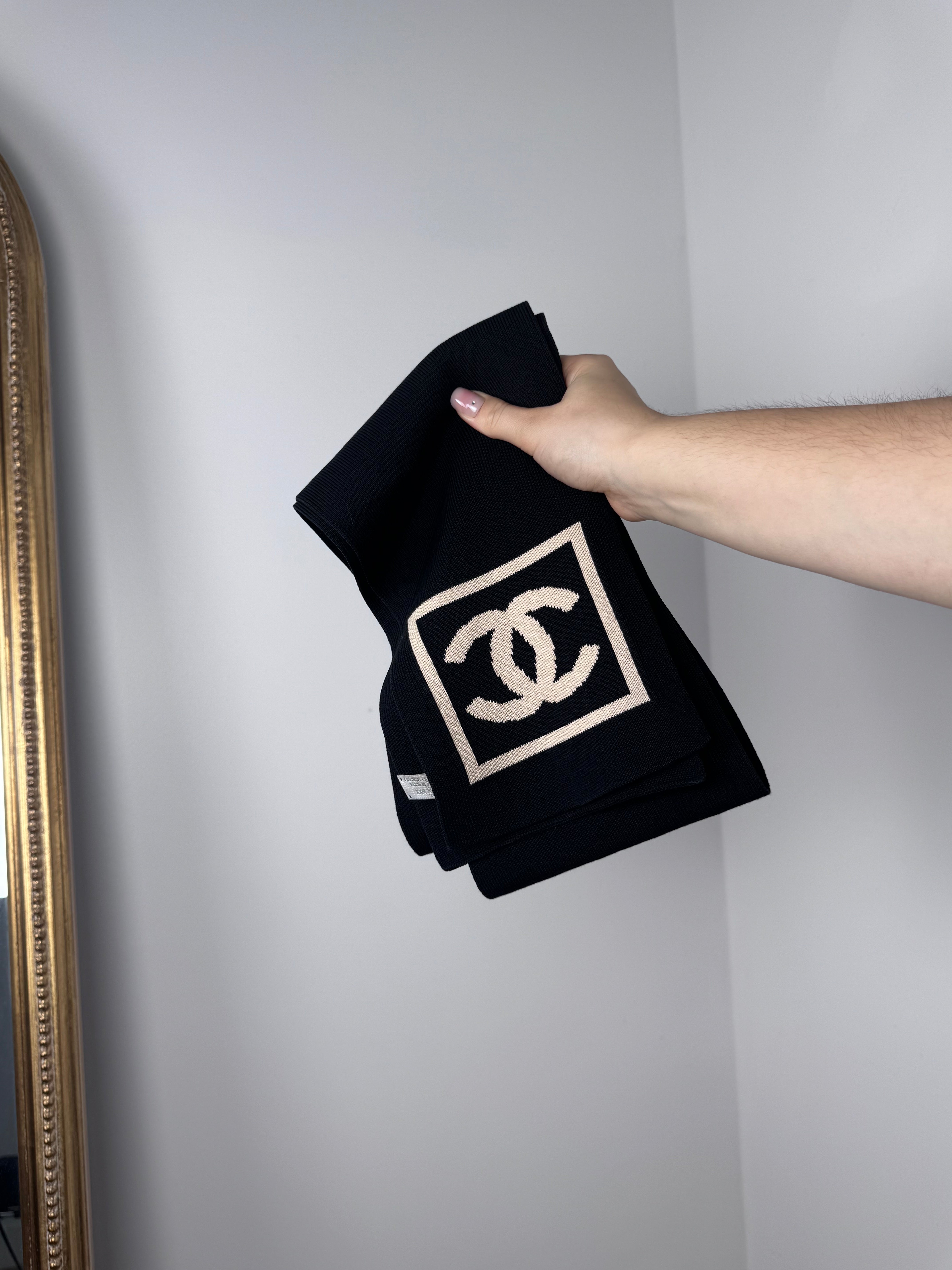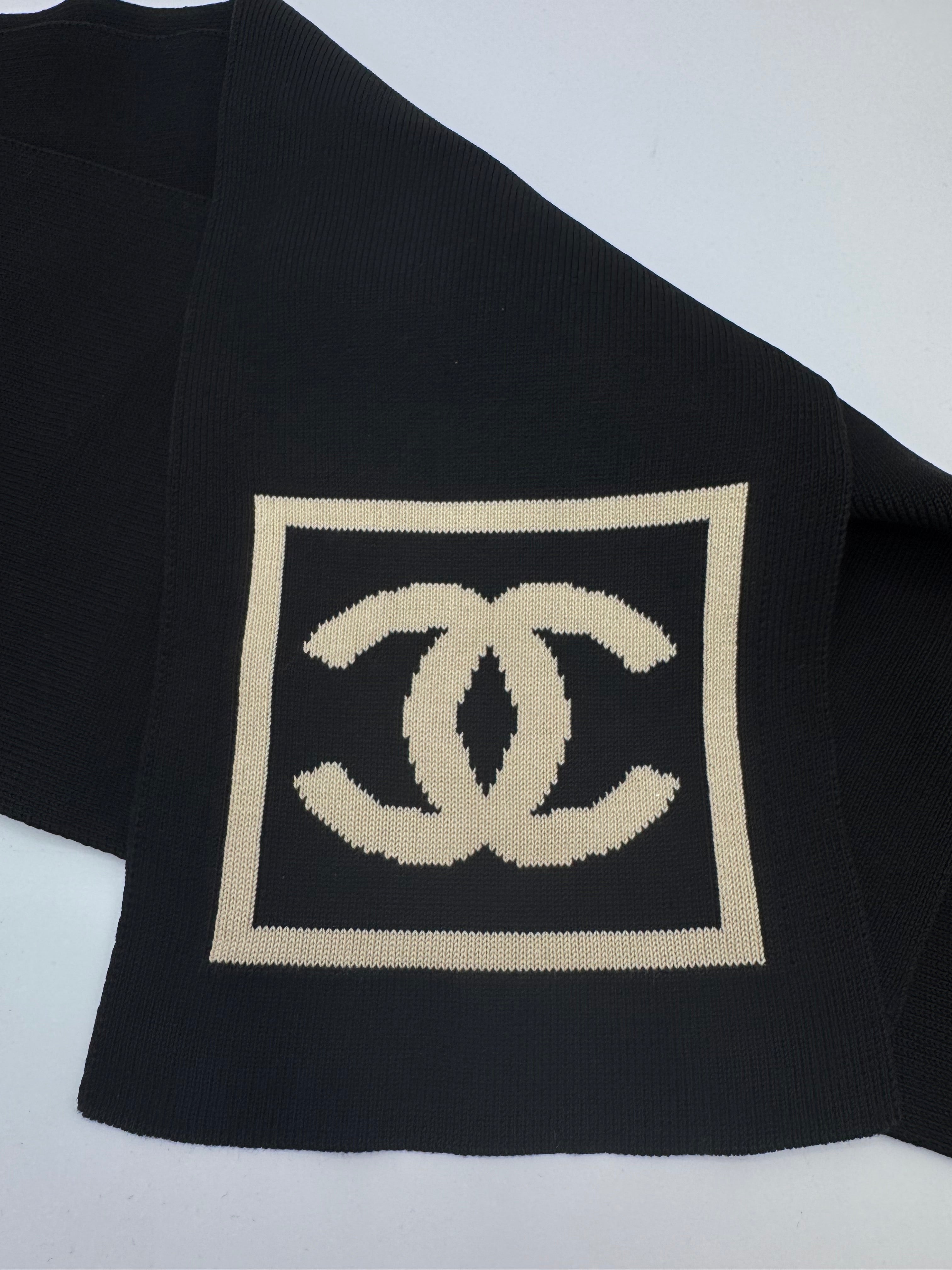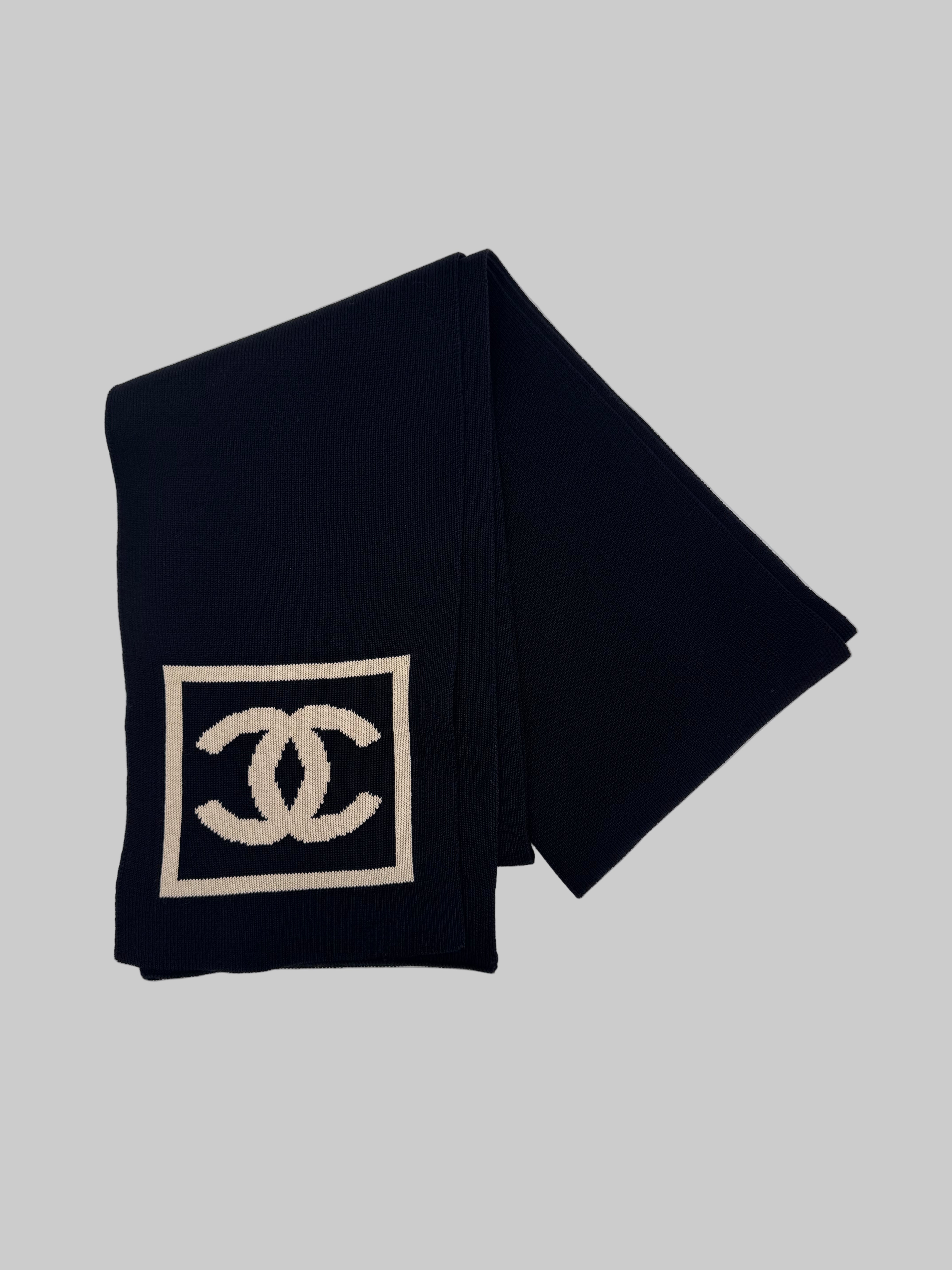 Écharpe Chanel CC 100% cotton noir et beige, en excellent état.
