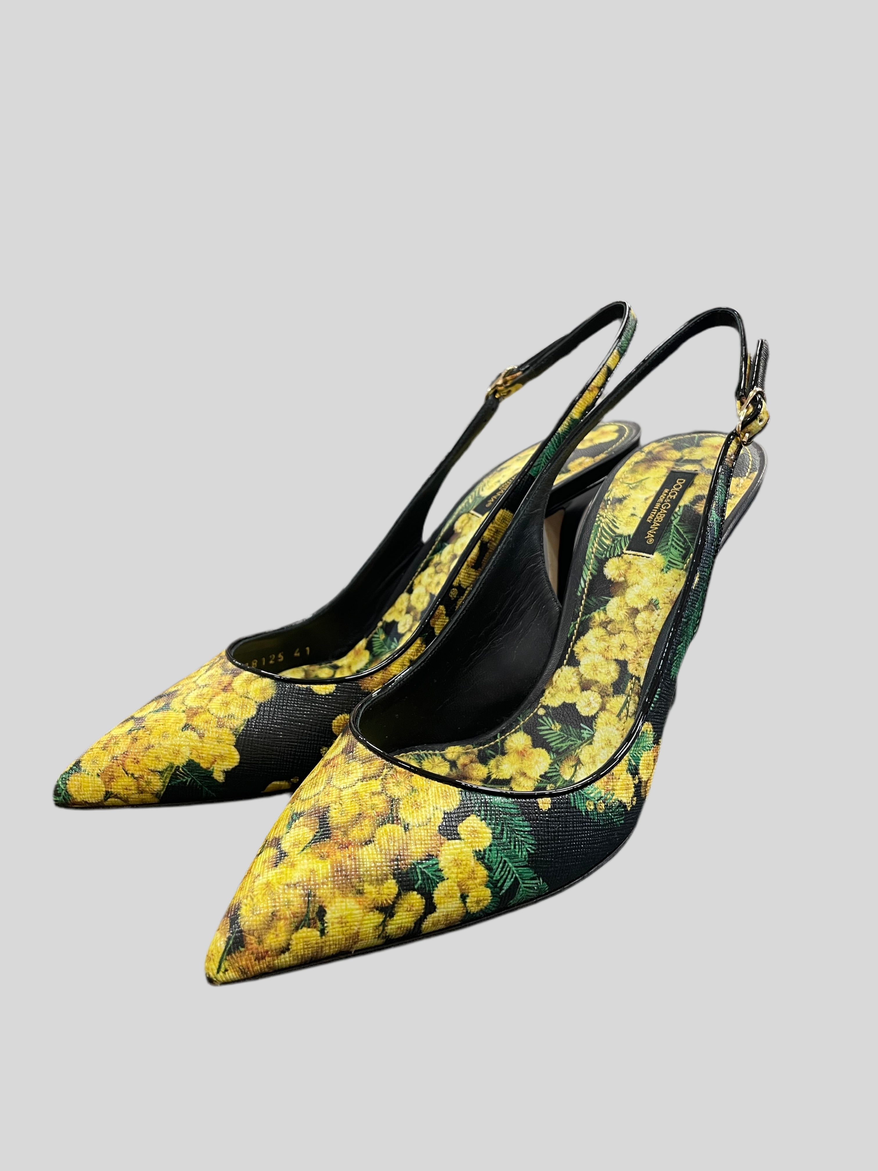 Escarpins Dolce Gabbana en cuir texturé noir et jaune, en très bon état.