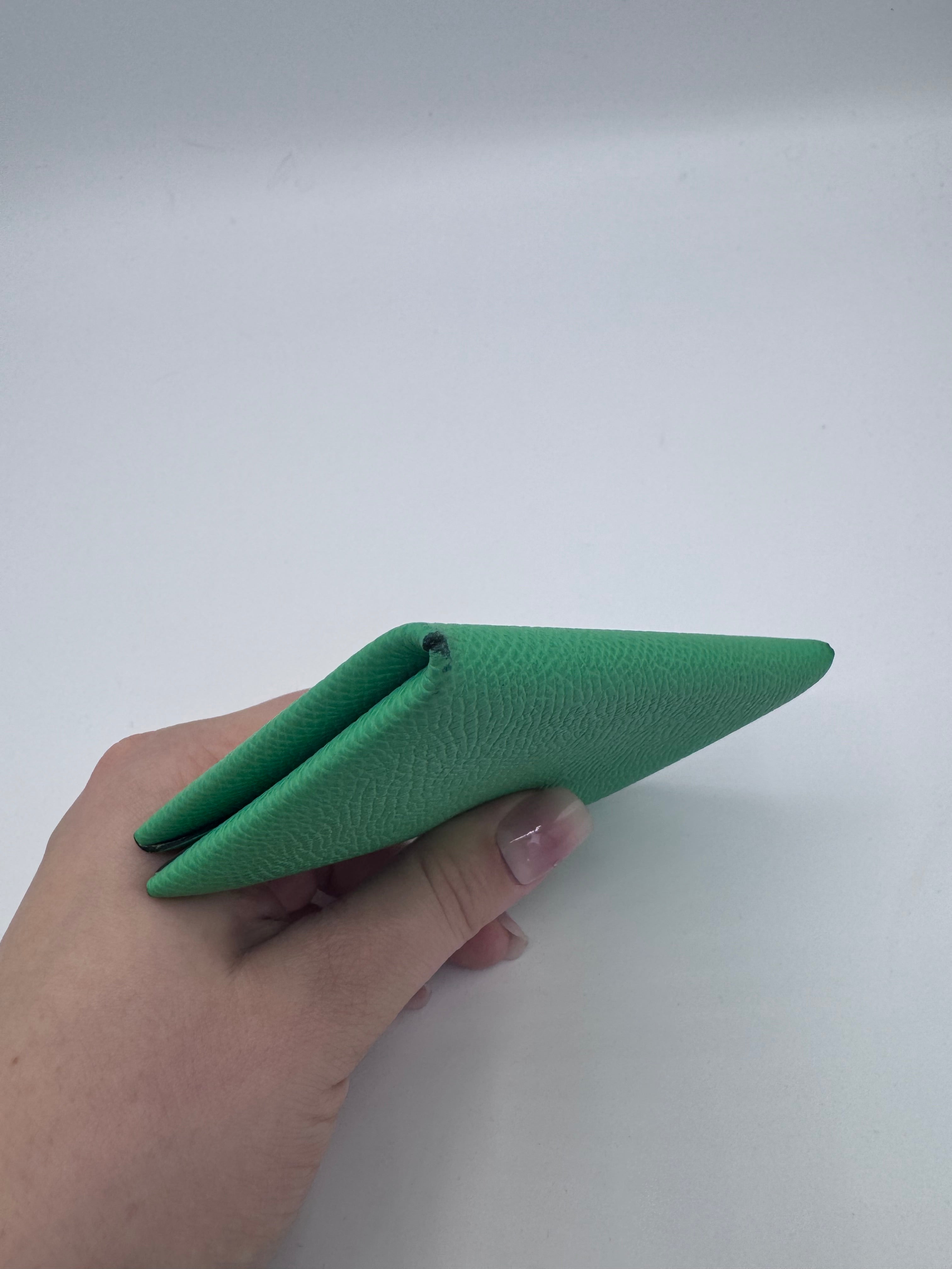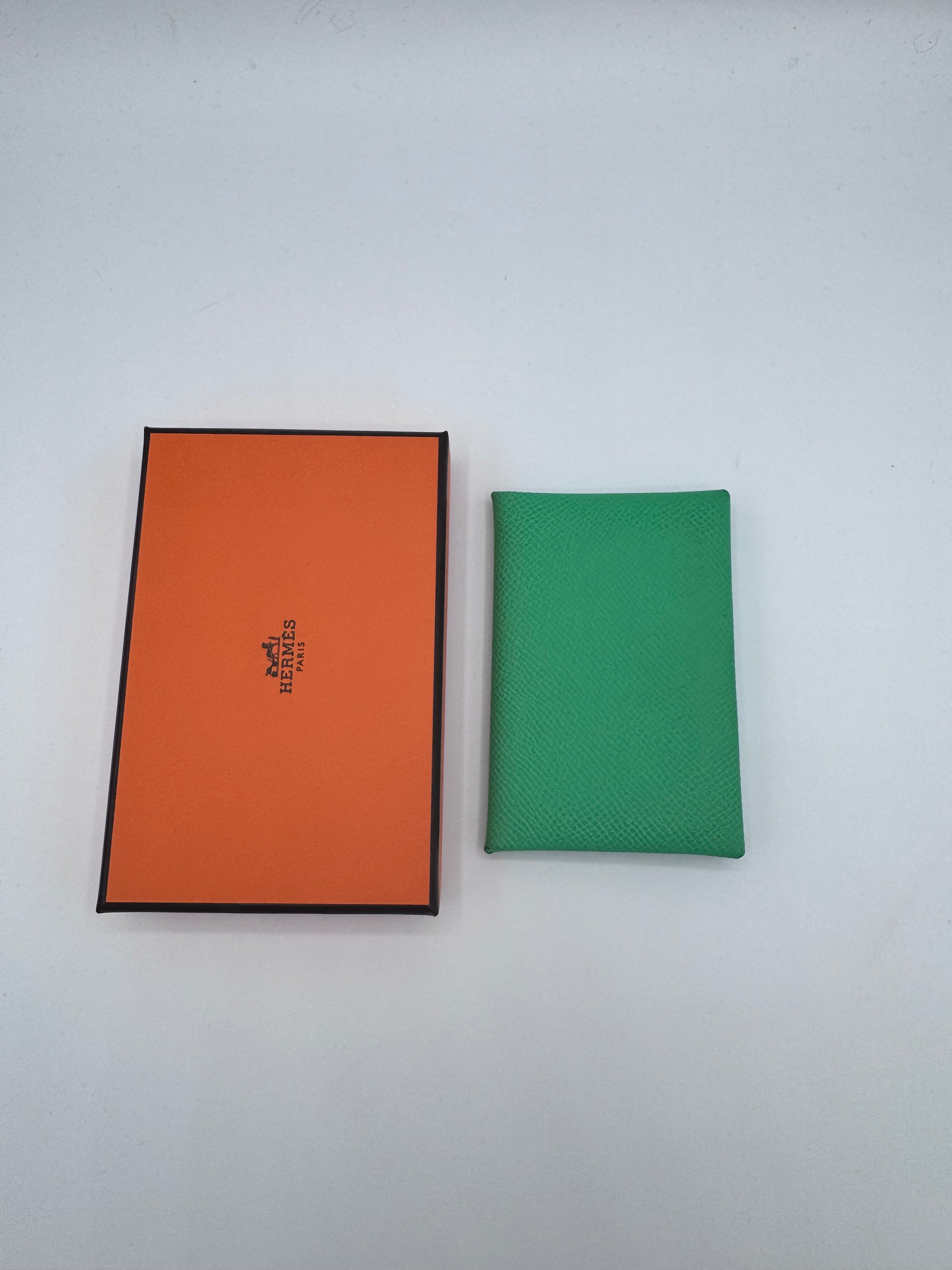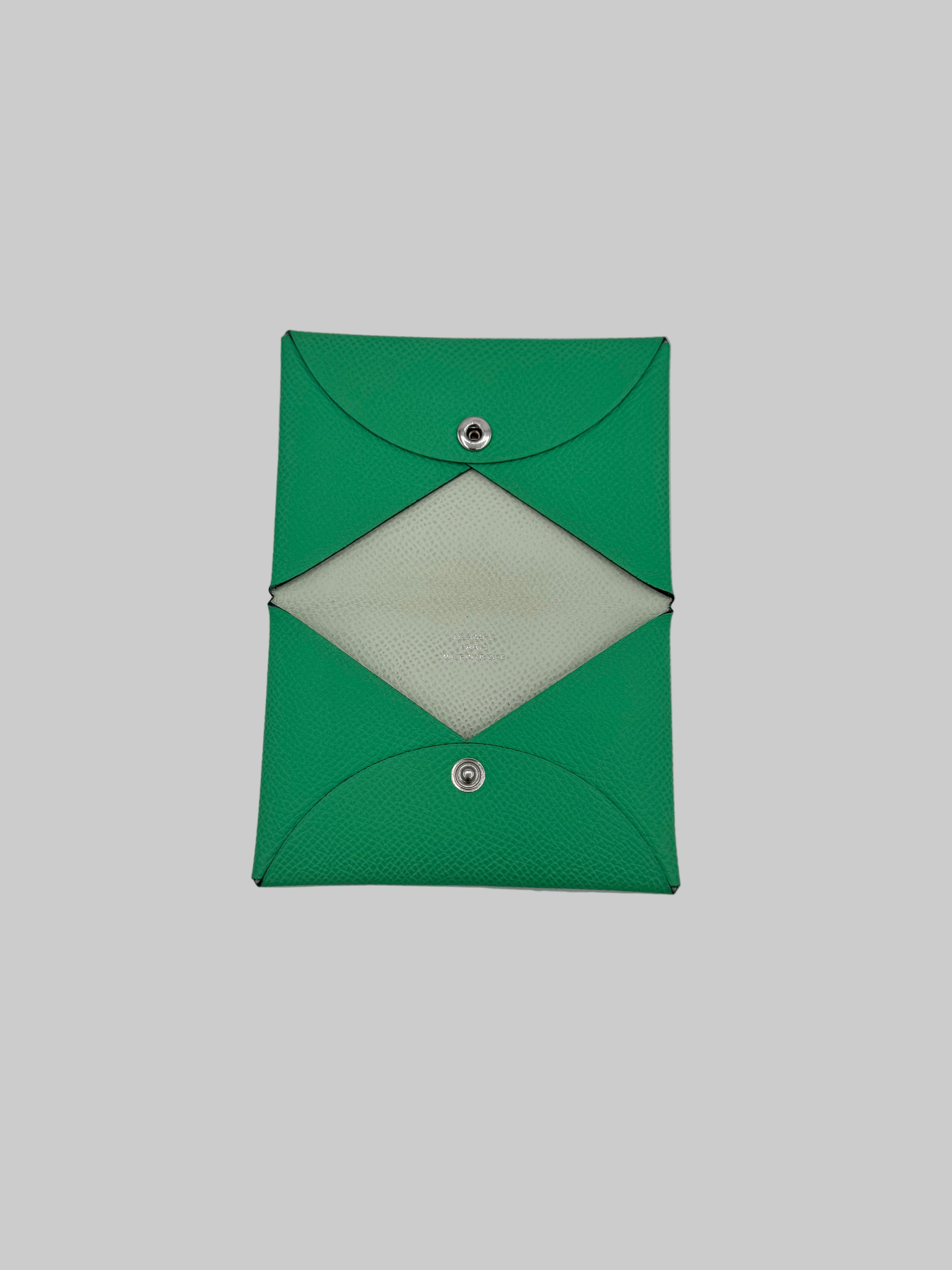 Porte-cartes Calvi de chez Hermès, en cuir de Veau Evercolor, coloris Vert Cactus.