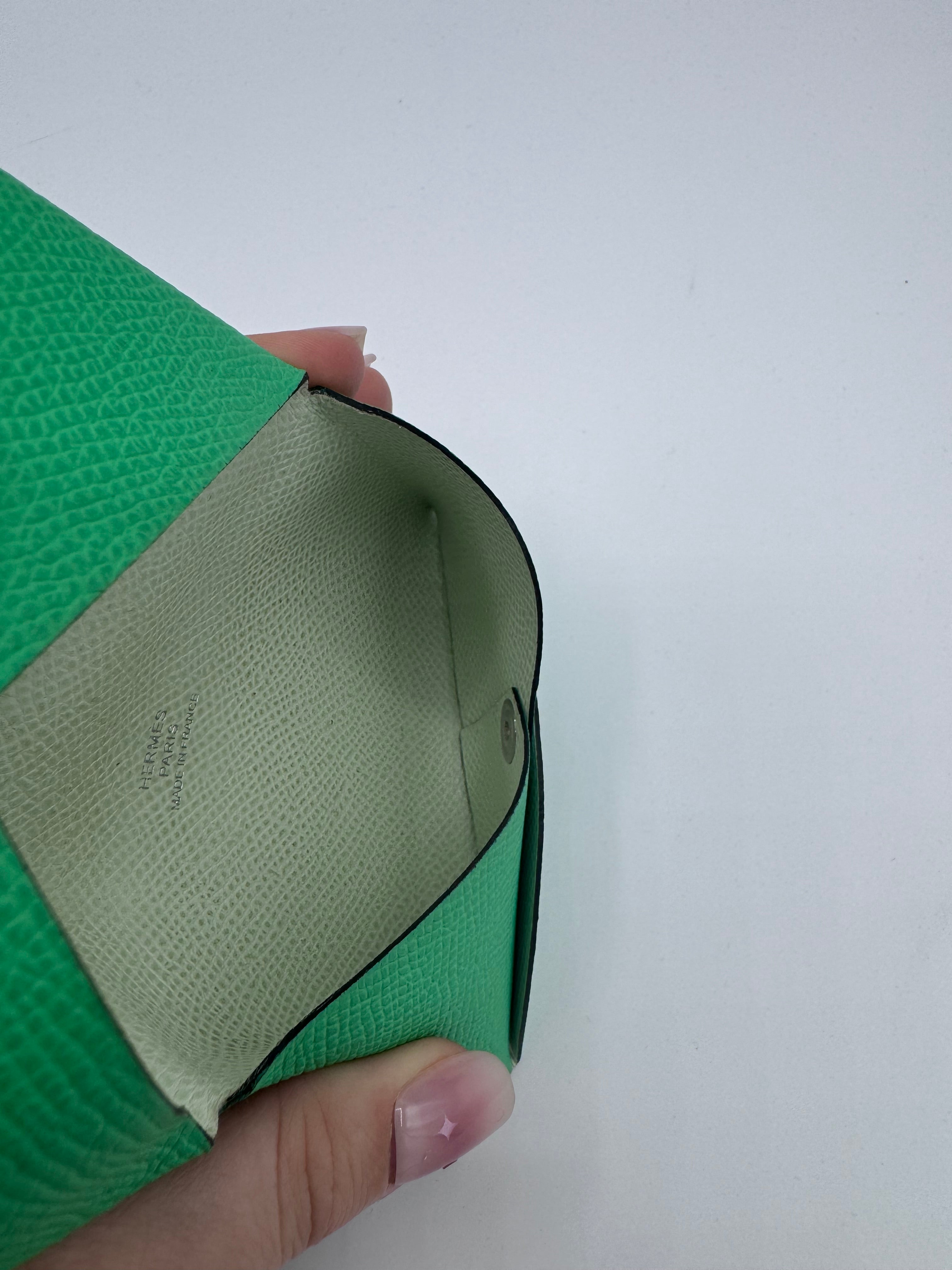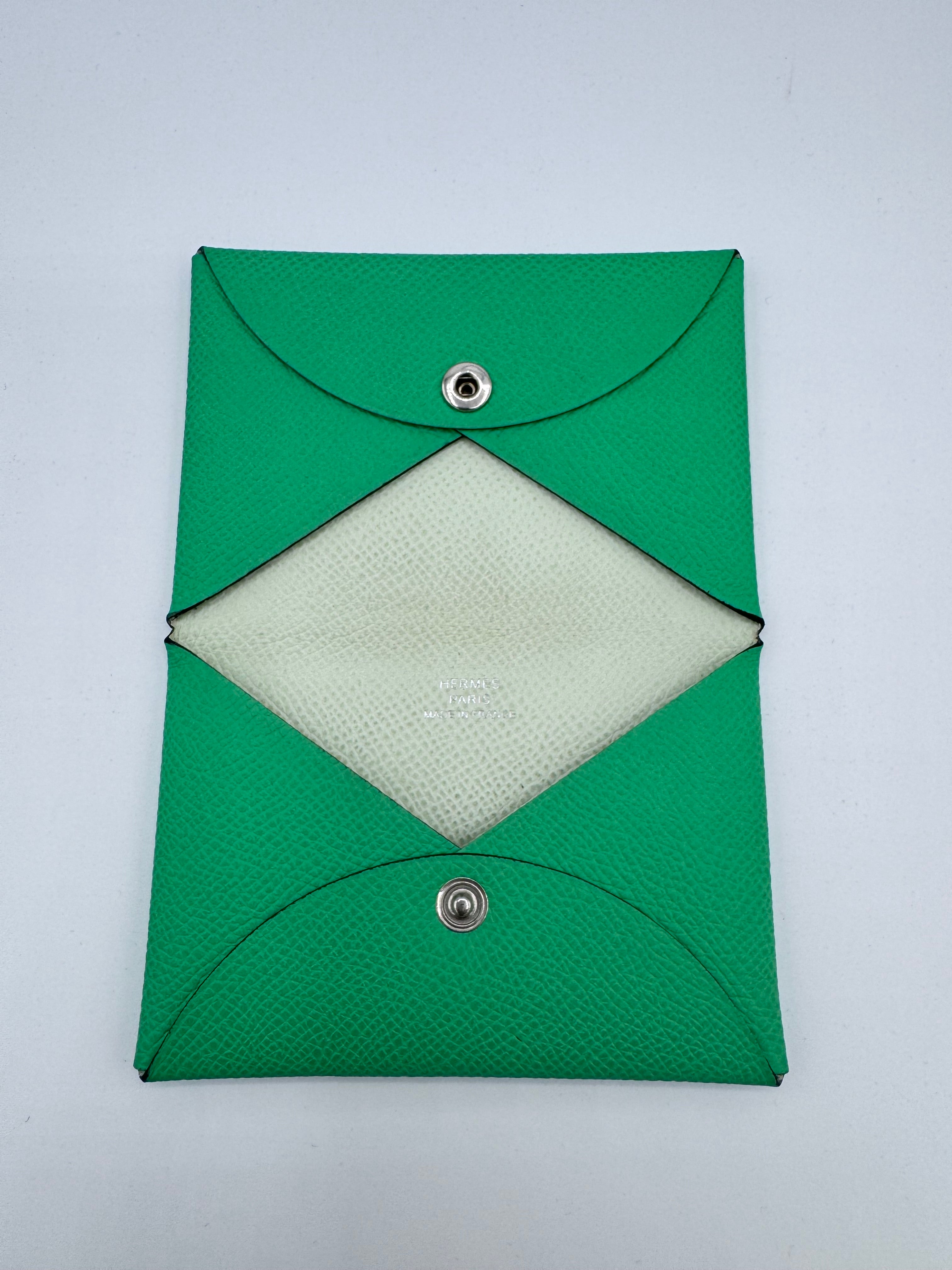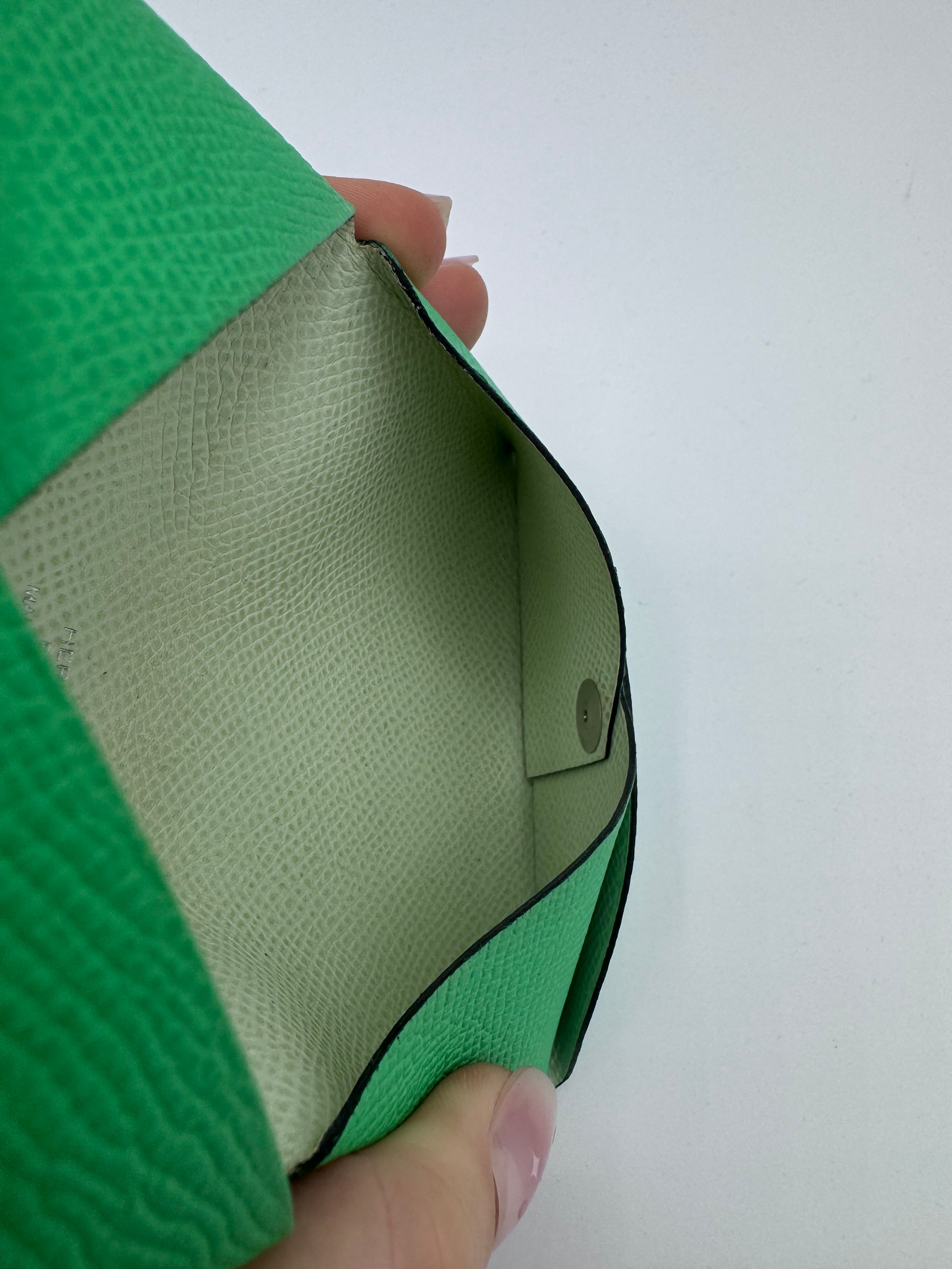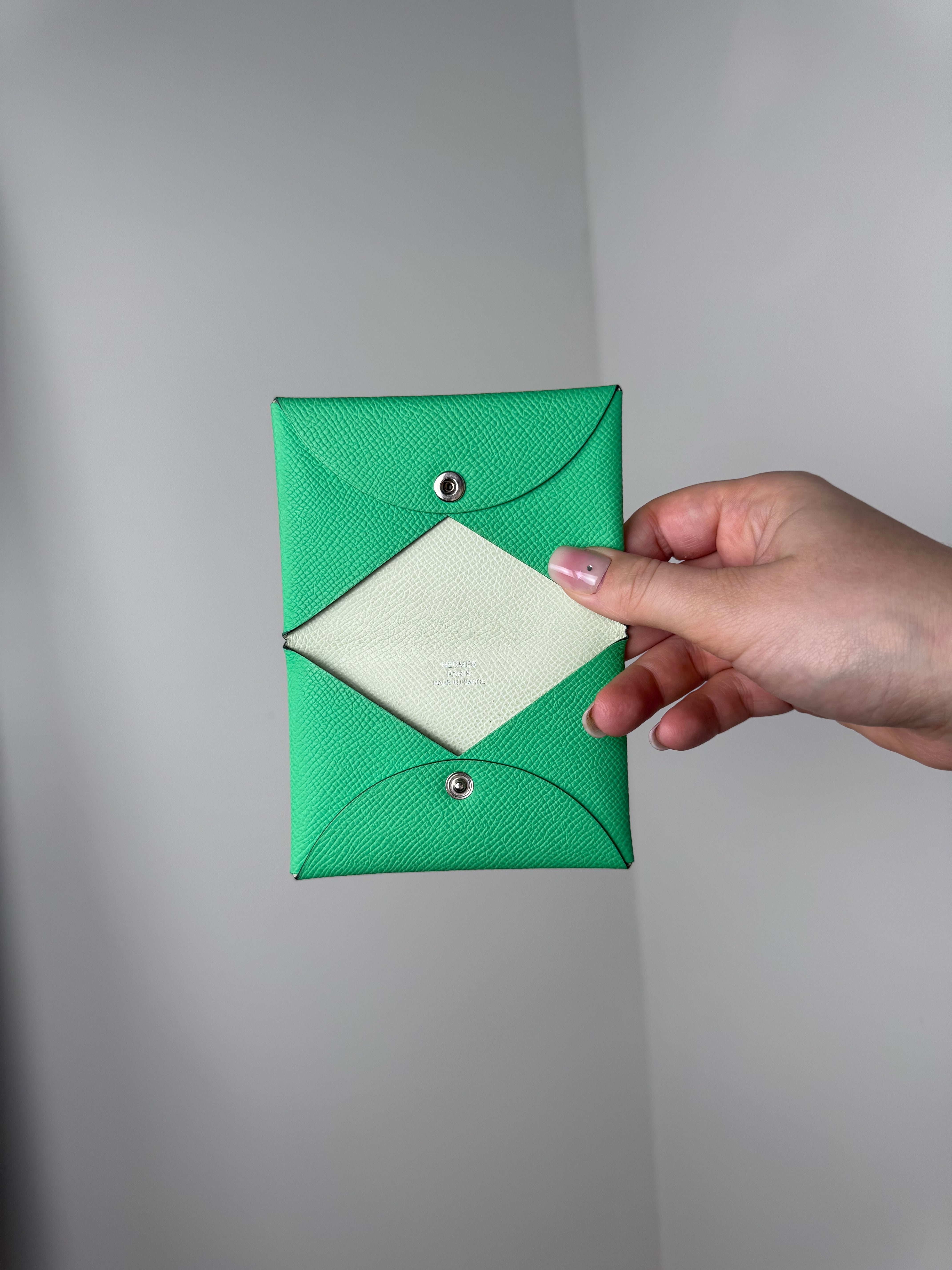 Porte-cartes Calvi de chez Hermès, en cuir de Veau Evercolor, coloris Vert Cactus.
