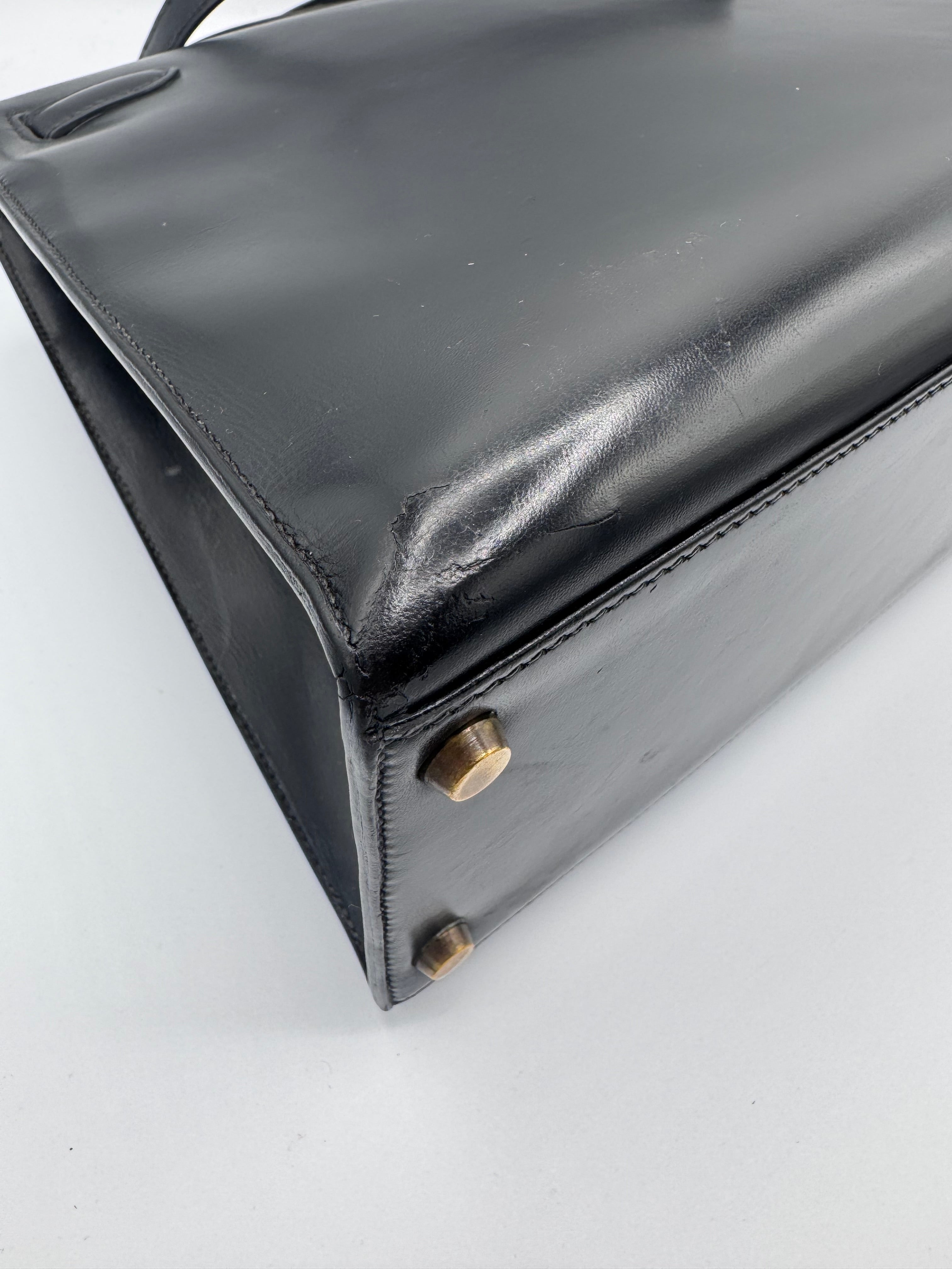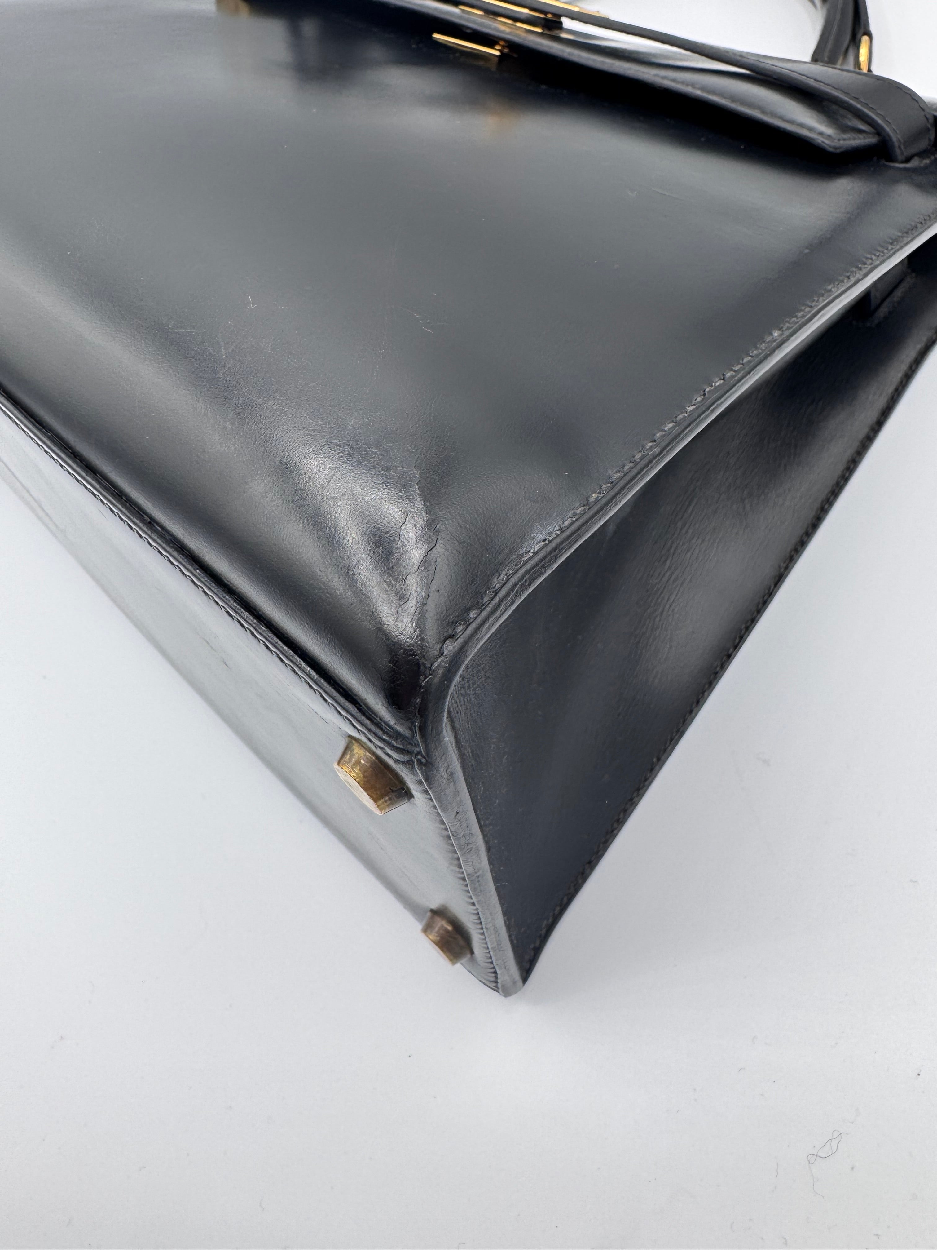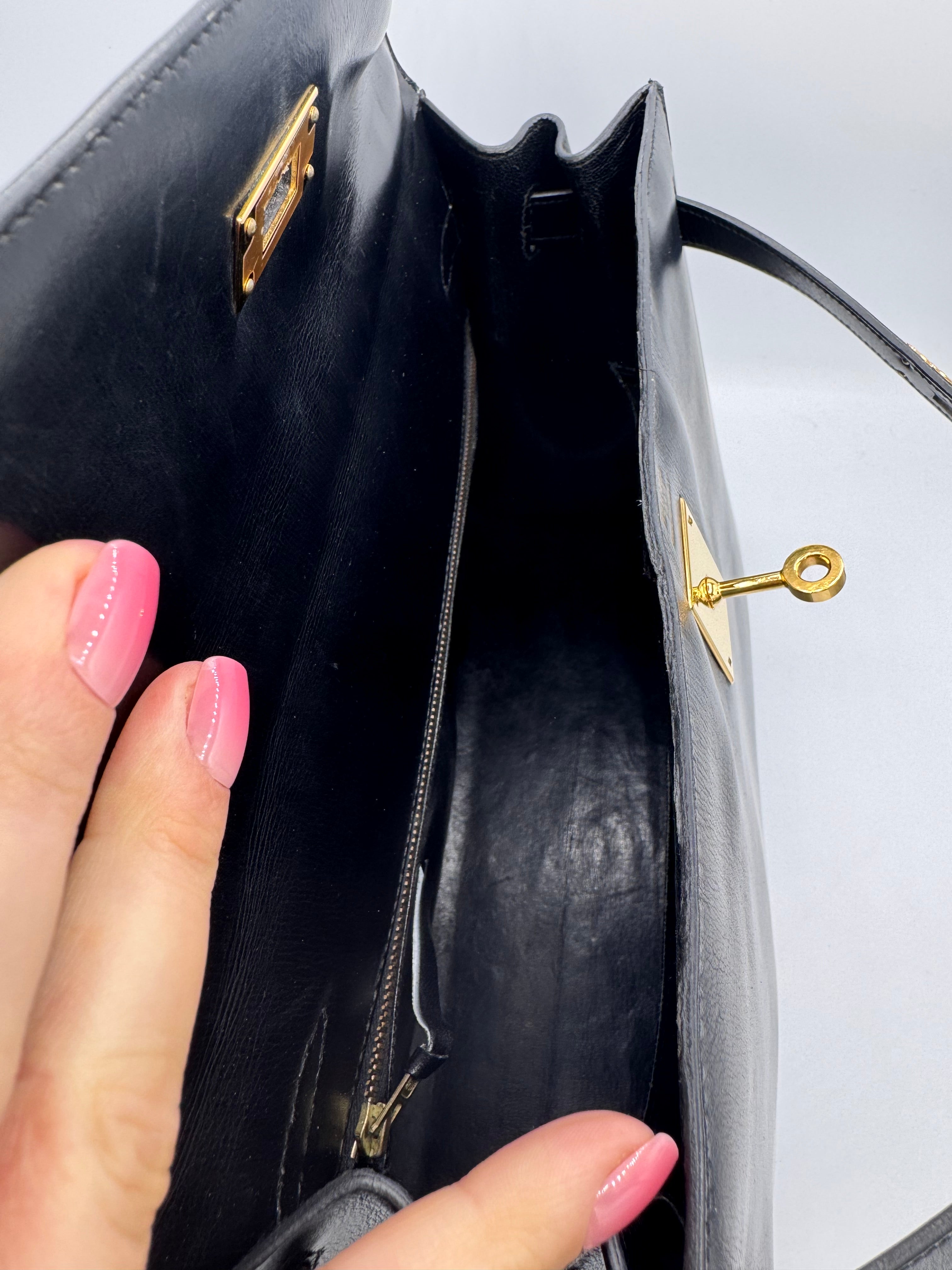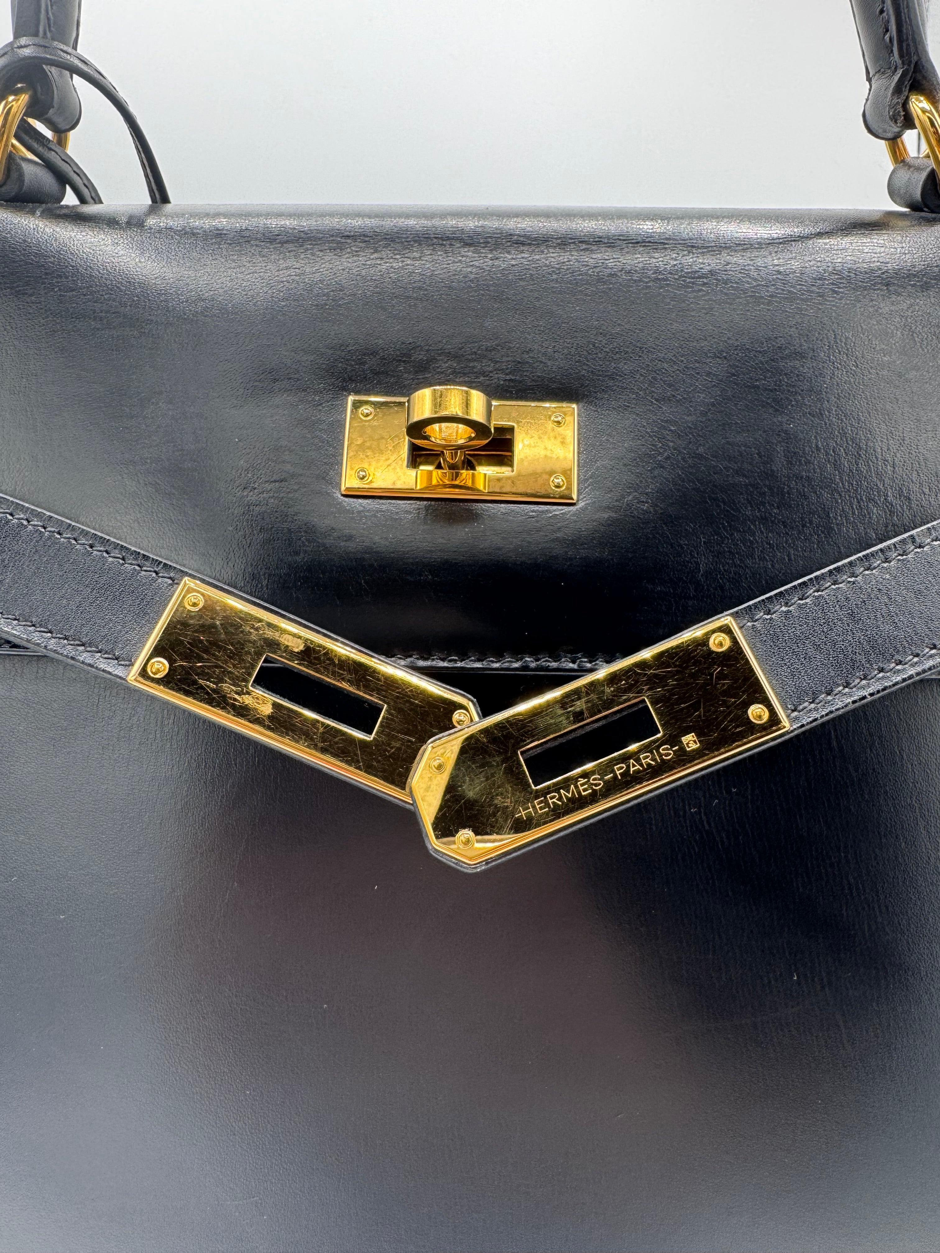 Sac Kelly taille 32 Hermès, en cuir box, couleur noir, finition sellier et bijouterie dorée.