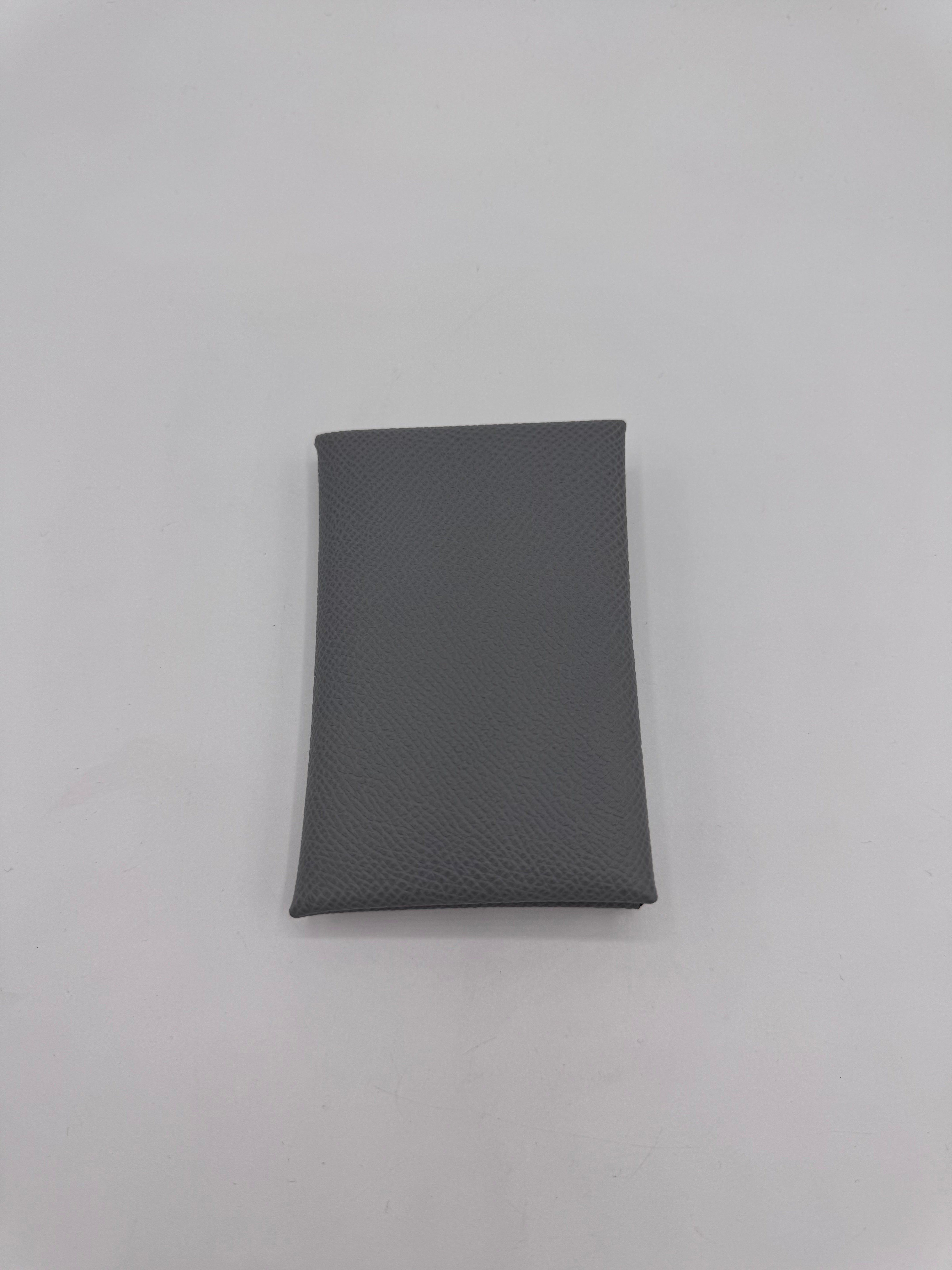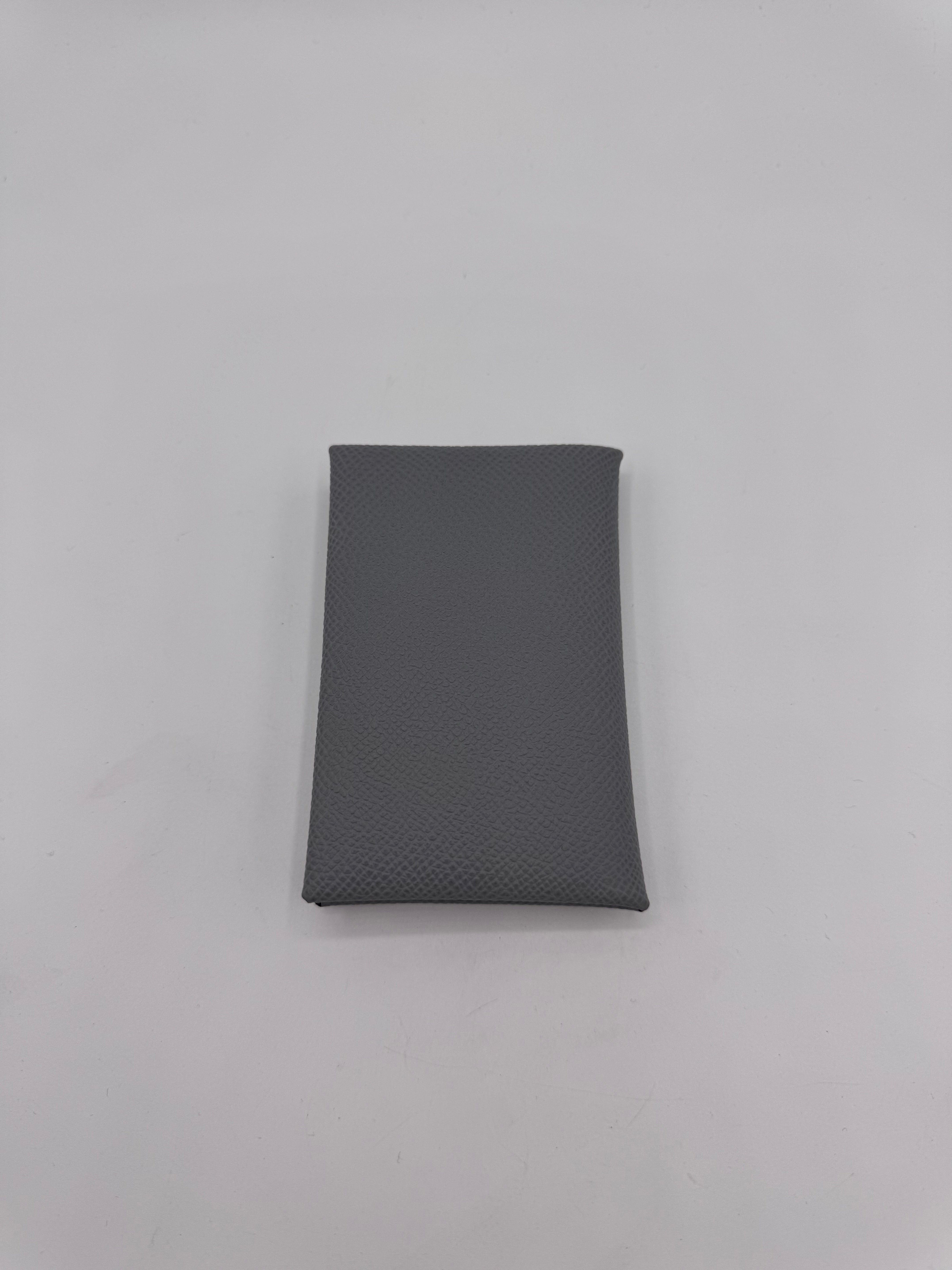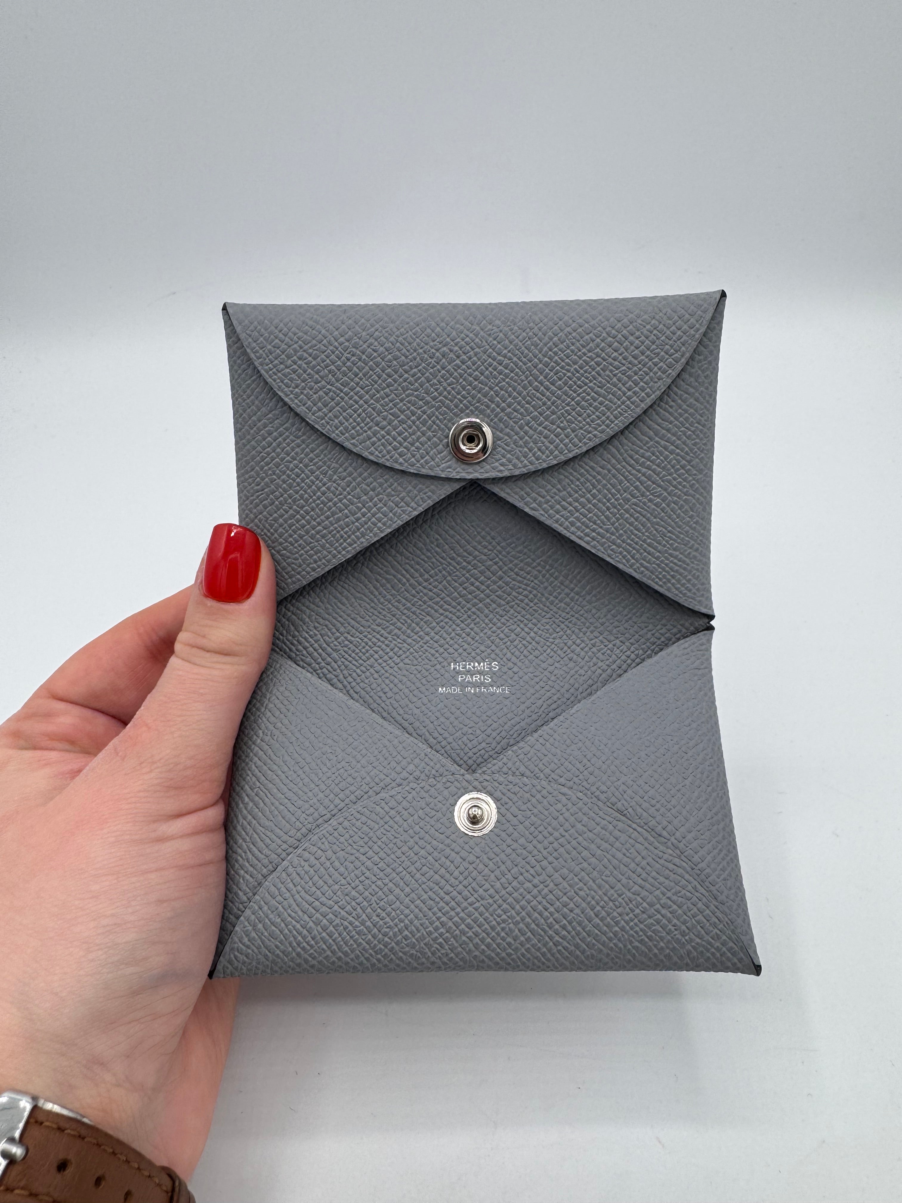Porte-cartes Calvi de chez Hermès, en cuir de veau epsom, coloris gris pantin.