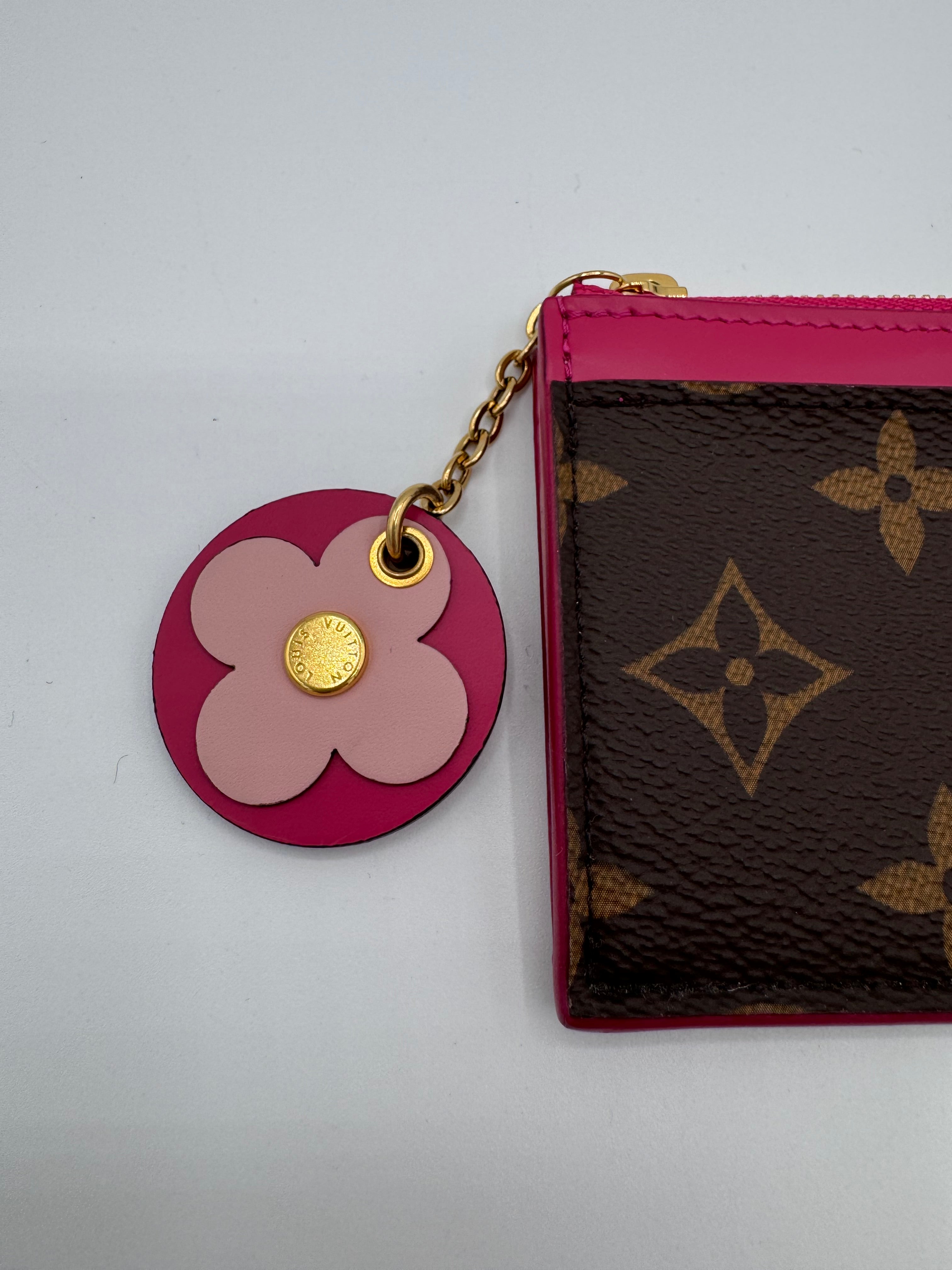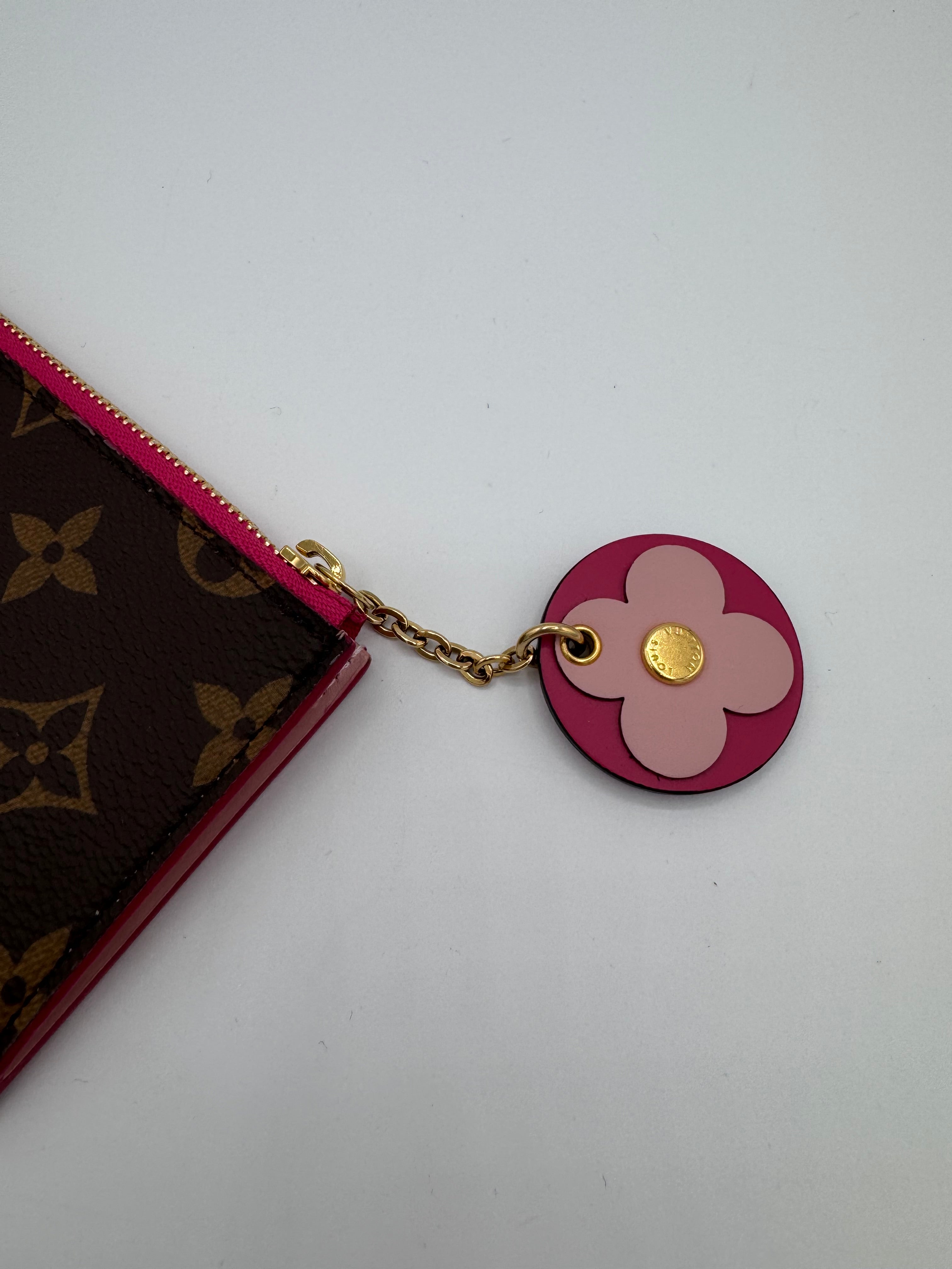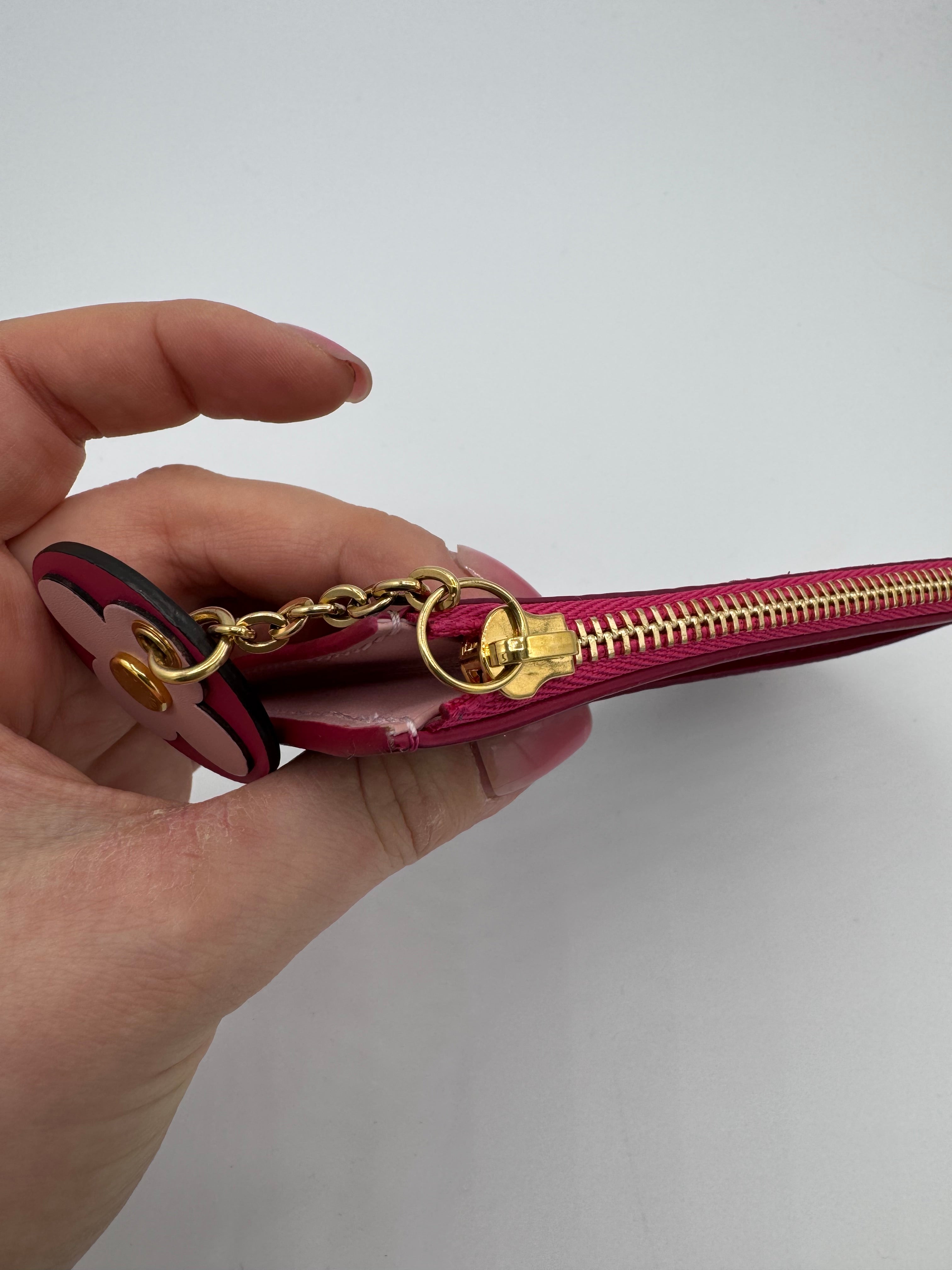 Très bon état général pour ce porte cartes multicolore avec un charm fleur associé.