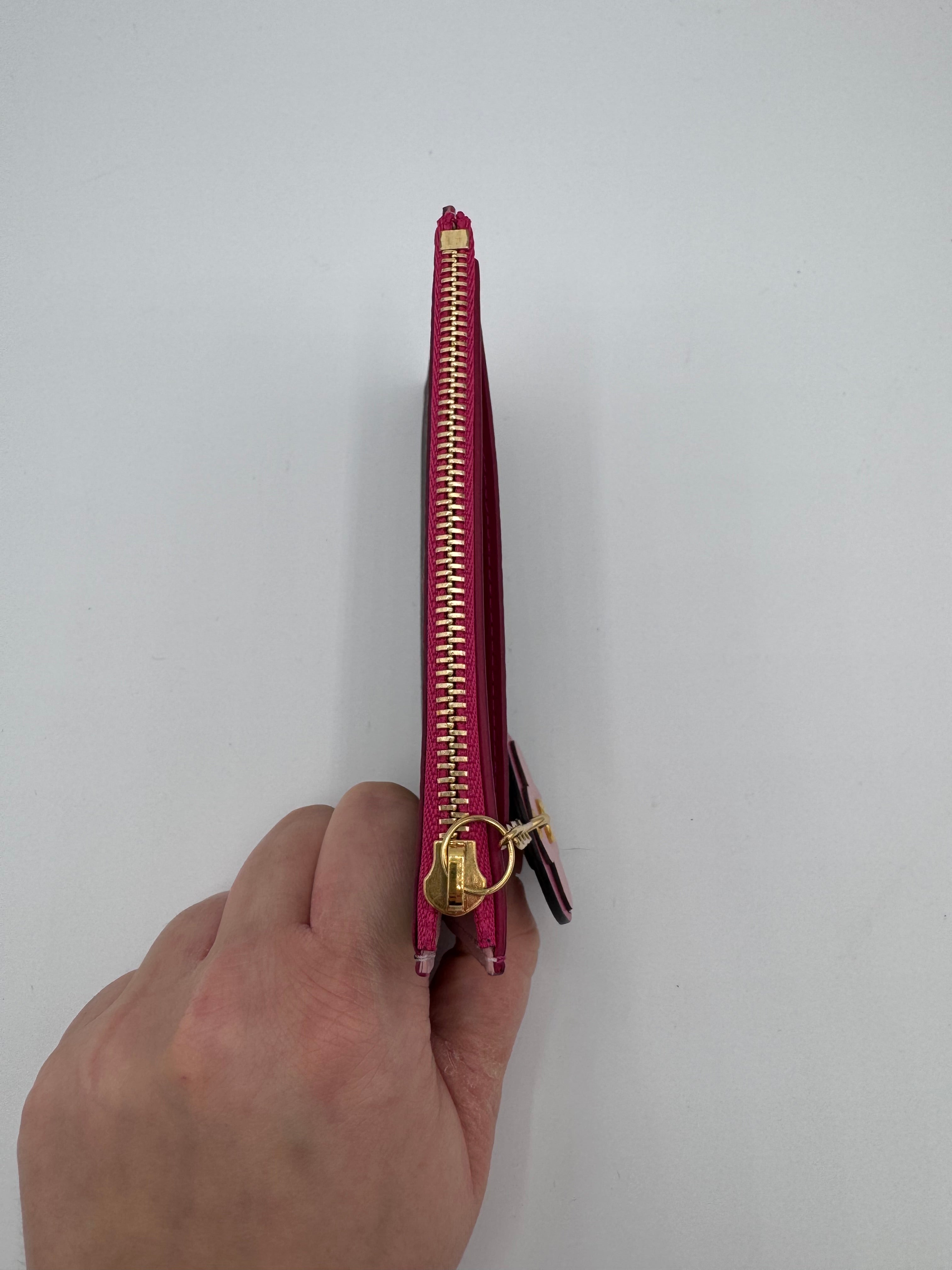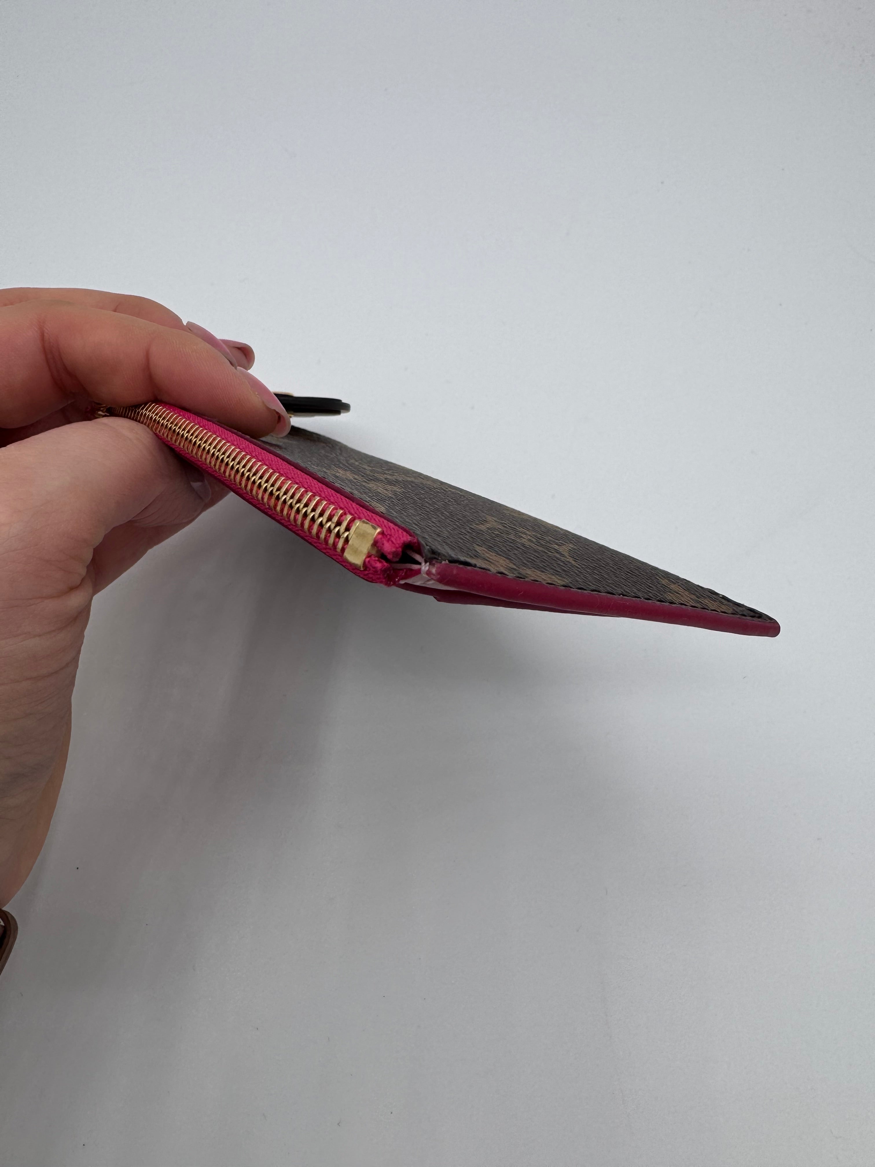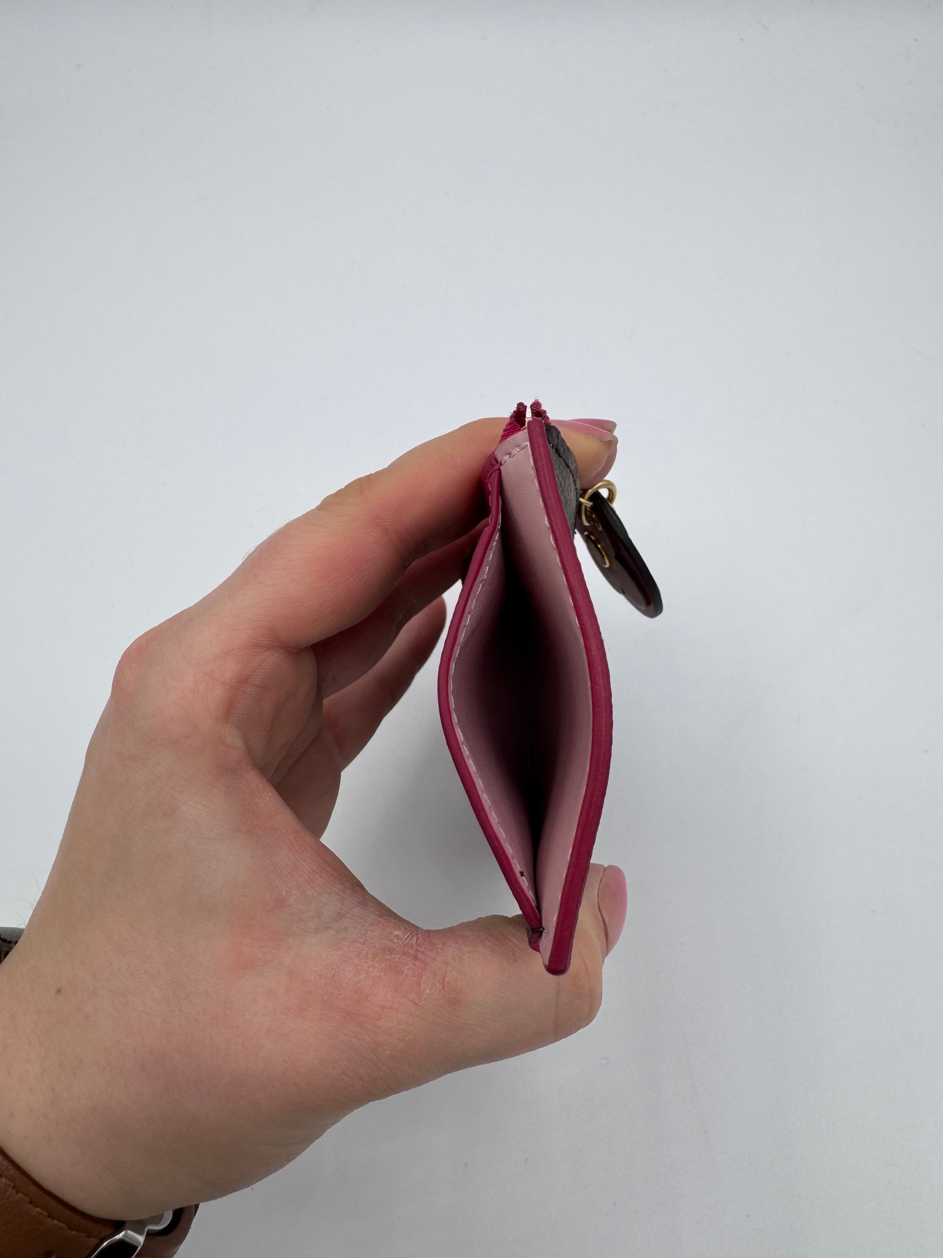 Très bon état général pour ce porte cartes multicolore avec un charm fleur associé.