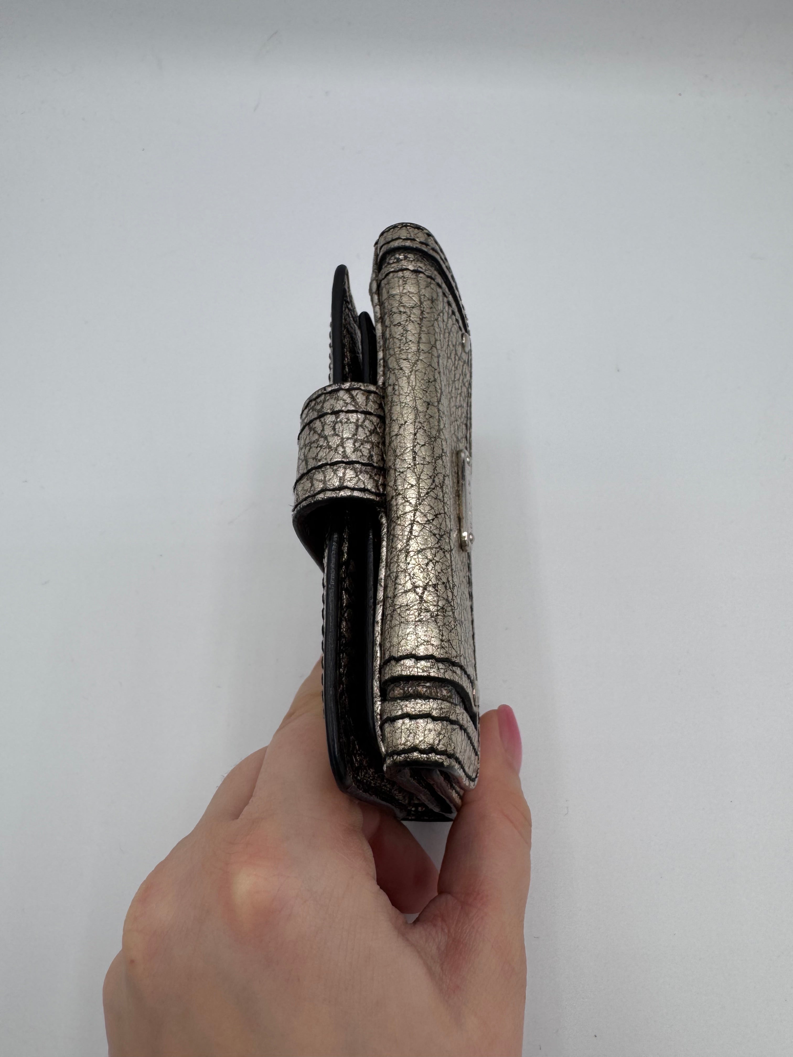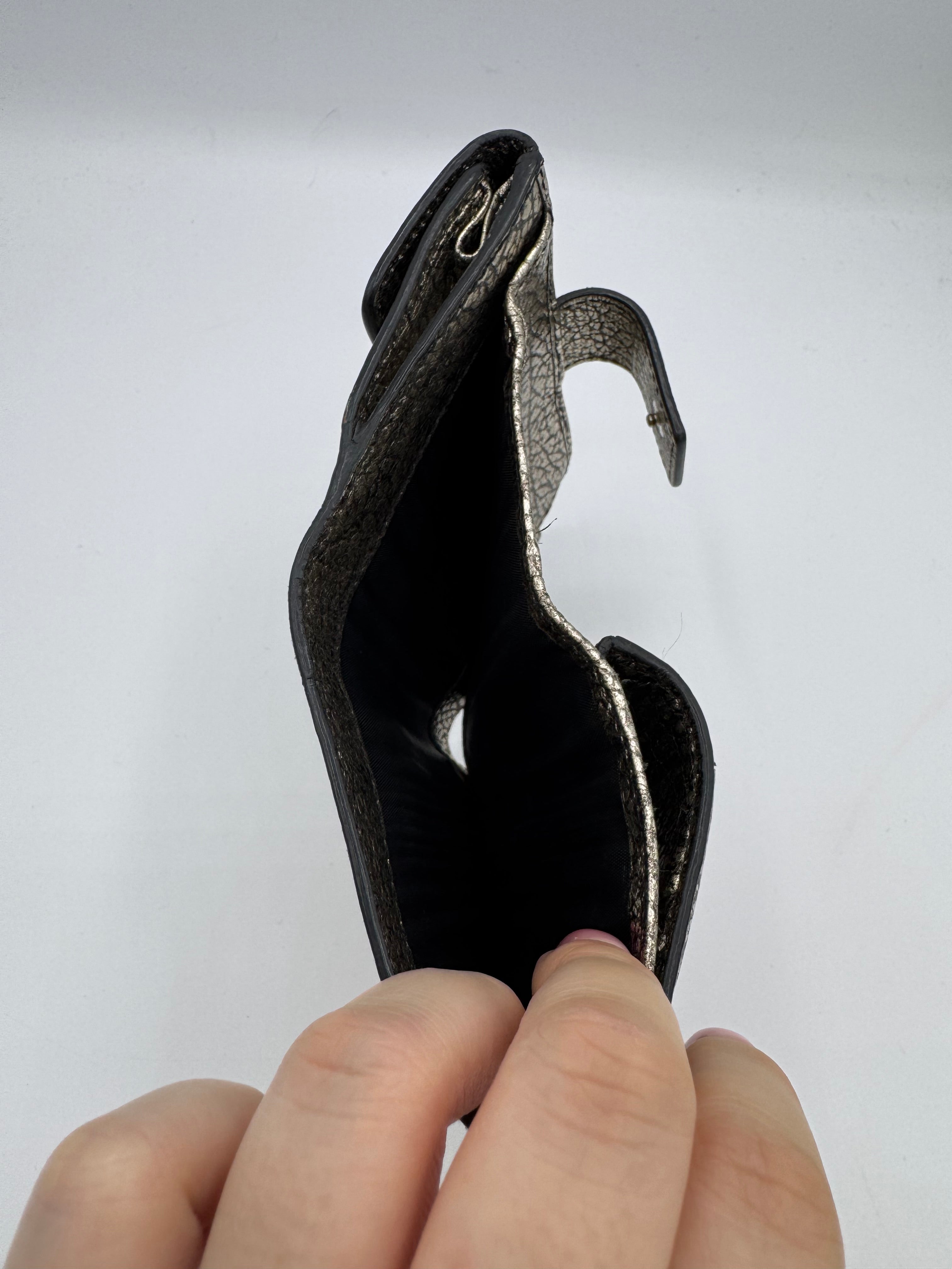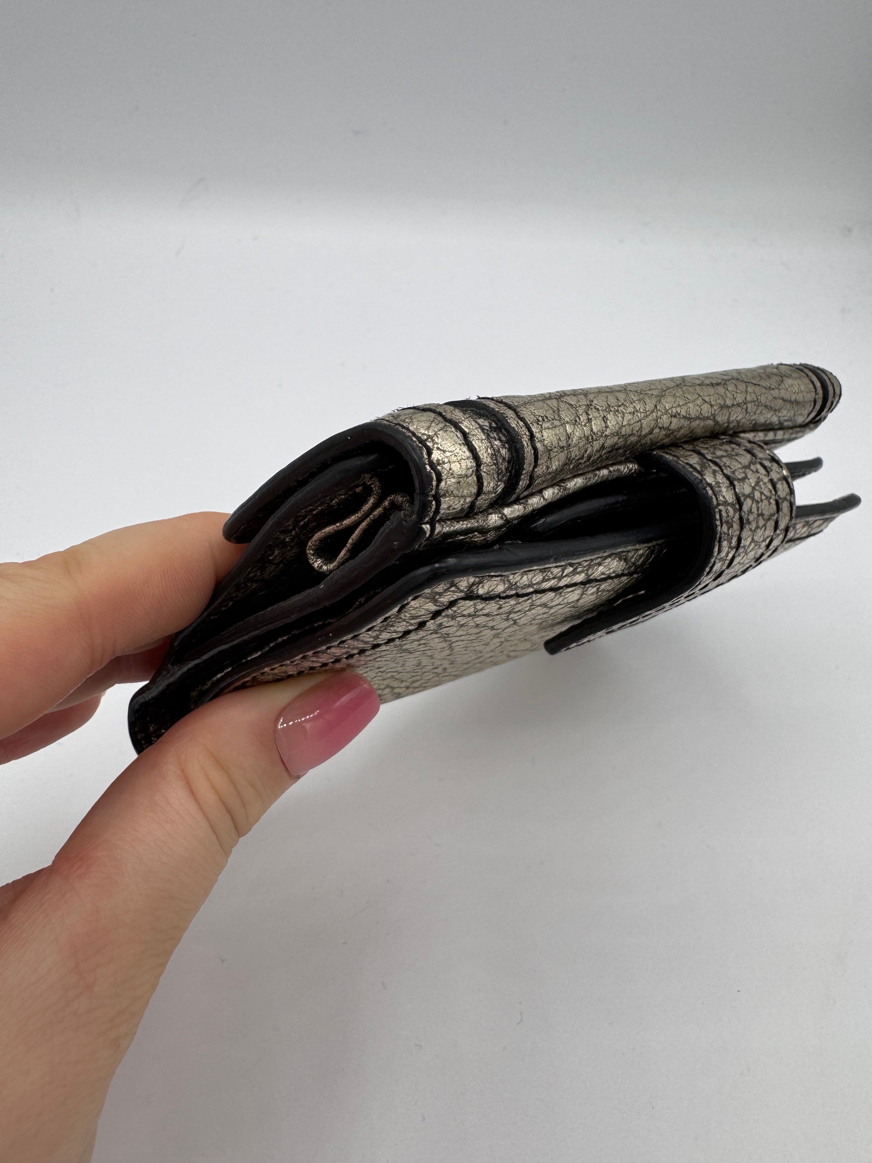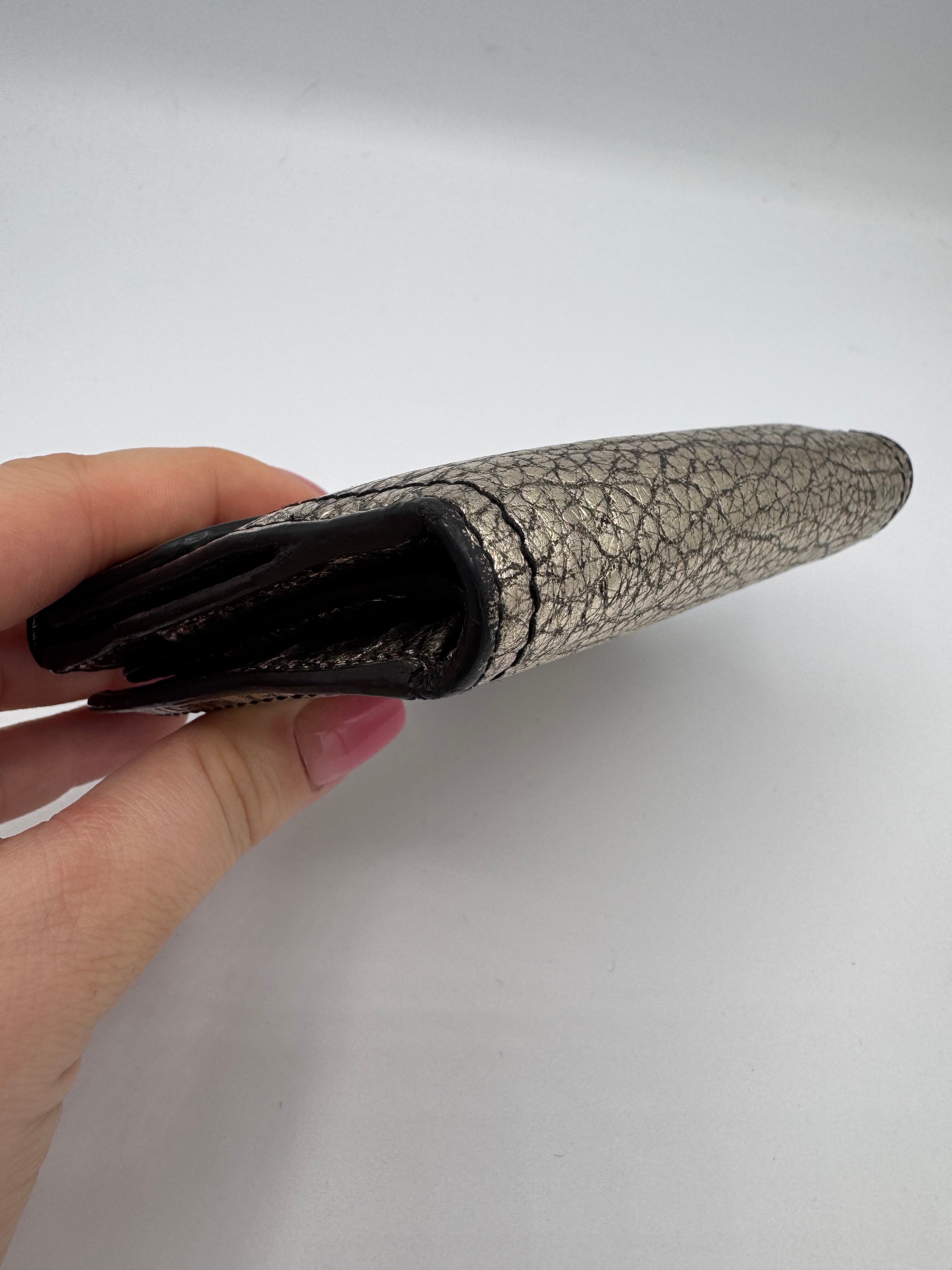 Portefeuille Celine couleur mordoré et noir en cuir de veau vielli, en très bon état.