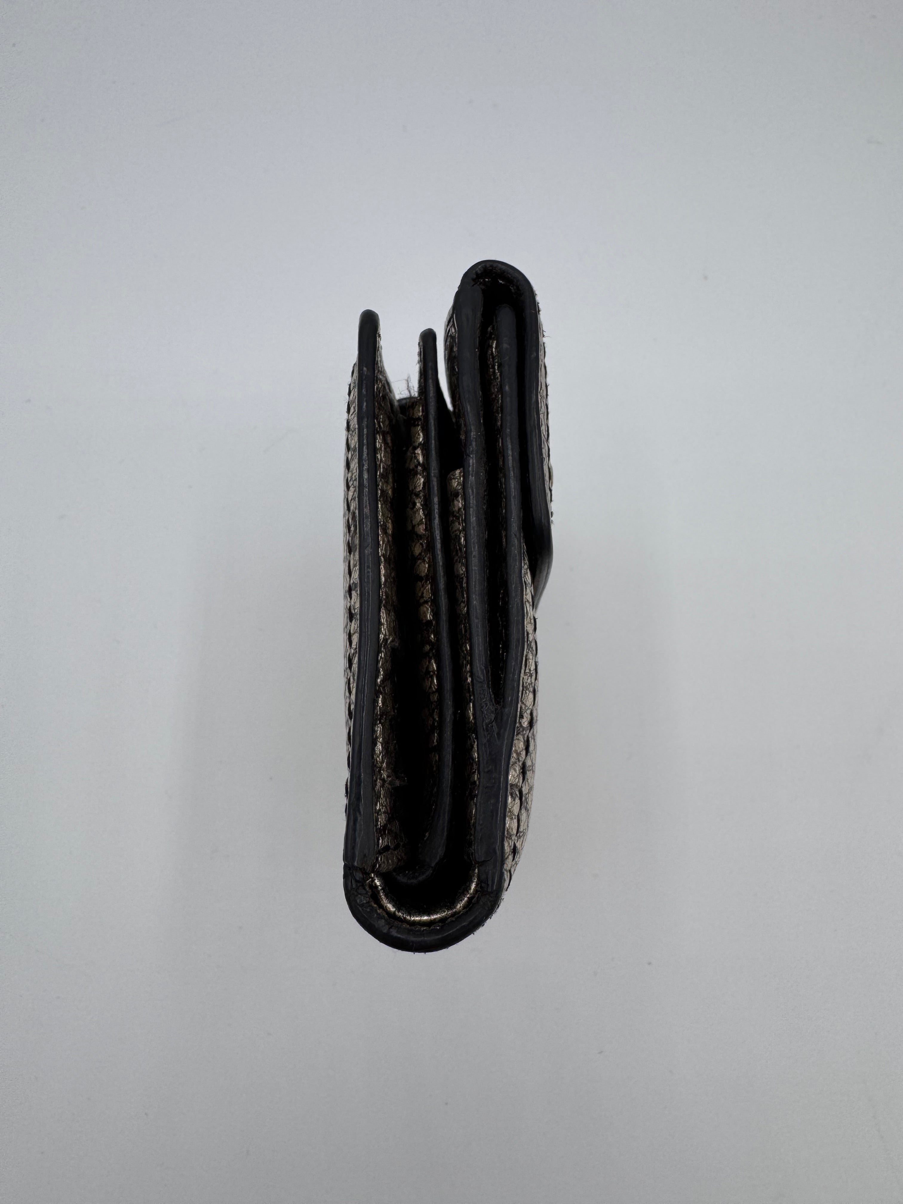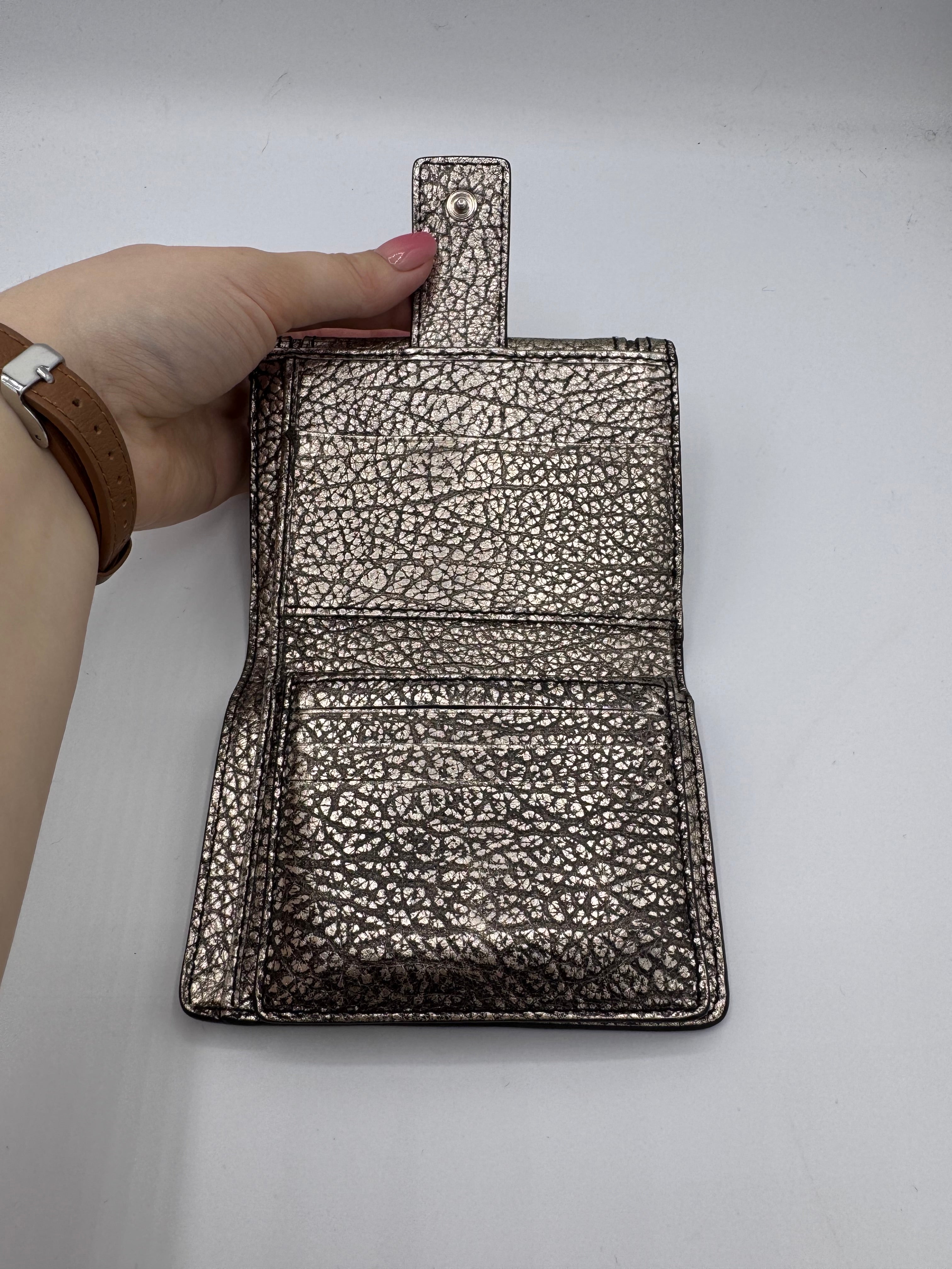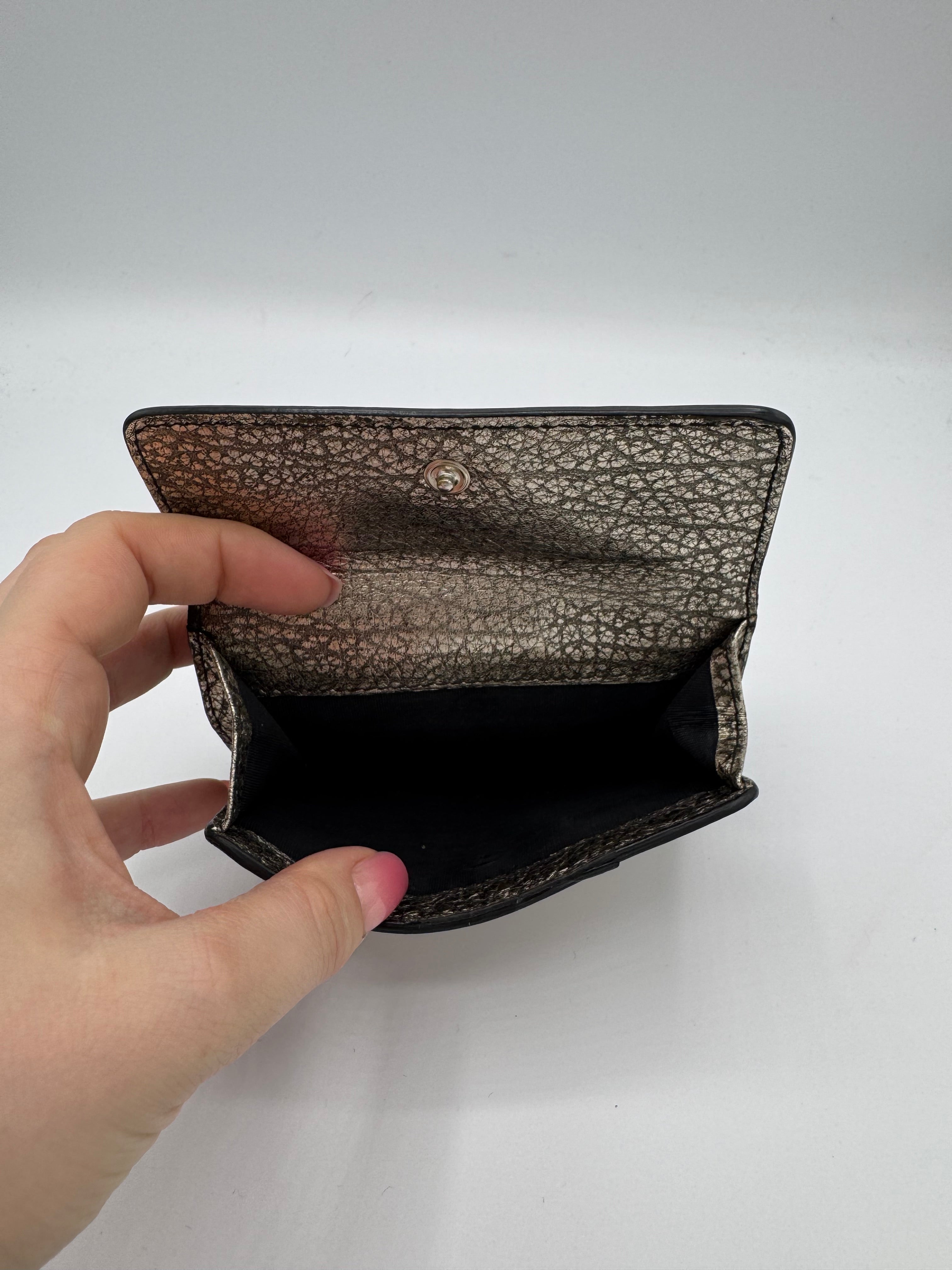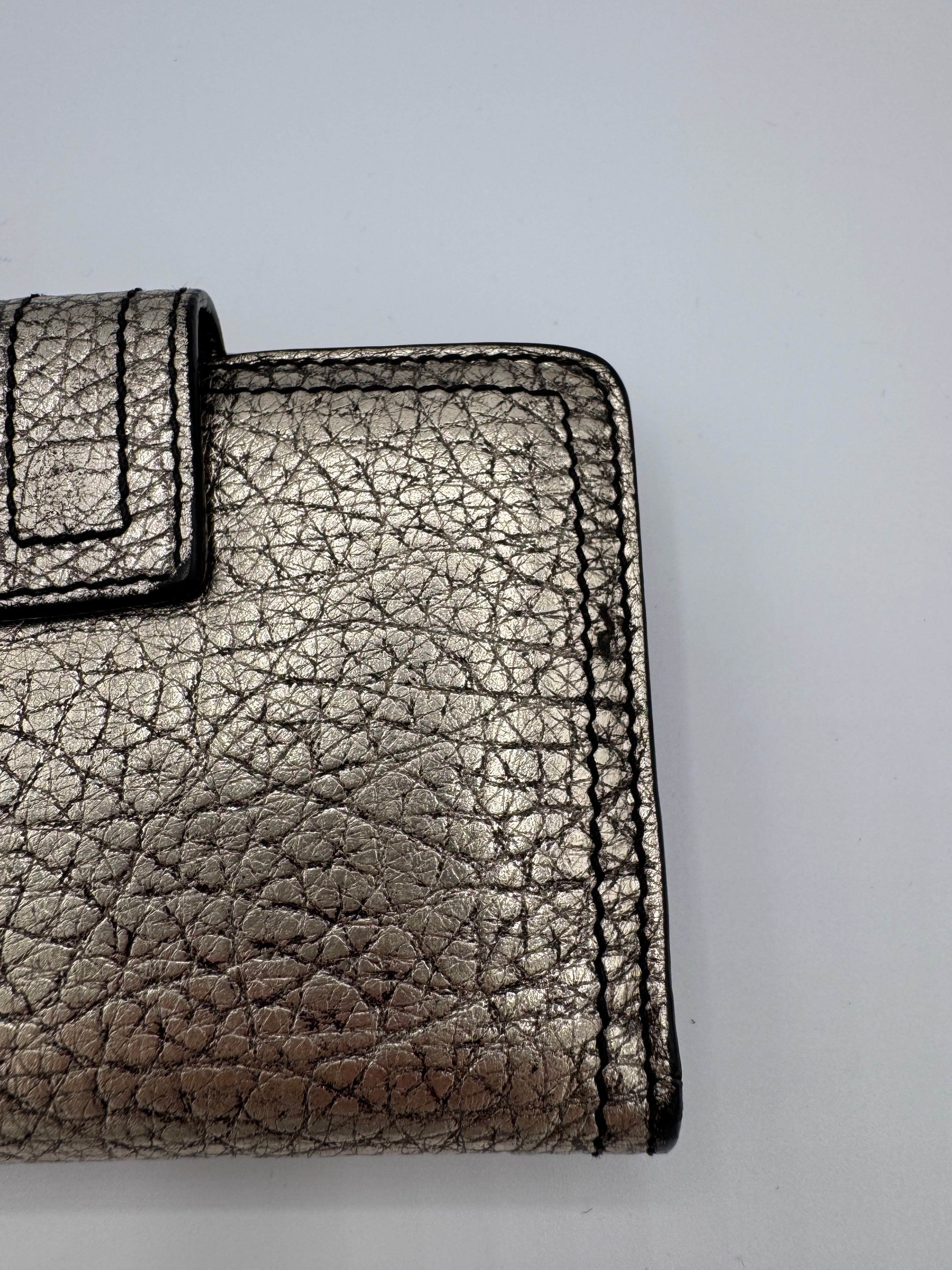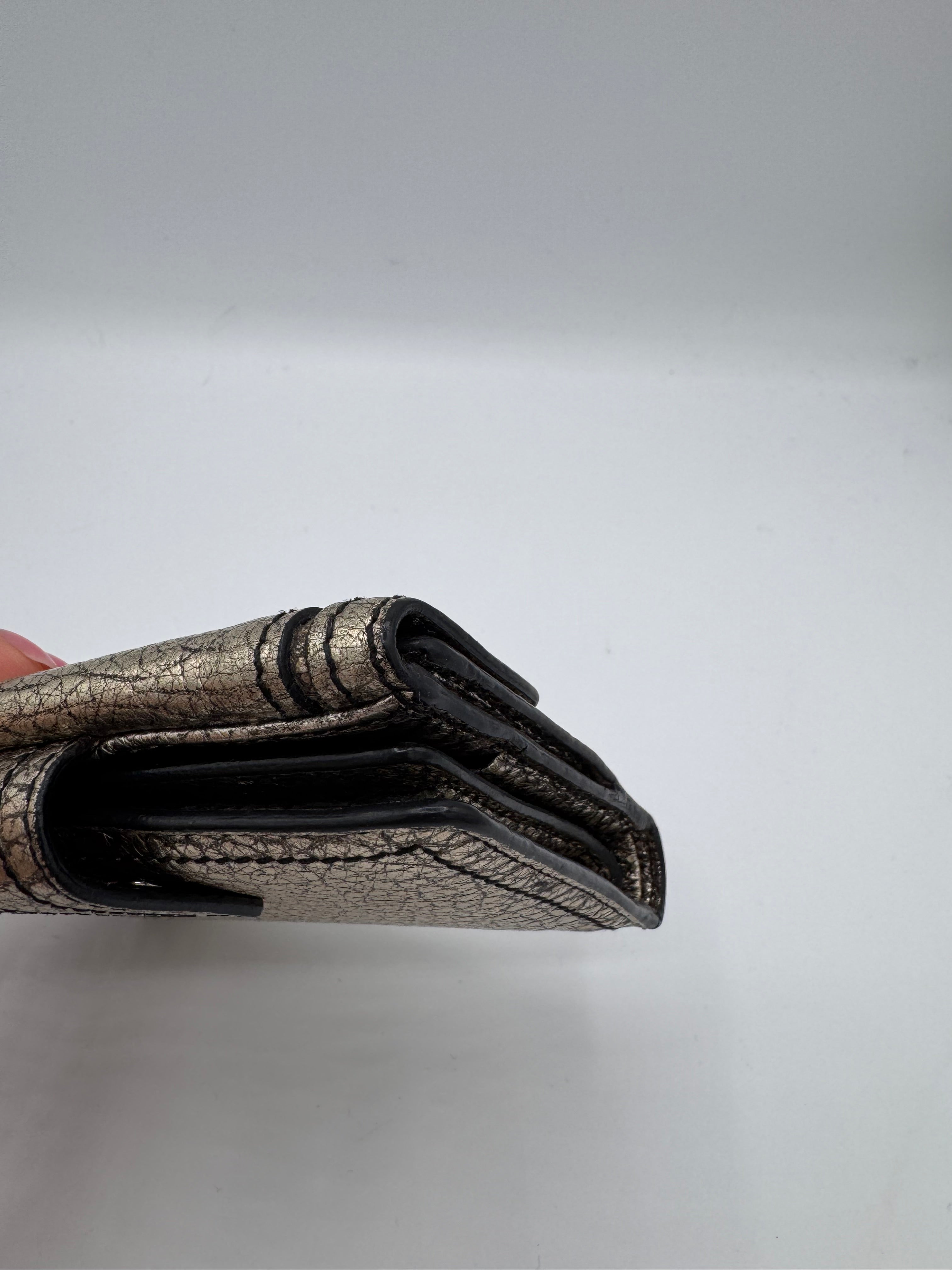 Portefeuille Celine couleur mordoré et noir en cuir de veau vielli, en très bon état.