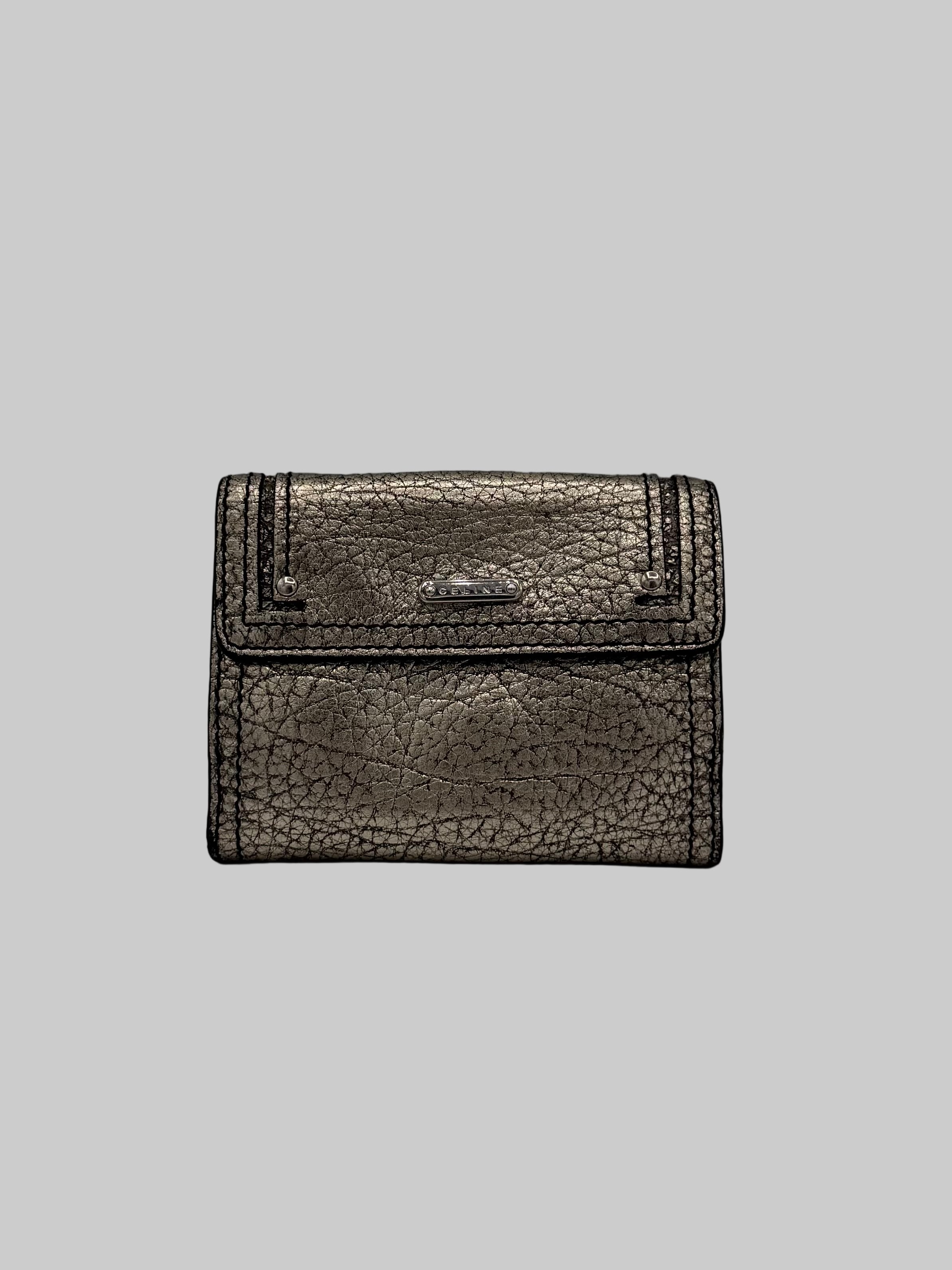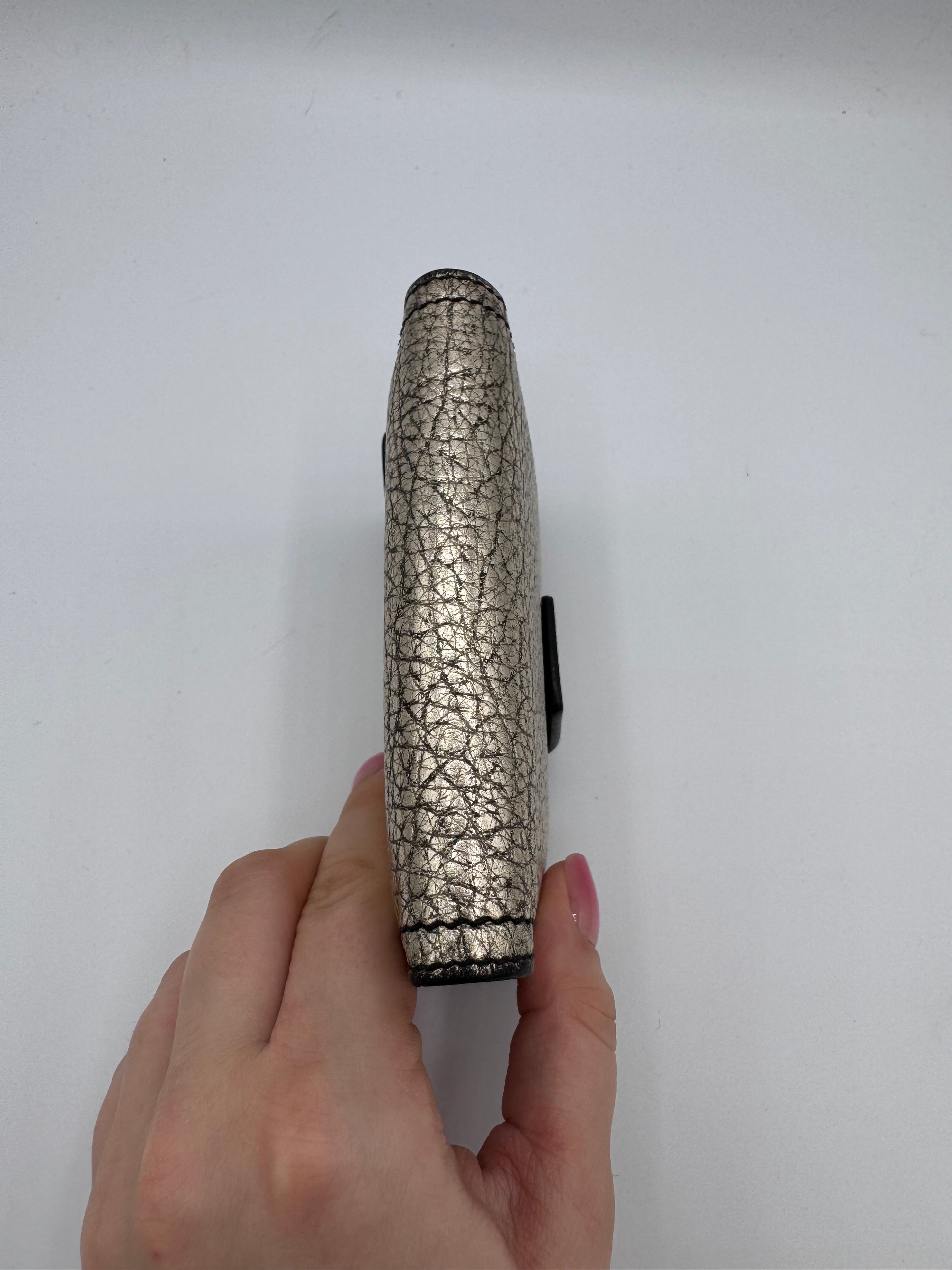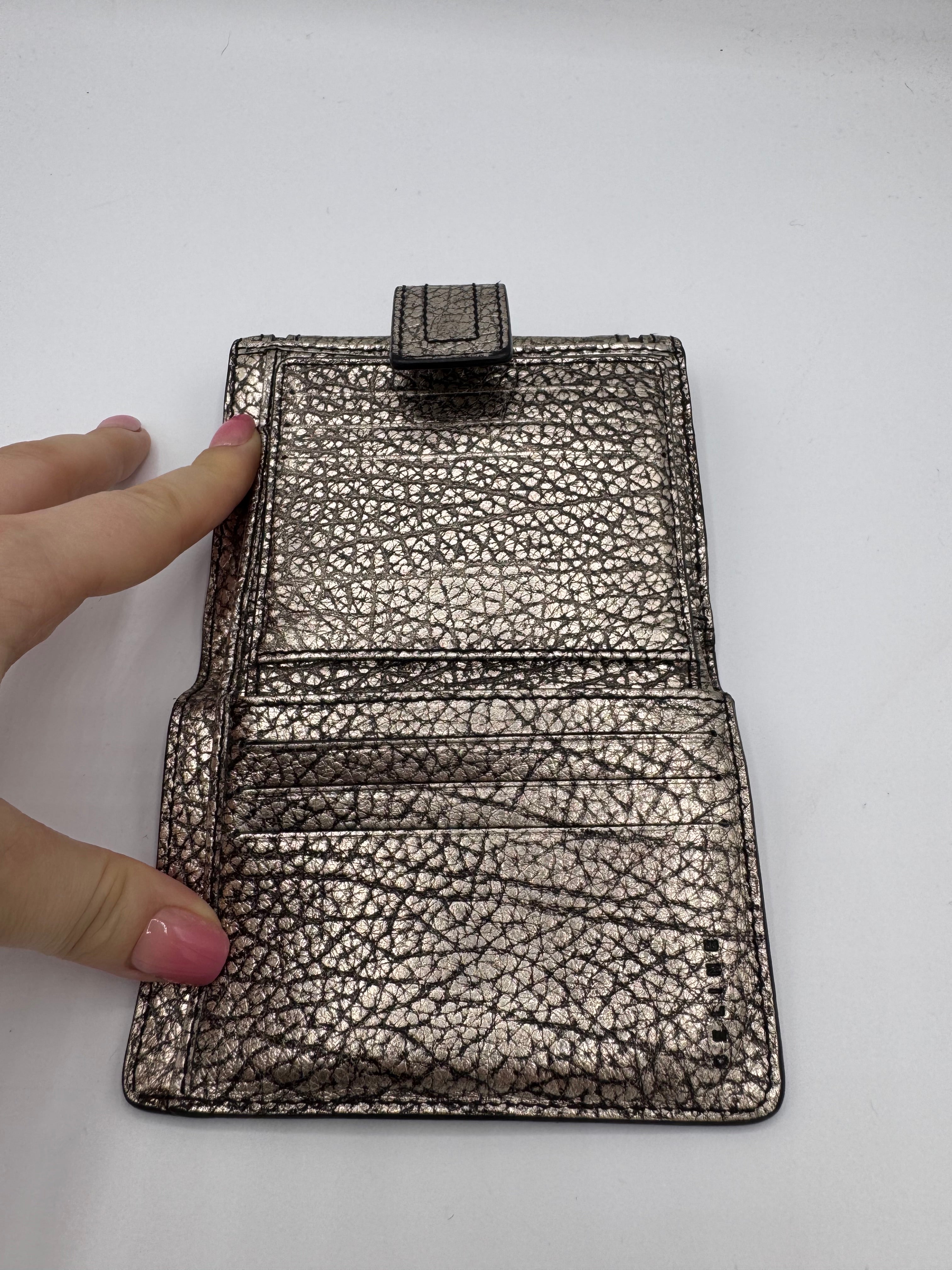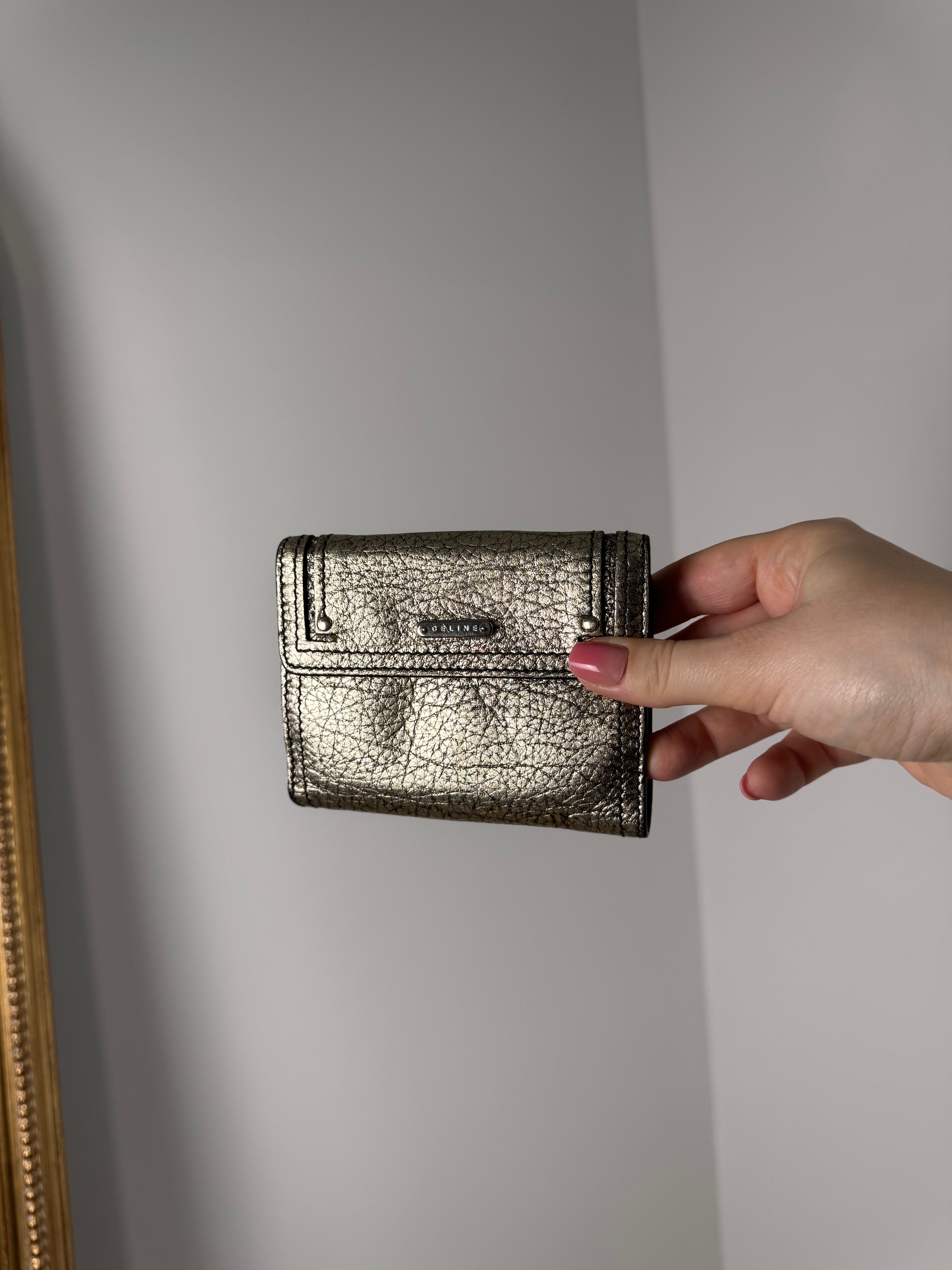 Portefeuille Celine couleur mordoré et noir en cuir de veau vielli, en très bon état.