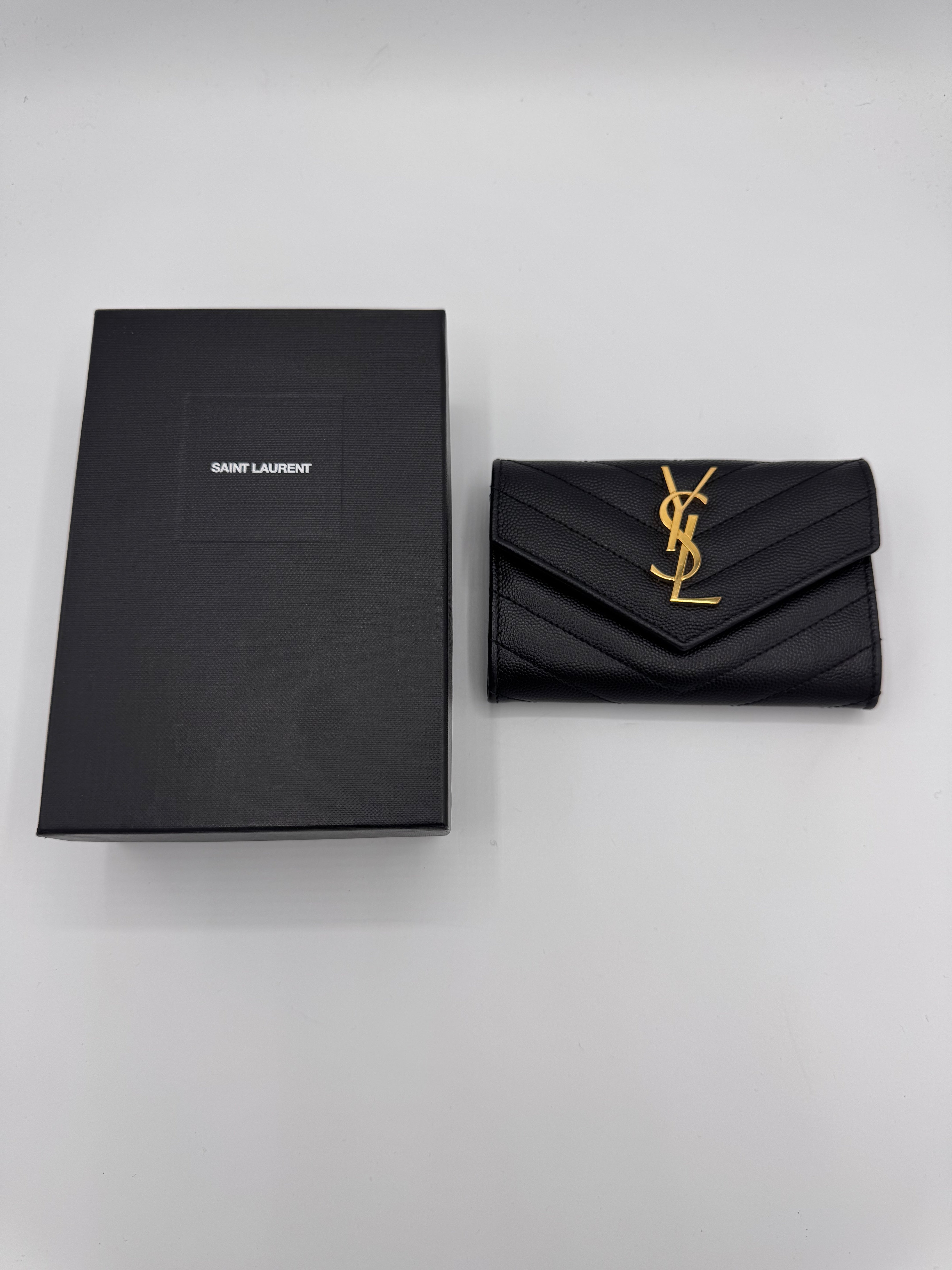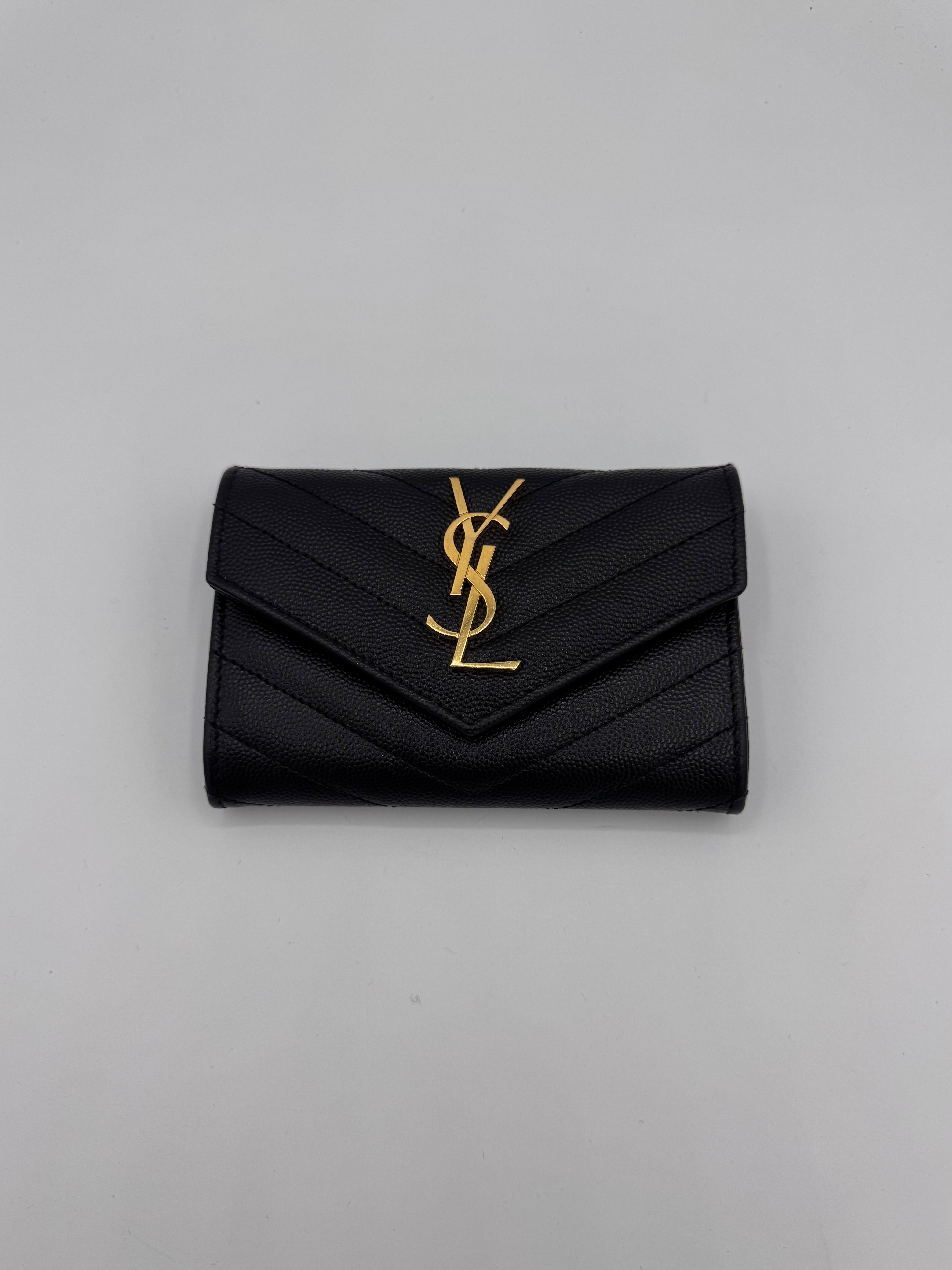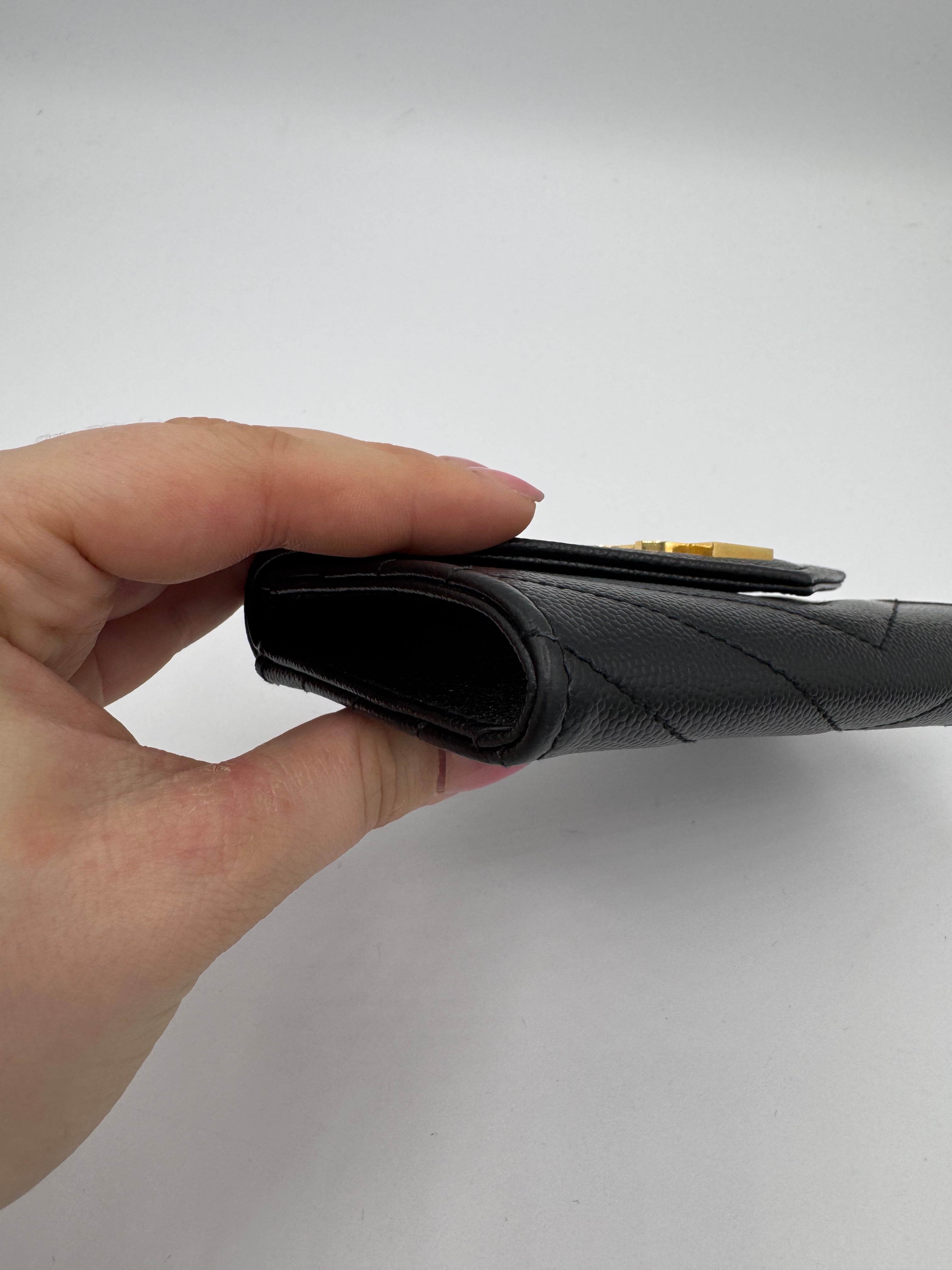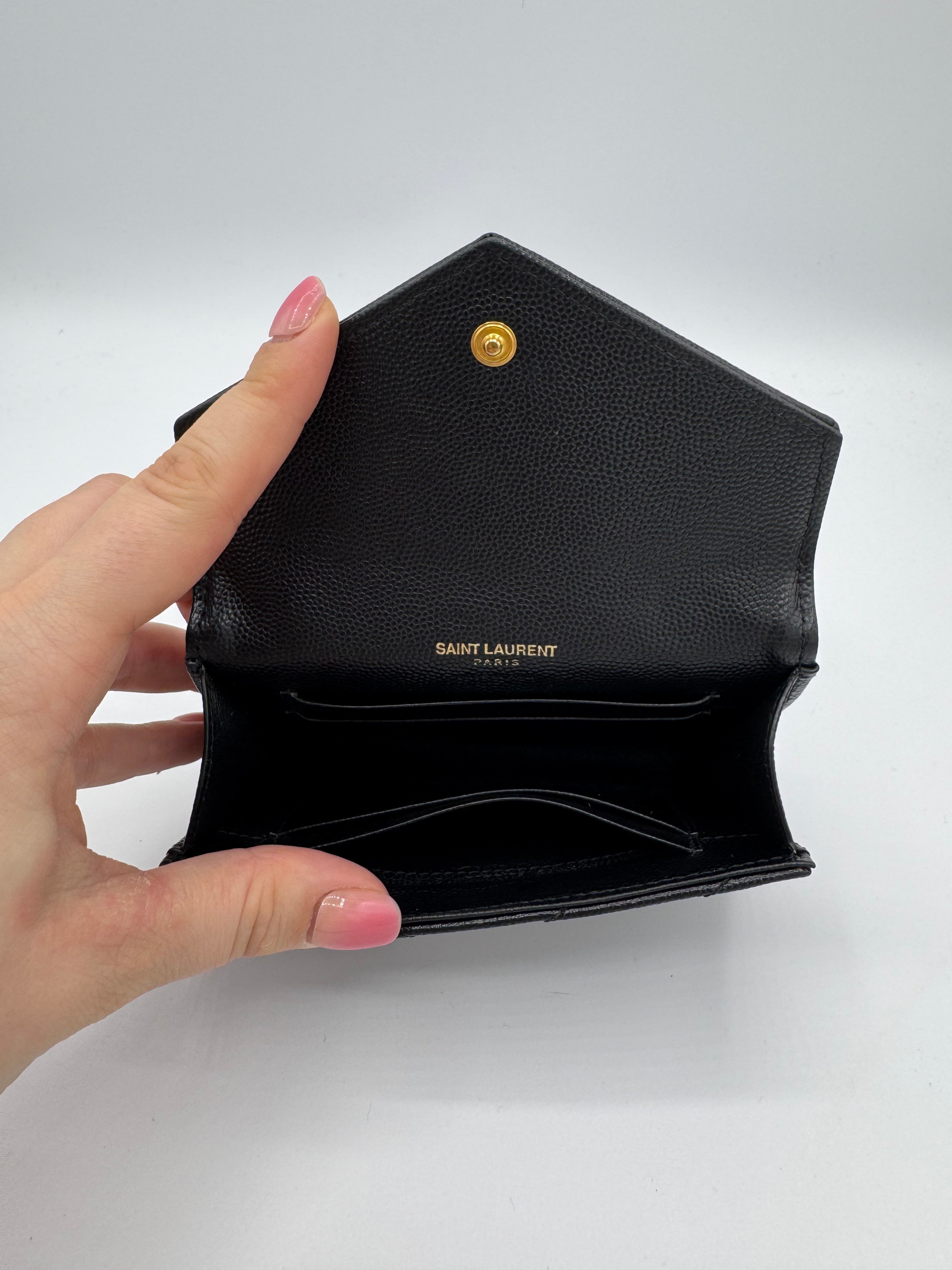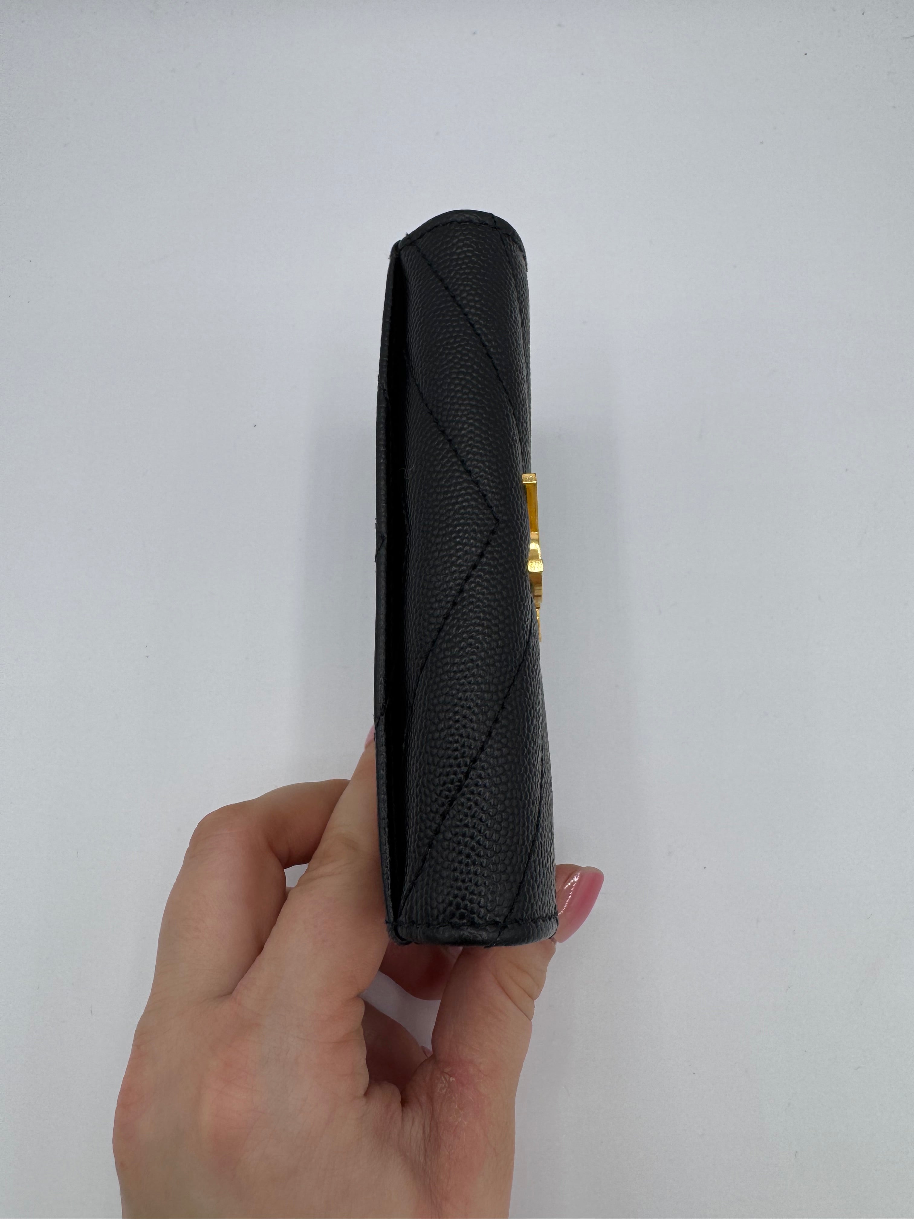 Portefeuille Cassandre de chez Saint Laurent en excellent état, traces extrêmement légères à l’intérieur du portefeuille et sur la bijouterie, visibles en photos.