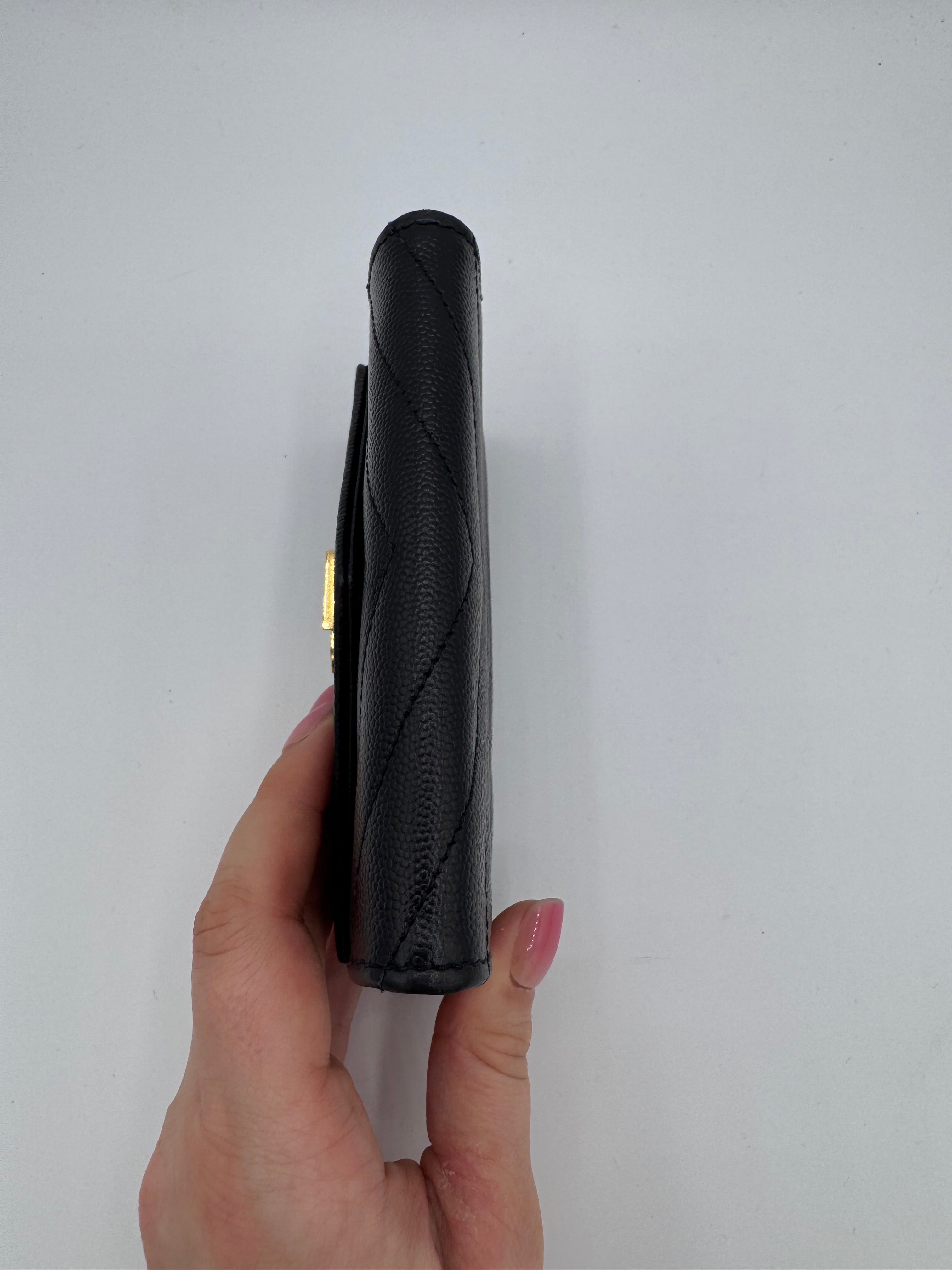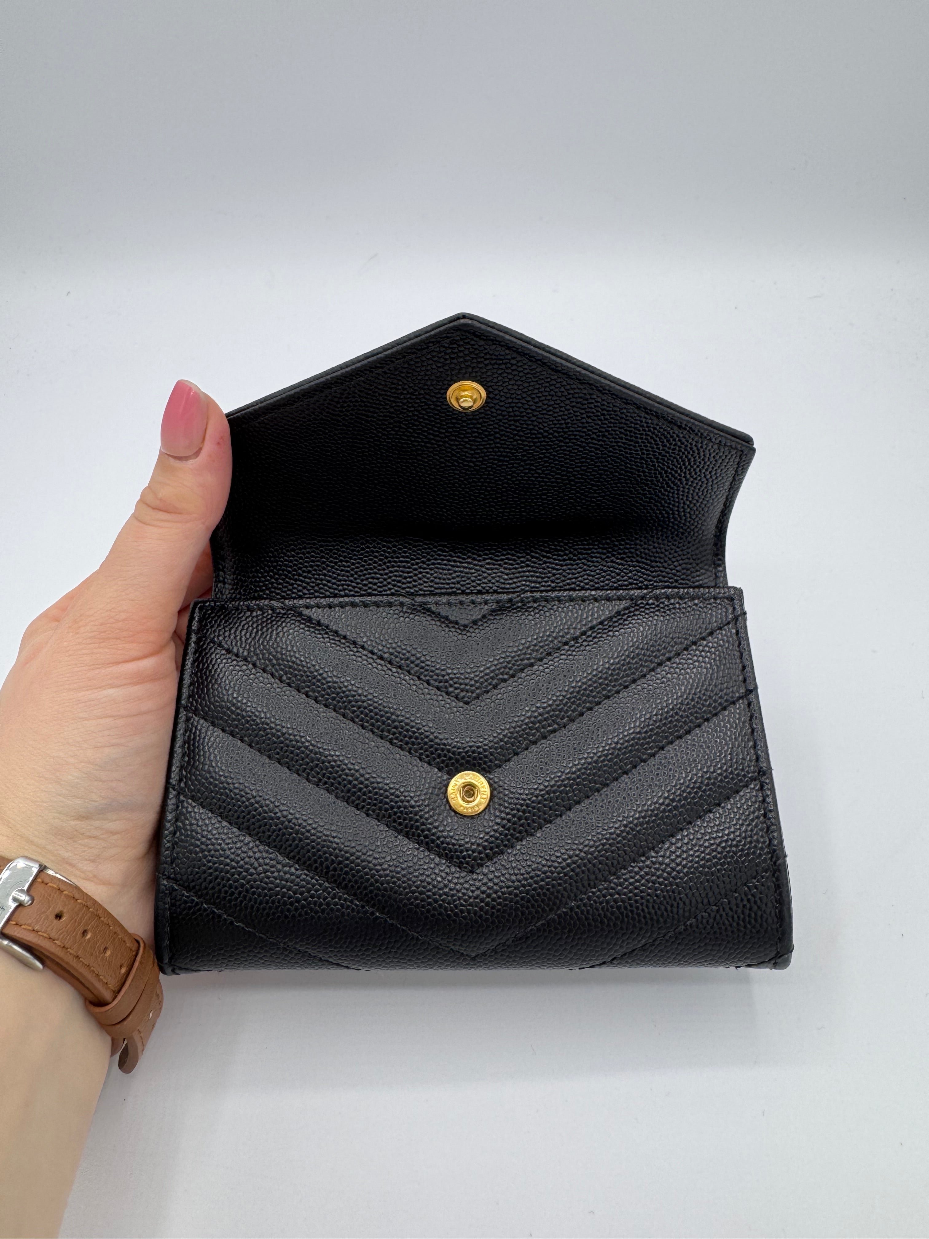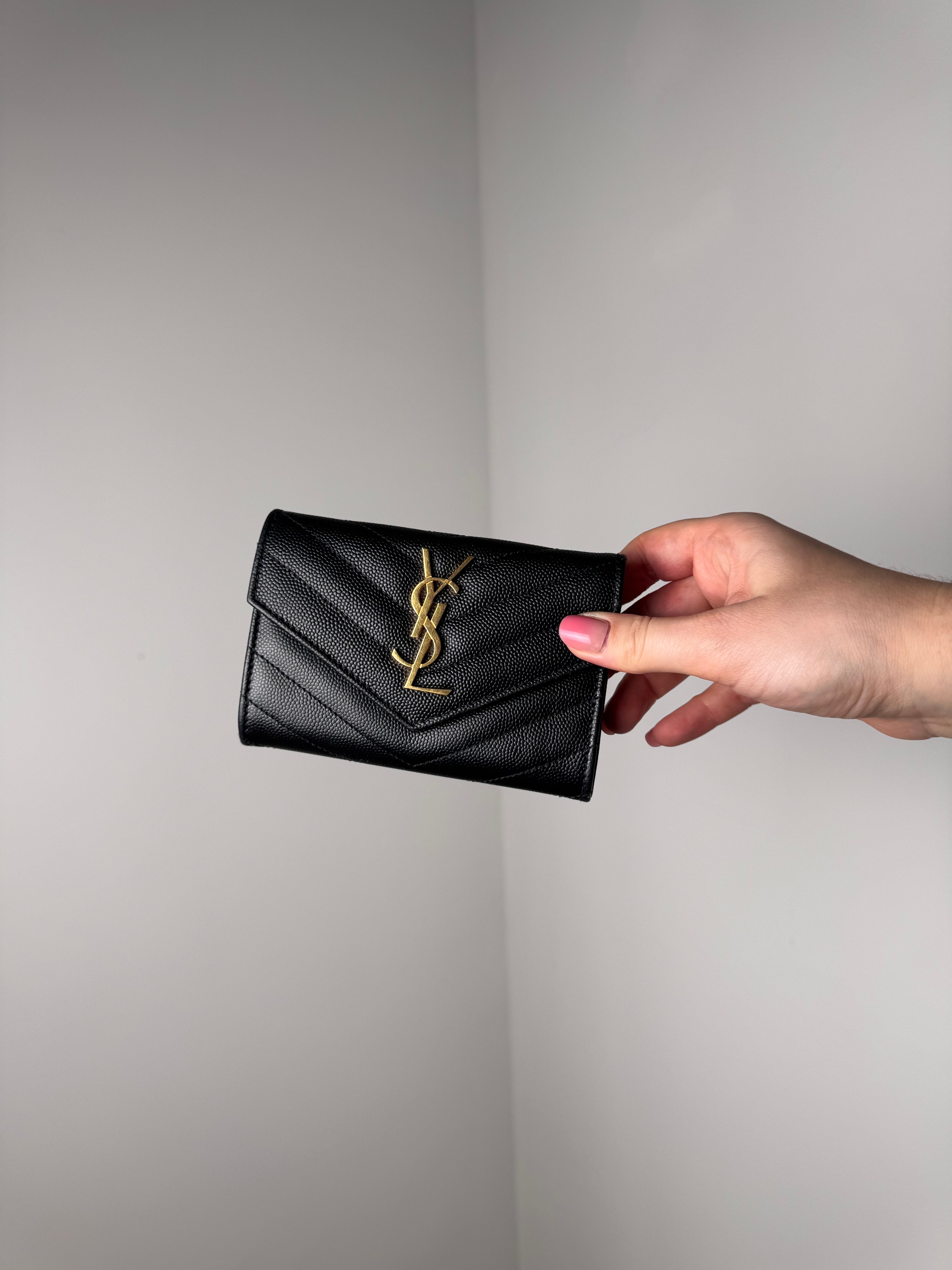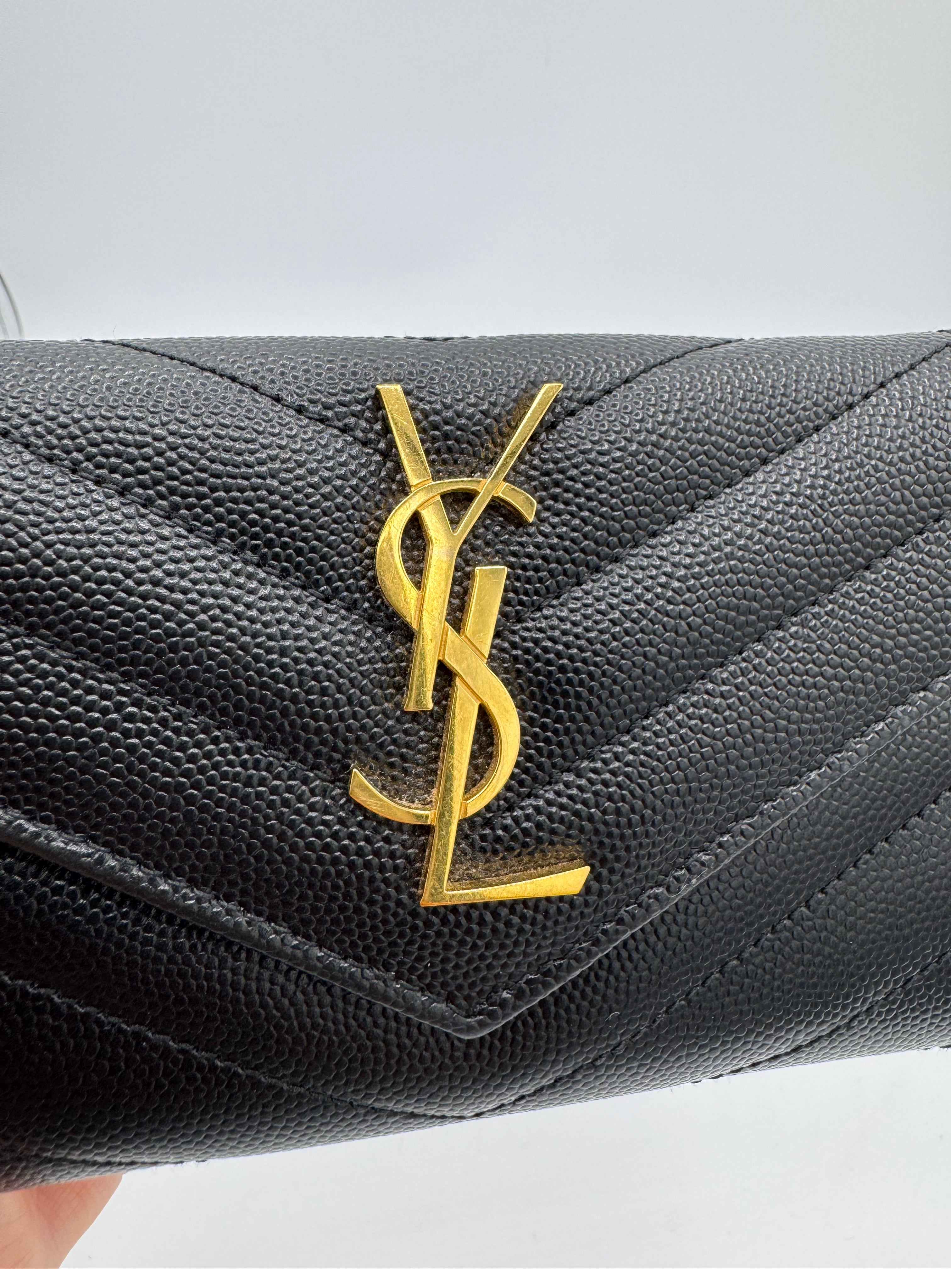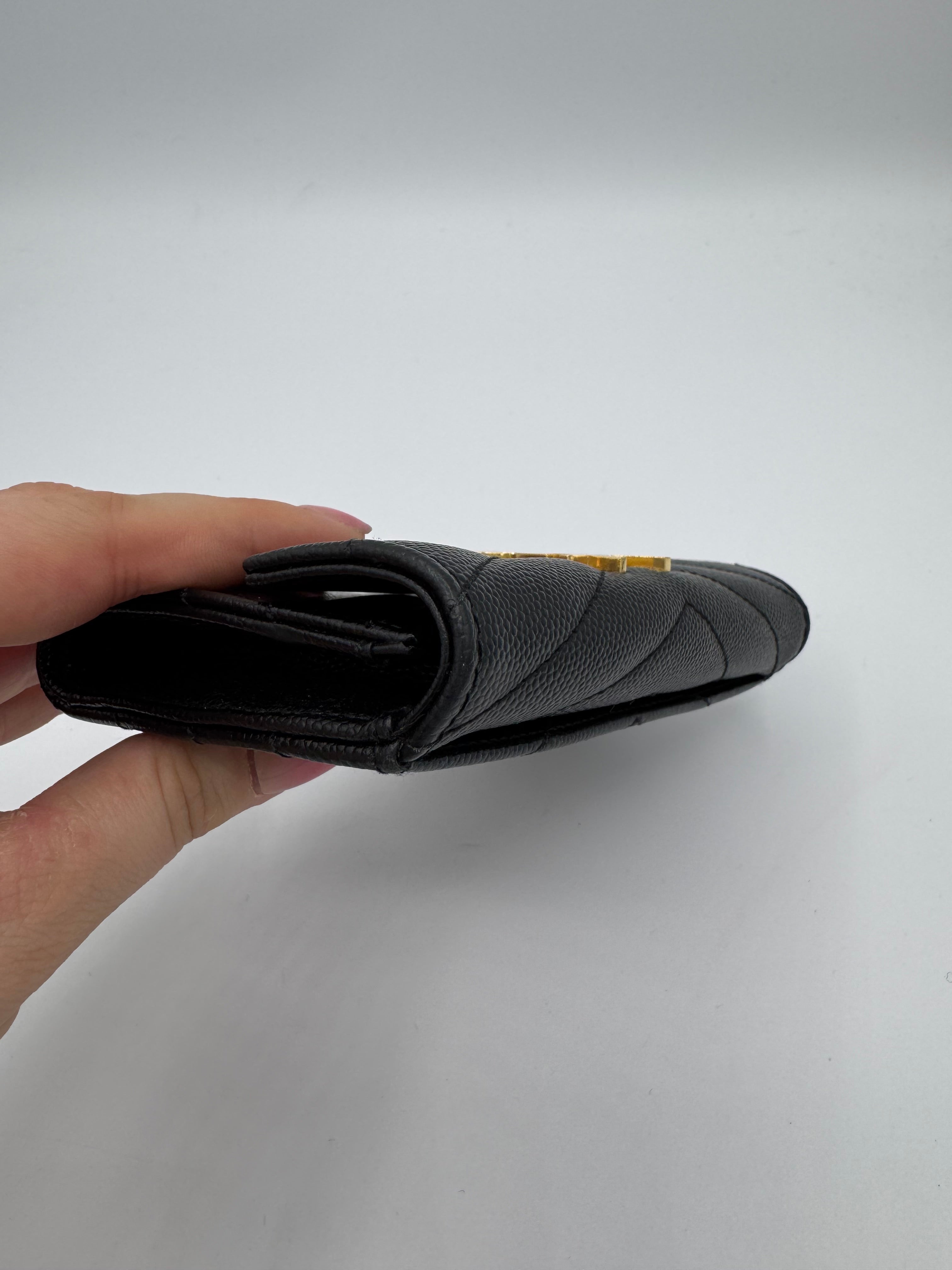 Portefeuille Cassandre de chez Saint Laurent en excellent état, traces extrêmement légères à l’intérieur du portefeuille et sur la bijouterie, visibles en photos.