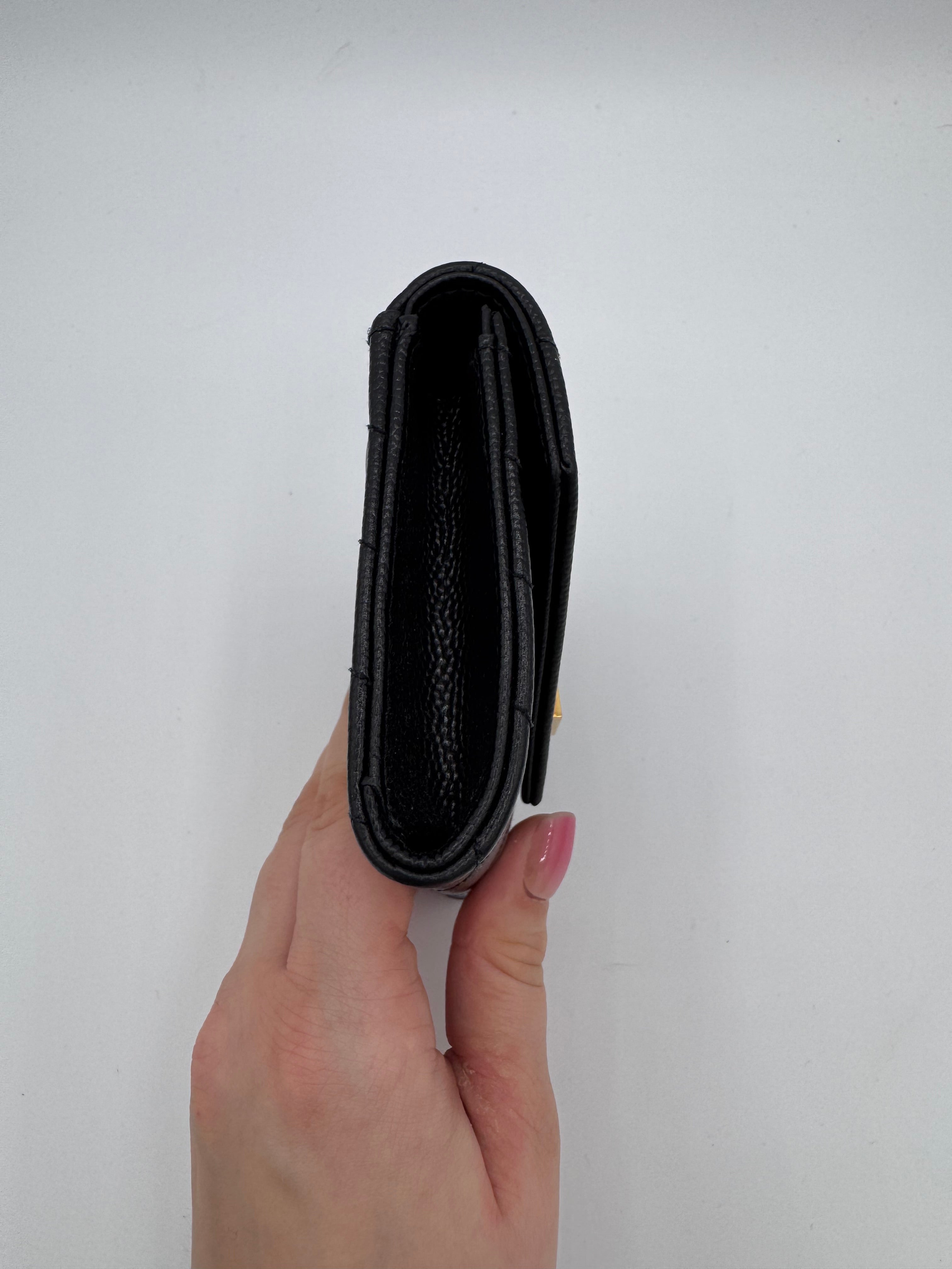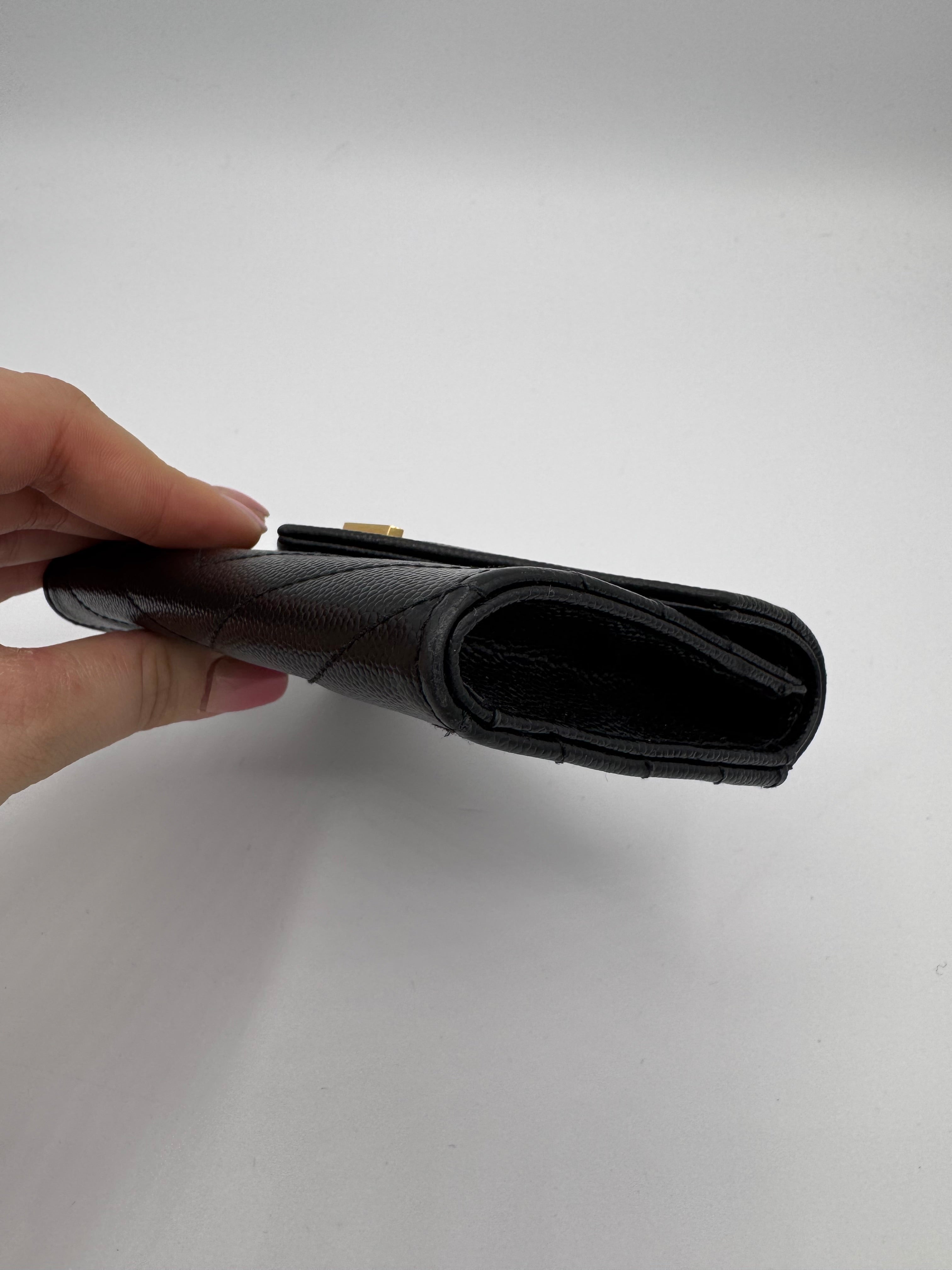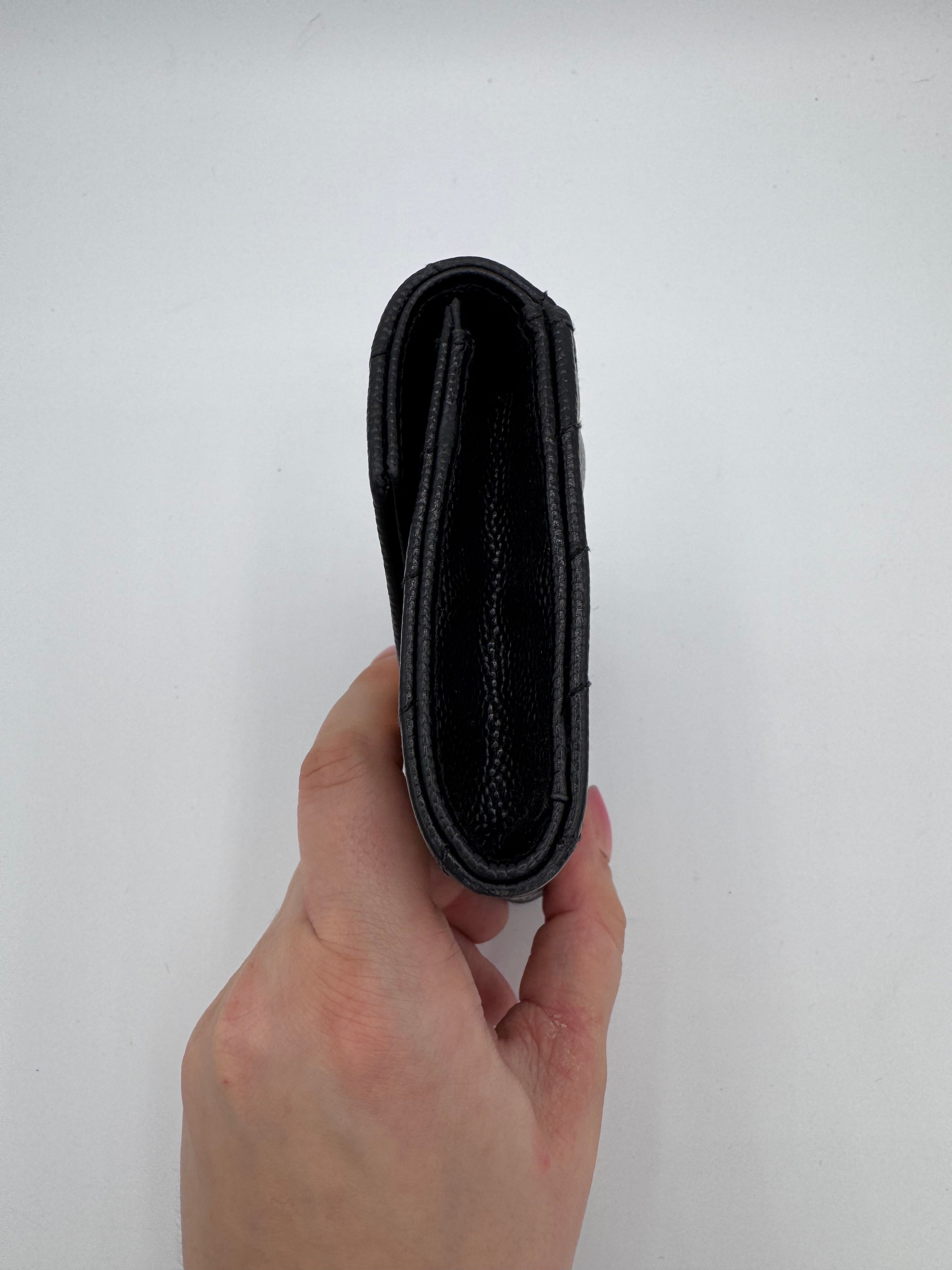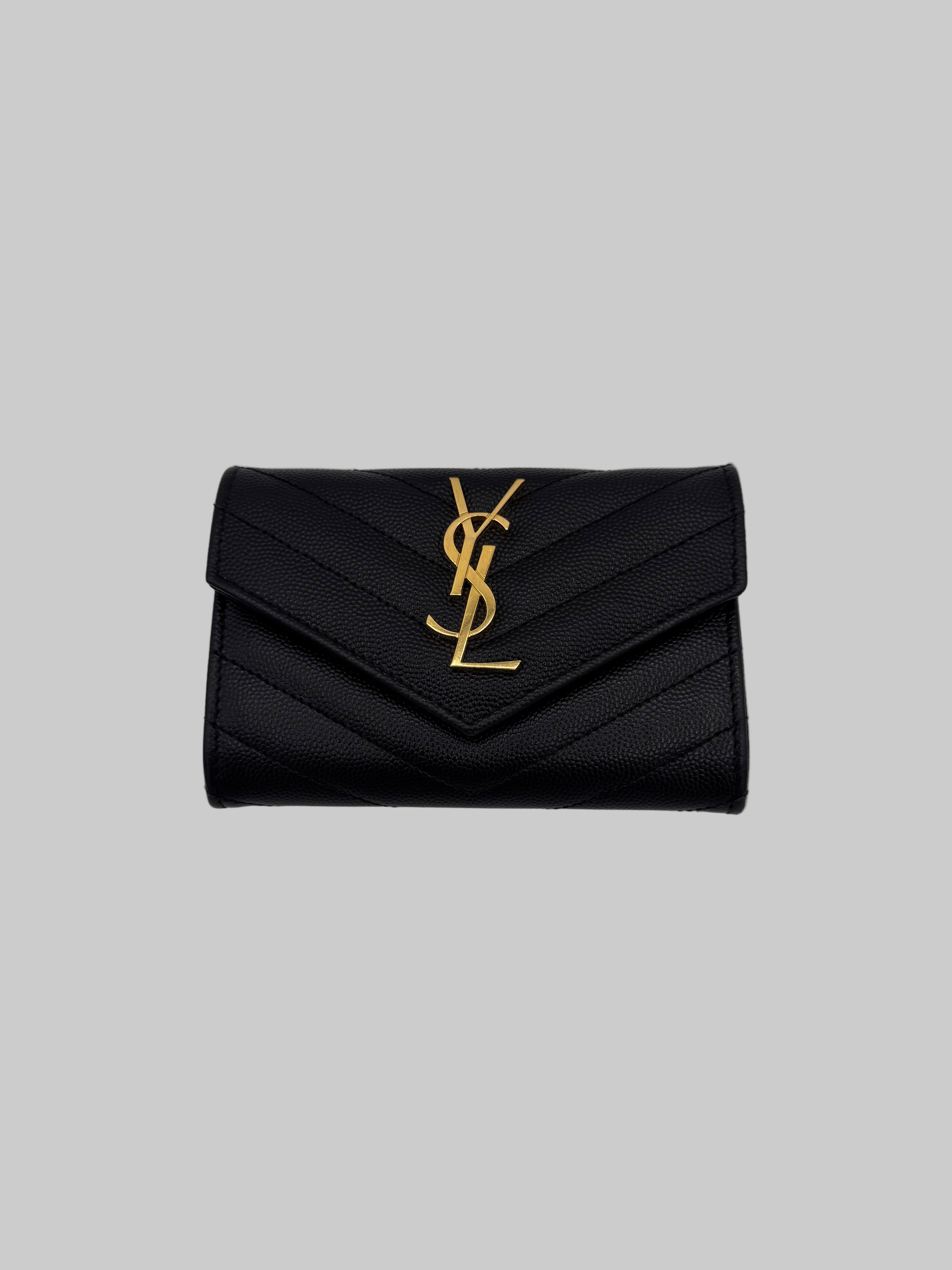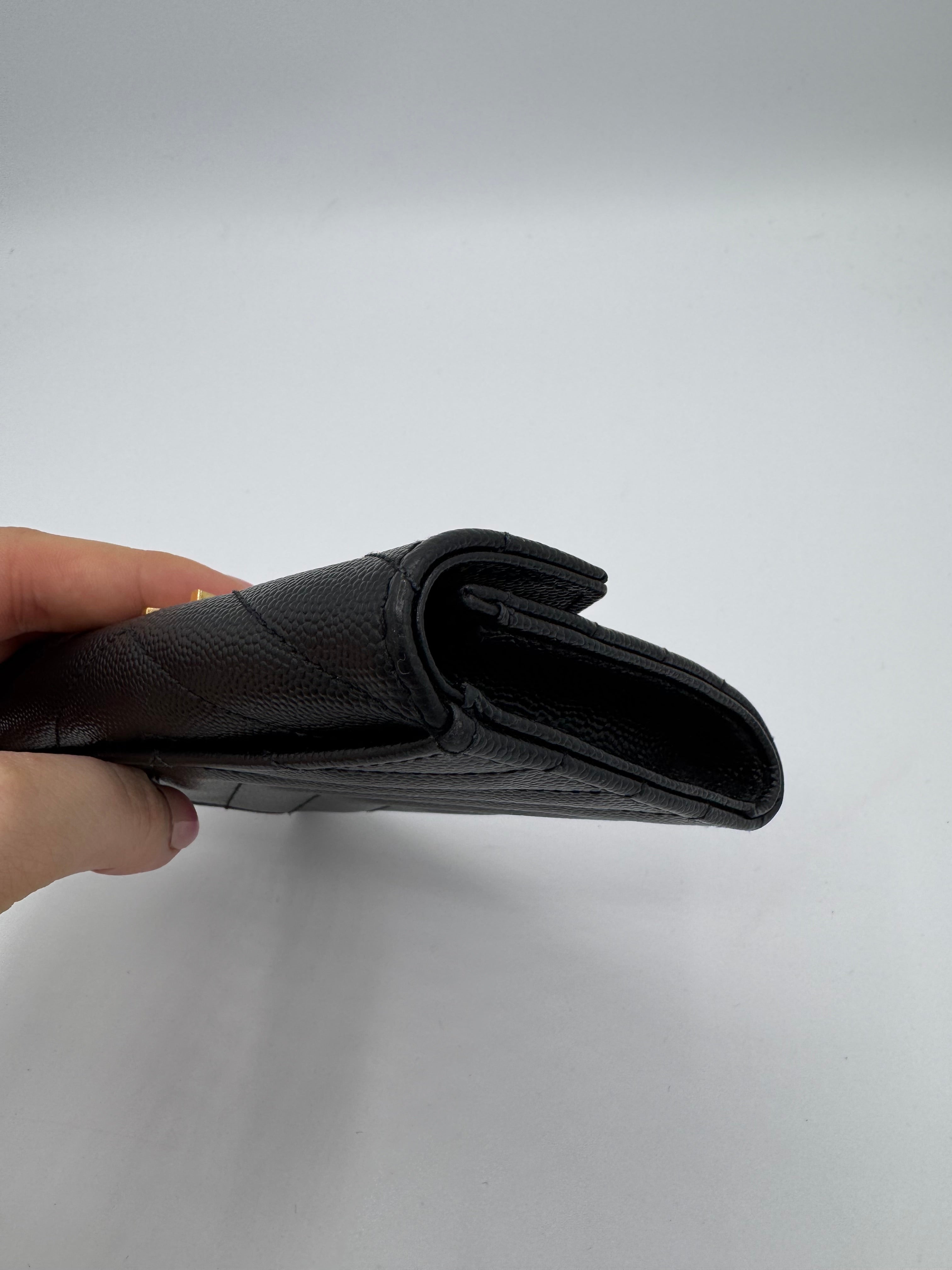 Portefeuille Cassandre de chez Saint Laurent en excellent état, traces extrêmement légères à l’intérieur du portefeuille et sur la bijouterie, visibles en photos.