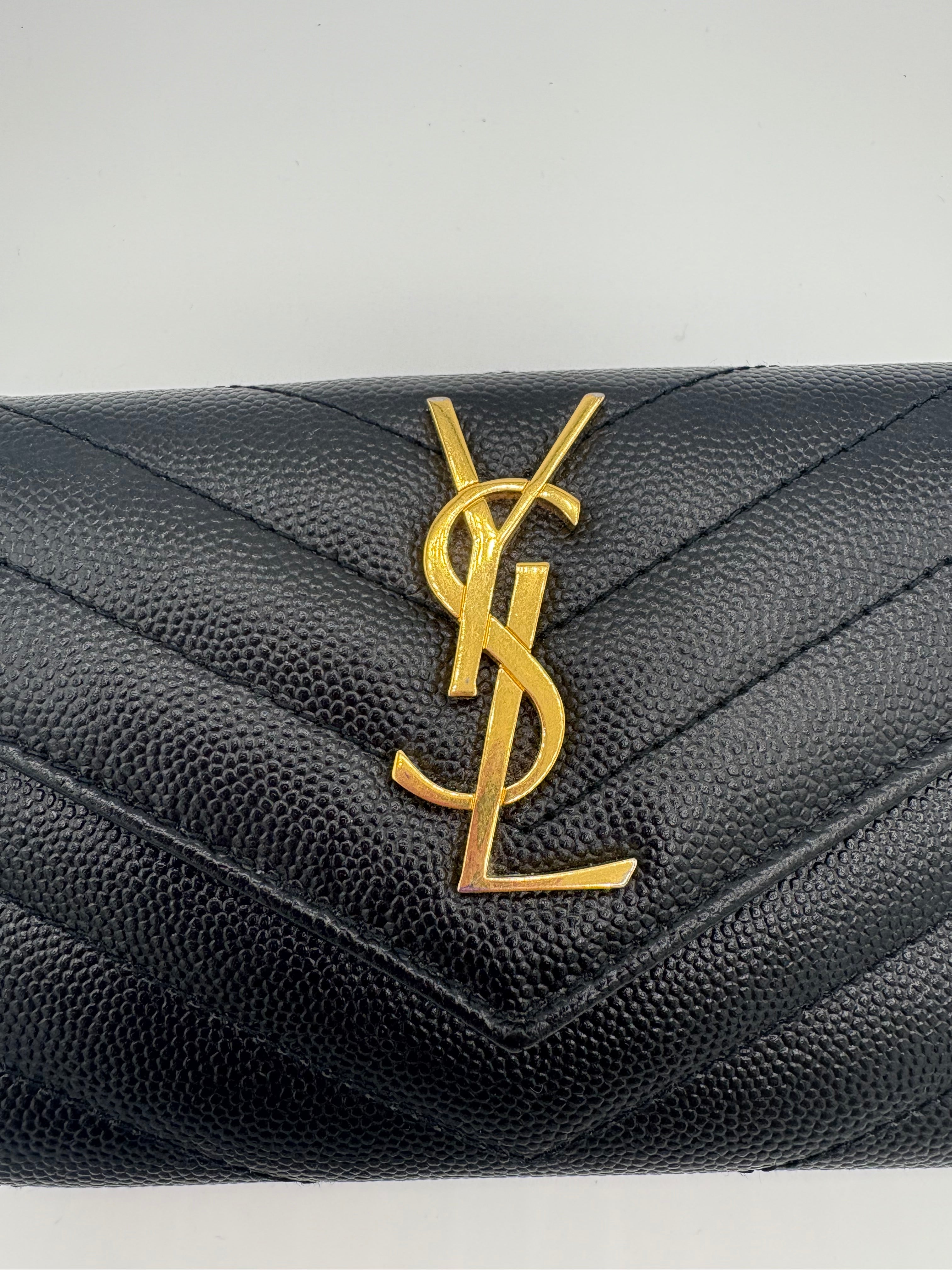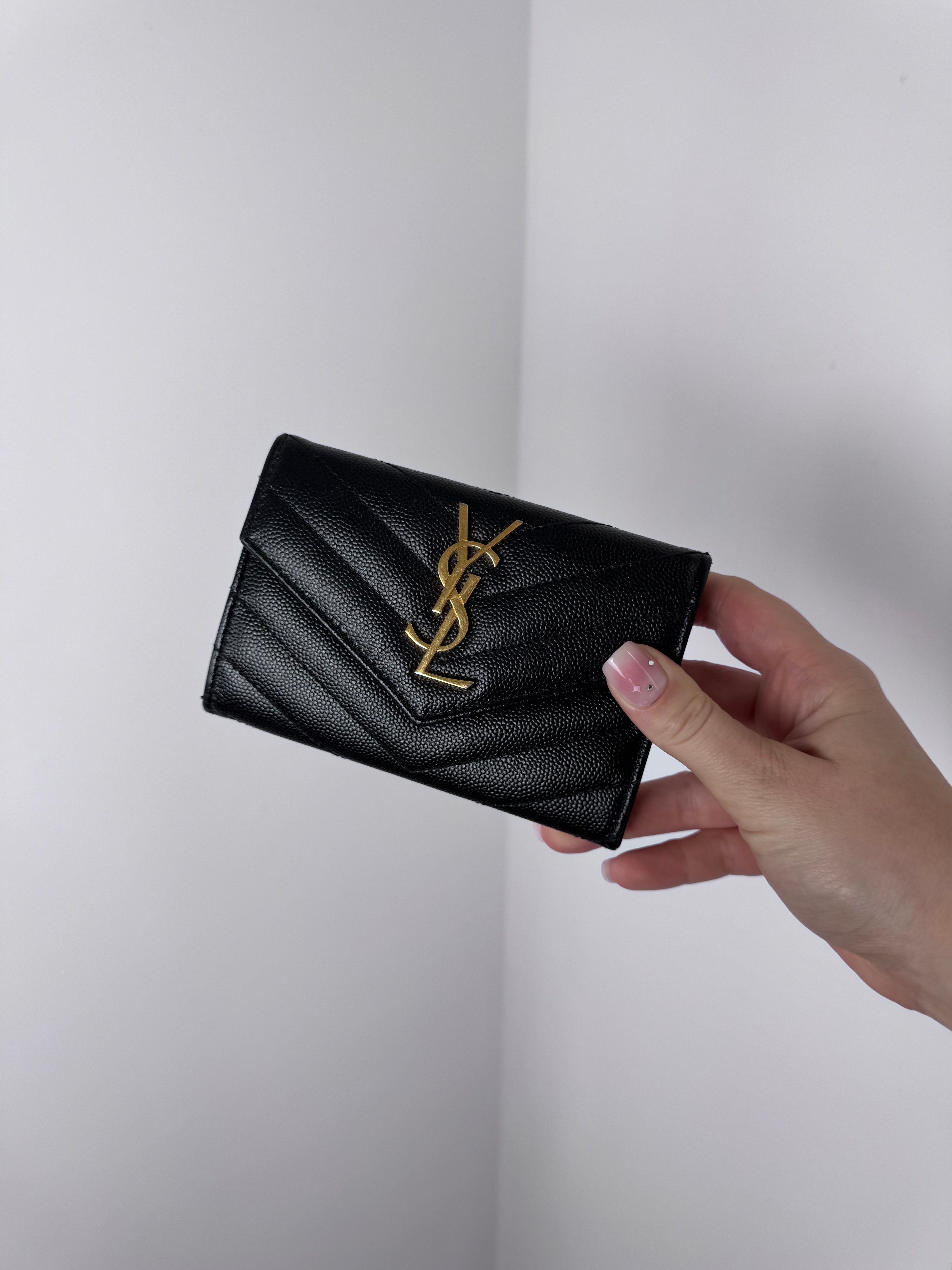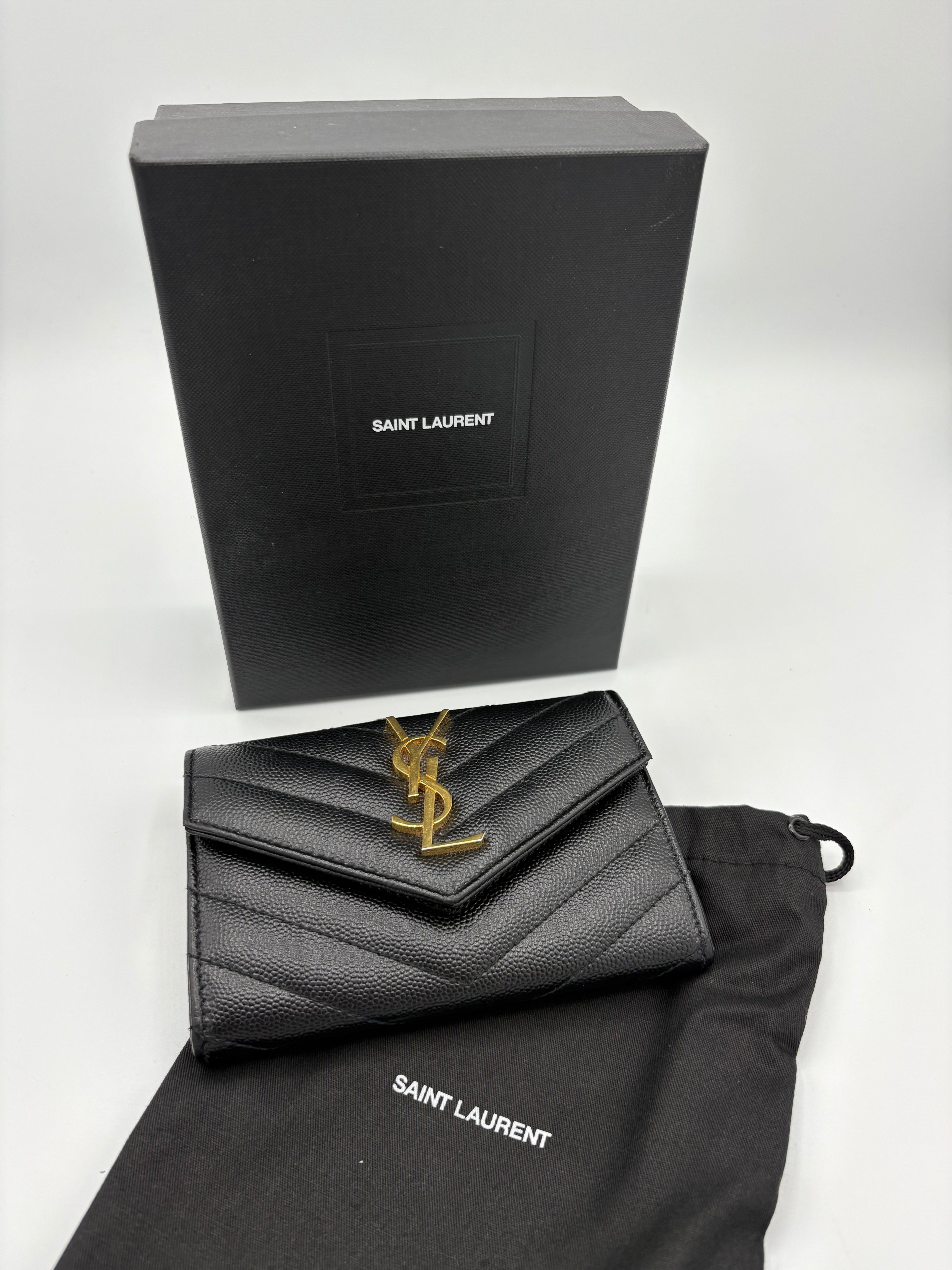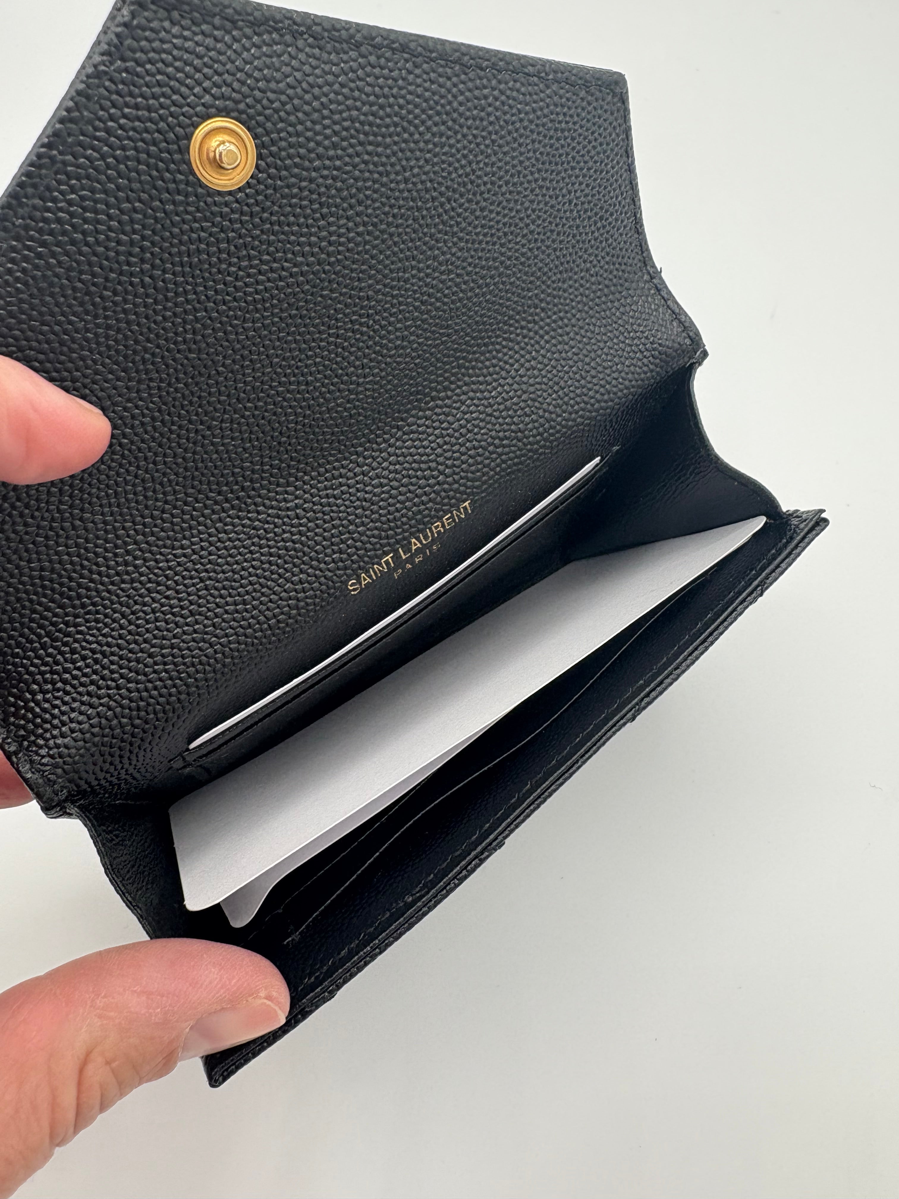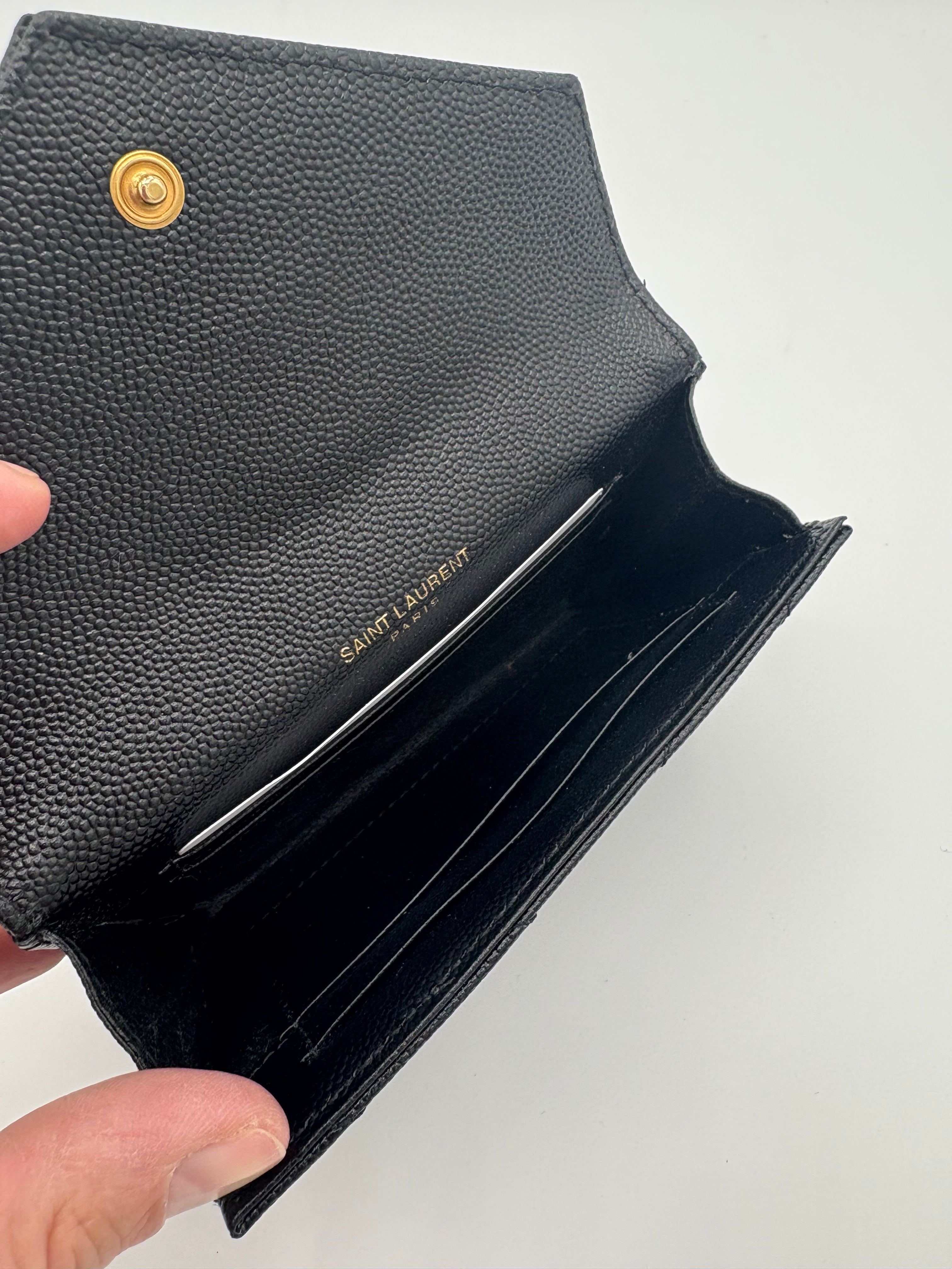 Portefeuille Cassandre de chez Saint Laurent en excellent état, traces extrêmement légères à l’intérieur du portefeuille.