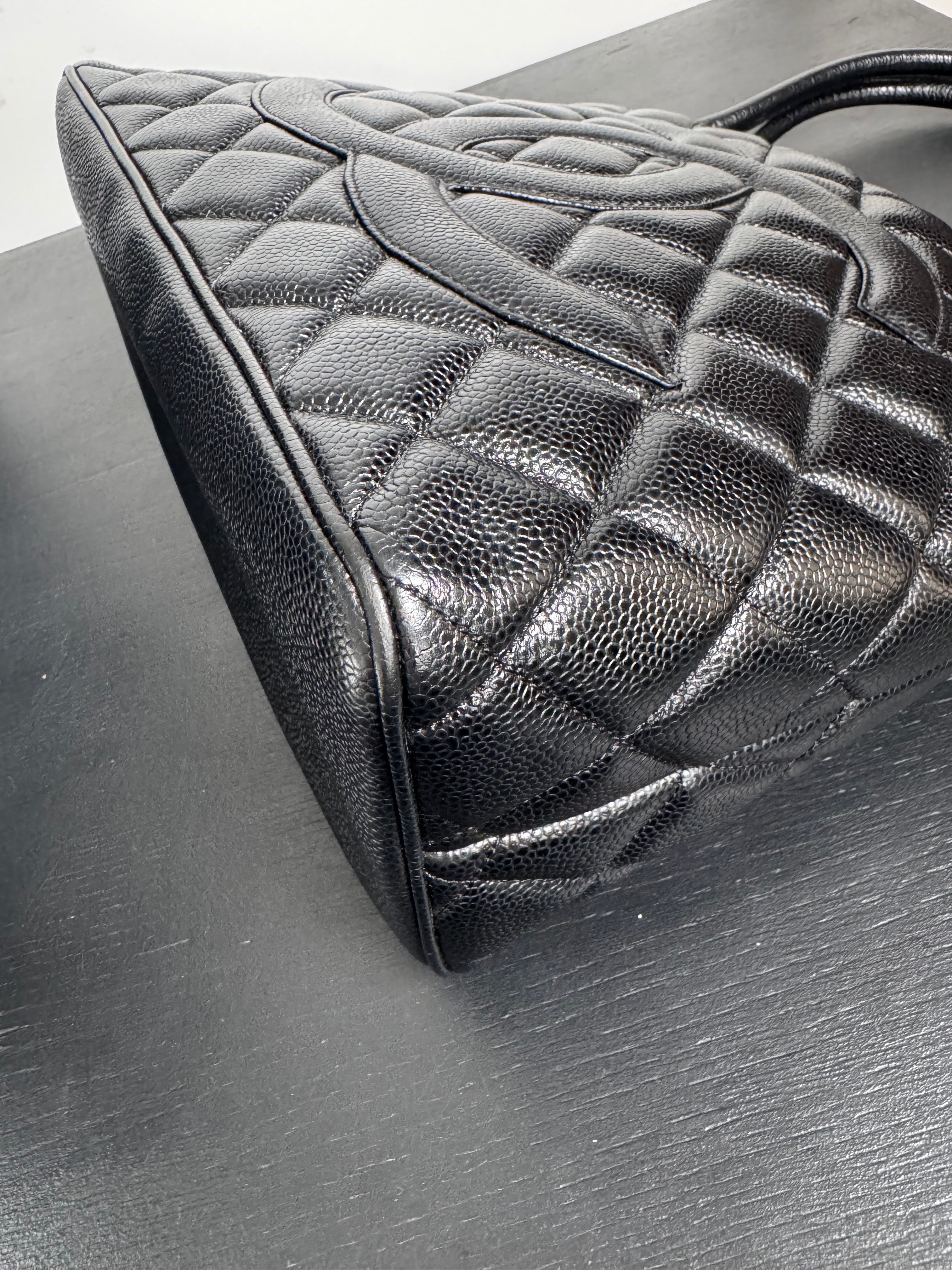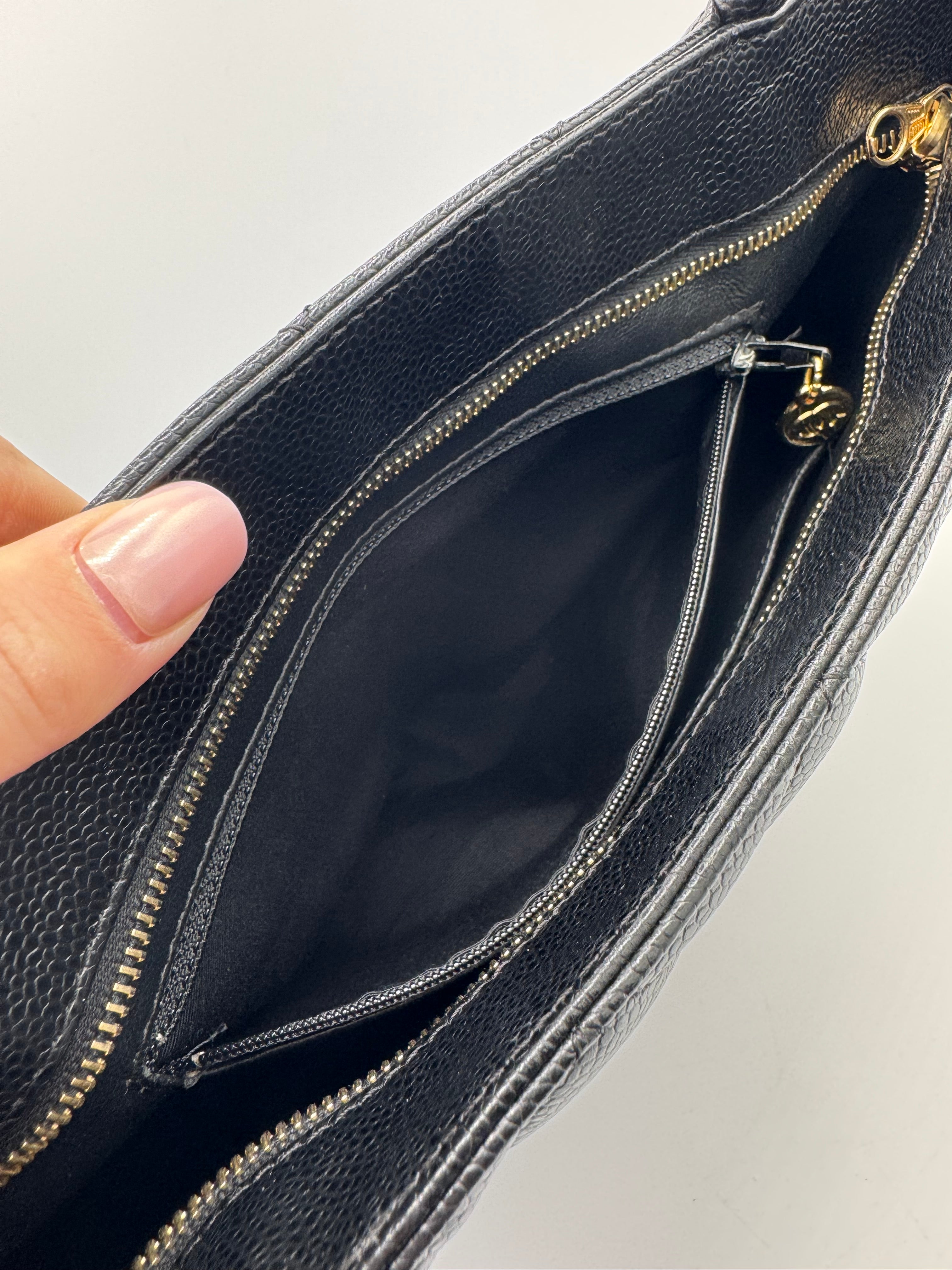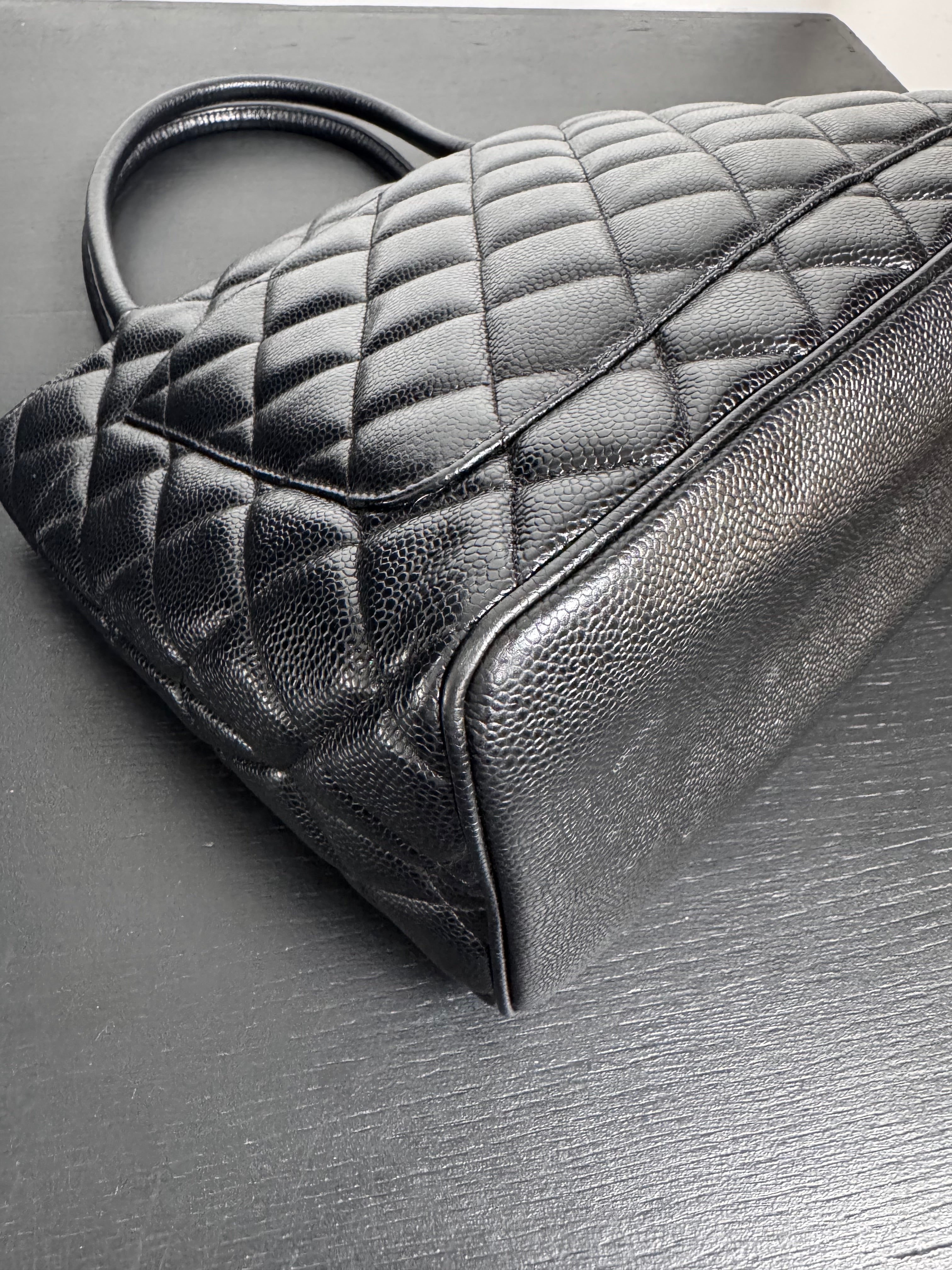Uniquement quelques très légères traces sur le socle et à l'intérieur en cuir noir. (Photos) Bijouterie dorée comportant quelques micro-rayures. (Photos)