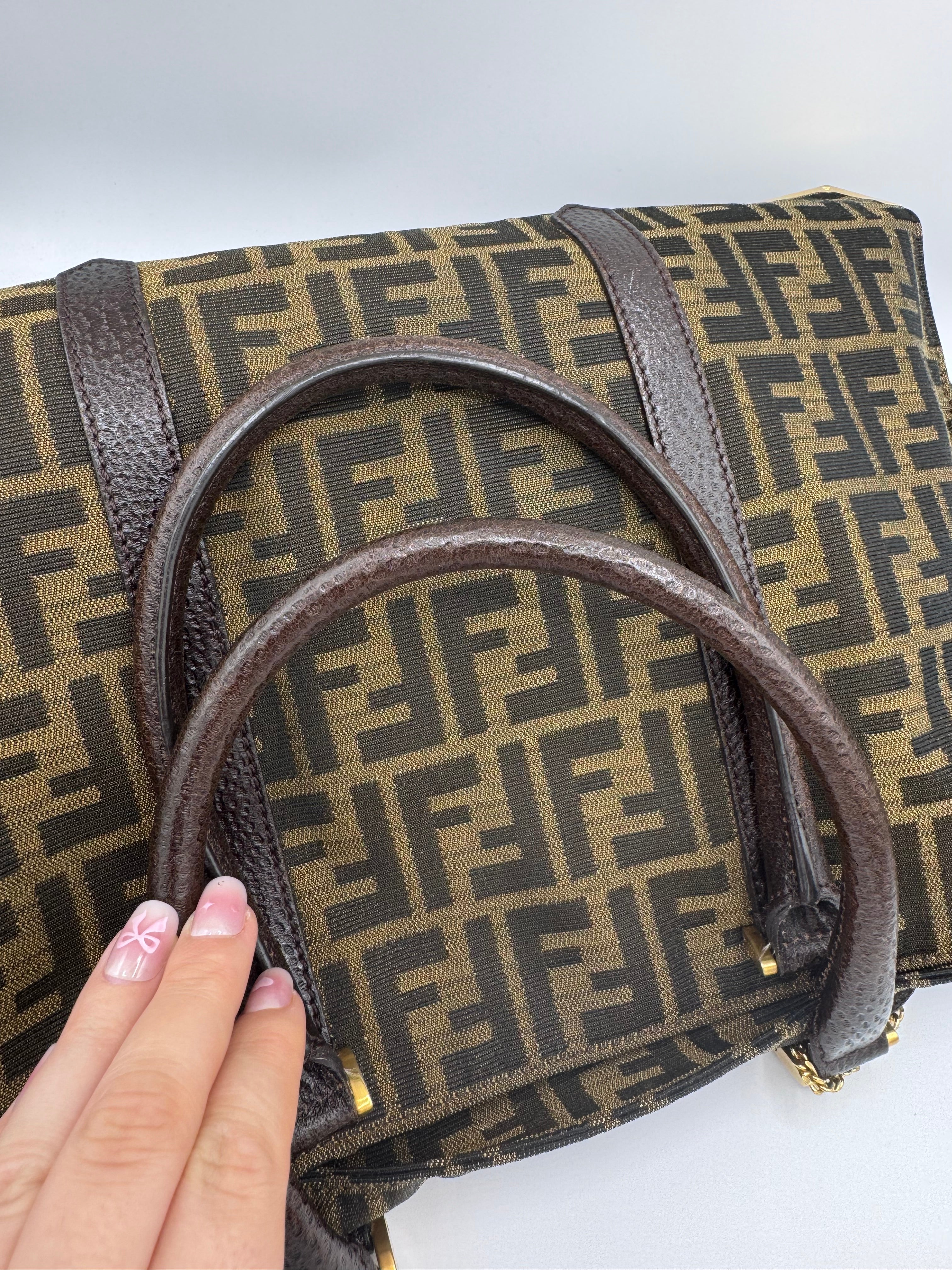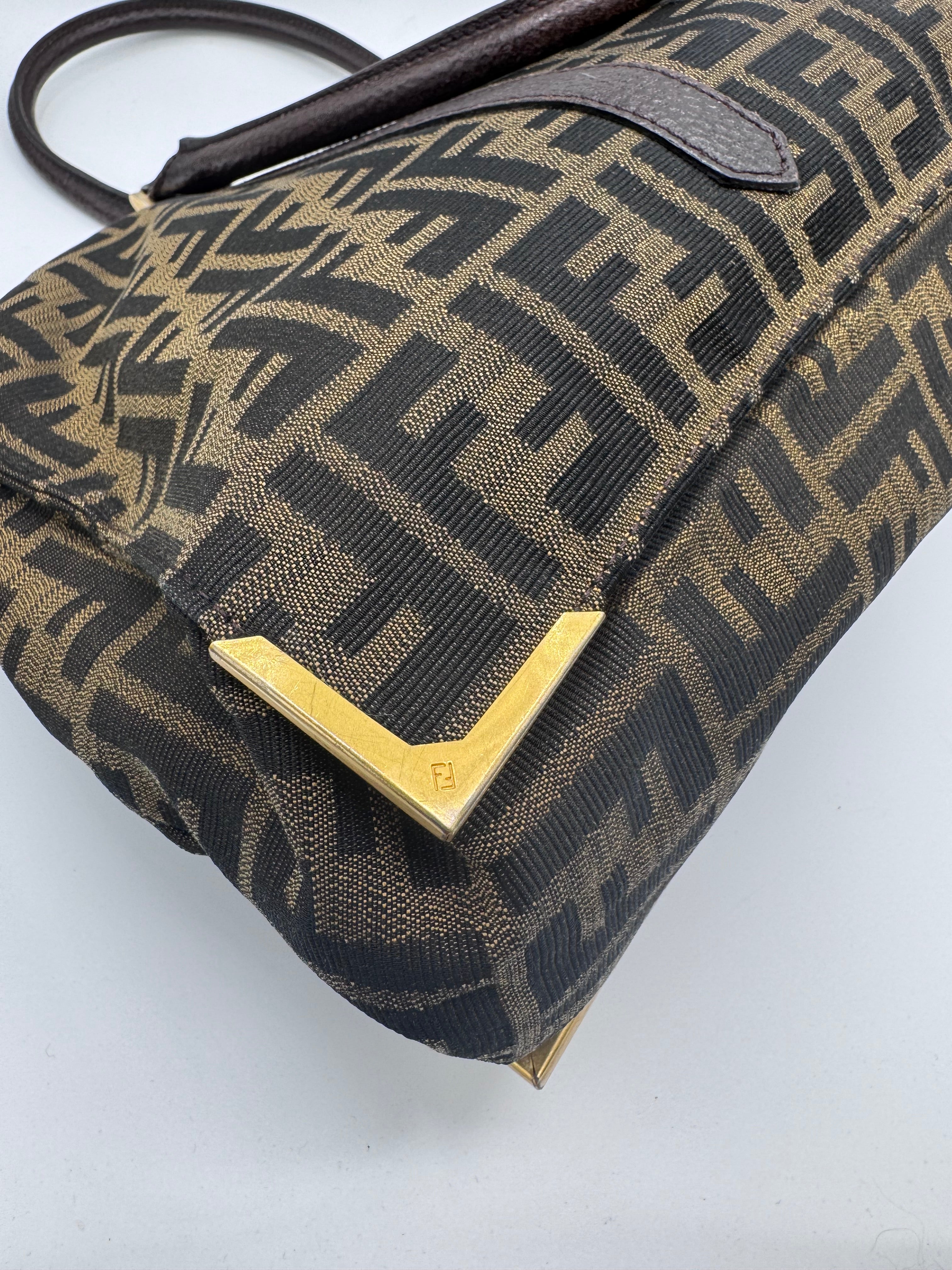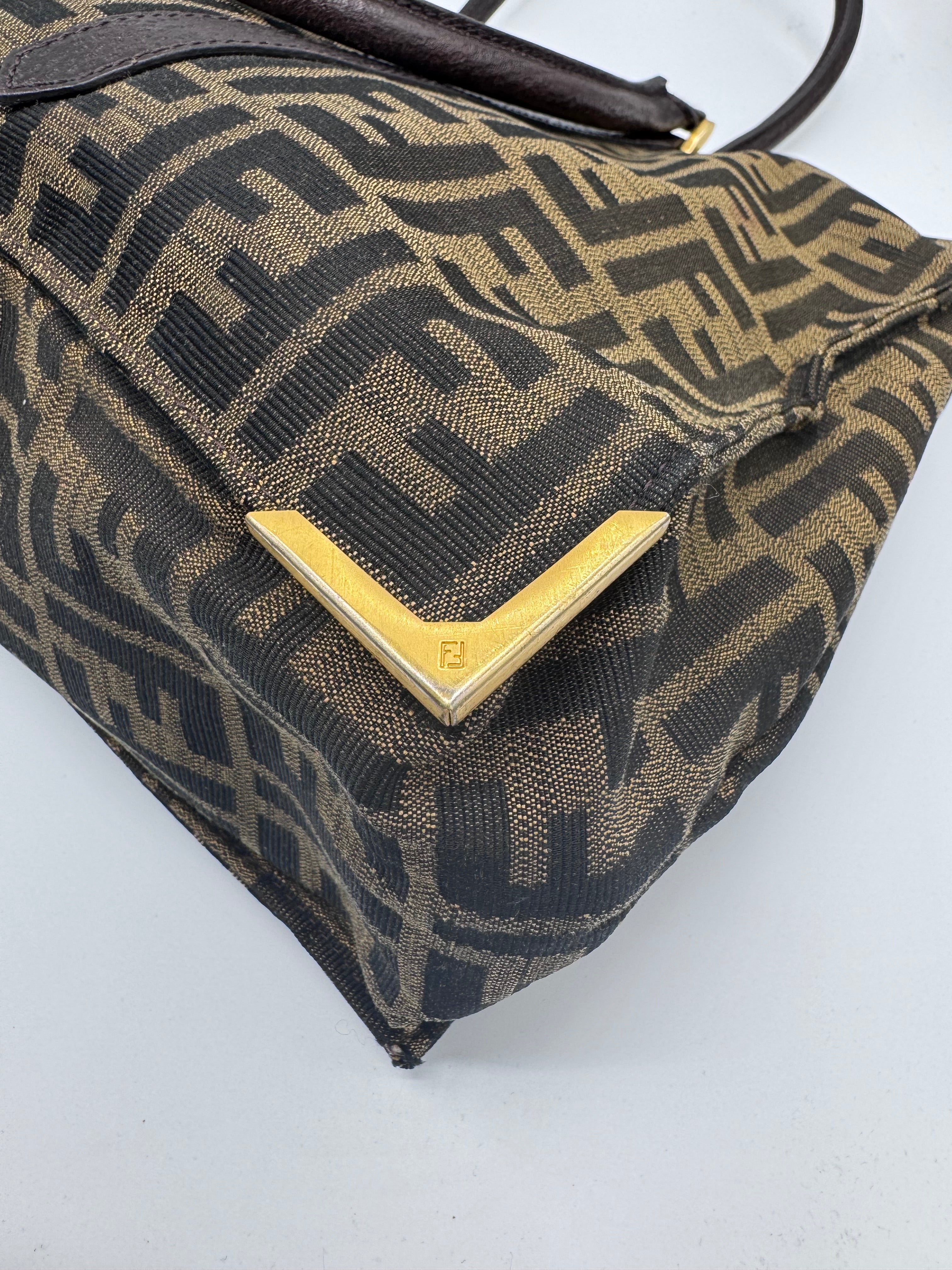 Le tissu Fendi monogrammé est en très bon état, le cuir des empiècements et des poignées aussi.