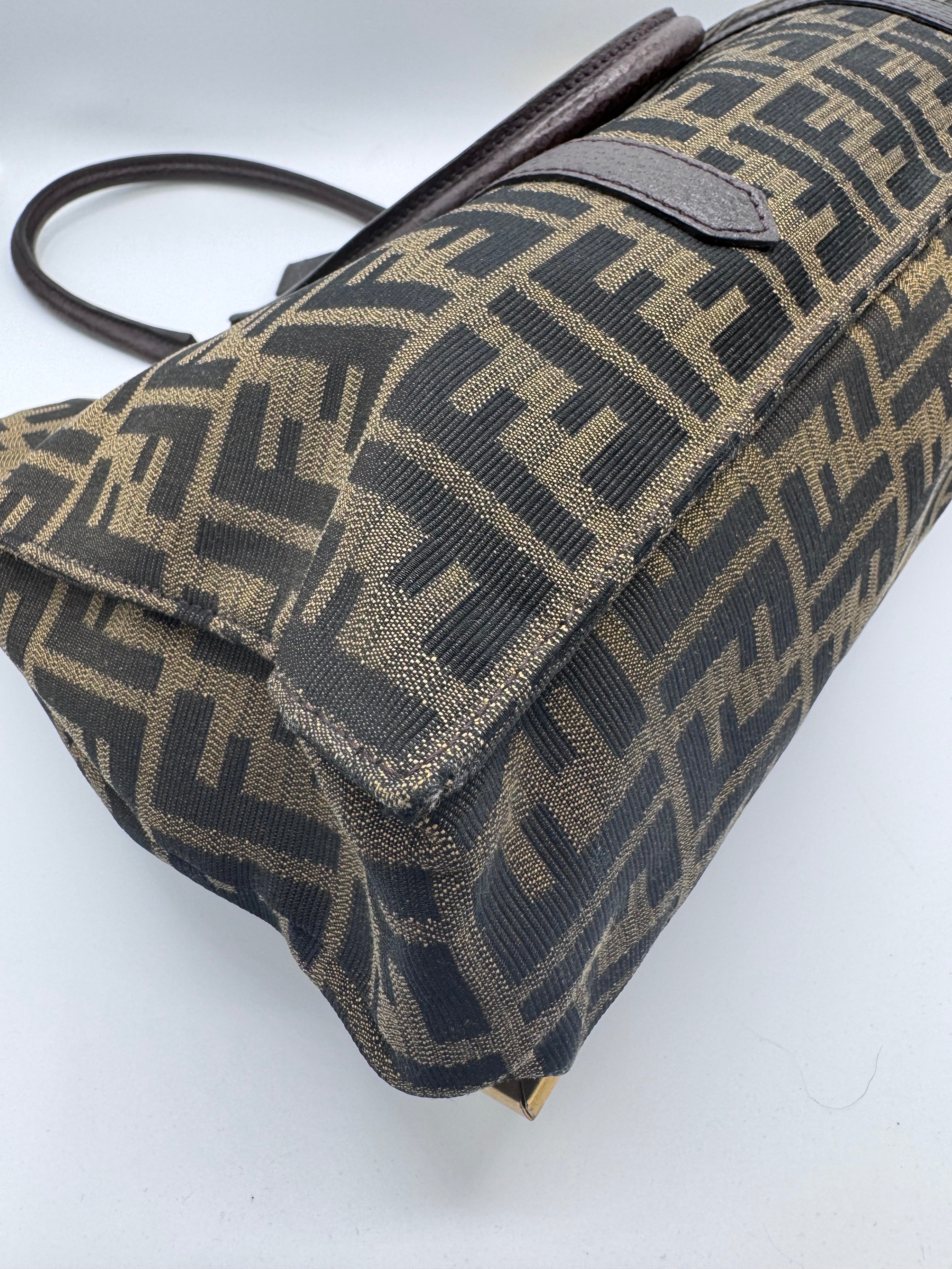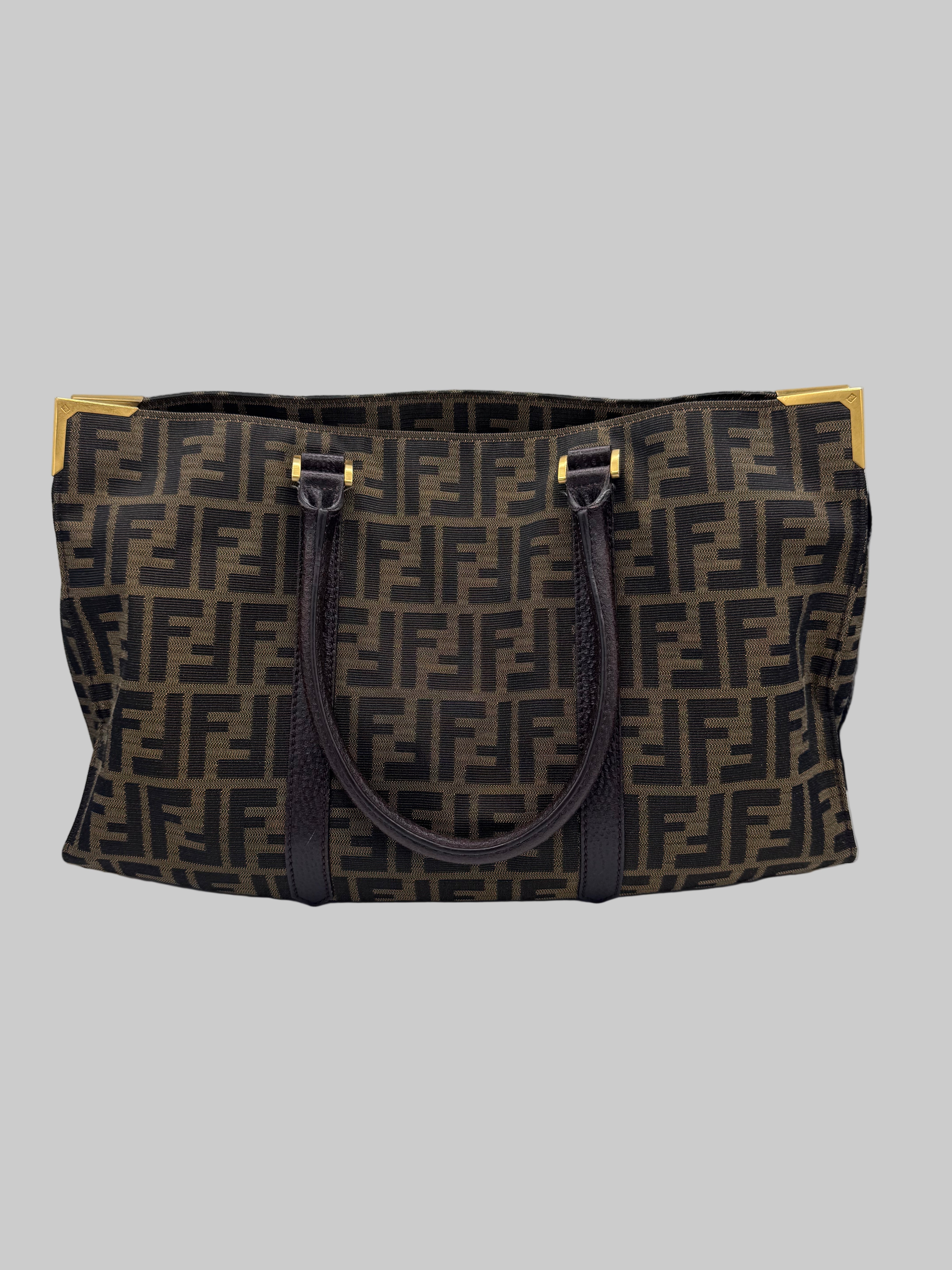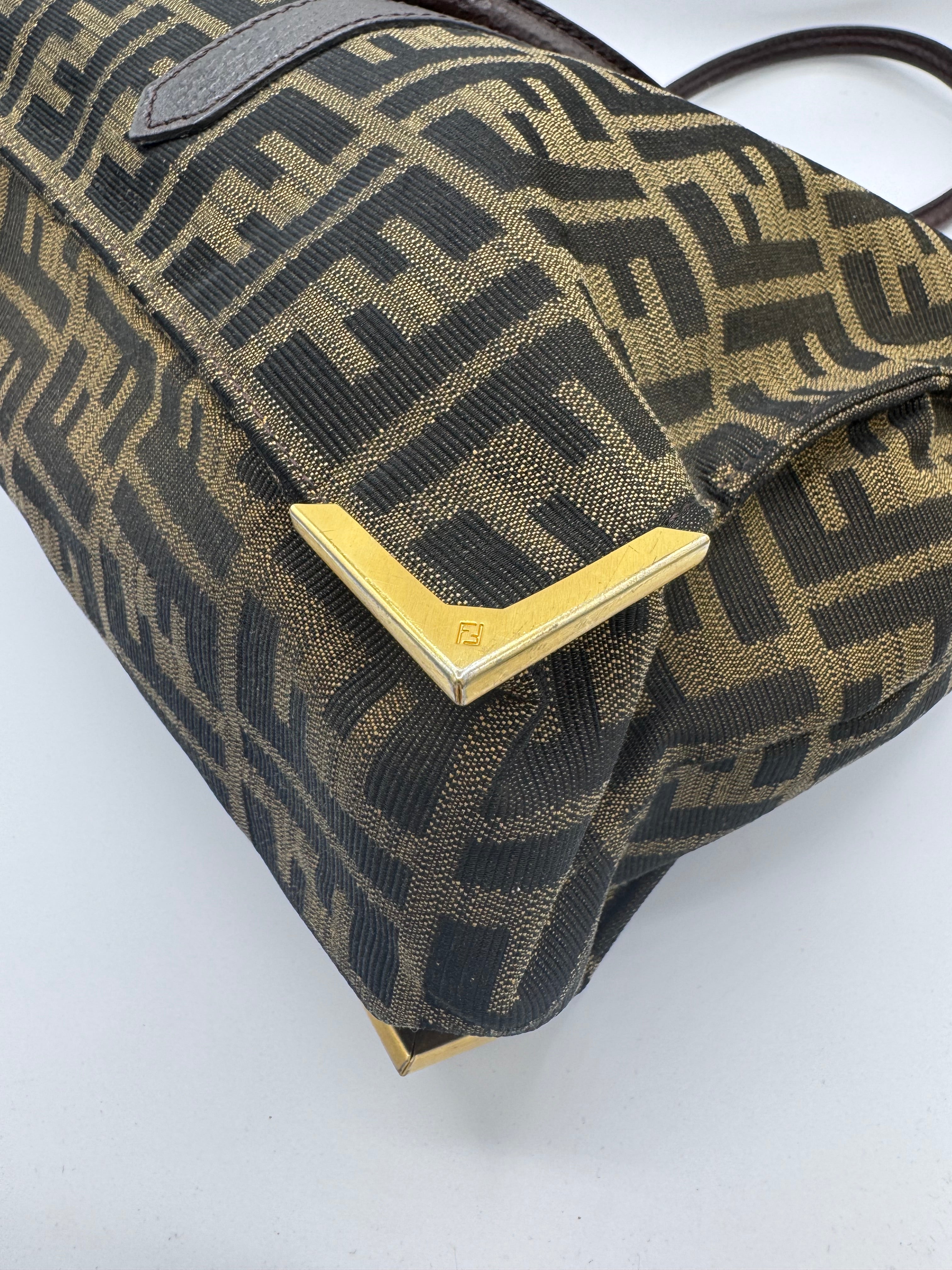 Le tissu Fendi monogrammé est en très bon état, le cuir des empiècements et des poignées aussi.