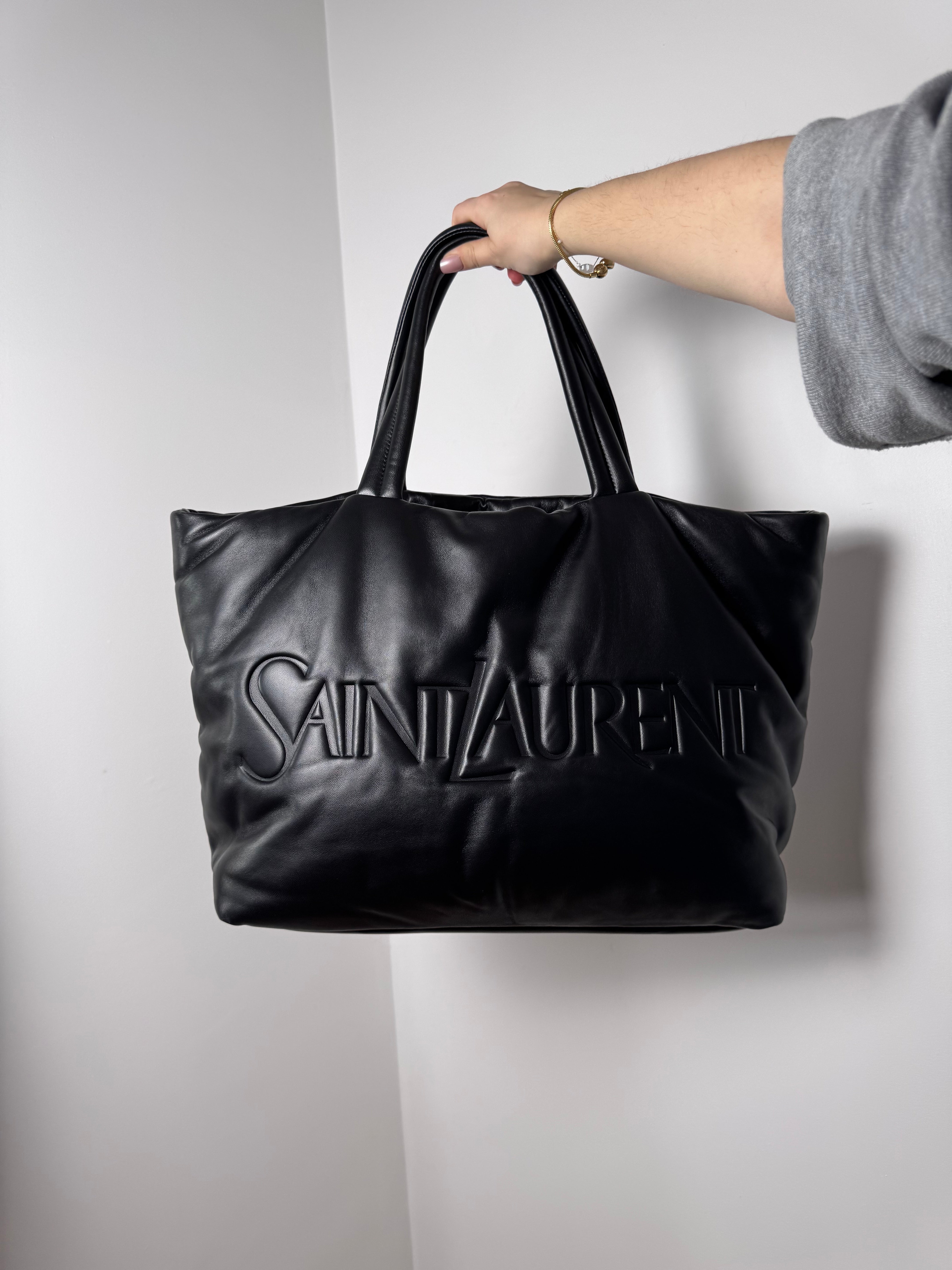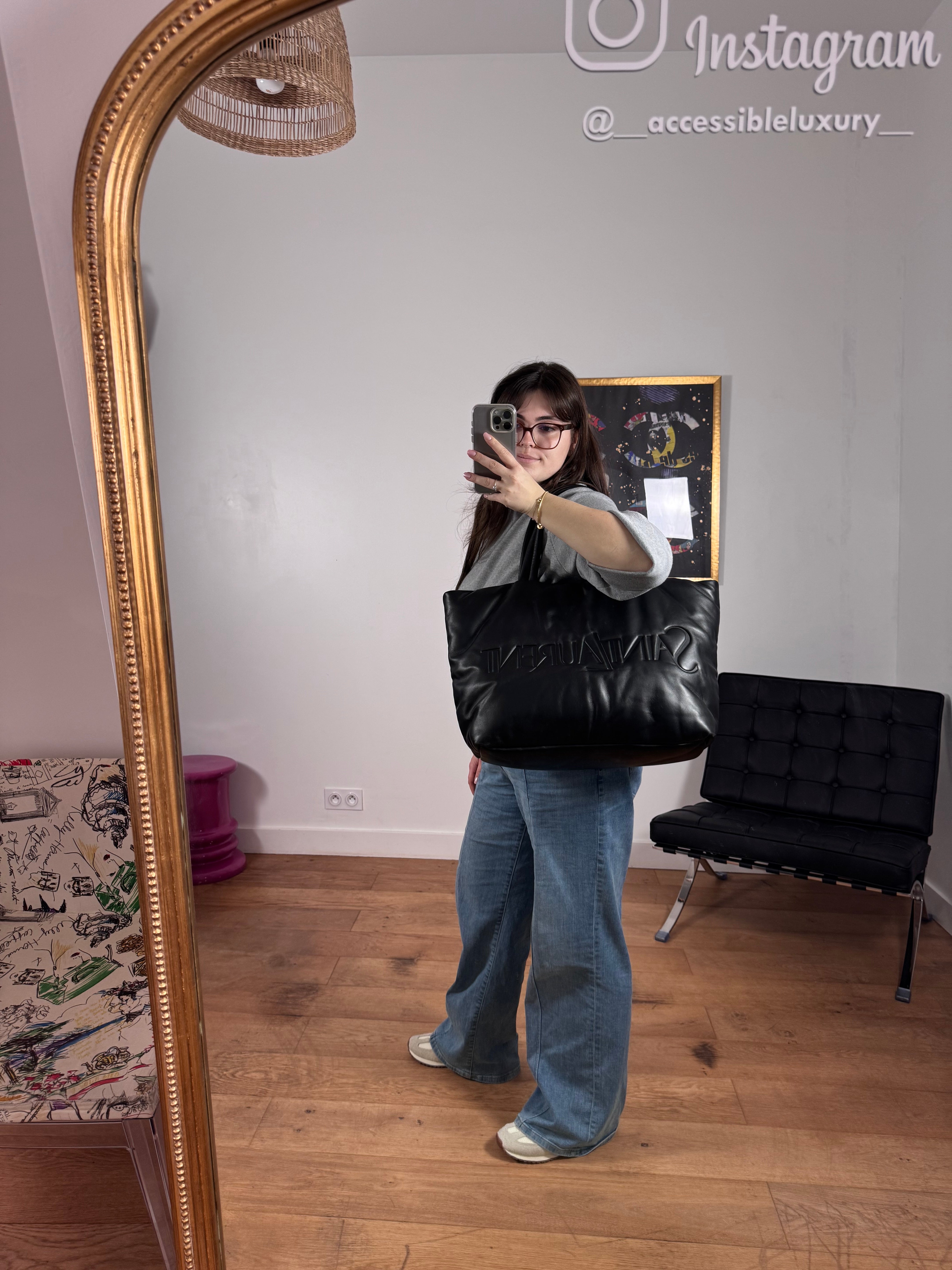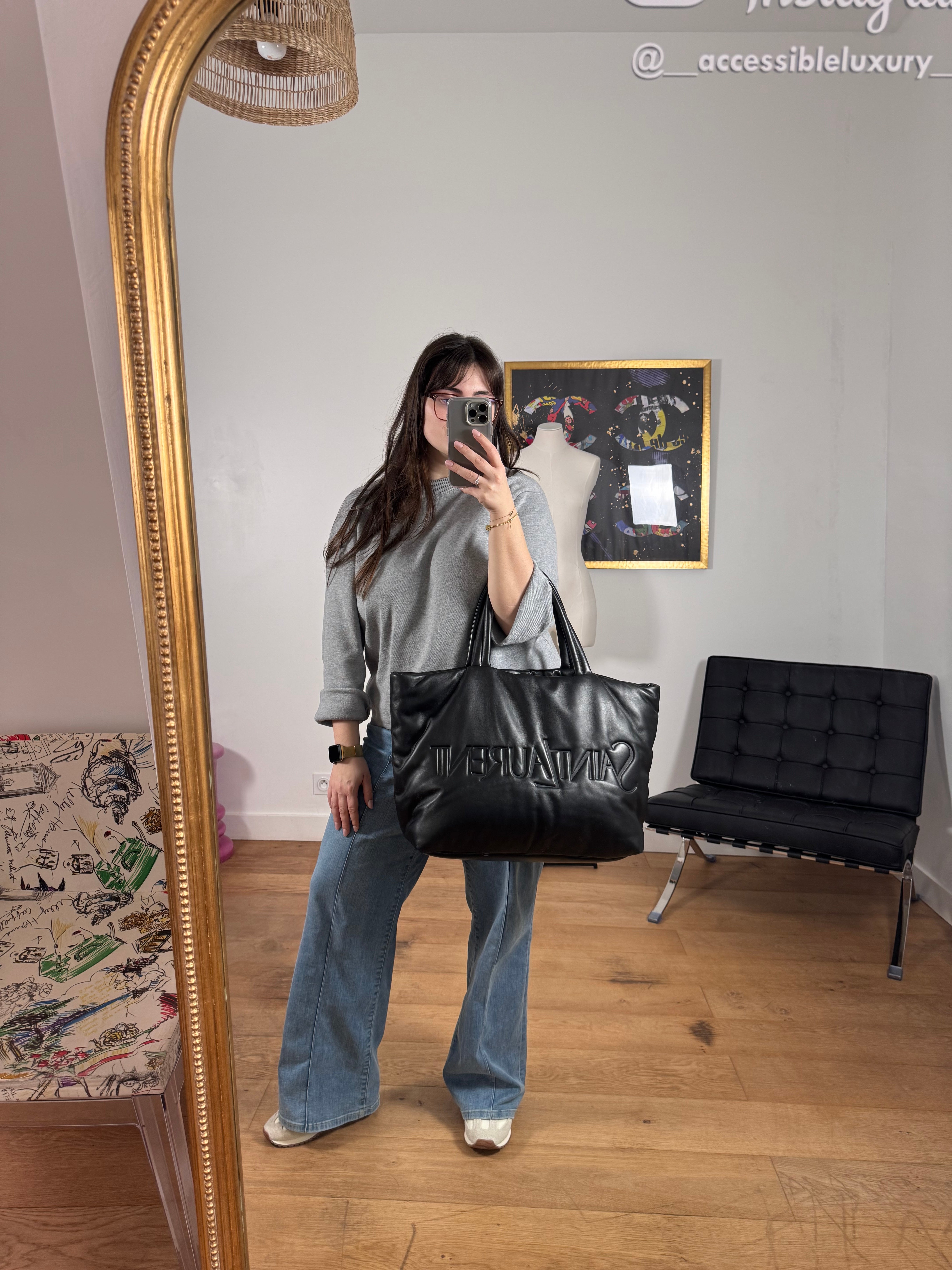Sac Grand Cabas Saint Laurent cuir nappa noir