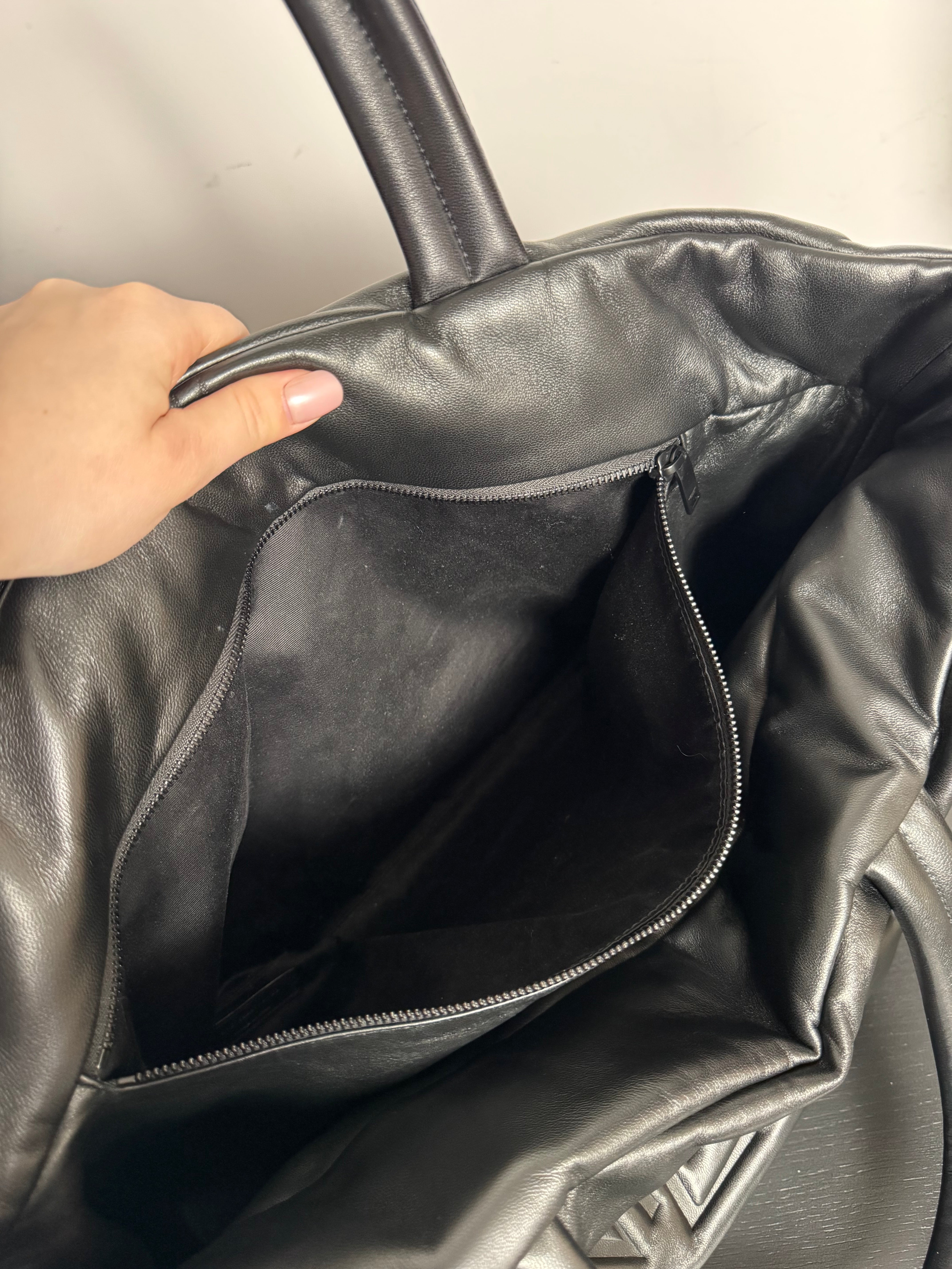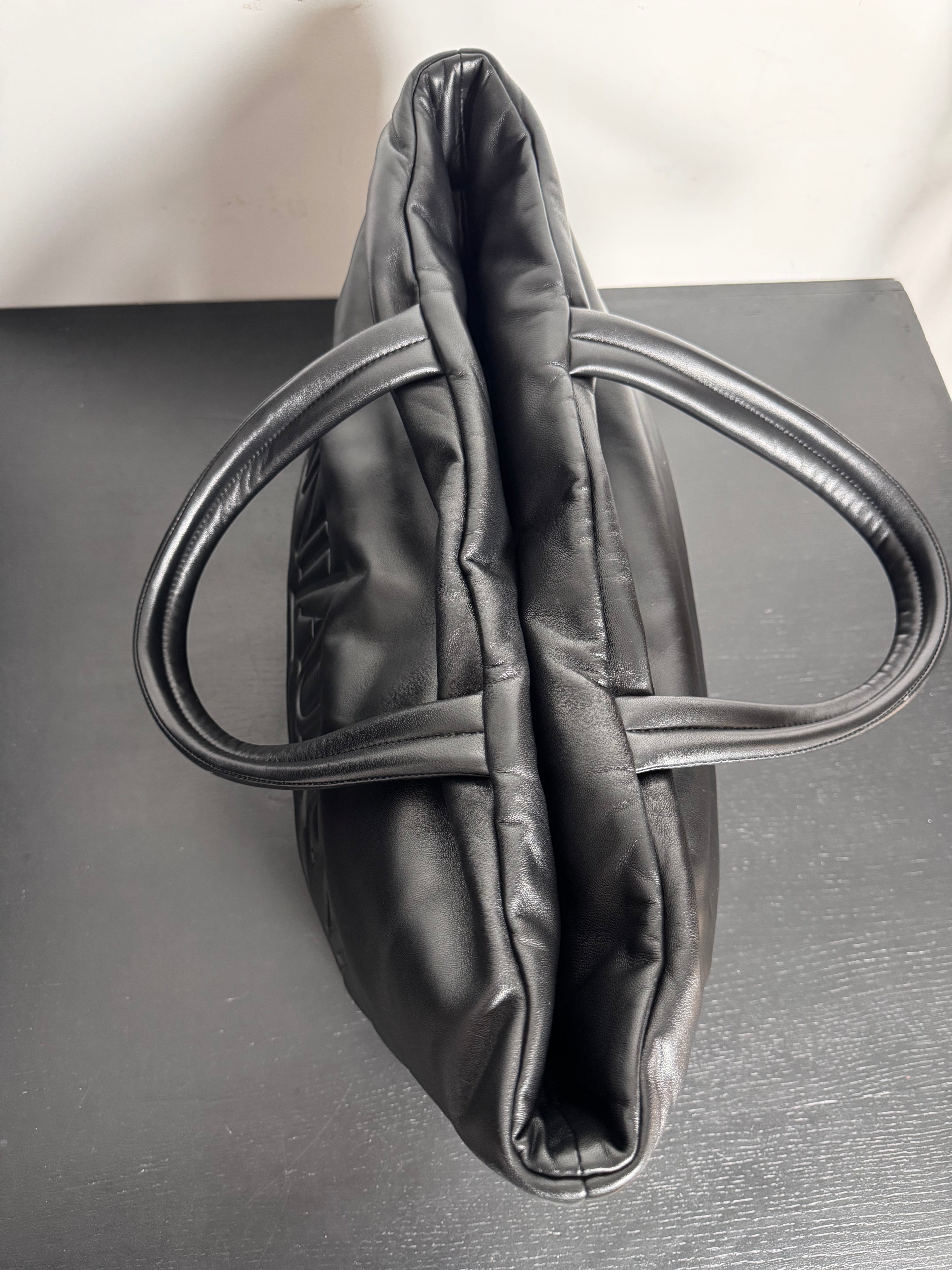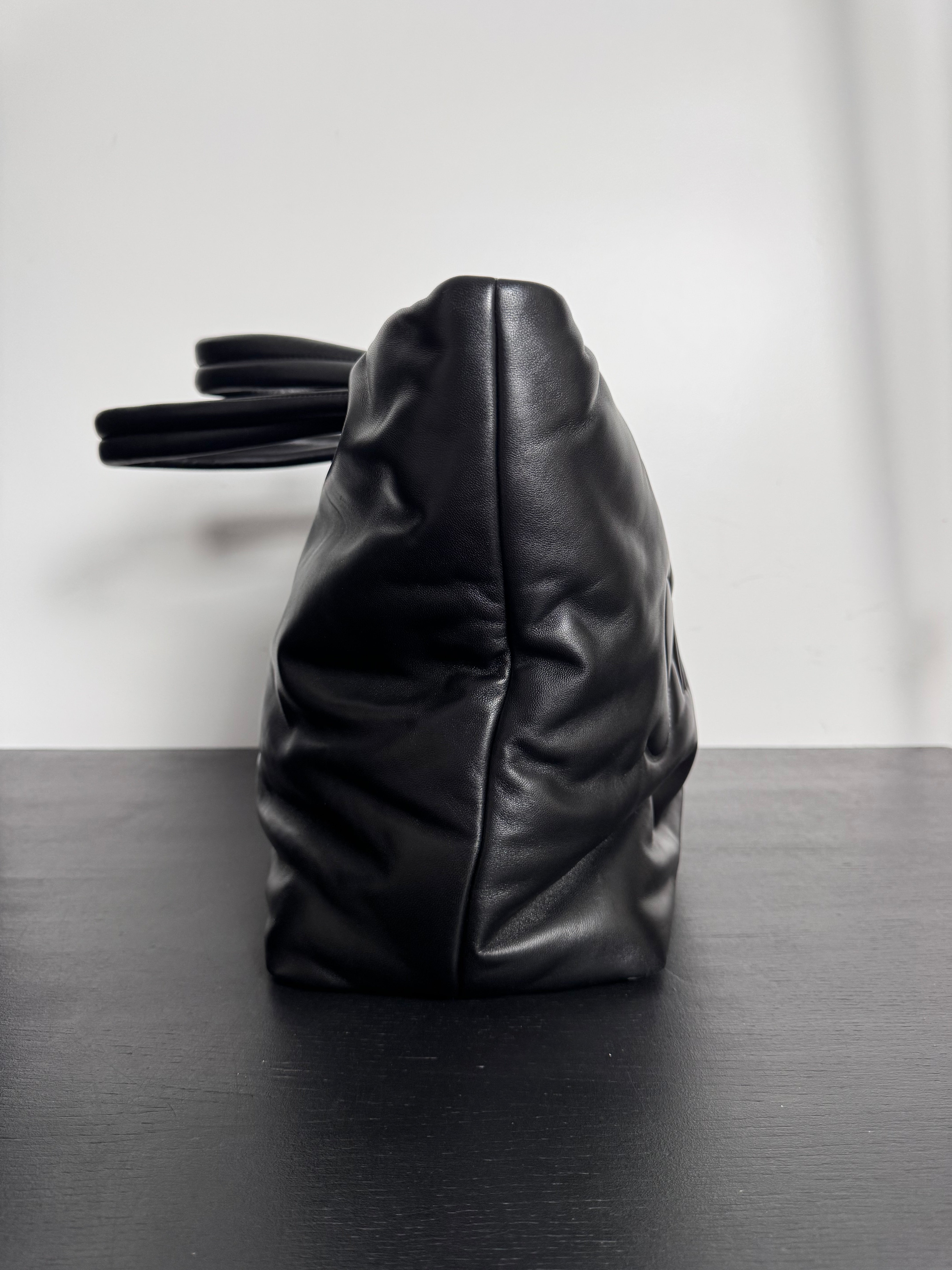 Excellent état pour ce grand cabas en cuir nappa noir, uniquement quelques traces très légères sur le cuir à peine visibles. (Photos)