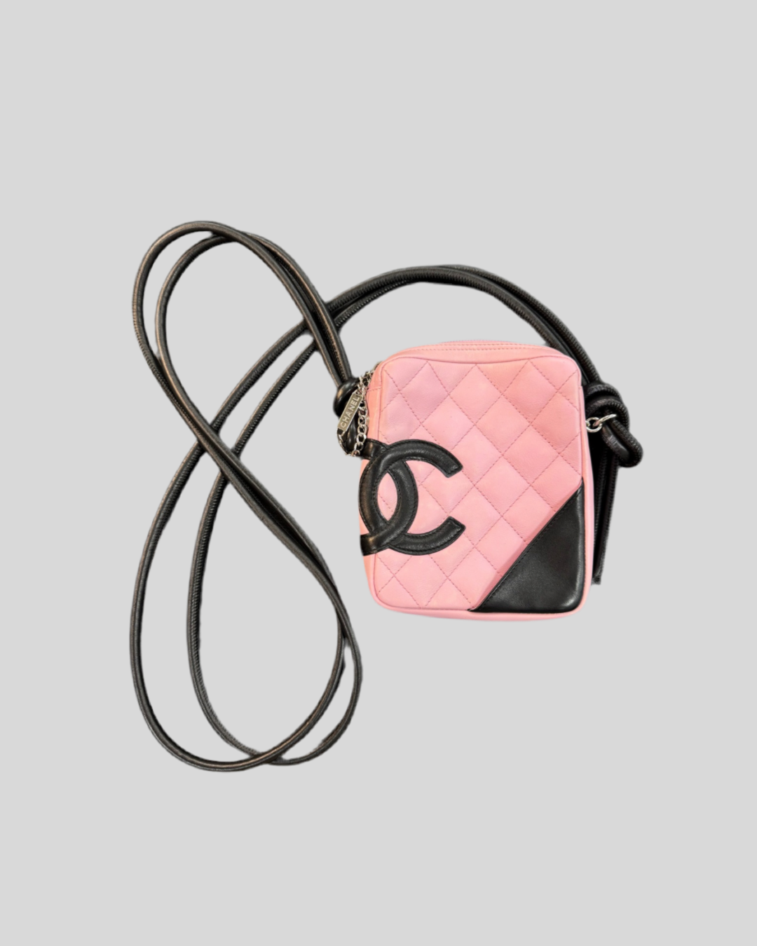 Sac Cambon Reporter matelassé noir et rose, en très bon état.