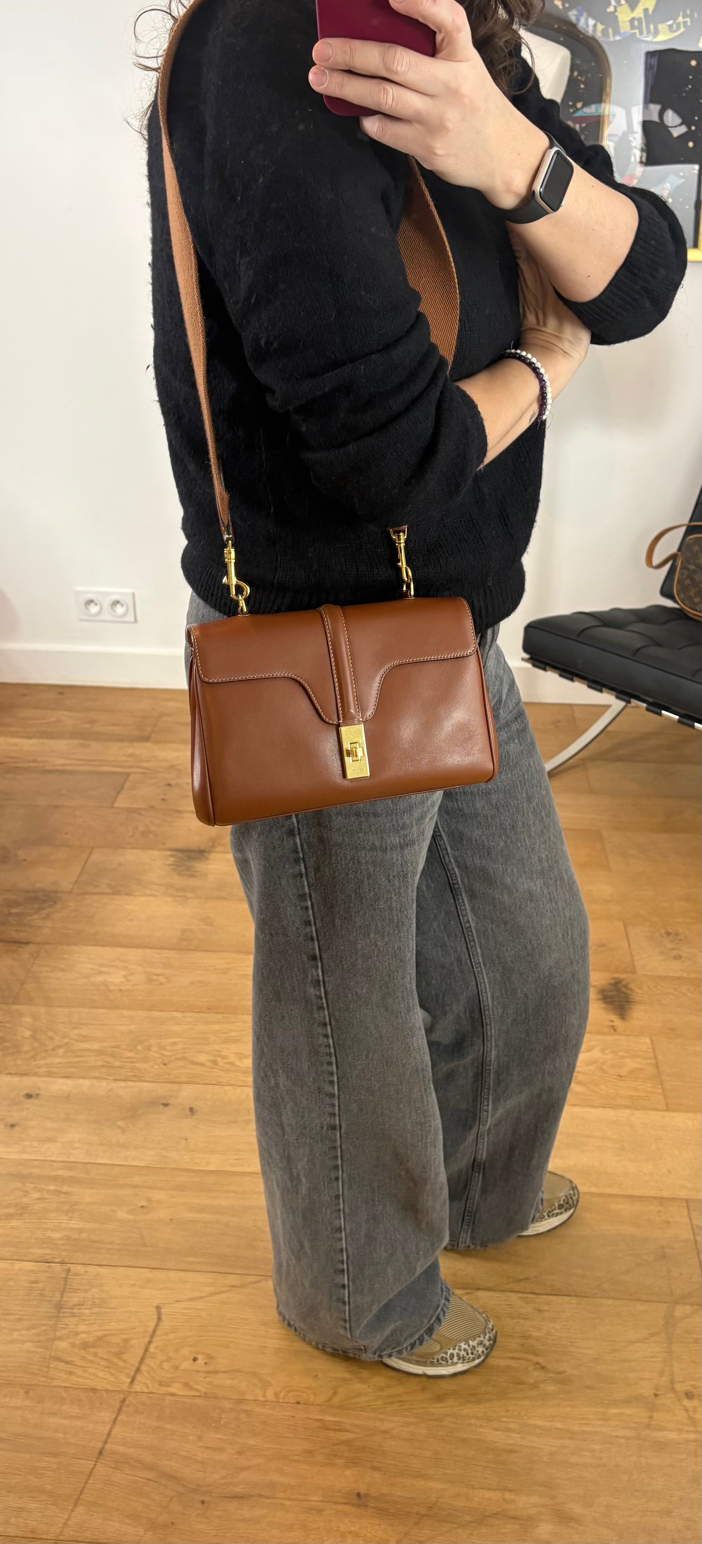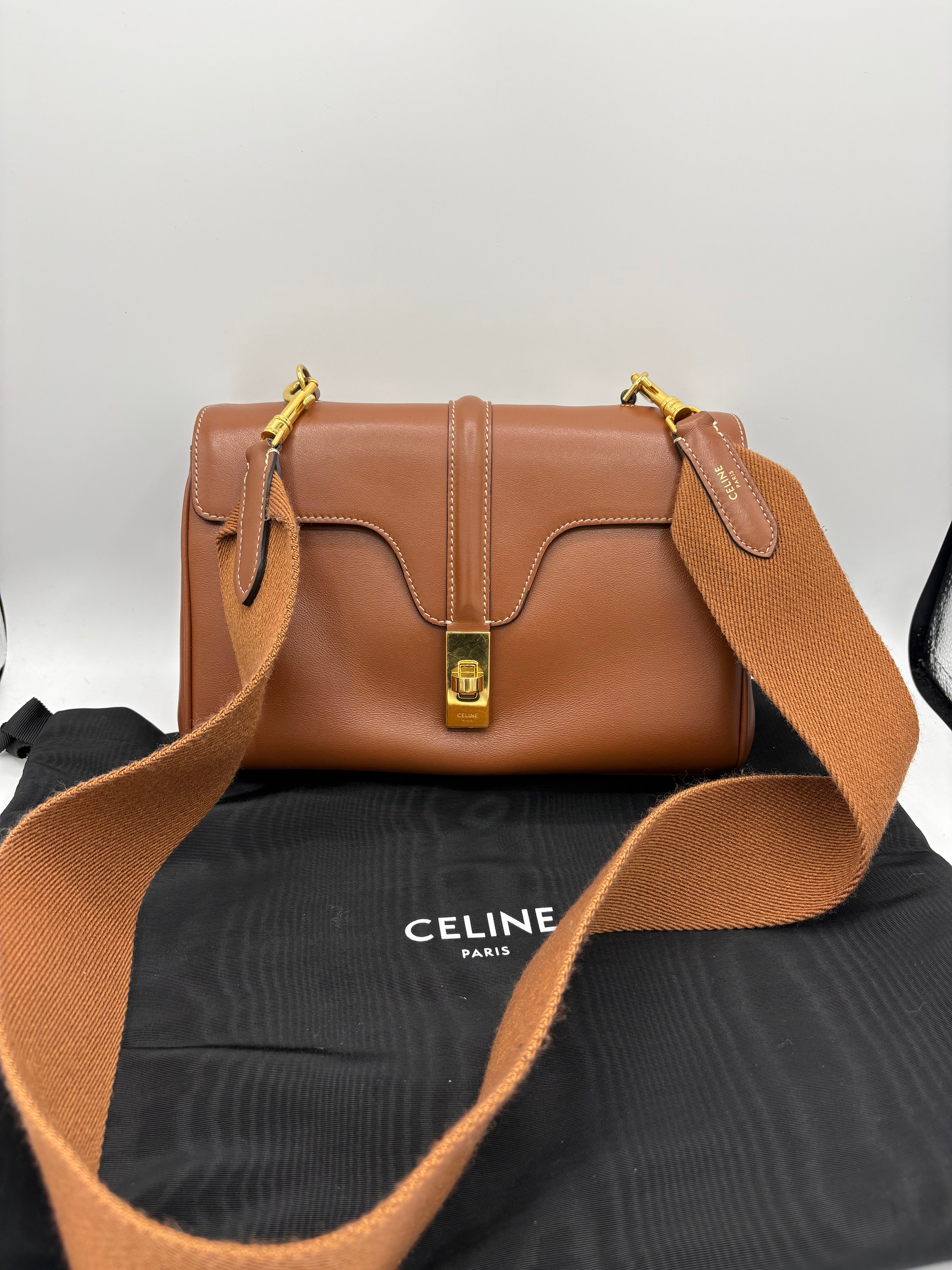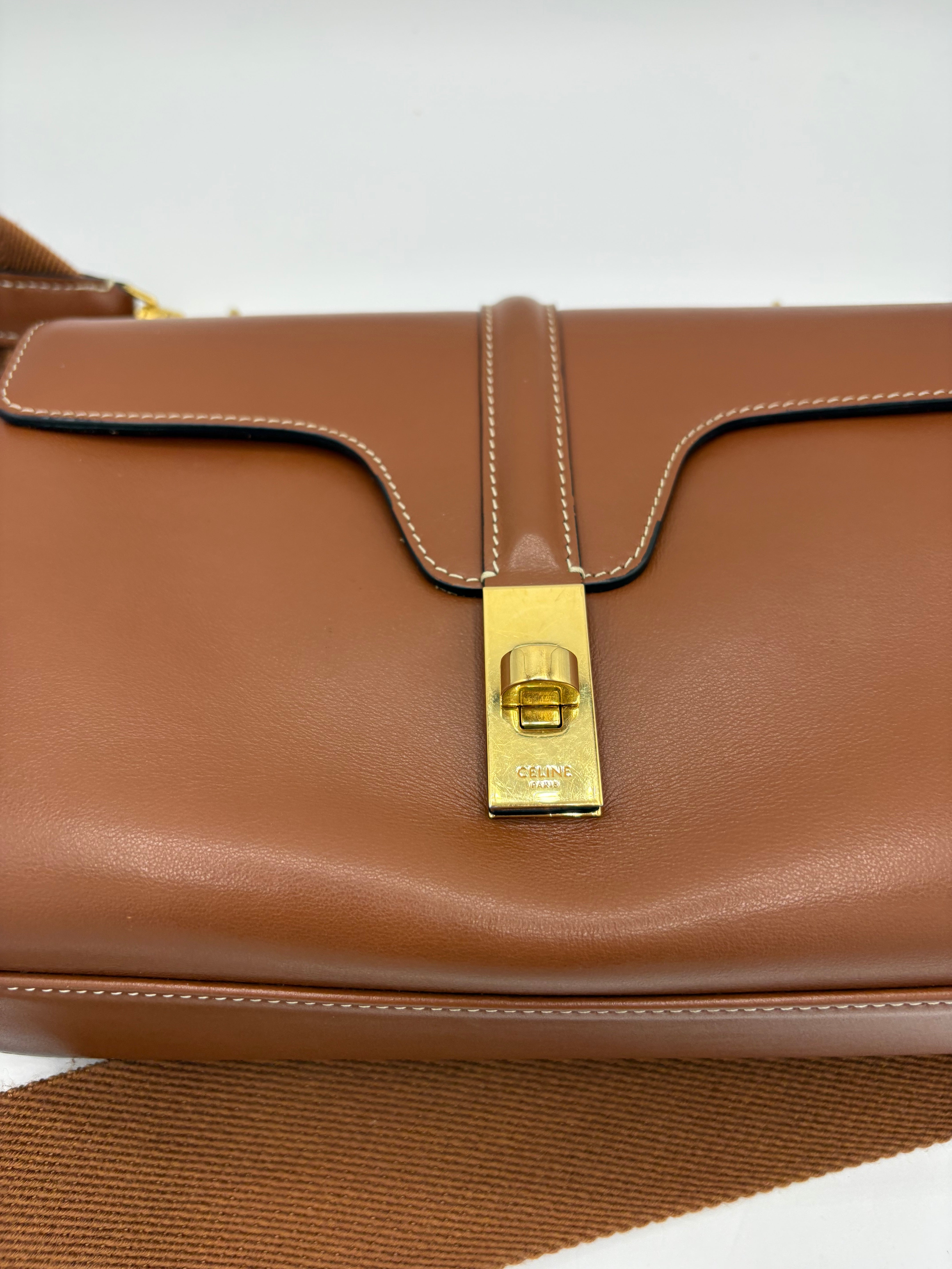 Sac Céline 16 Teen de chez Céline en cuir tan et bijouterie dorée en très bon état.