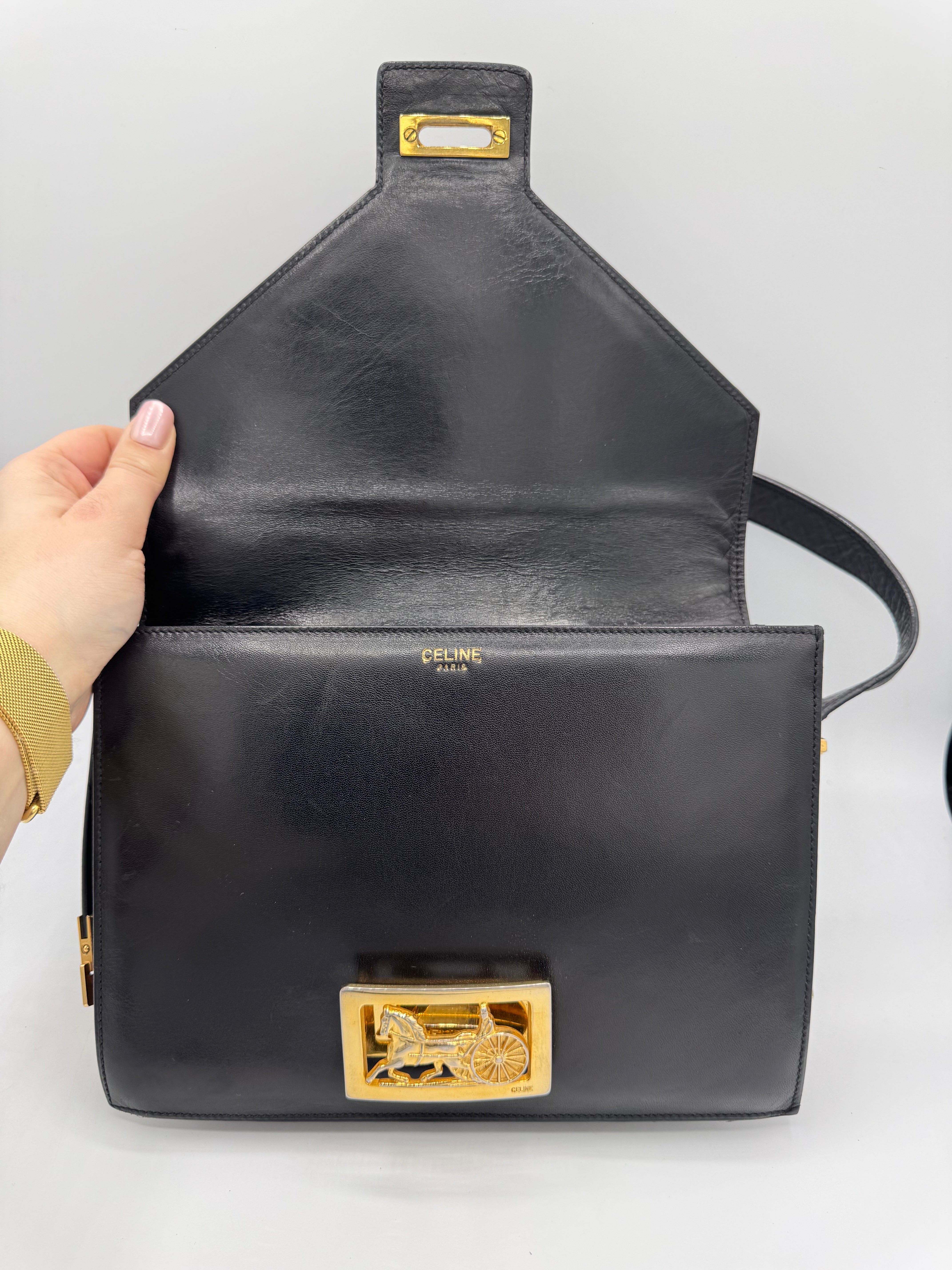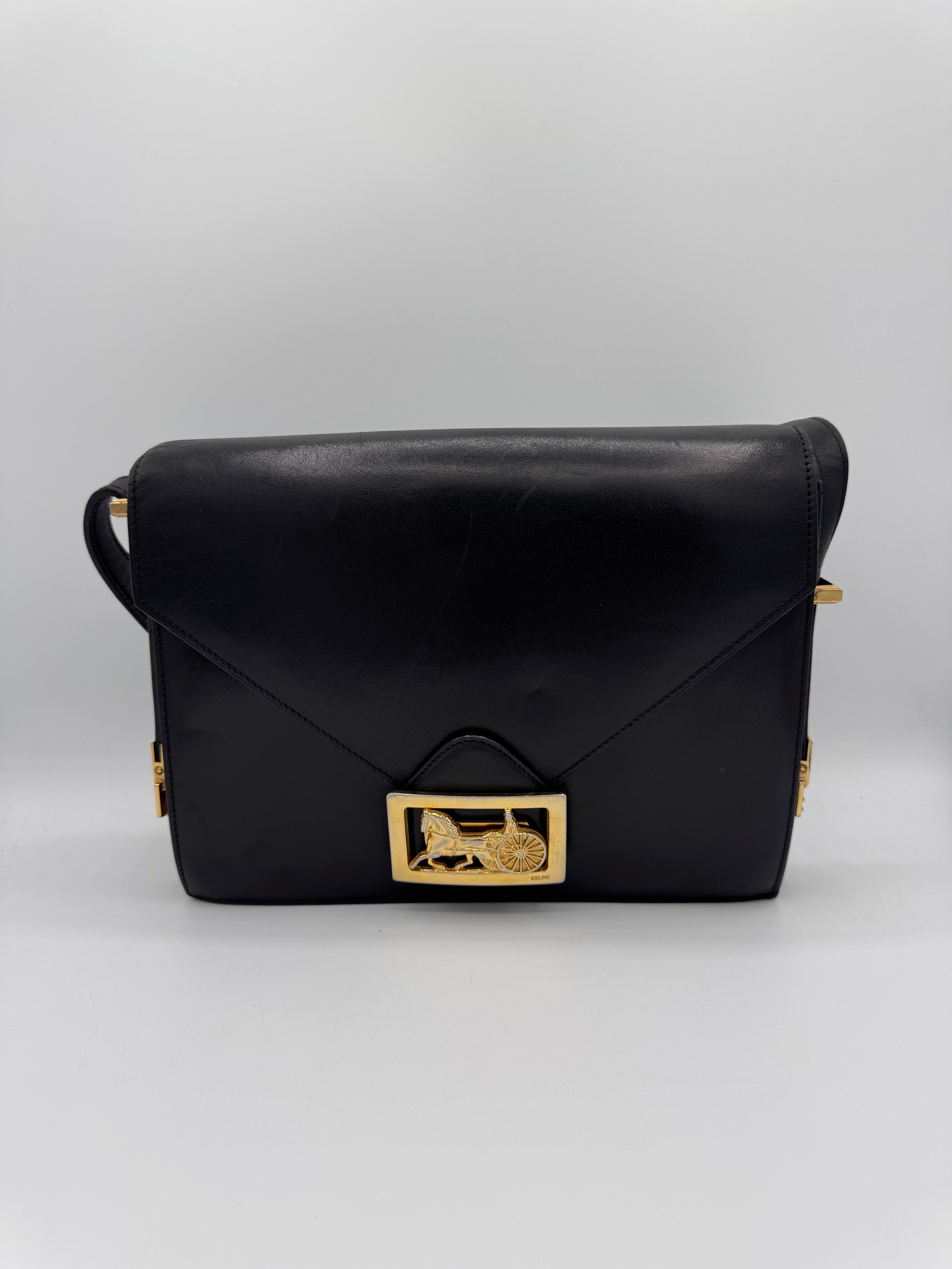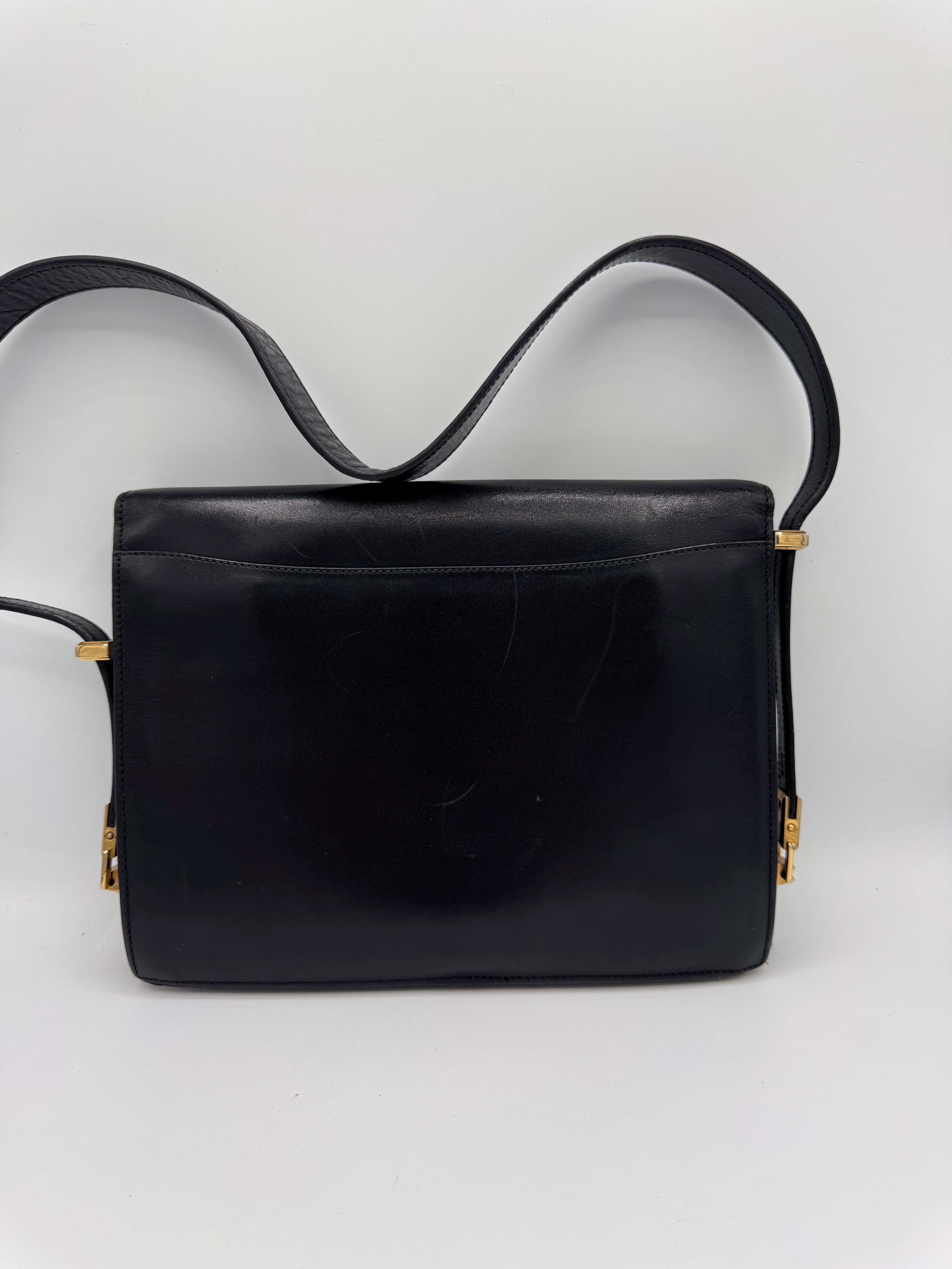 Sac Céline en cuir box en bon état, plusieurs traces sur le cuir box visibles en photos.