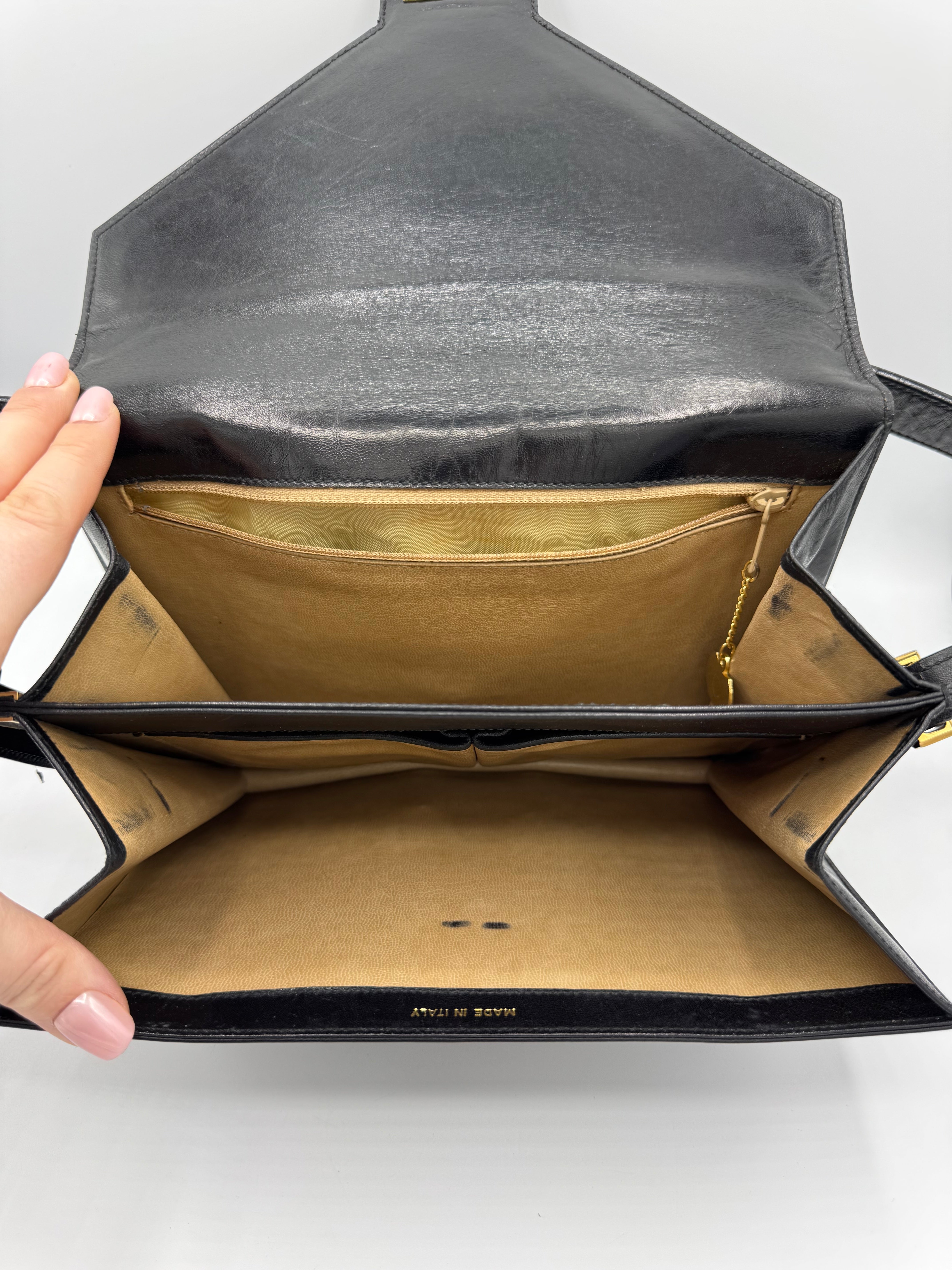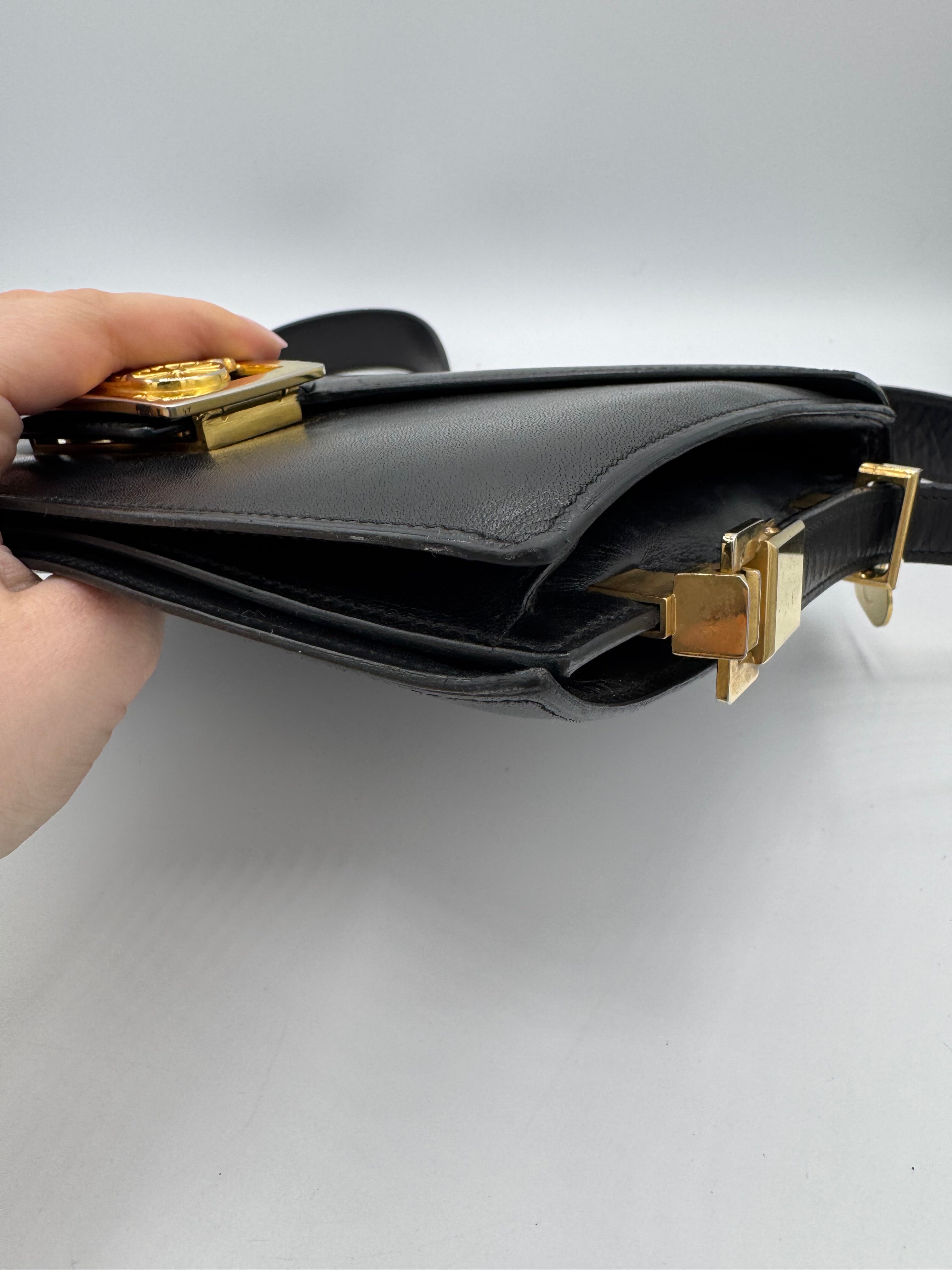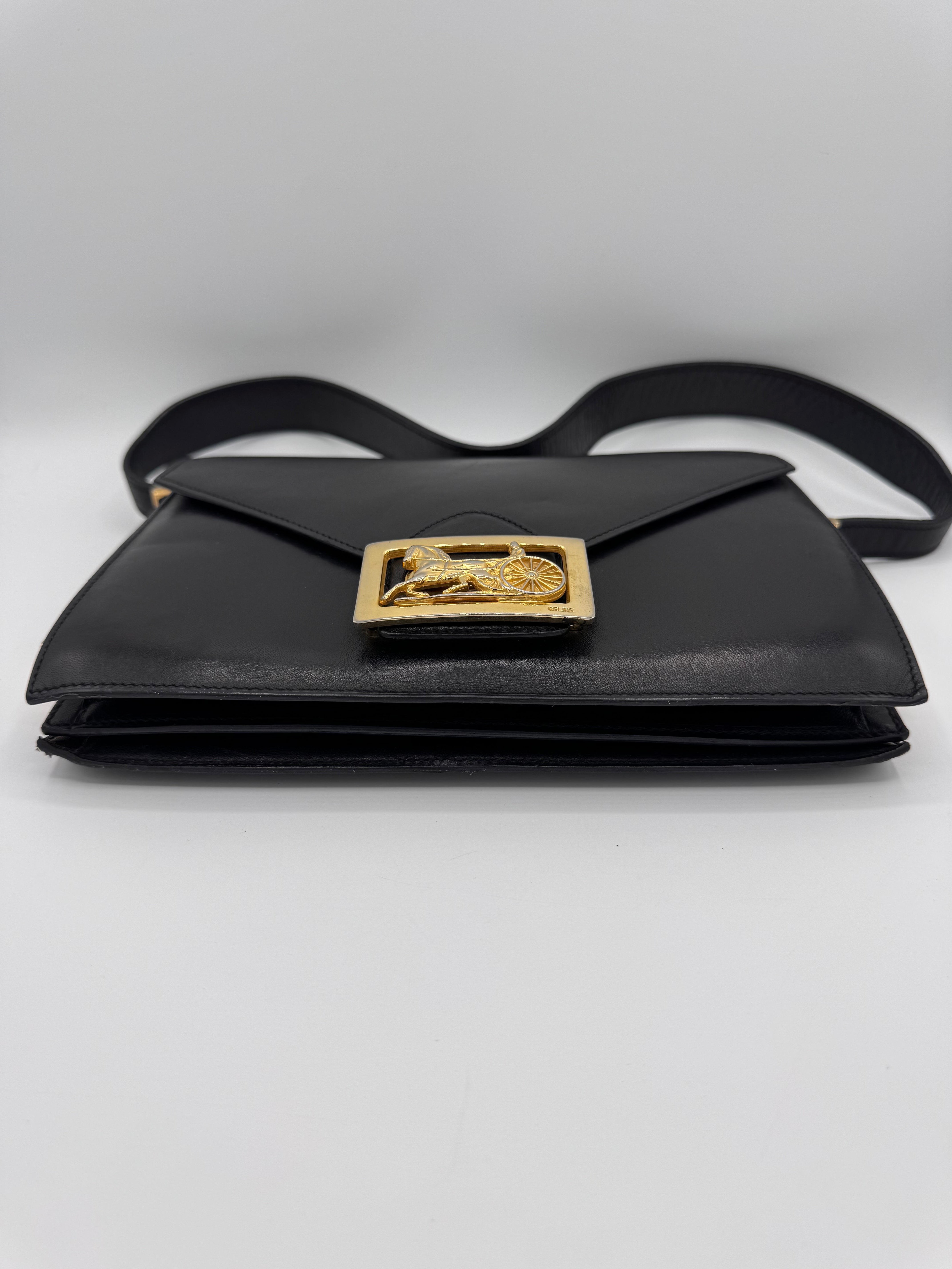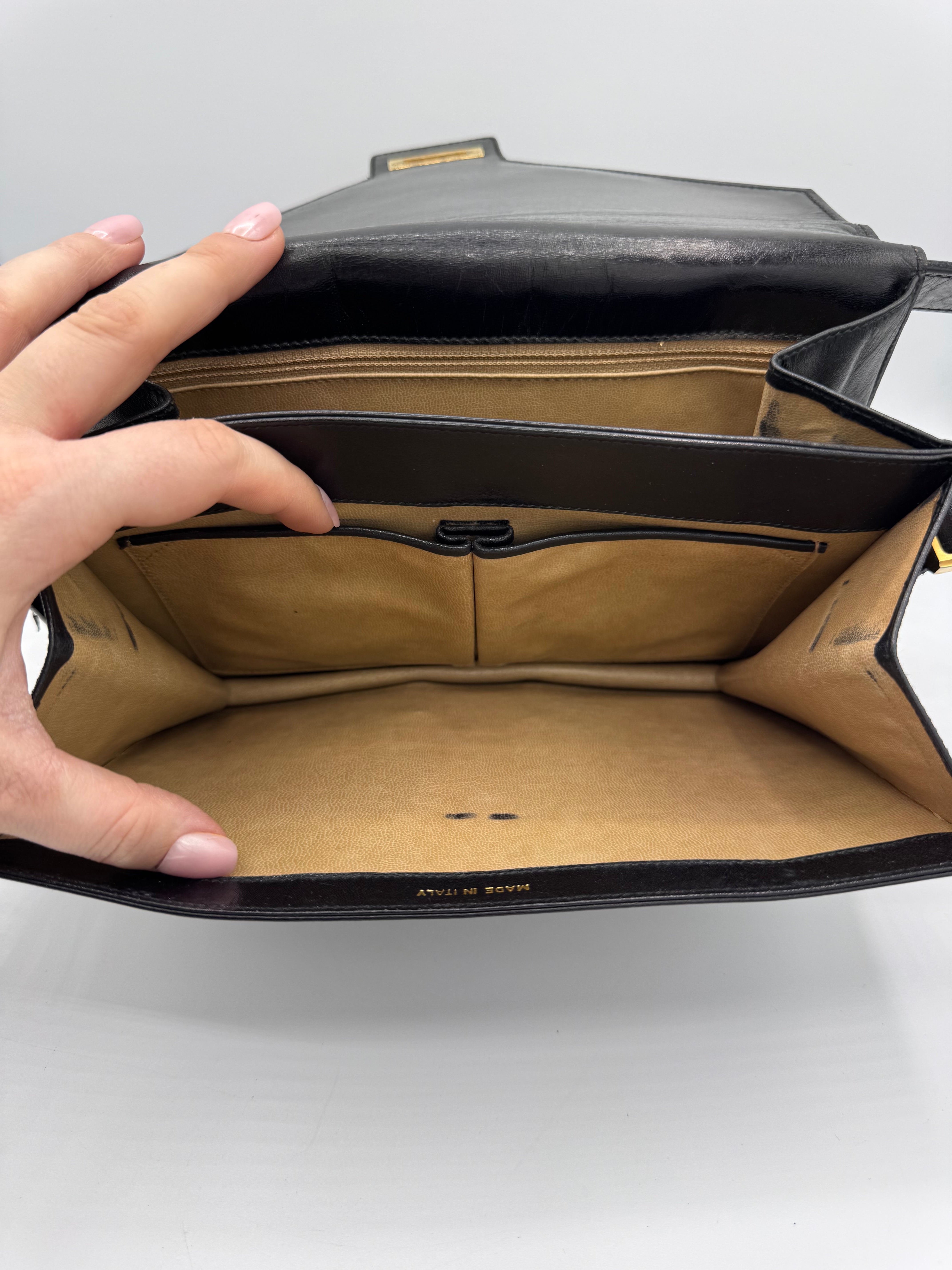 Sac Céline en cuir box en bon état, plusieurs traces sur le cuir box visibles en photos.