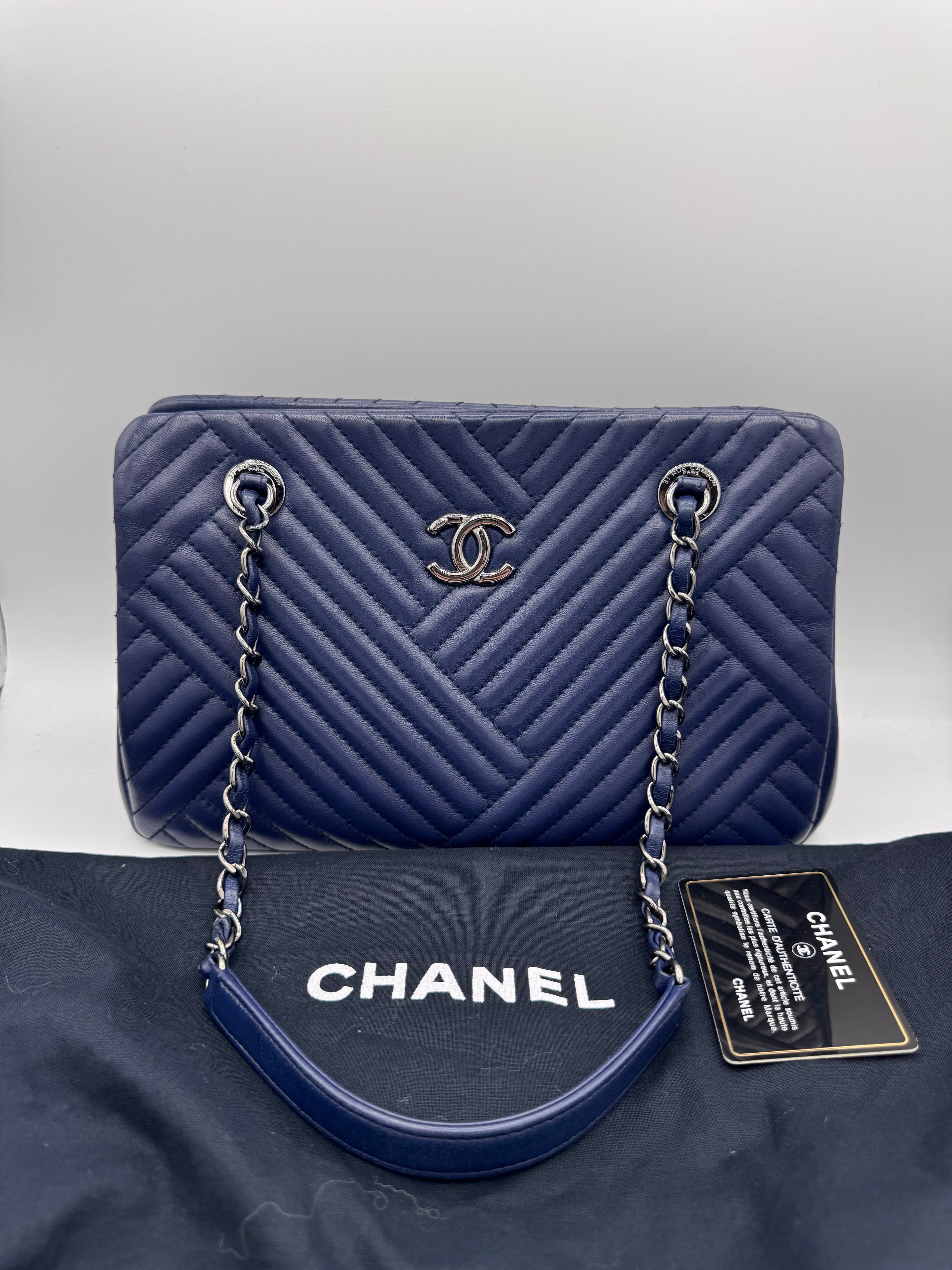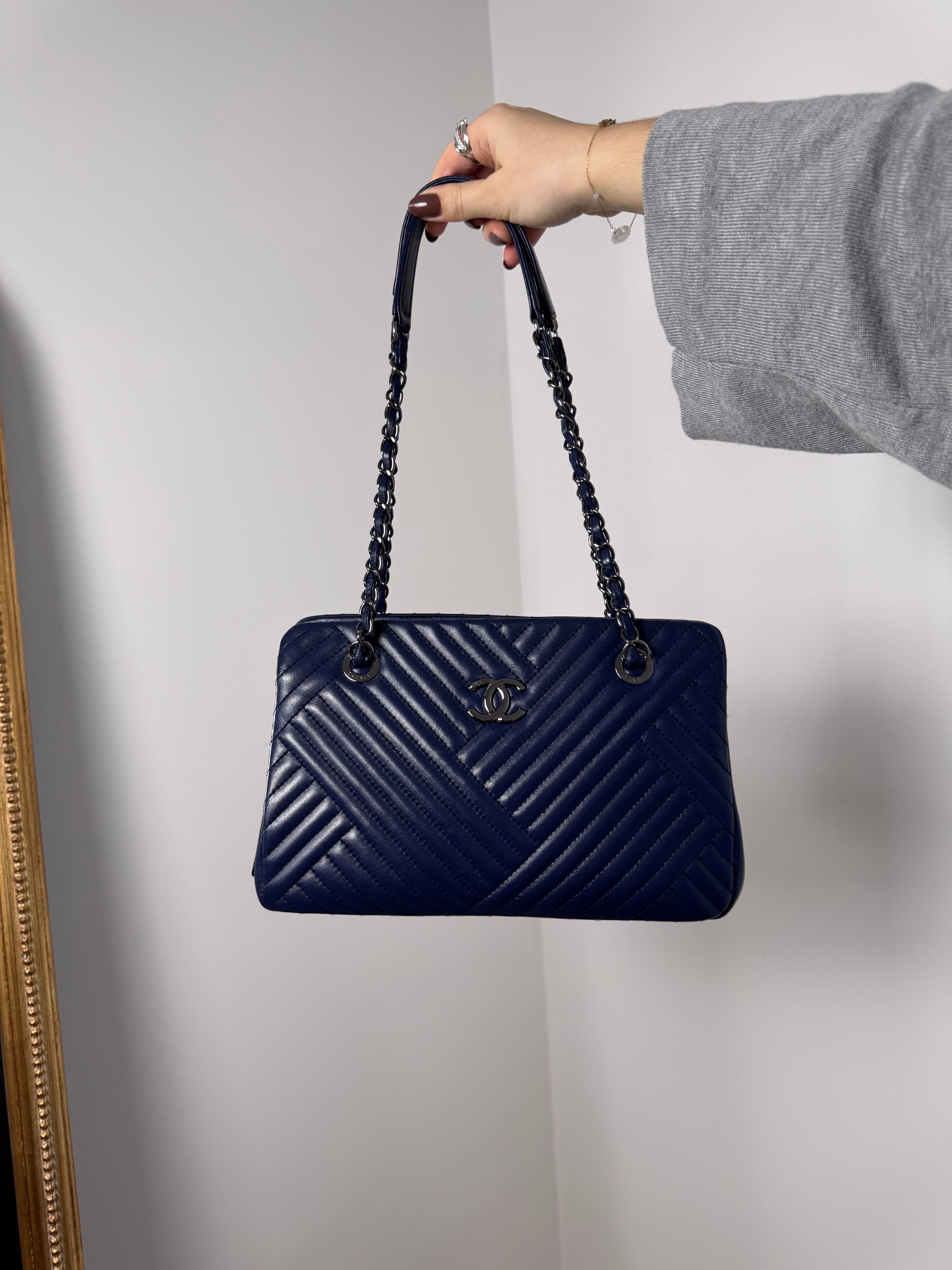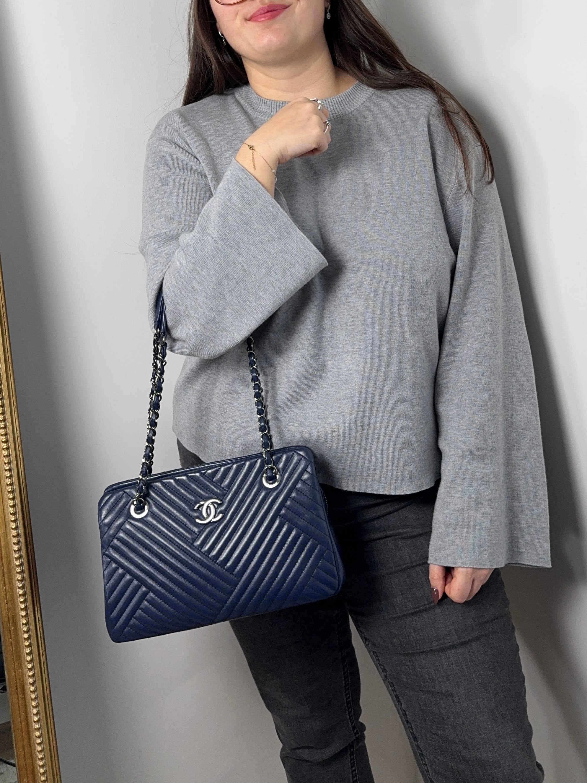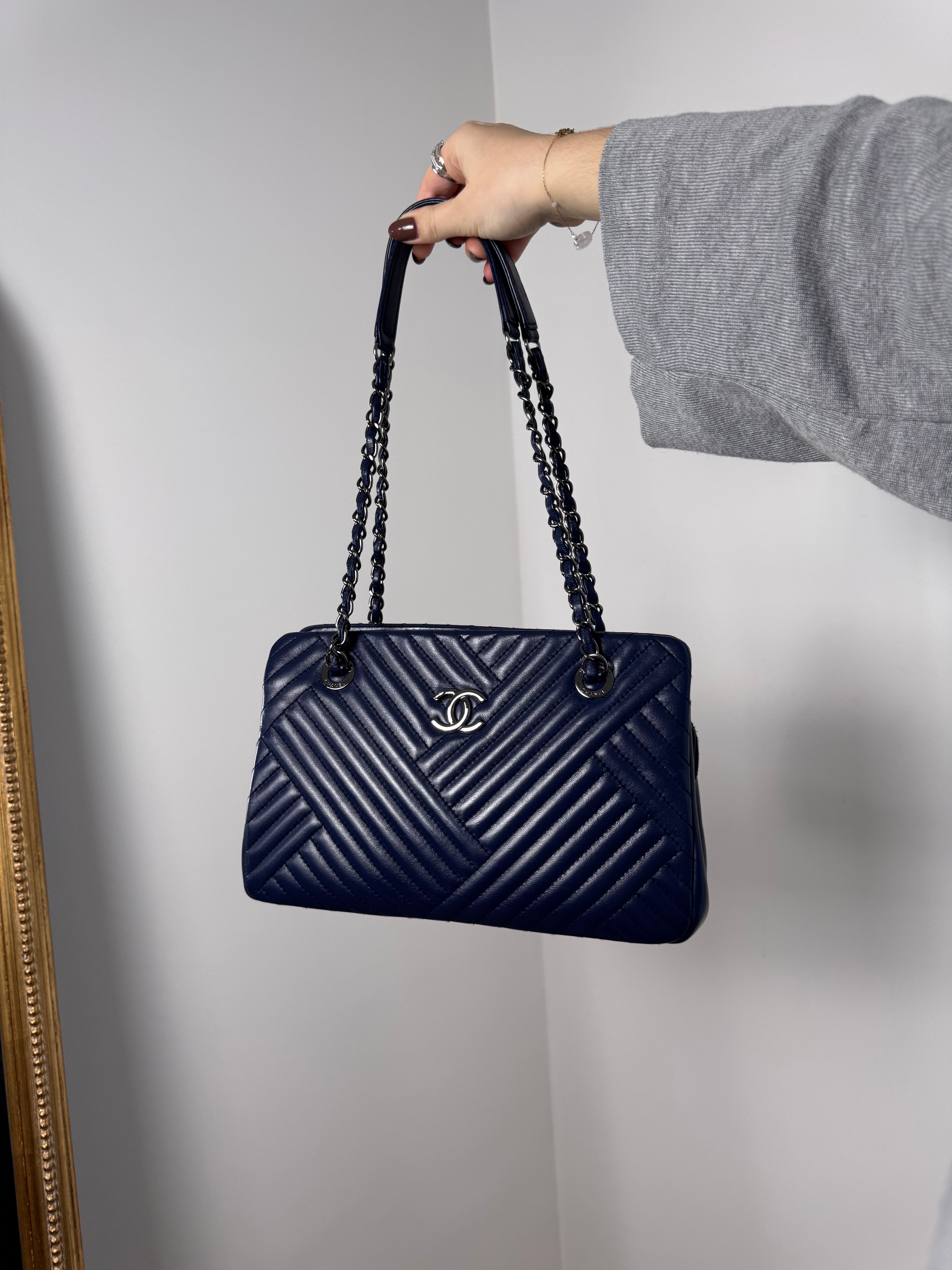 Sac cabas Chanel en état excellent, coloris bleu marine.