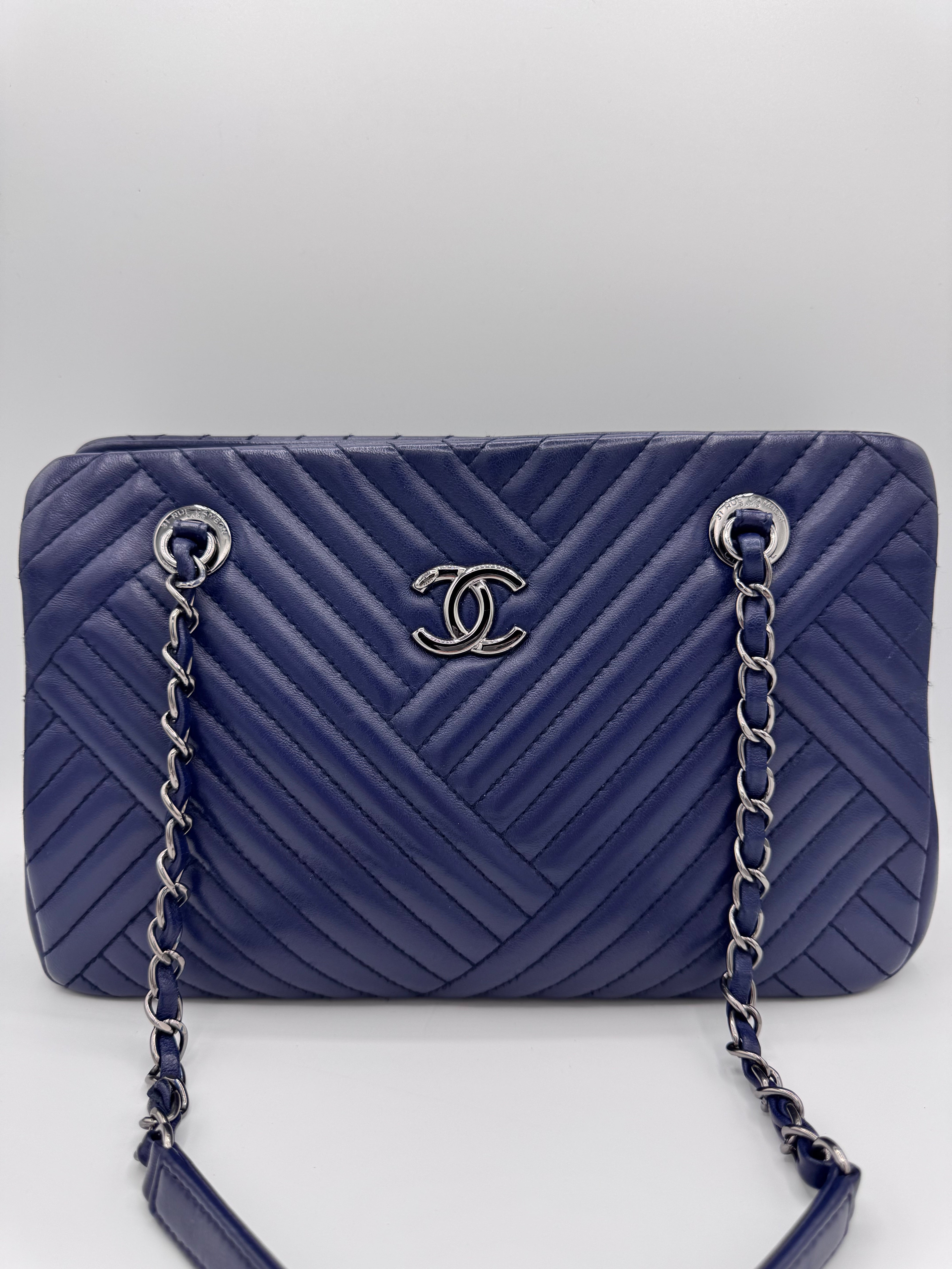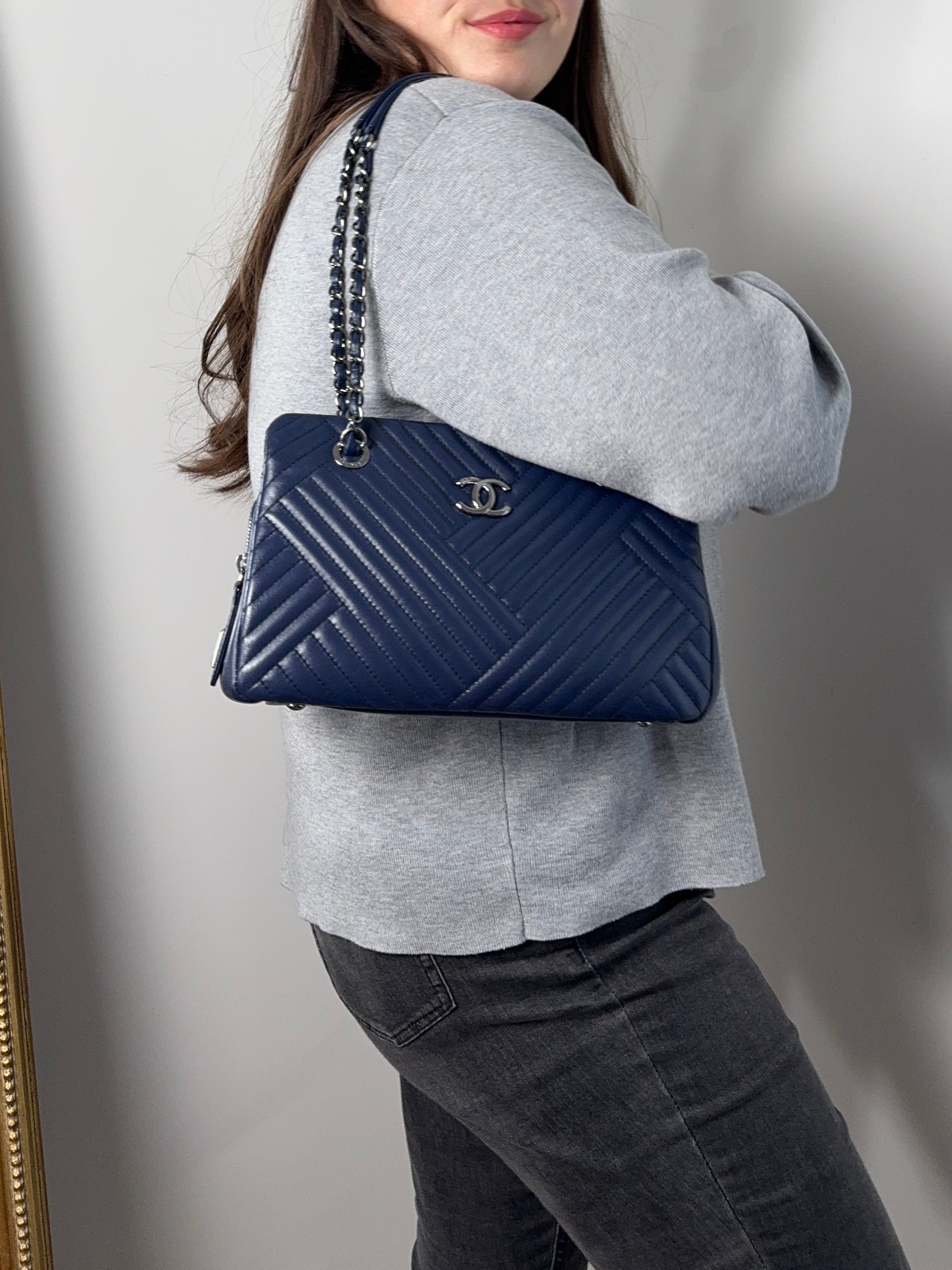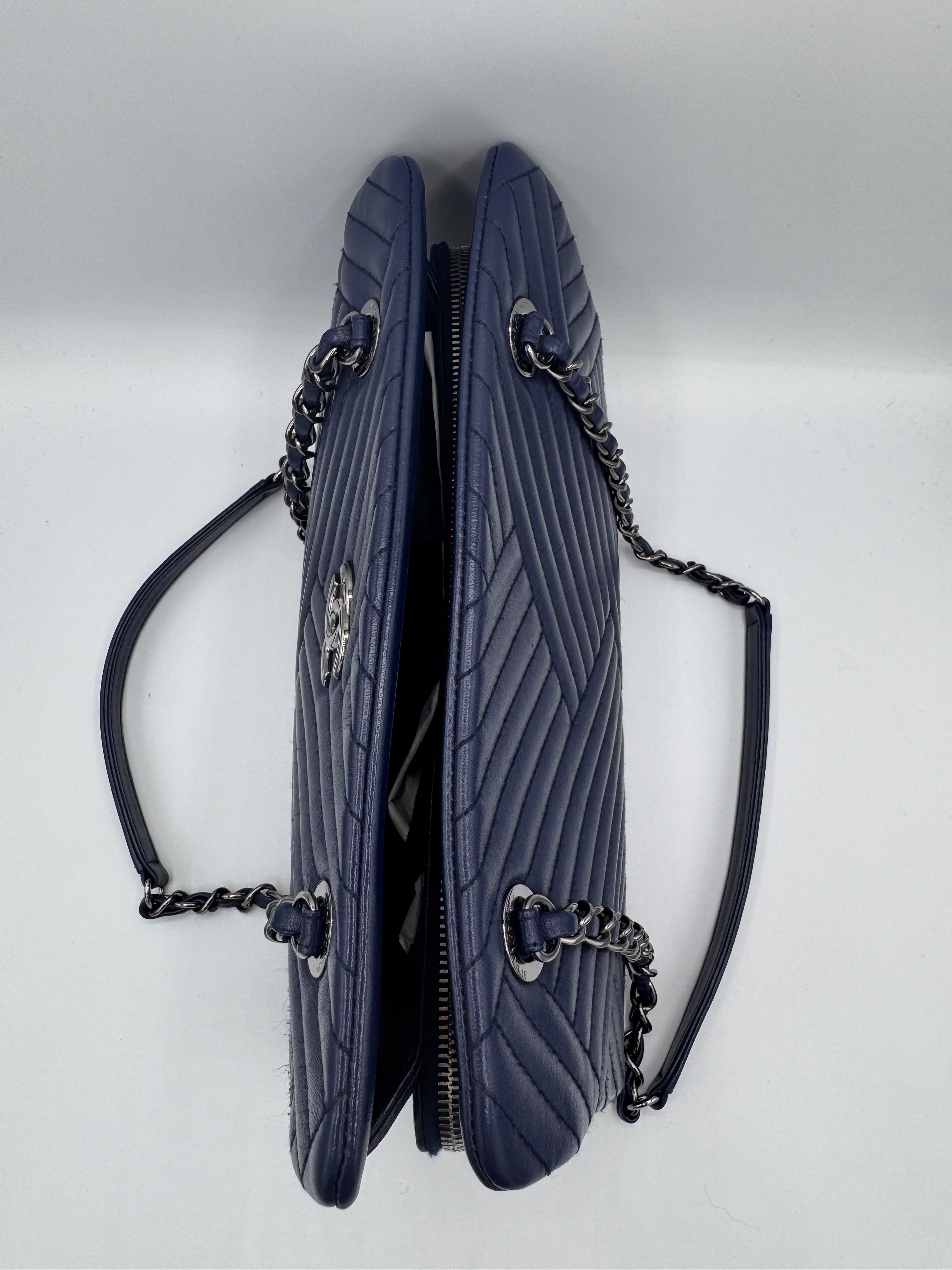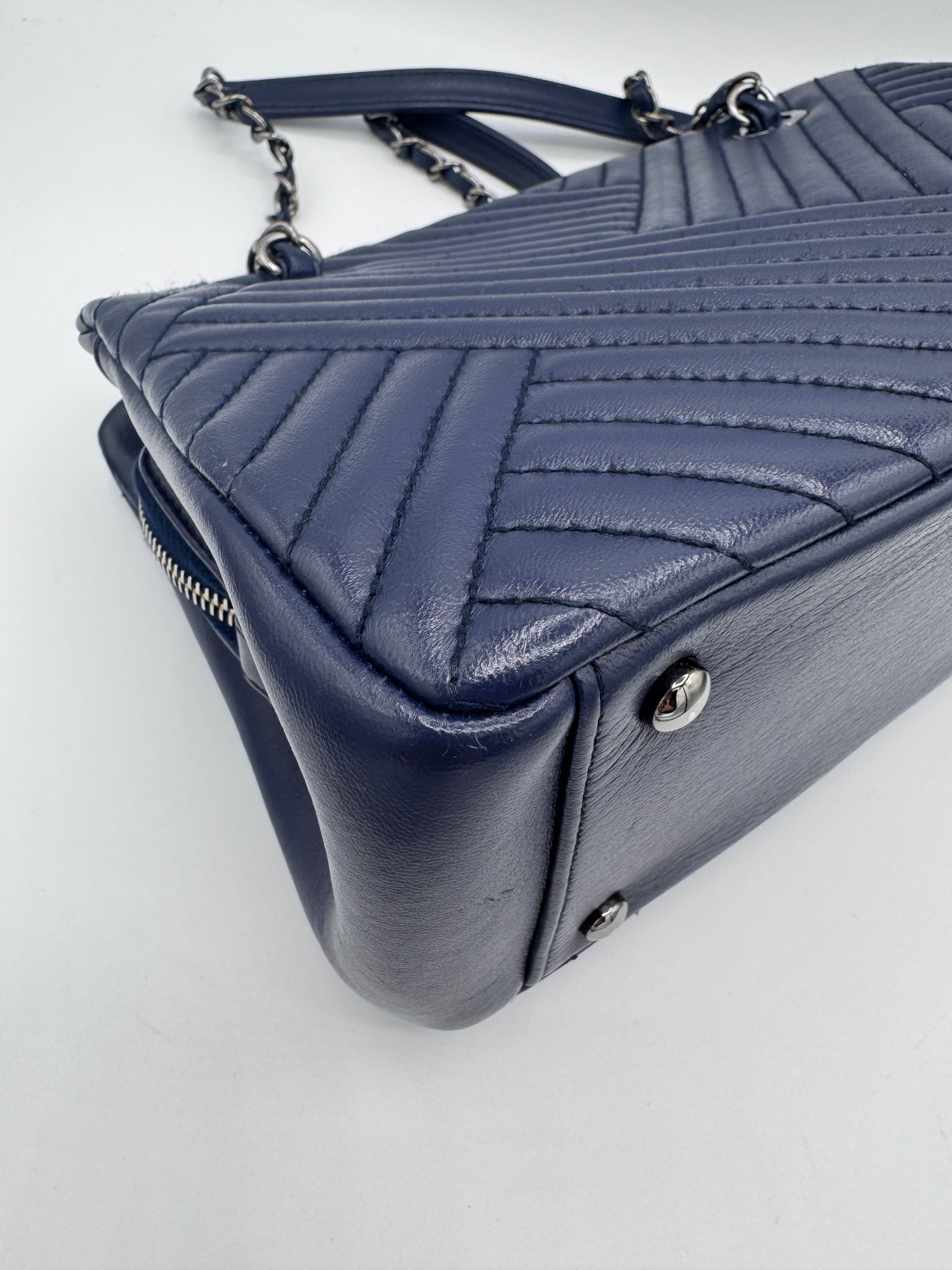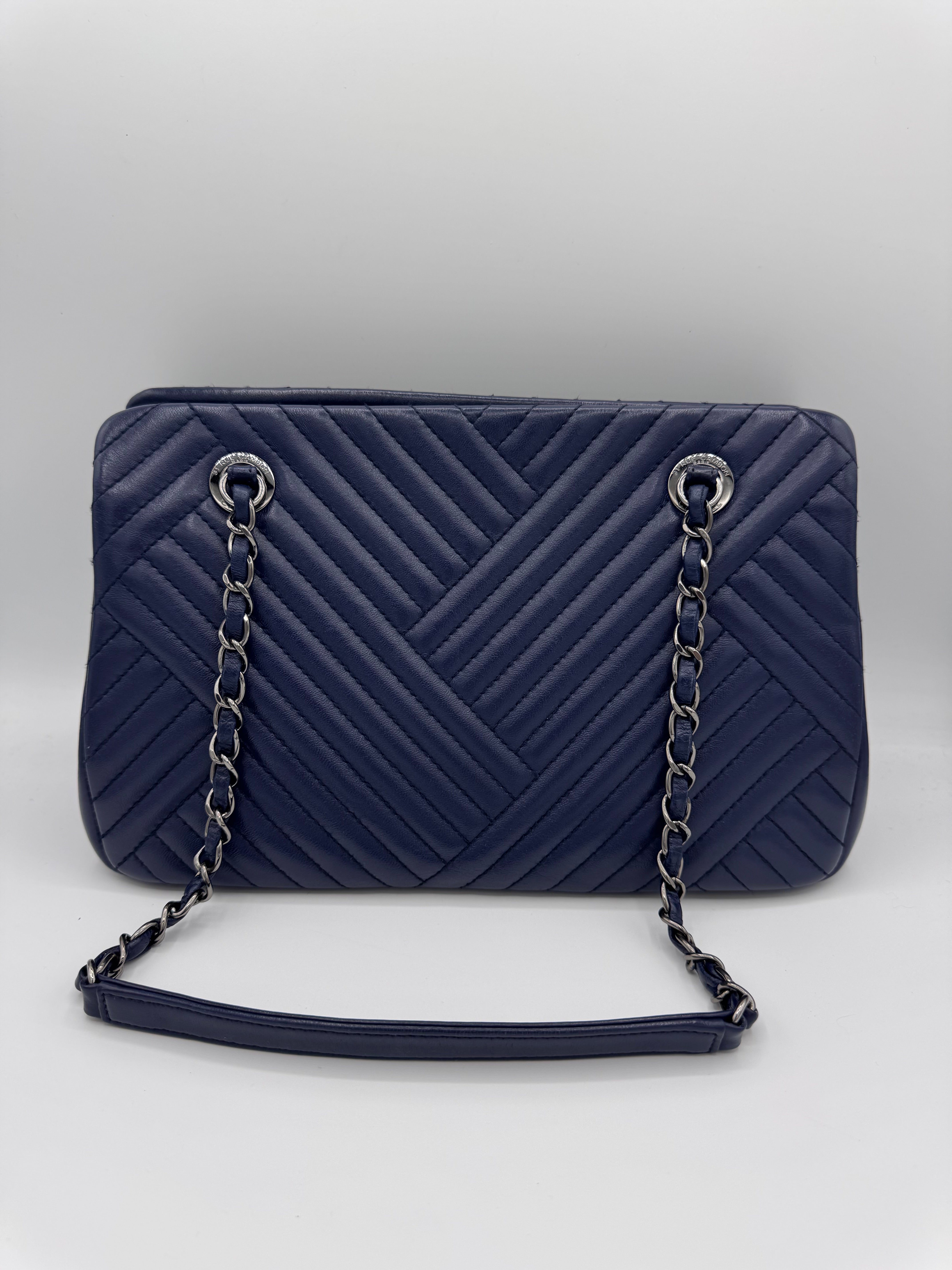 Sac cabas Chanel en état excellent, coloris bleu marine.
