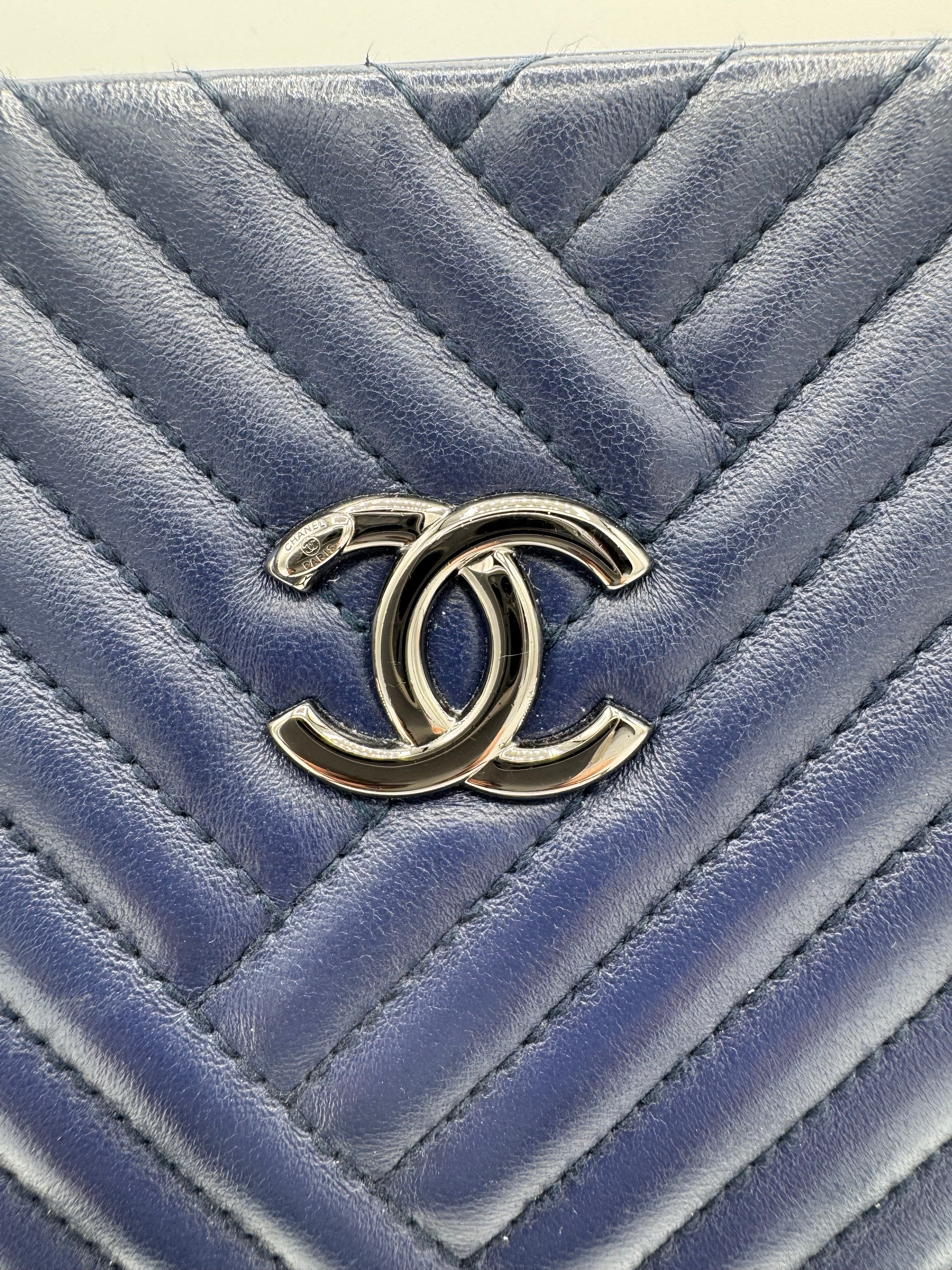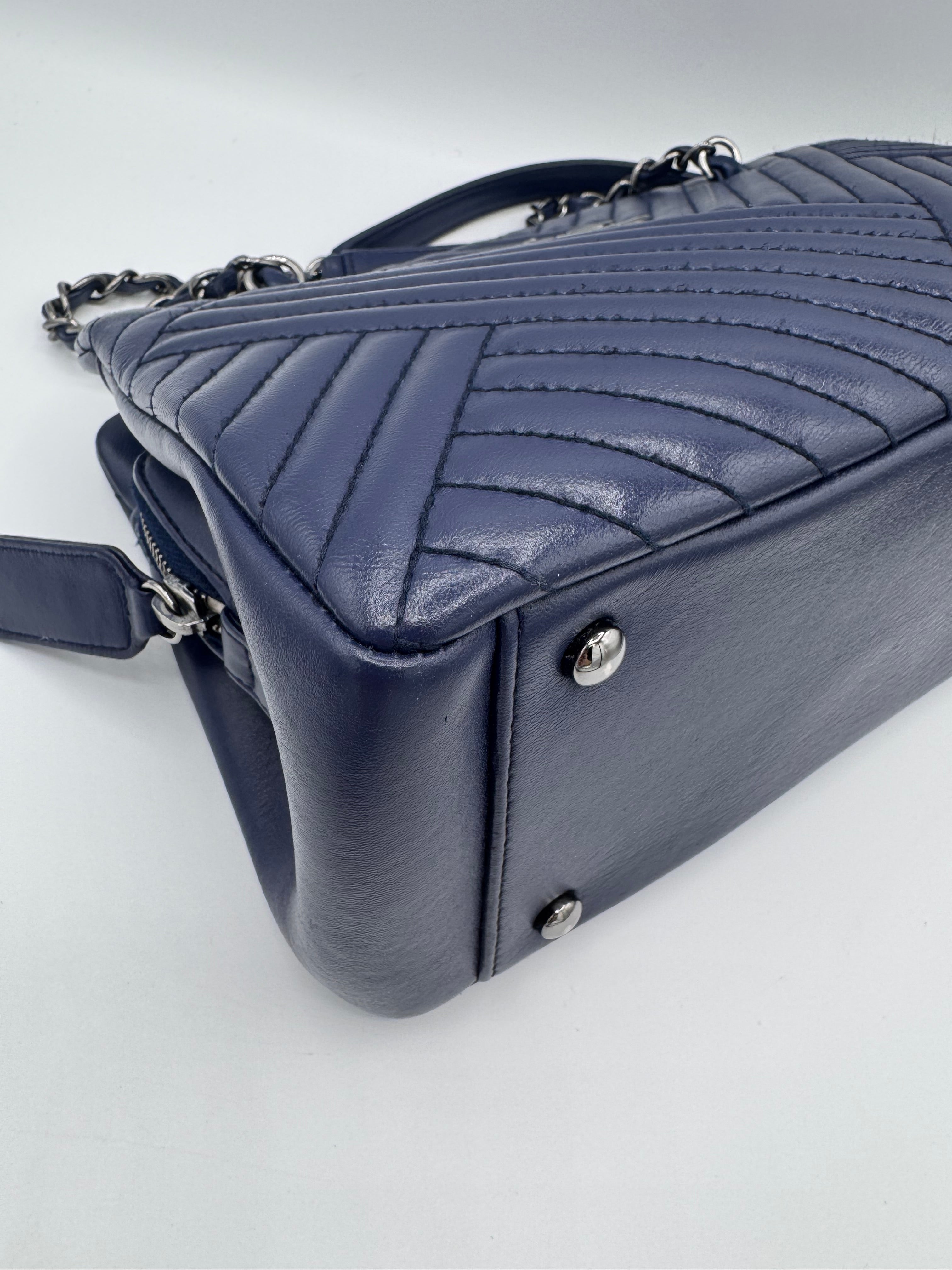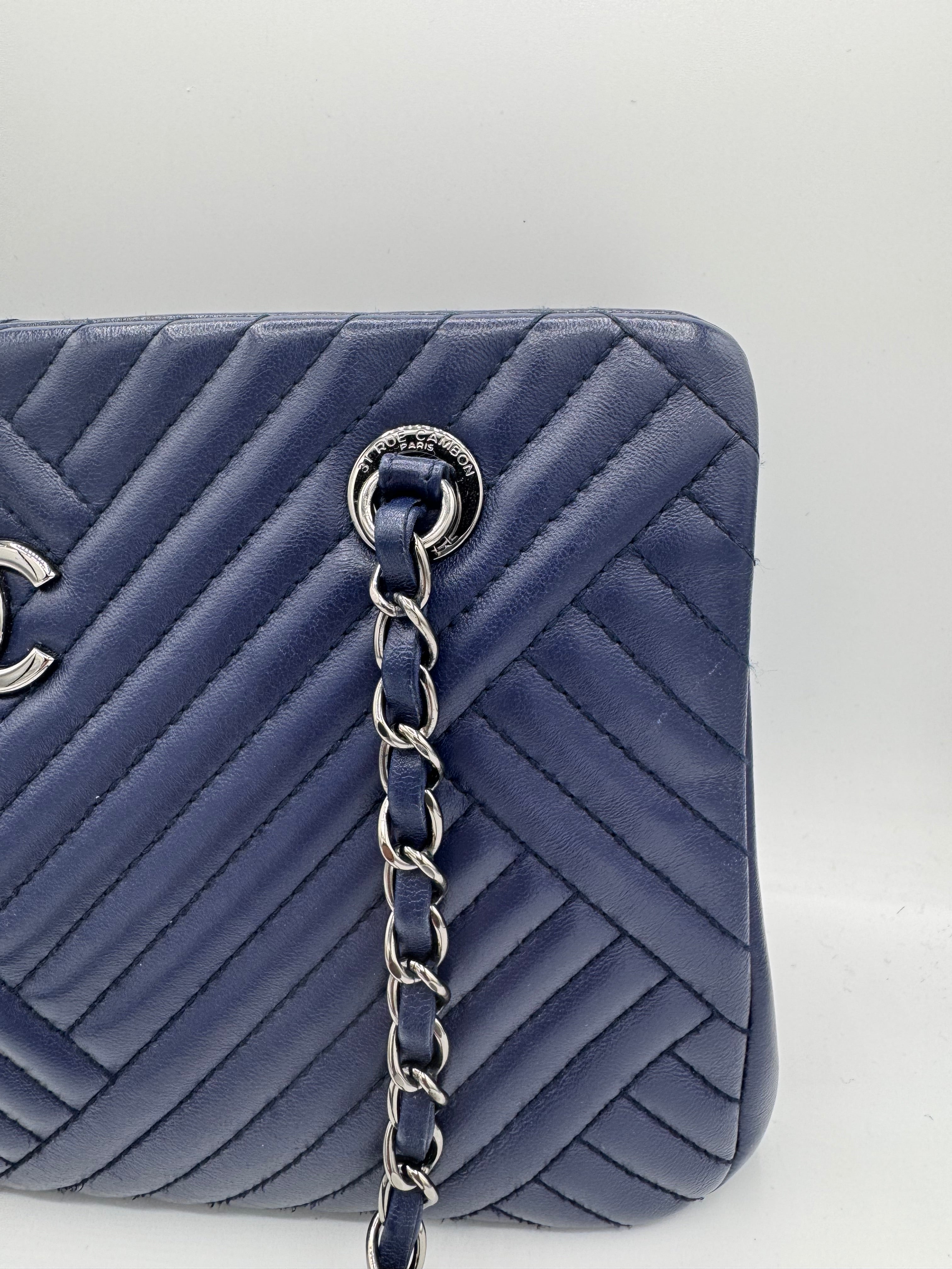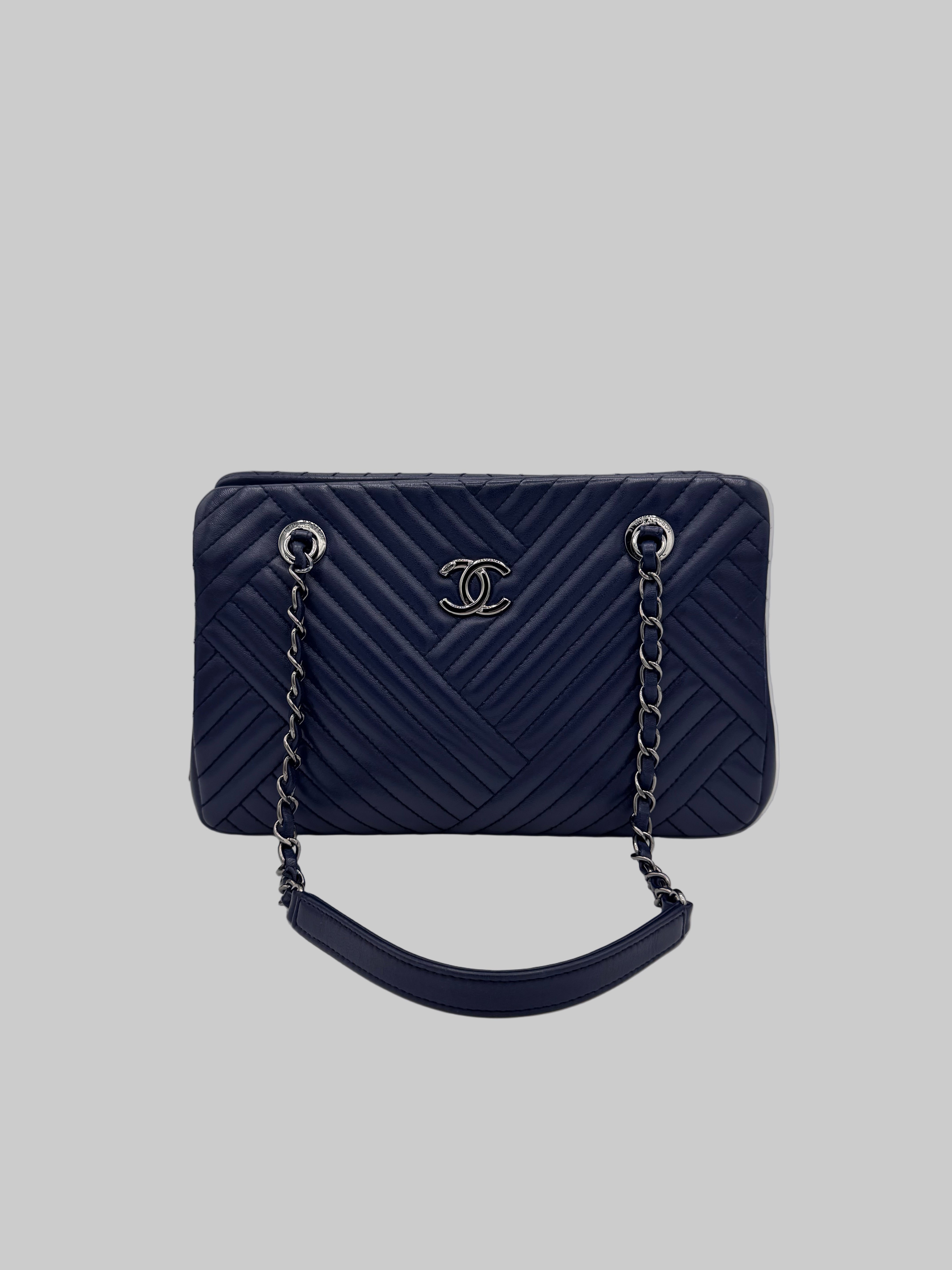 Sac cabas Chanel en état excellent, coloris bleu marine.