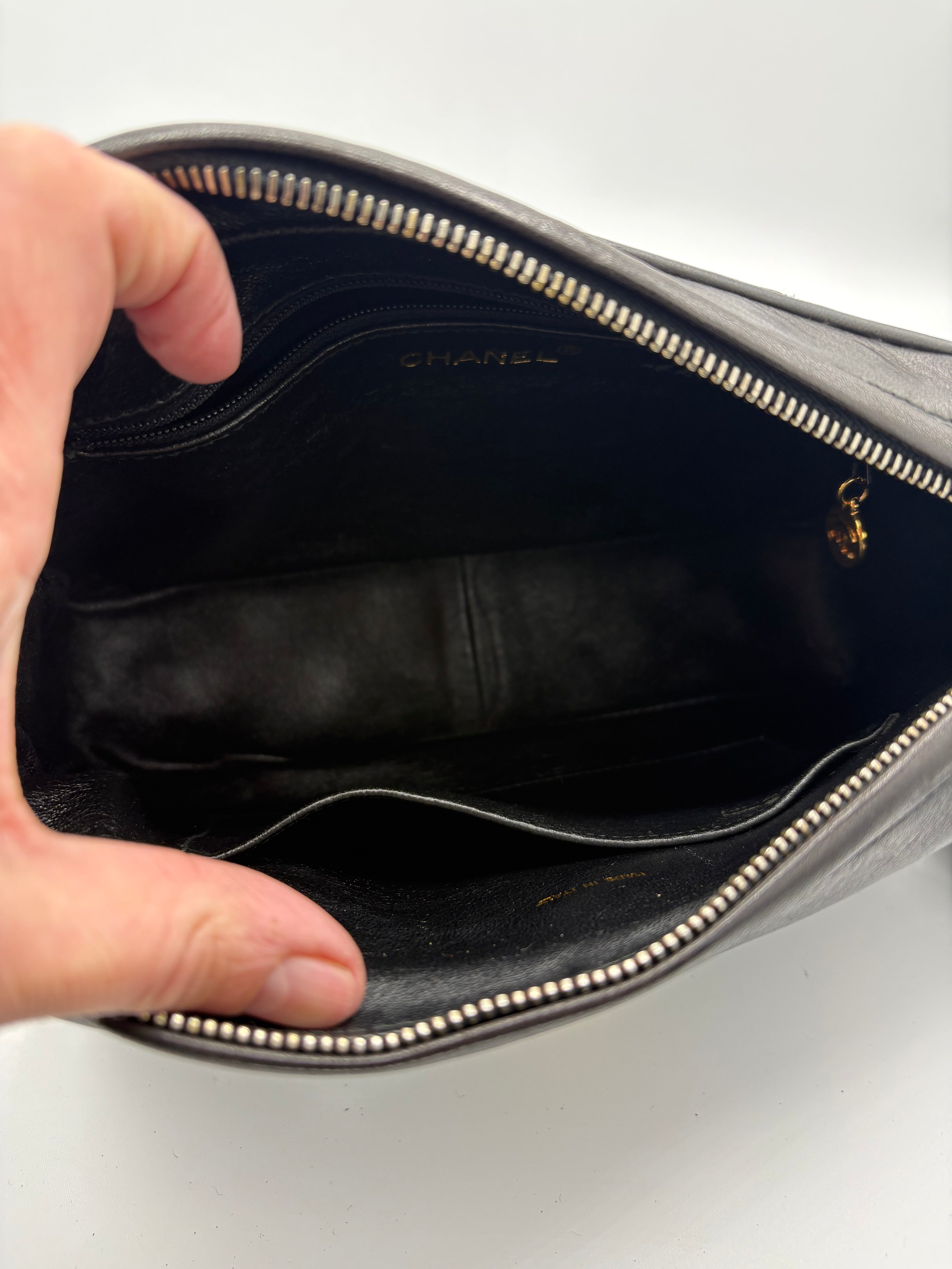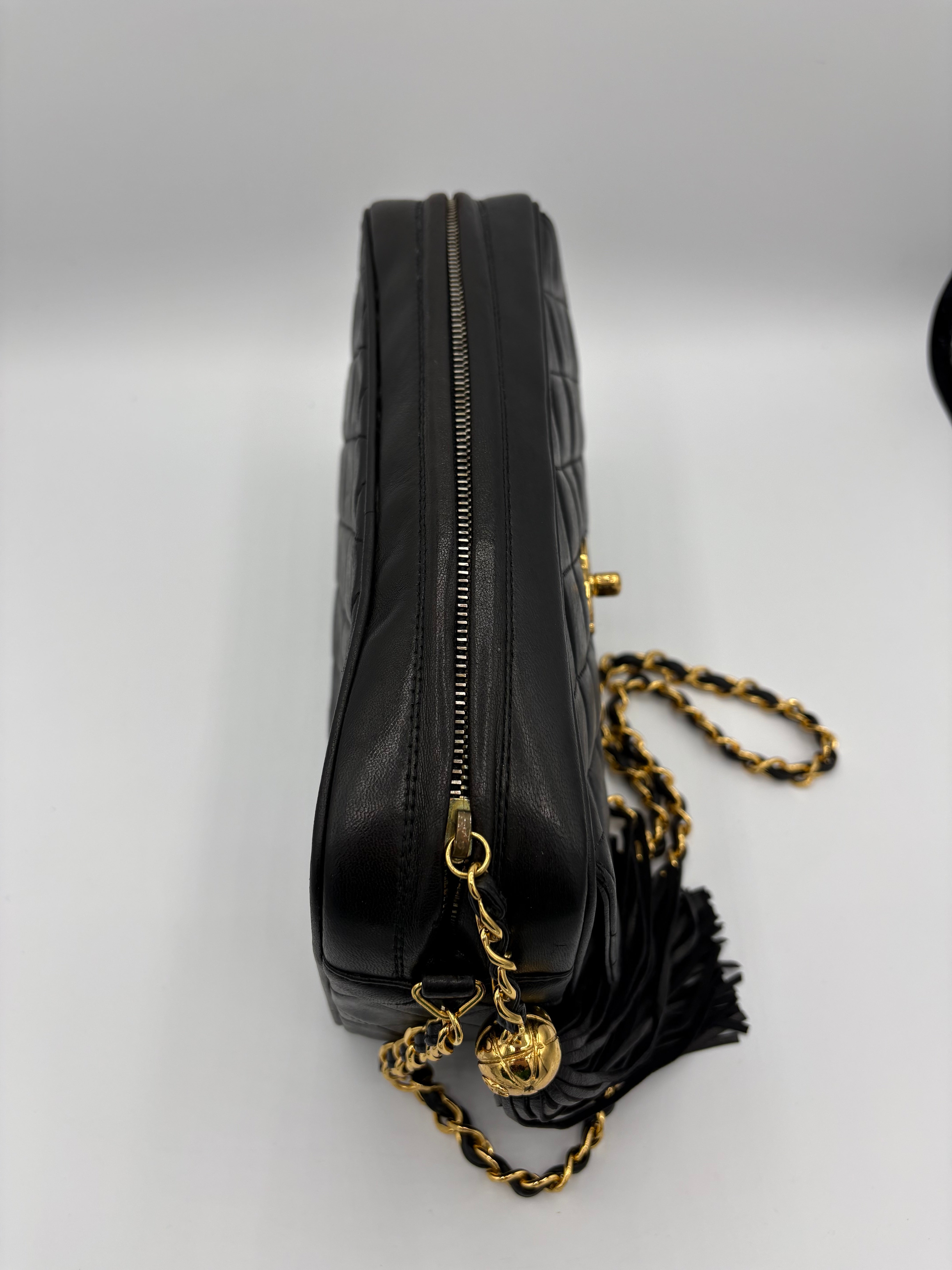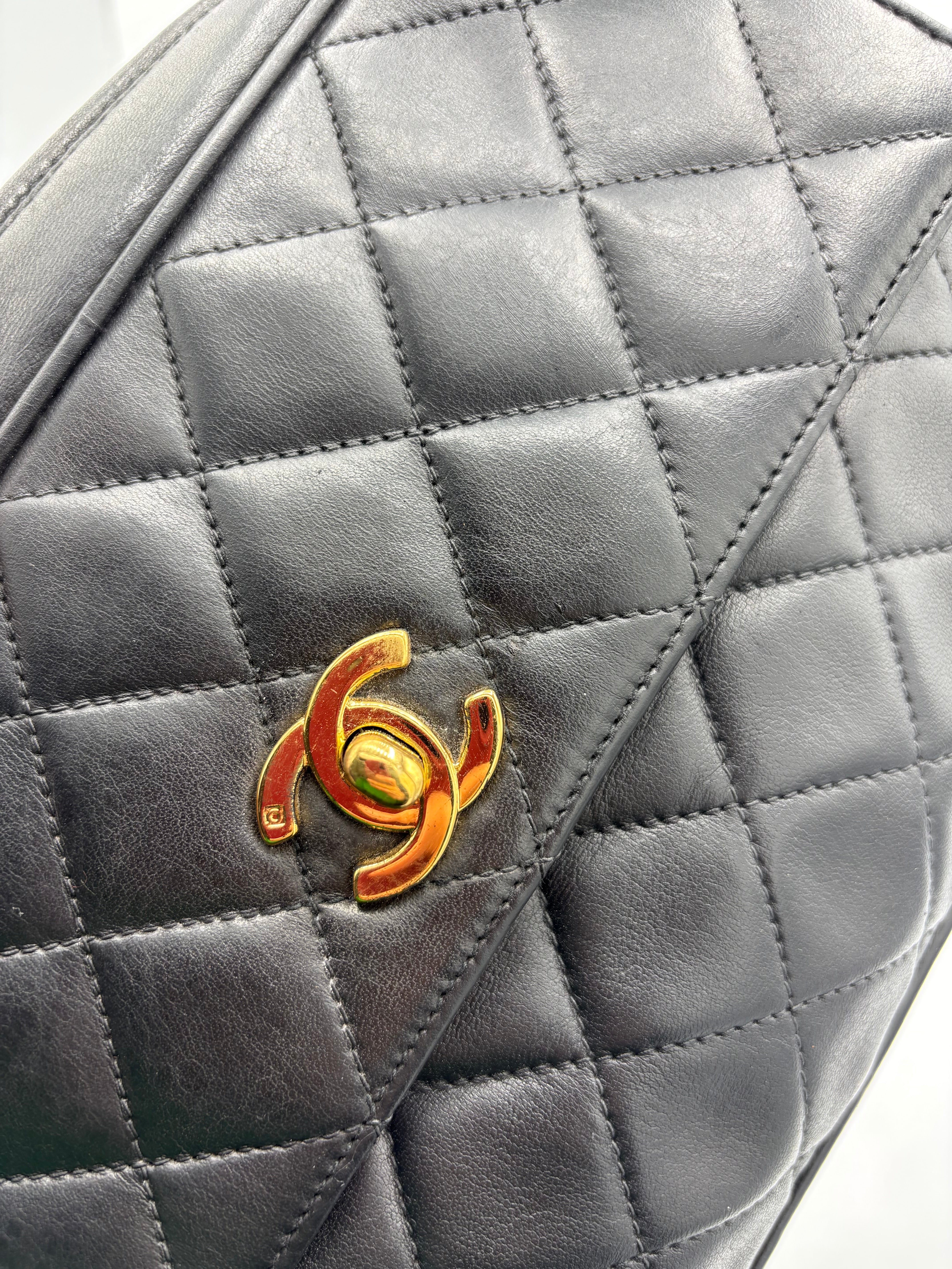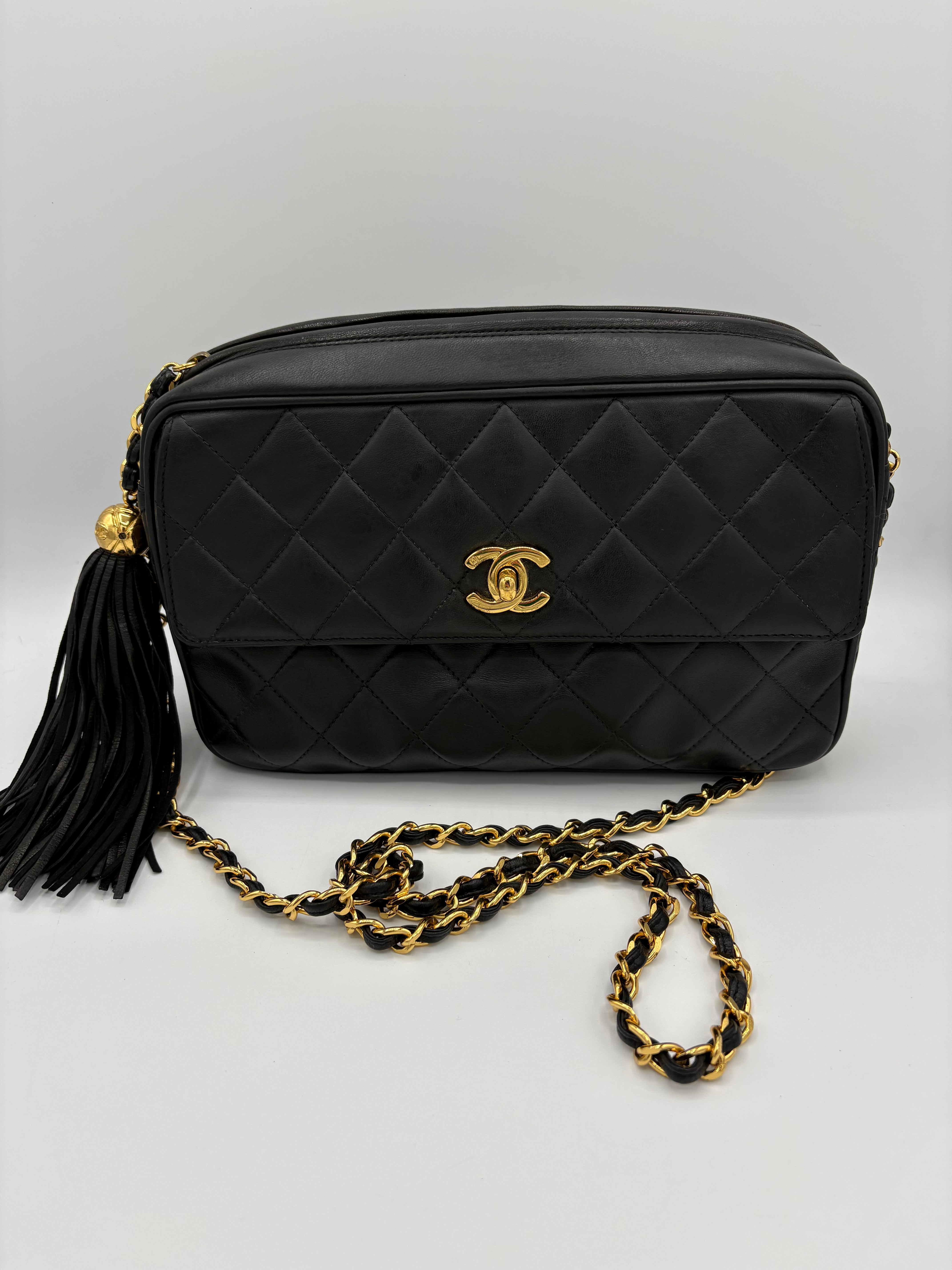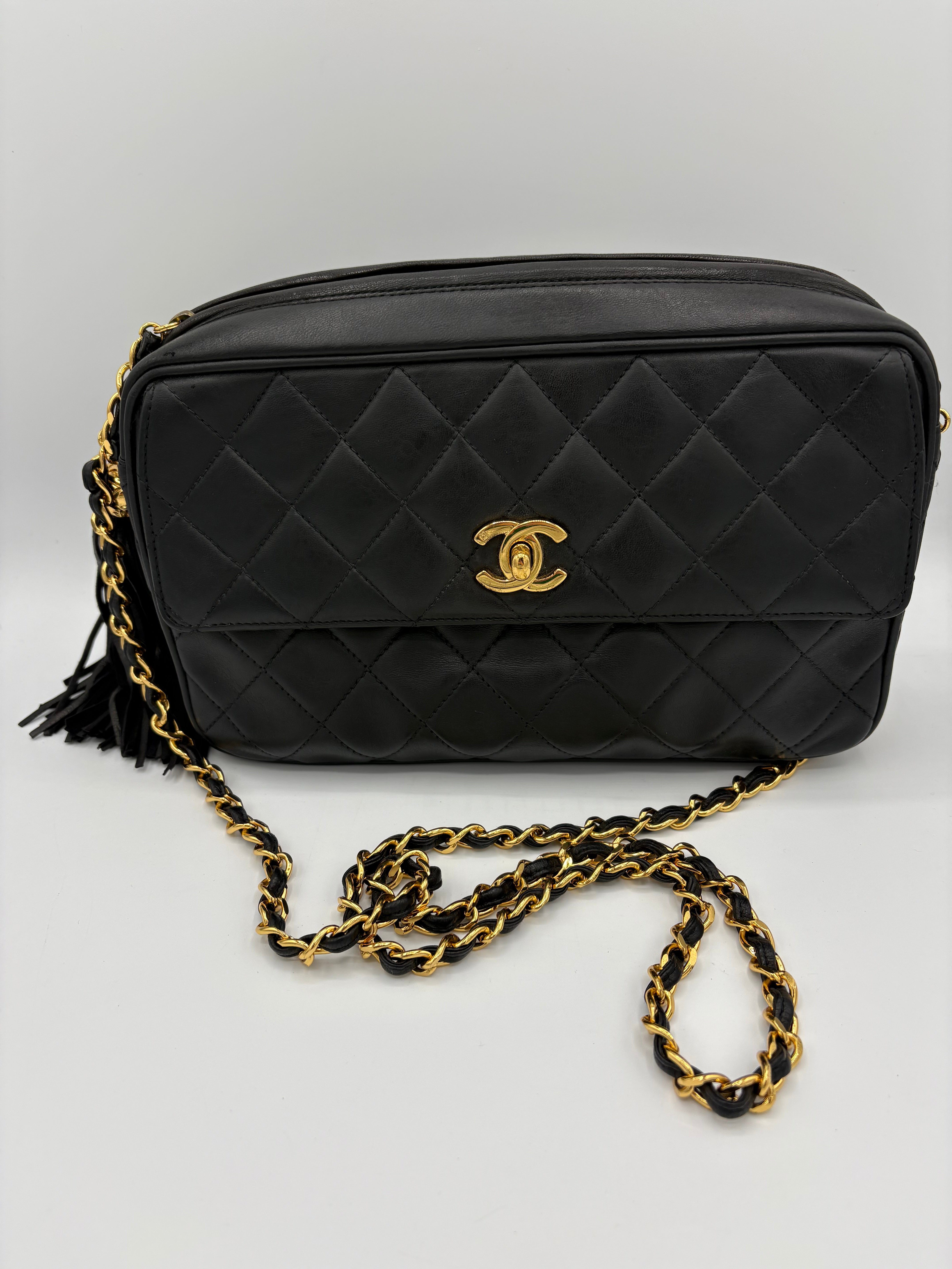 Sac Caméra chanel en cuir d'agneau en excellent état général. Une trace légérie sur le cuir à côté du fermoir visible en photo.