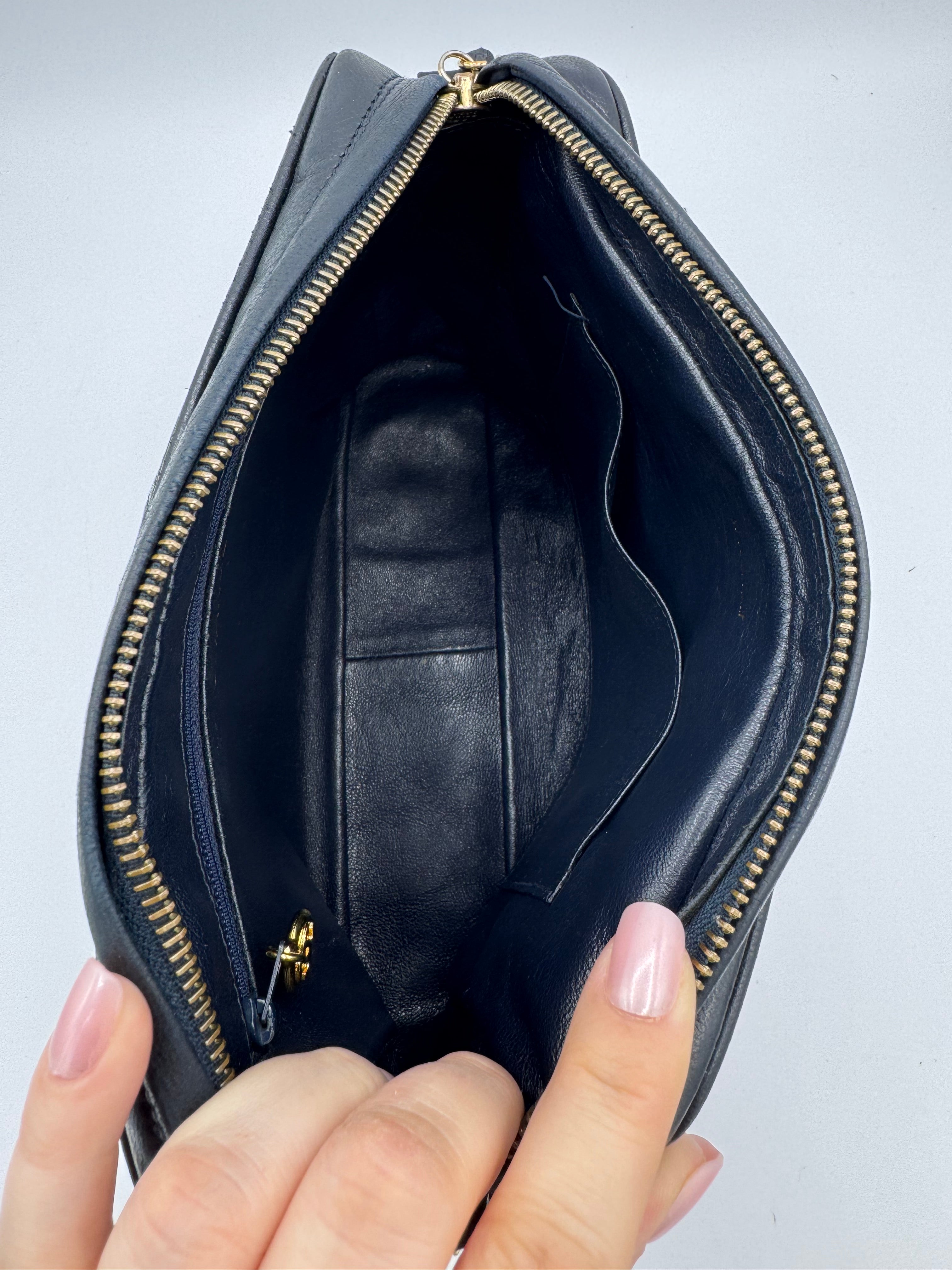Intérieur en cuir marine en très bon état également, présence d’une poche zippee et d’une poche plaquée.