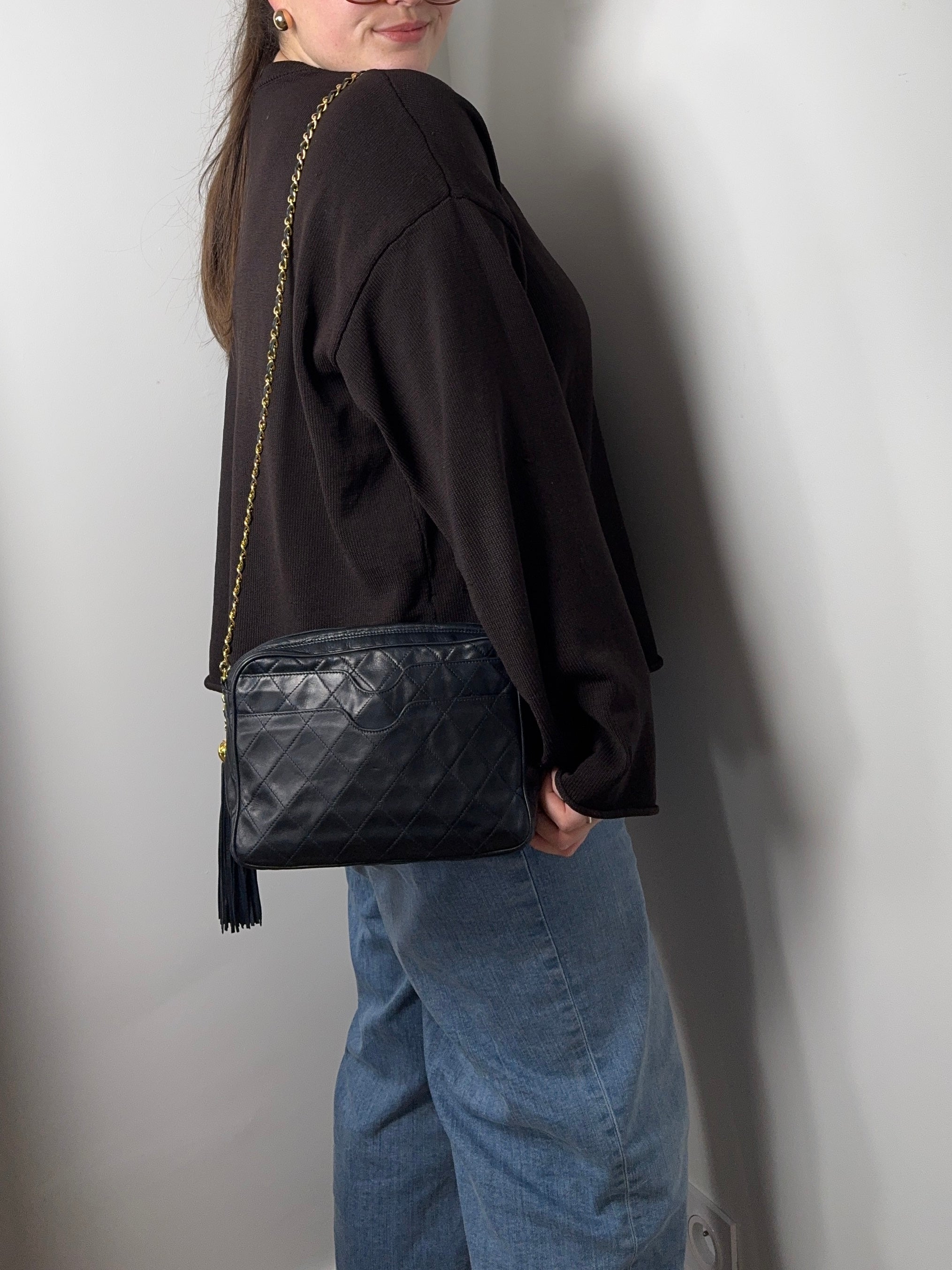 Sac Chanel caméra vintage bleu nuit