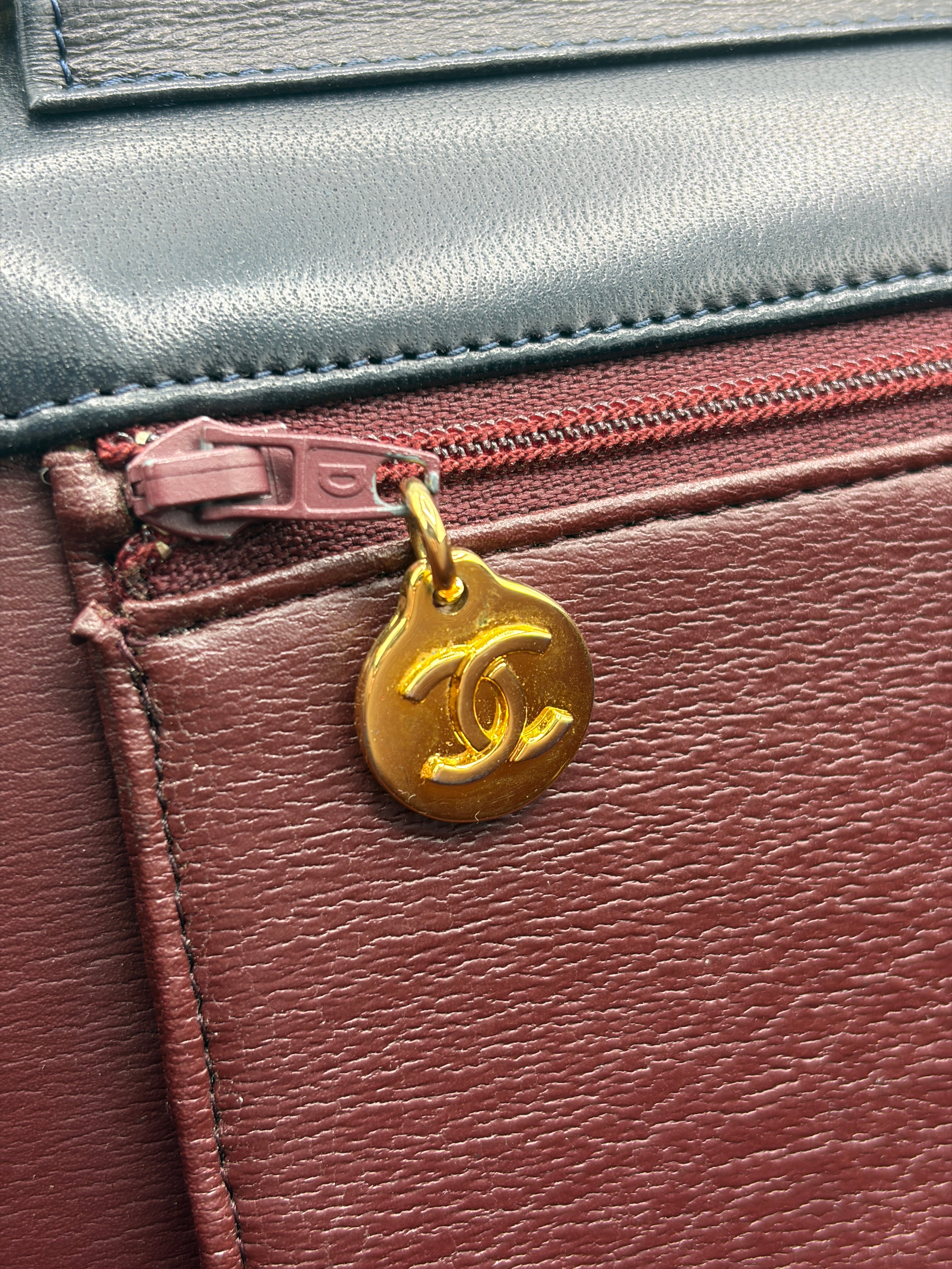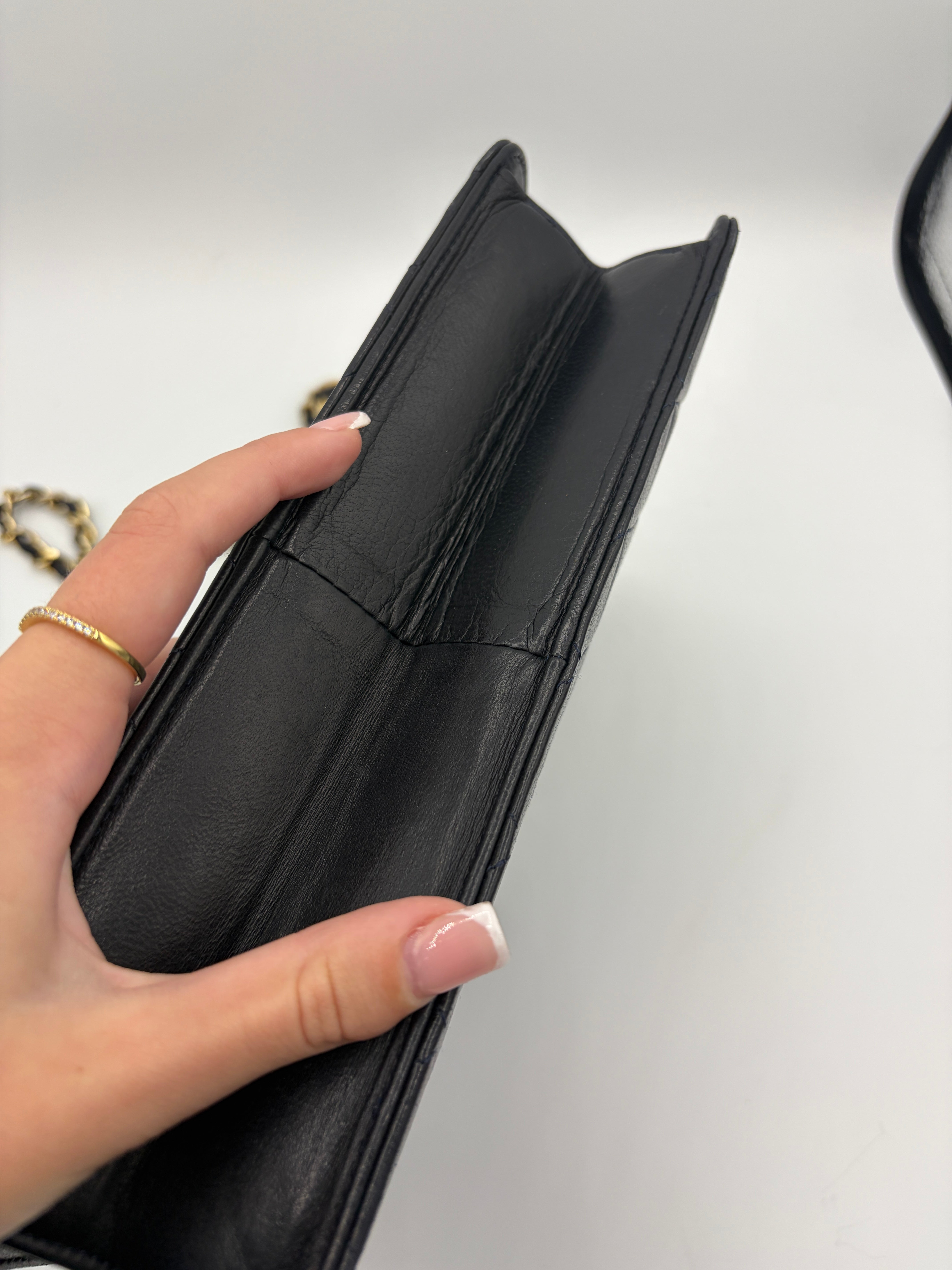 Bijouterie plaquée or 24 carats, légèrement dédorée sur la bandoulière.