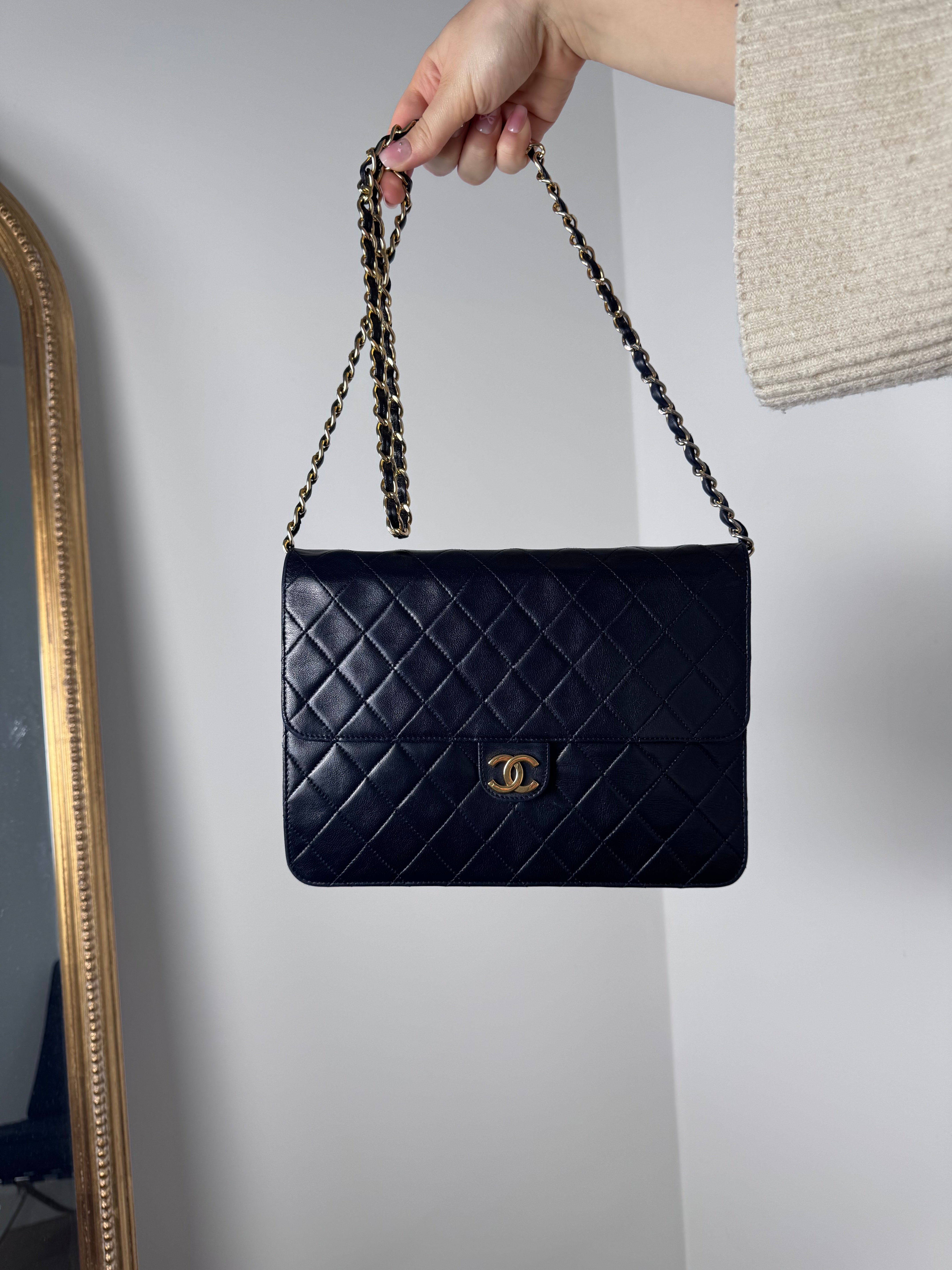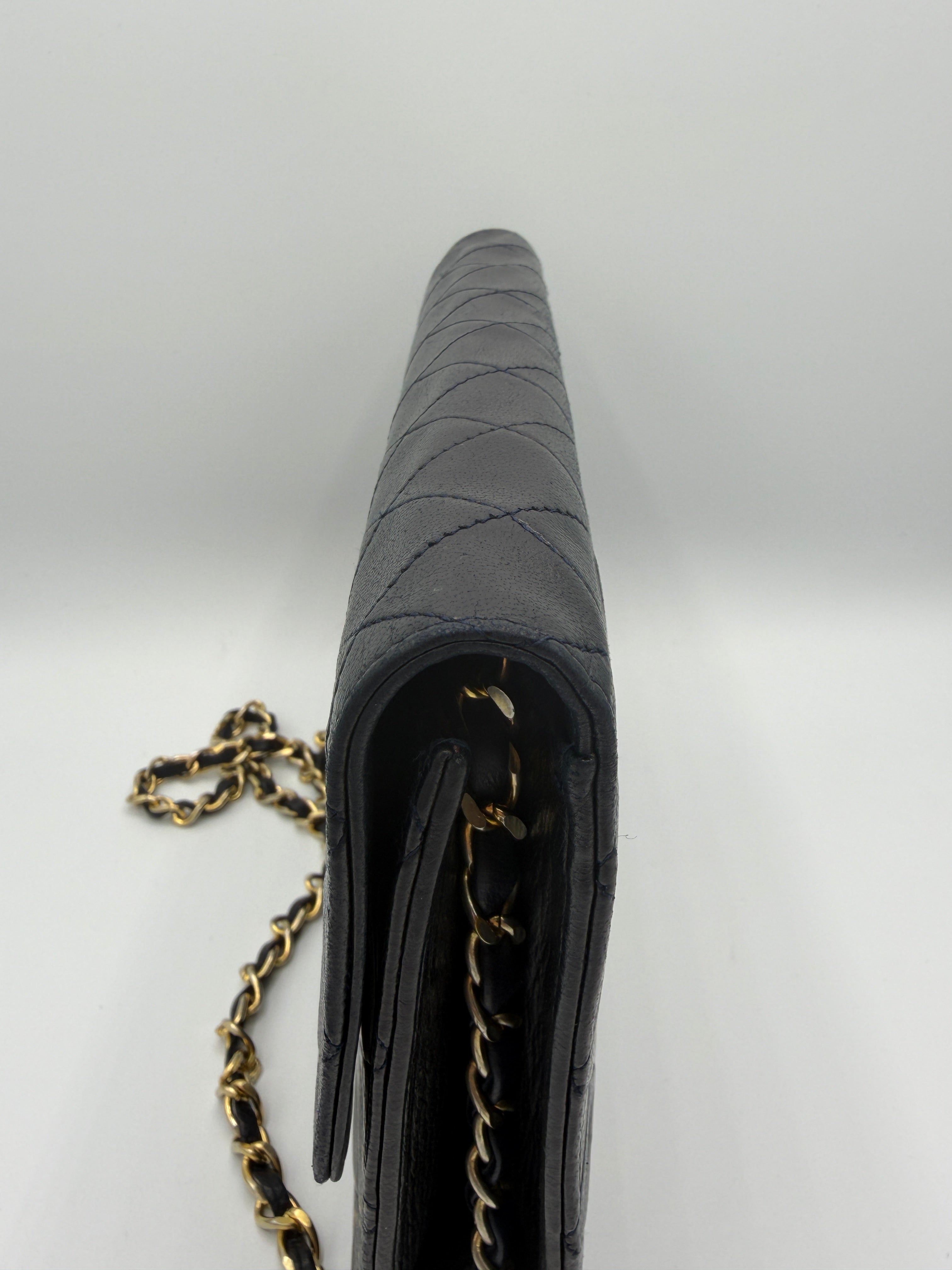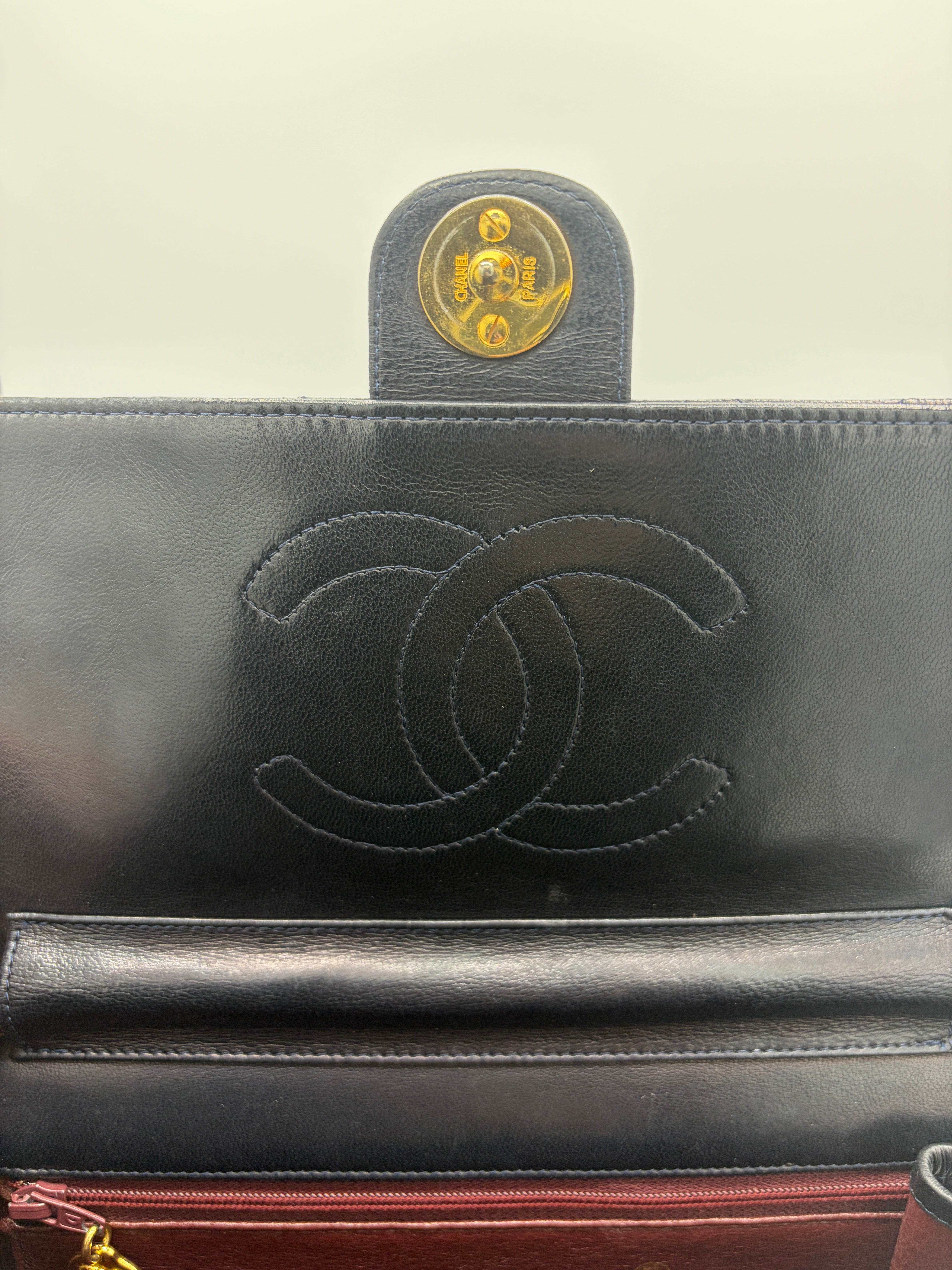 Cuir d’agneau bleu nuit très foncé tirant vers le noir parfait, ne présentant aucune trace.