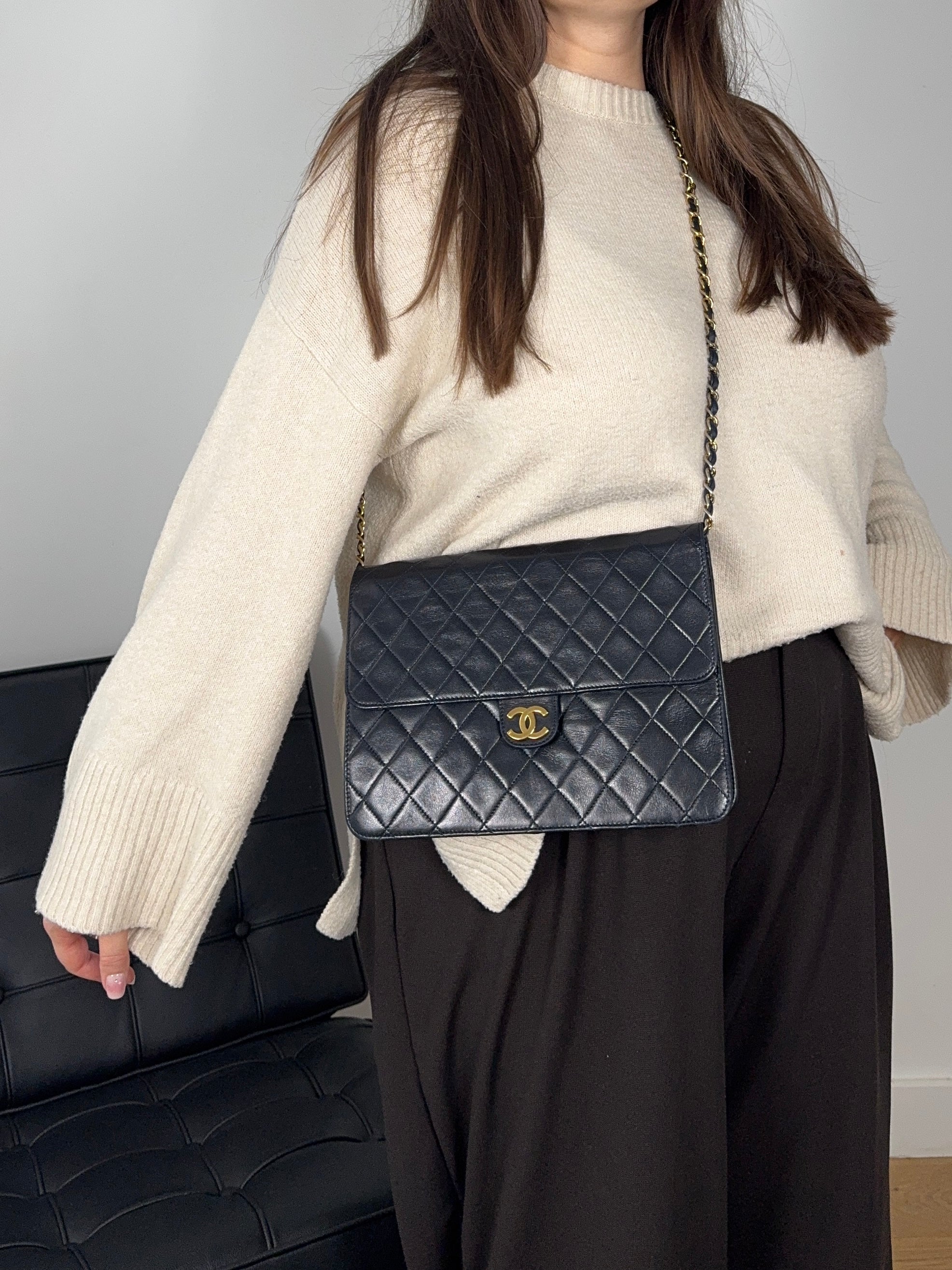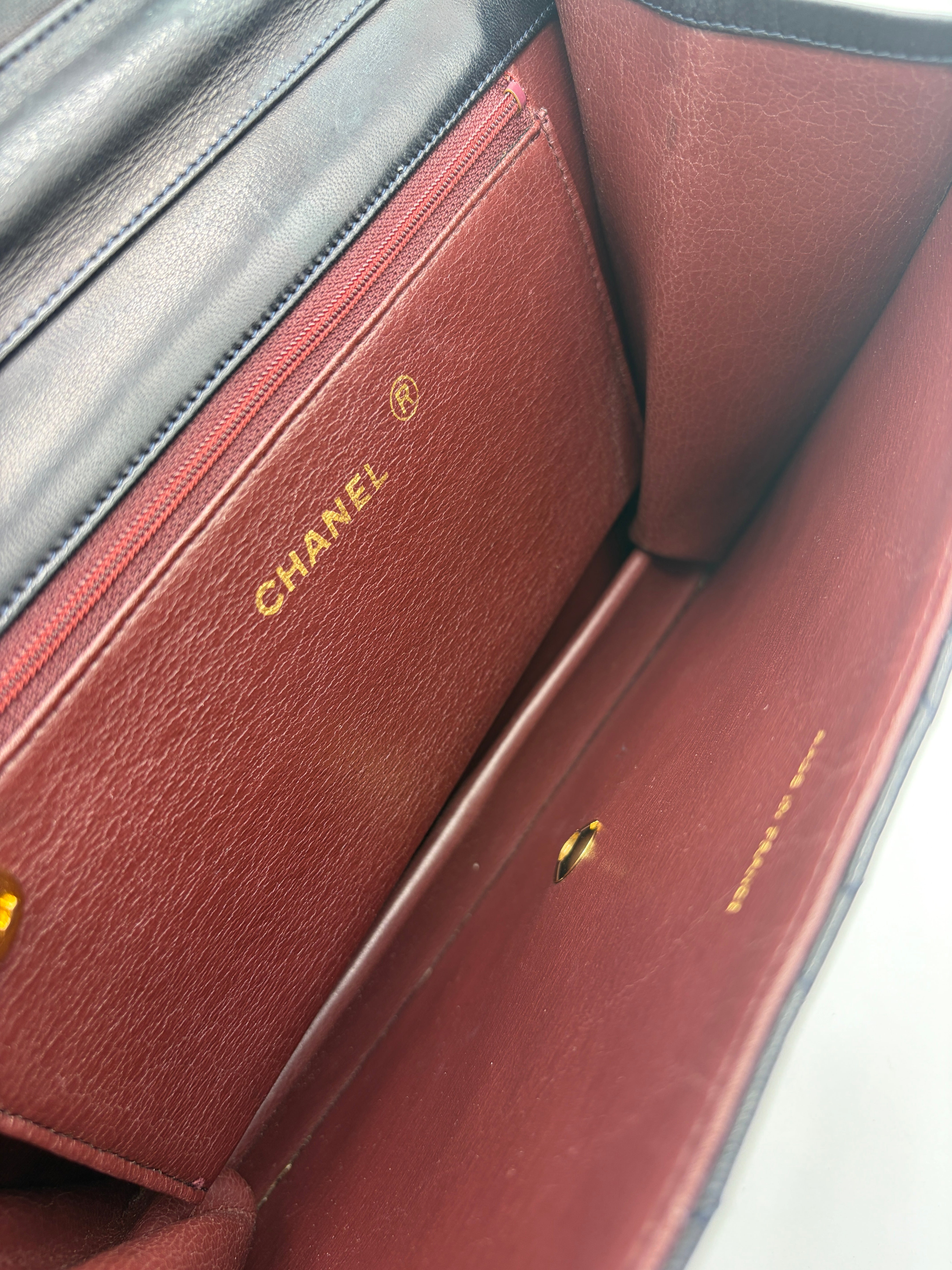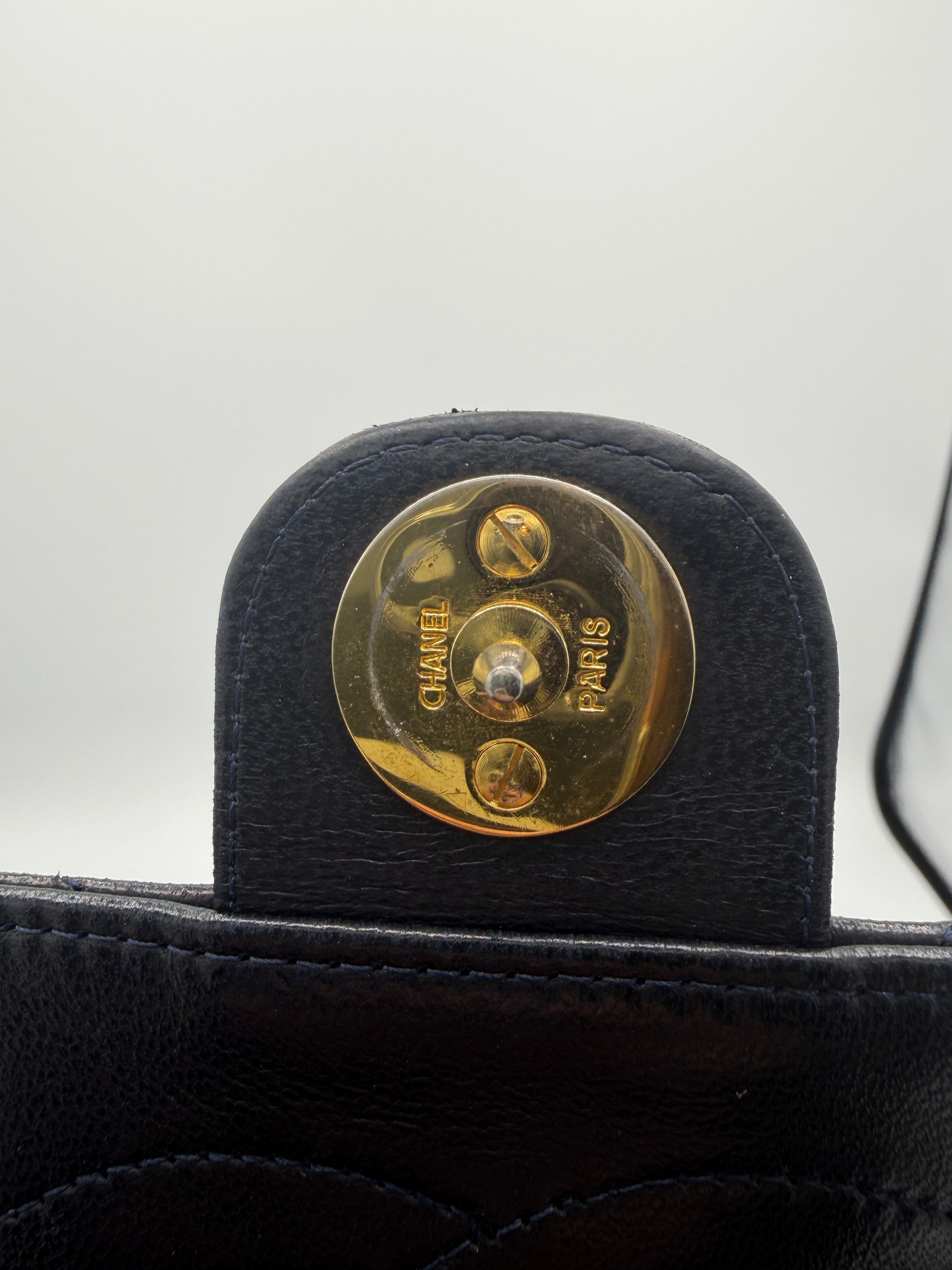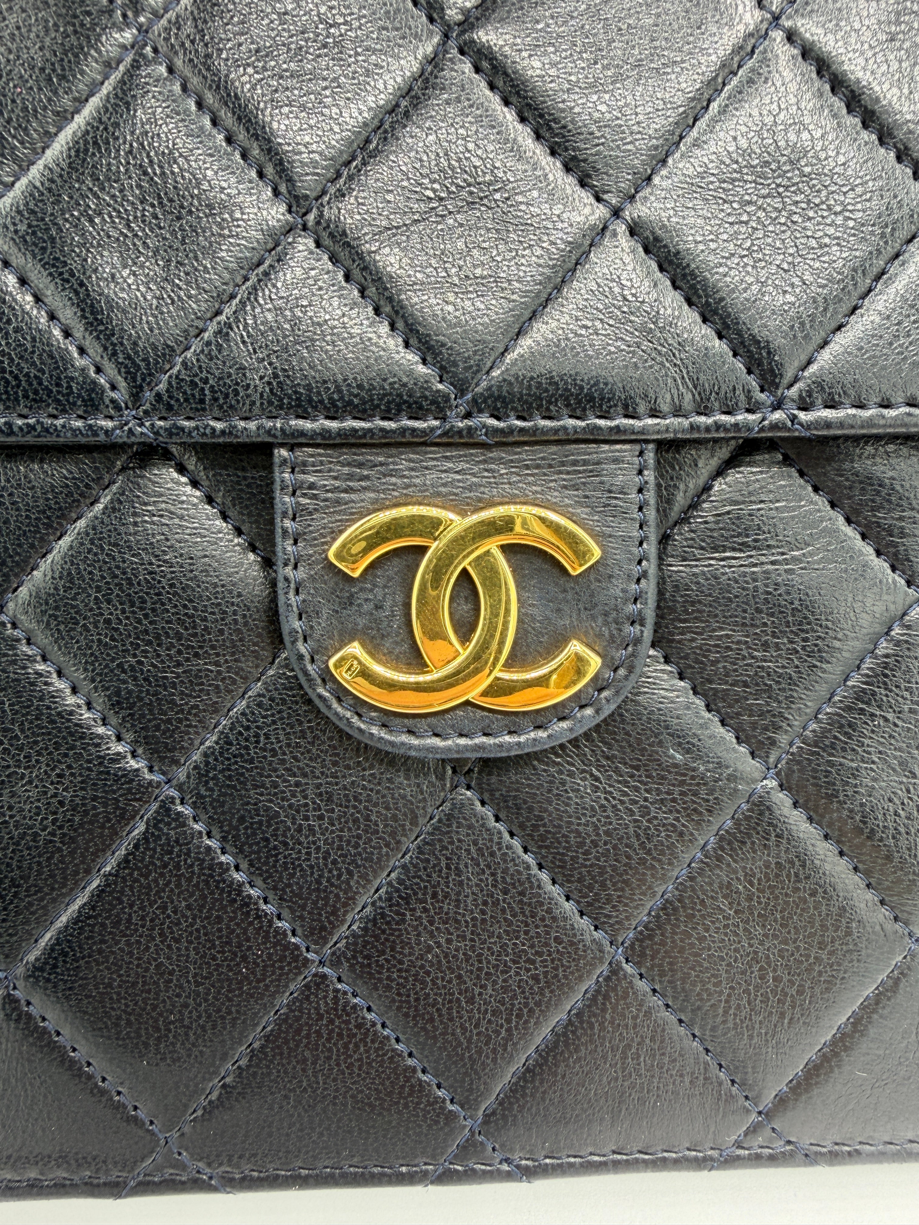 Cuir d’agneau bleu nuit très foncé tirant vers le noir parfait, ne présentant aucune trace.
